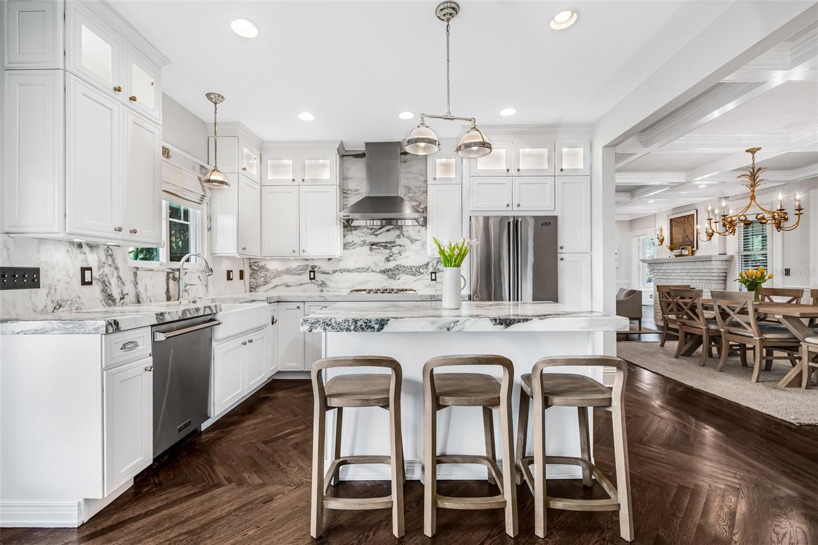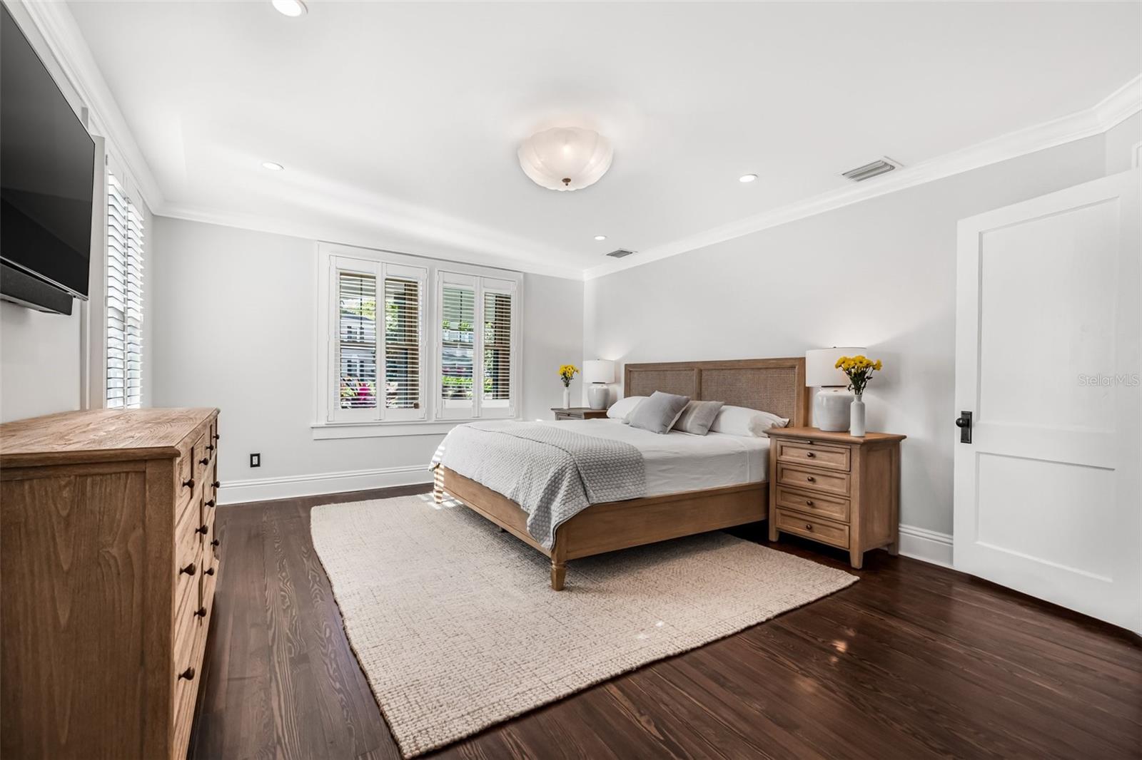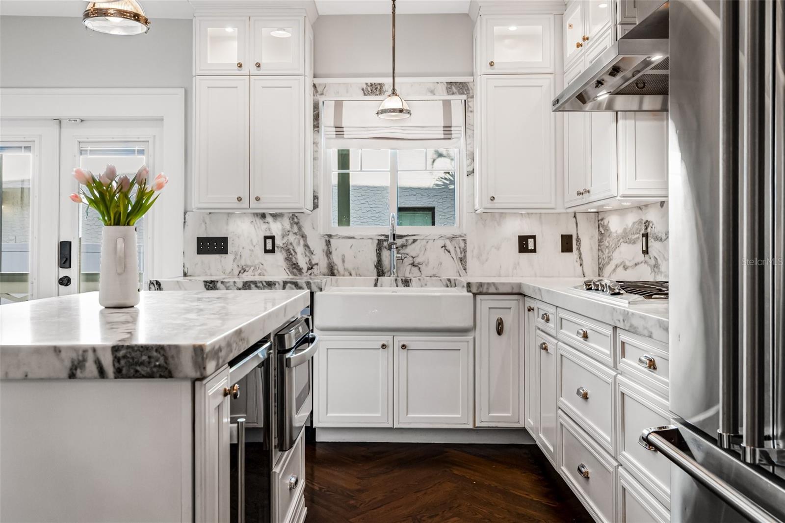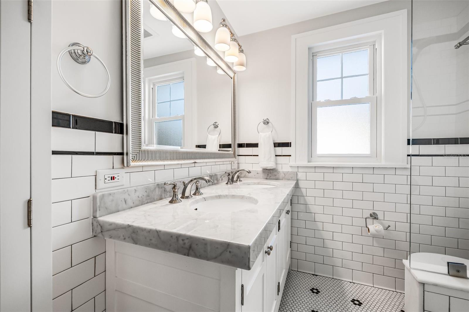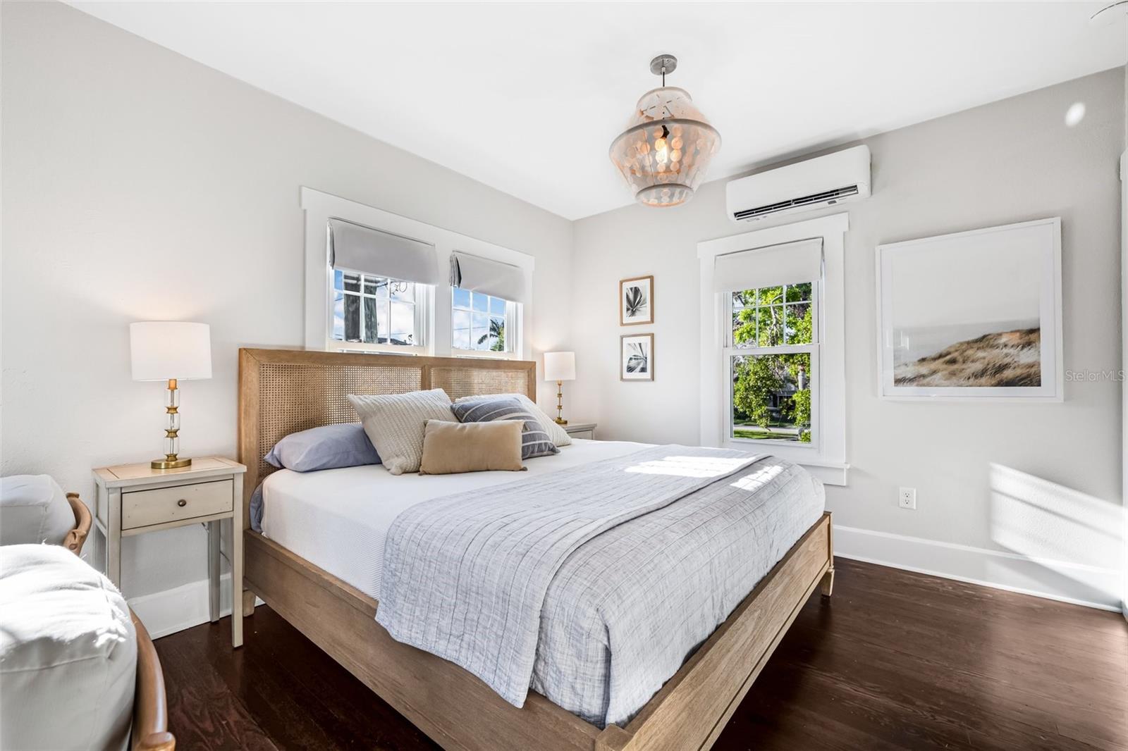 Have you ever dreamed of stepping inside the pages of Architectural Digest? Here is your chance to experience a truly exceptional opportunity. Welcome to 1505 Beach, a captivating pool home that exudes historic allure, gracefully positioned on a beautifully landscaped corner lot, offering ample privacy on one of the most iconic streets in highly sought-after Historic Old Northeast. From the moment you pass through the gates onto the meticulously maintained grounds, the home's timeless appeal is unmistakable. The privacy of the corner lot allows for an idyllic setting, complete with a tropical saltwater pool, lush gardens, dual porches adorned with designer tile, and enchanting outdoor retreats. This property seamlessly blends historic craftsmanship with contemporary luxury, creating an aura of exclusivity that sets it apart from anything else. Spanning 2,900 square feet, this two-story estate offers five bedrooms, four bathrooms, a main-floor ensuite and laundry room, plus a cozy den topped in seagrass wallpaper. Every inch of the home reflects an impeccable attention to detail, with coffered ceilings, expertly crafted trim work, and rich hardwood floors that flow seamlessly throughout the open-concept layout. The gourmet chef’s kitchen is a masterpiece, featuring herringbone wood floors, thick mitered-edge marble countertops, a marble counter splash, custom real-wood cabinetry, a dedicated beverage center, and a full suite of matching Viking luxury appliances—ensuring an unparalleled hosting experience. Upstairs, the spacious primary suite boasts a walk-in closet and a spa-like ensuite bathroom with dual marble vanities, a soaking tub, a separate shower, and elegant marble flooring. Two additional guest bedrooms, each with ample storage, share a beautifully appointed guest bath, also featuring thick mitered-edge marble countertops. This home is a masterclass in restoration, where no detail has been overlooked. Recent updates include hurricane-impact windows and doors, tasteful plantation shutters, two new HVAC systems (2024 & 2022) with updated ductwork, newer plumbing, a new vapor barrier, and updated electrical—ensuring comfort and efficiency for years to come. Additional exquisite touches include a newly renovated gas brick fireplace, Level-5 smooth texture walls, elegant French doors, and thoughtfully restored door hardware and light switches. Step outside to experience the pinnacle of indoor-outdoor living. The heart of this private oasis is a saltwater PebbleTec pool and a gas summer kitchen surrounded by Italian travertine, perfect for al fresco dining and entertaining. Above the spacious 2 car garage is a newly renovated and separately metered guest house. Your visitors may never leave the luxurious accommodations of this 400 square foot guest house which includes a full kitchen, bathroom, and new mini split AC. Further enhancing this remarkable home is a newer roof and a whole-house Generac gas generator, offering peace of mind. Located just a leisurely 10-minute stroll from vibrant downtown St. Petersburg and only one block from the serene Tampa Bay waterfront, parks, and trails, this home offers the perfect blend of historic charm, modern luxury, and an unbeatable location.