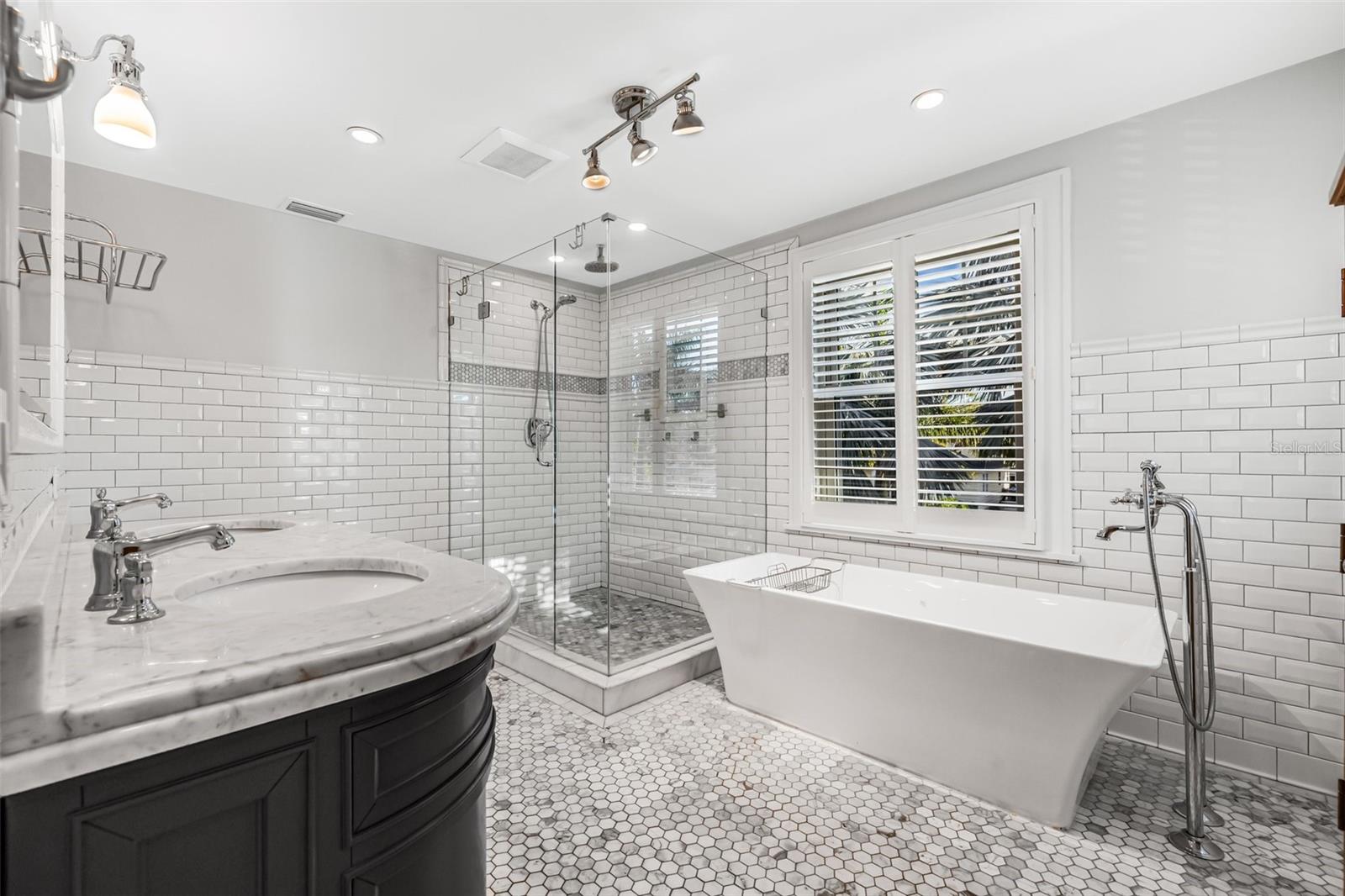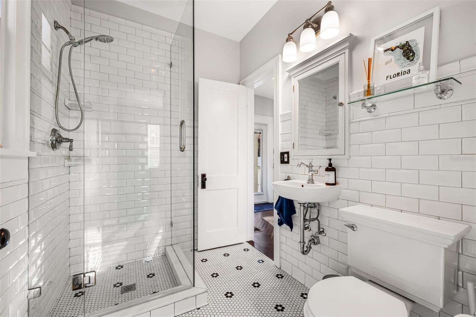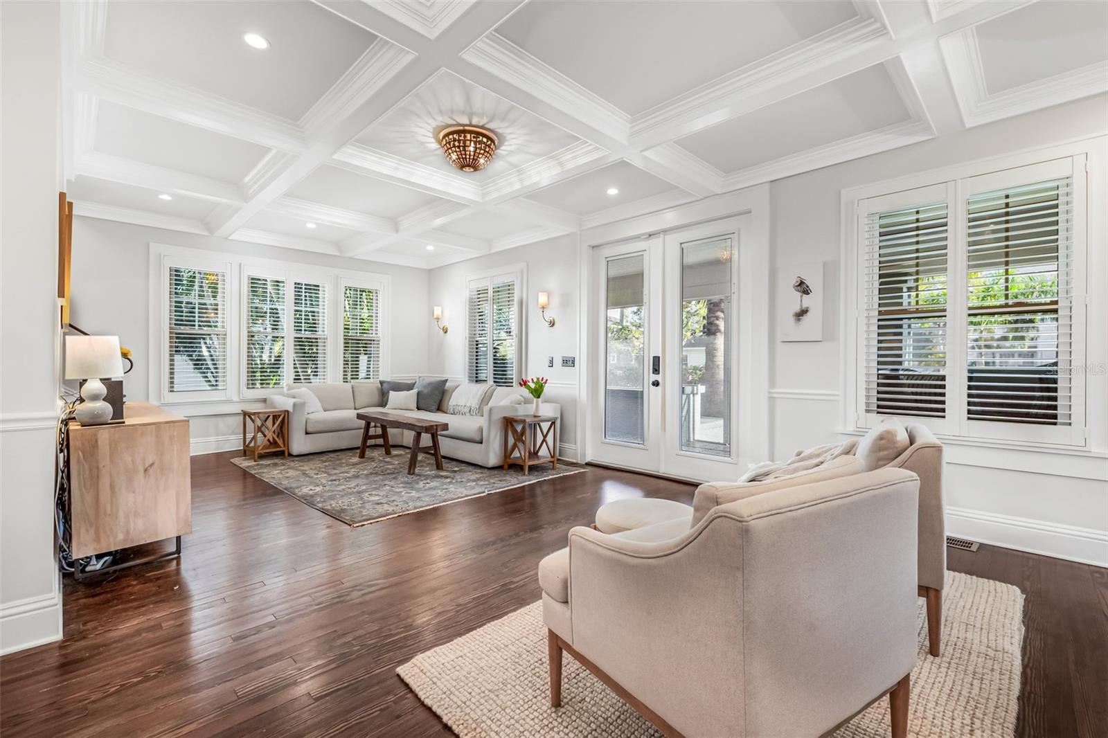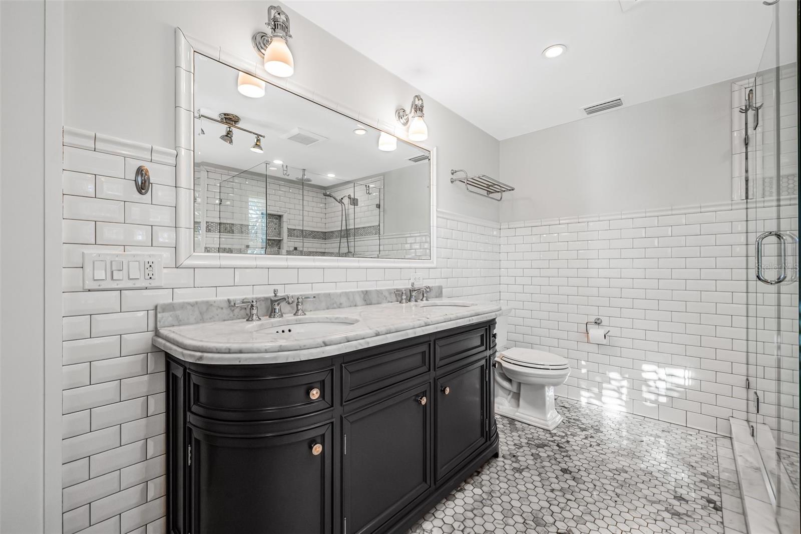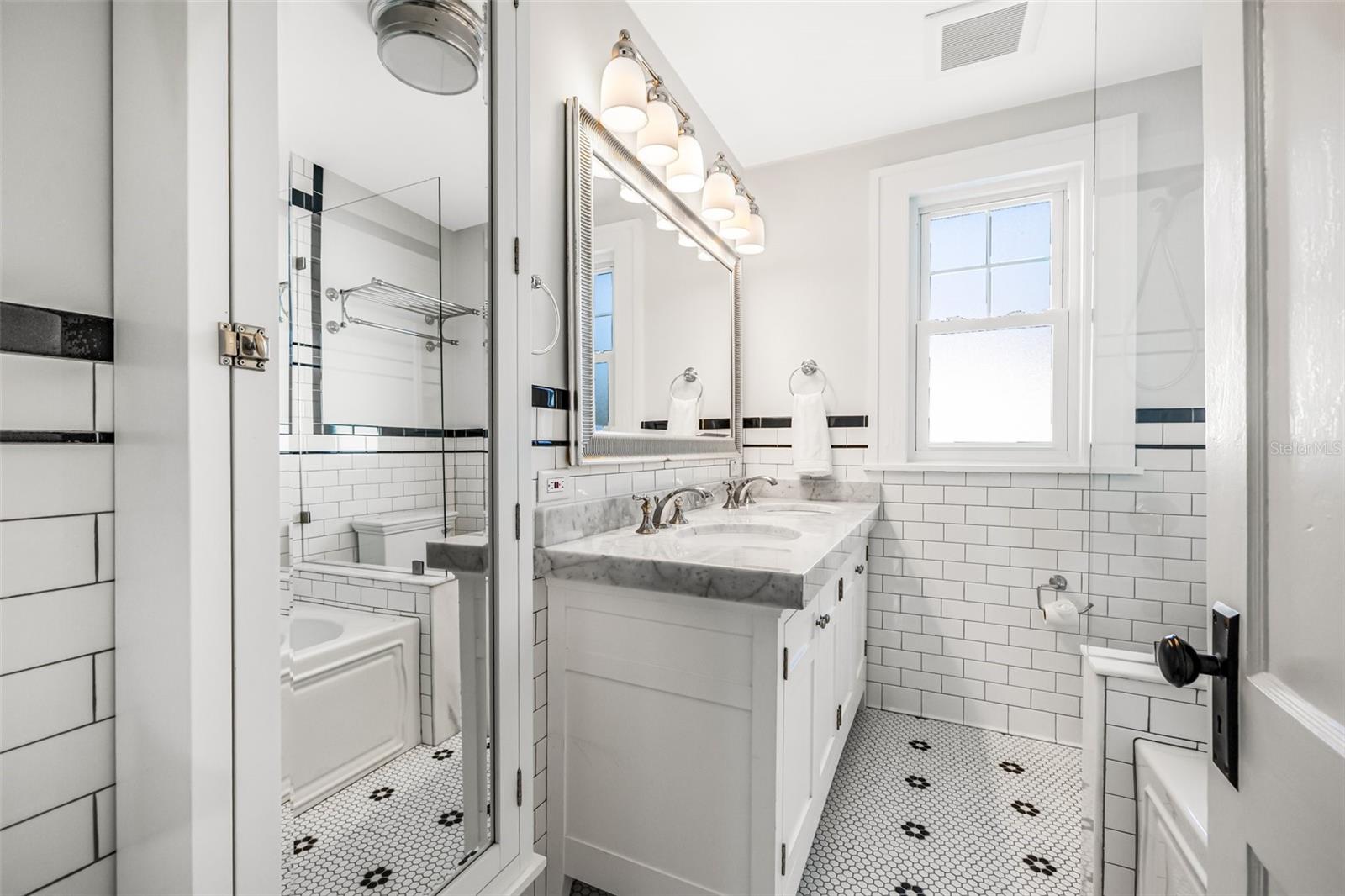 Have you ever dreamed of stepping inside the pages of Architectural Digest? Here is your chance to experience a truly exceptional opportunity. Welcome to 1505 Beach, a captivating pool home that exudes historic allure, gracefully positioned on a beautifully landscaped corner lot, offering ample privacy on one of the most iconic streets in highly sought-after Historic Old Northeast. From the moment you pass through the gates onto the meticulously maintained grounds, the home's timeless appeal is unmistakable. The privacy of the corner lot allows for an idyllic setting, complete with a tropical saltwater pool, lush gardens, dual porches adorned with designer tile, and enchanting outdoor retreats. This property seamlessly blends historic craftsmanship with contemporary luxury, creating an aura of exclusivity that sets it apart from anything else. Spanning 2,900 square feet, this two-story estate offers five bedrooms, four bathrooms, a main-floor ensuite and laundry room, plus a cozy den topped in seagrass wallpaper. Every inch of the home reflects an impeccable attention to detail, with coffered ceilings, expertly crafted trim work, and rich hardwood floors that flow seamlessly throughout the open-concept layout. The gourmet chef’s kitchen is a masterpiece, featuring herringbone wood floors, thick mitered-edge marble countertops, a marble counter splash, custom real-wood cabinetry, a dedicated beverage center, and a full suite of matching Viking luxury appliances—ensuring an unparalleled hosting experience. Upstairs, the spacious primary suite boasts a walk-in closet and a spa-like ensuite bathroom with dual marble vanities, a soaking tub, a separate shower, and elegant marble flooring. Two additional guest bedrooms, each with ample storage, share a beautifully appointed guest bath, also featuring thick mitered-edge marble countertops. This home is a masterclass in restoration, where no detail has been overlooked. Recent updates include hurricane-impact windows and doors, tasteful plantation shutters, two new HVAC systems (2024 & 2022) with updated ductwork, newer plumbing, a new vapor barrier, and updated electrical—ensuring comfort and efficiency for years to come. Additional exquisite touches include a newly renovated gas brick fireplace, Level-5 smooth texture walls, elegant French doors, and thoughtfully restored door hardware and light switches. Step outside to experience the pinnacle of indoor-outdoor living. The heart of this private oasis is a saltwater PebbleTec pool and a gas summer kitchen surrounded by Italian travertine, perfect for al fresco dining and entertaining. Above the spacious 2 car garage is a newly renovated and separately metered guest house. Your visitors may never leave the luxurious accommodations of this 400 square foot guest house which includes a full kitchen, bathroom, and new mini split AC. Further enhancing this remarkable home is a newer roof and a whole-house Generac gas generator, offering peace of mind. Located just a leisurely 10-minute stroll from vibrant downtown St. Petersburg and only one block from the serene Tampa Bay waterfront, parks, and trails, this home offers the perfect blend of historic charm, modern luxury, and an unbeatable location.