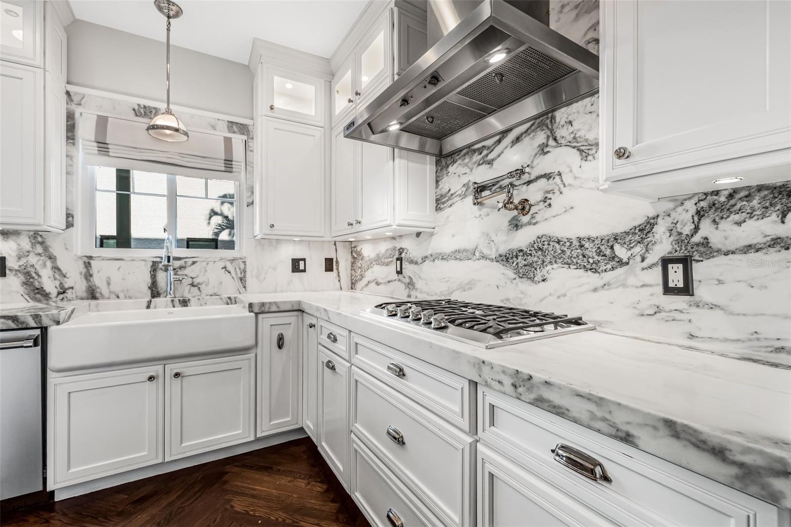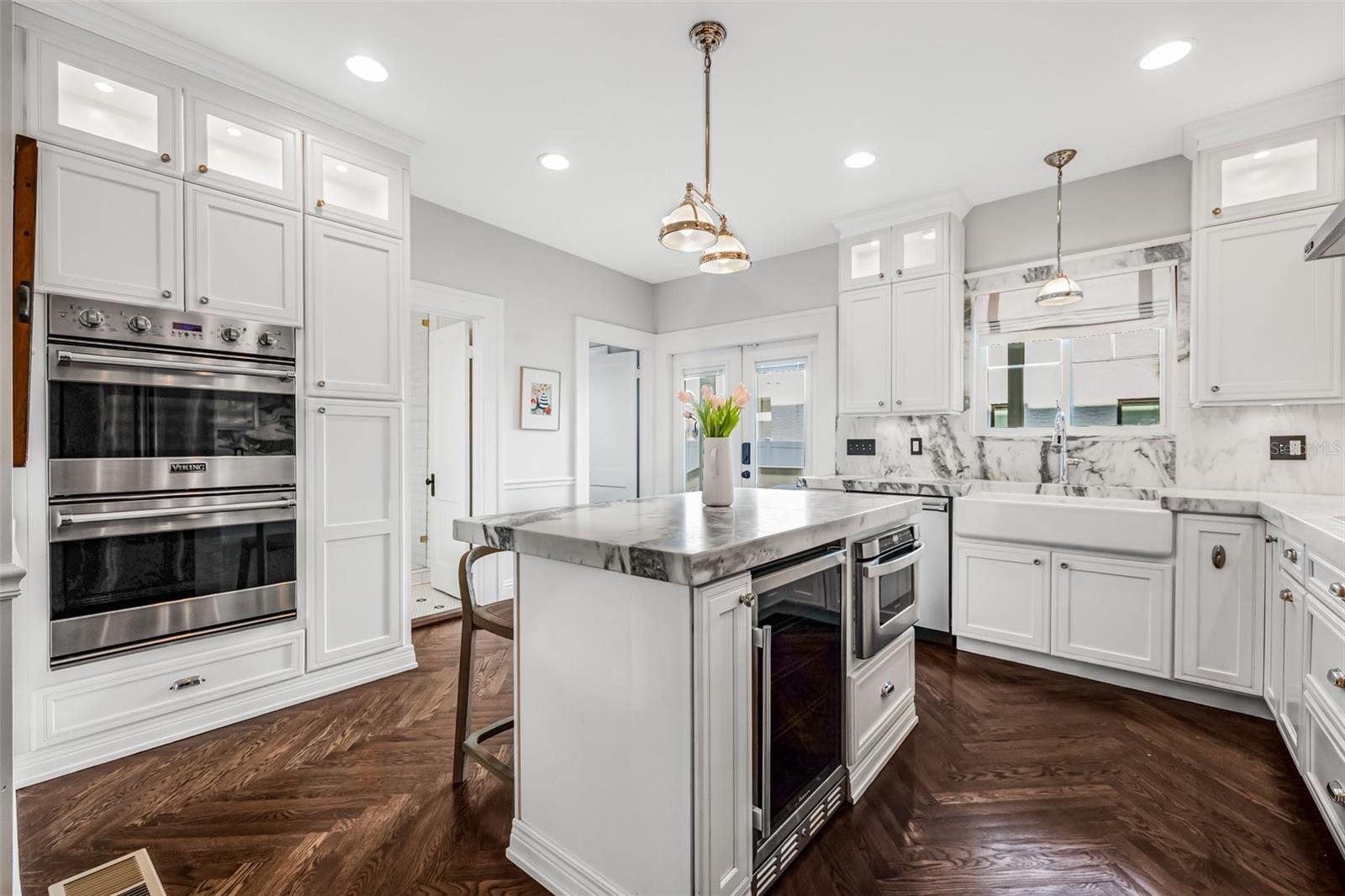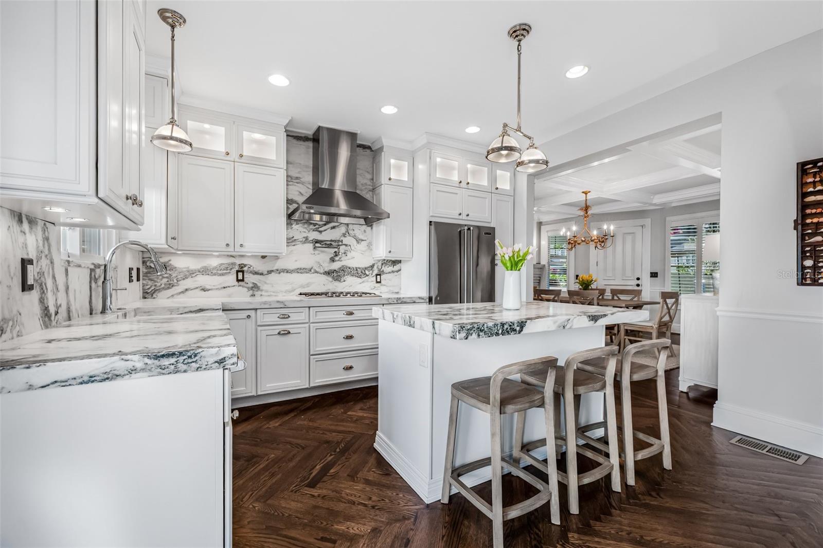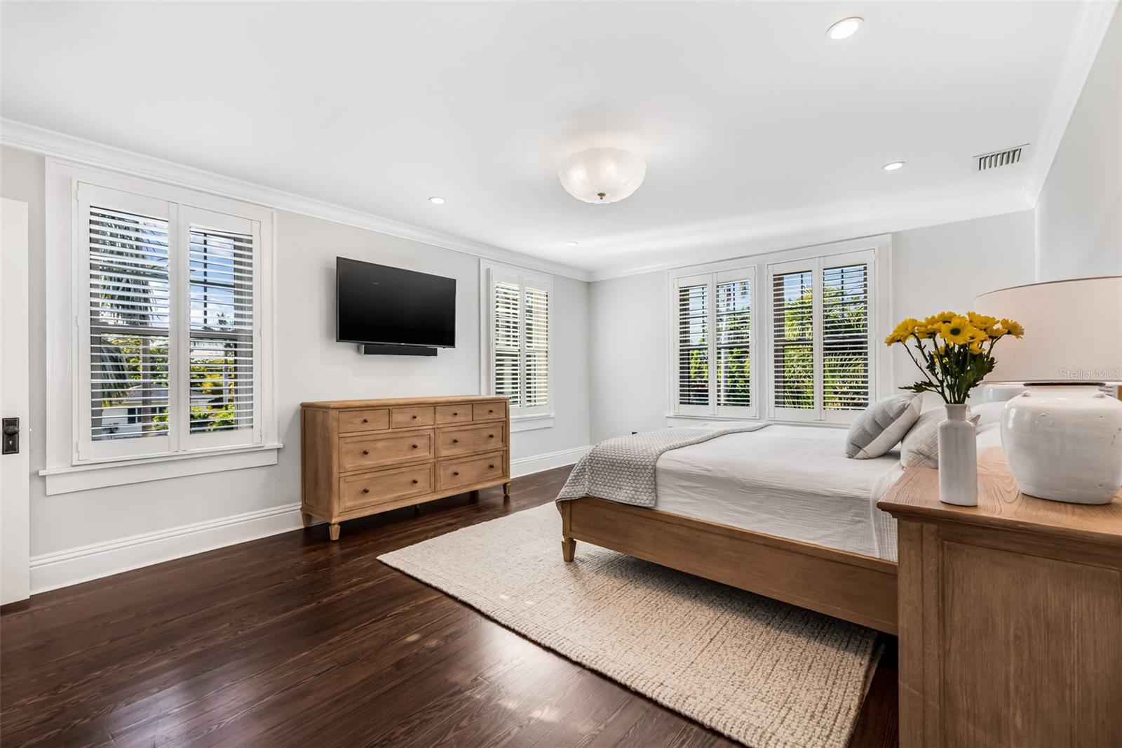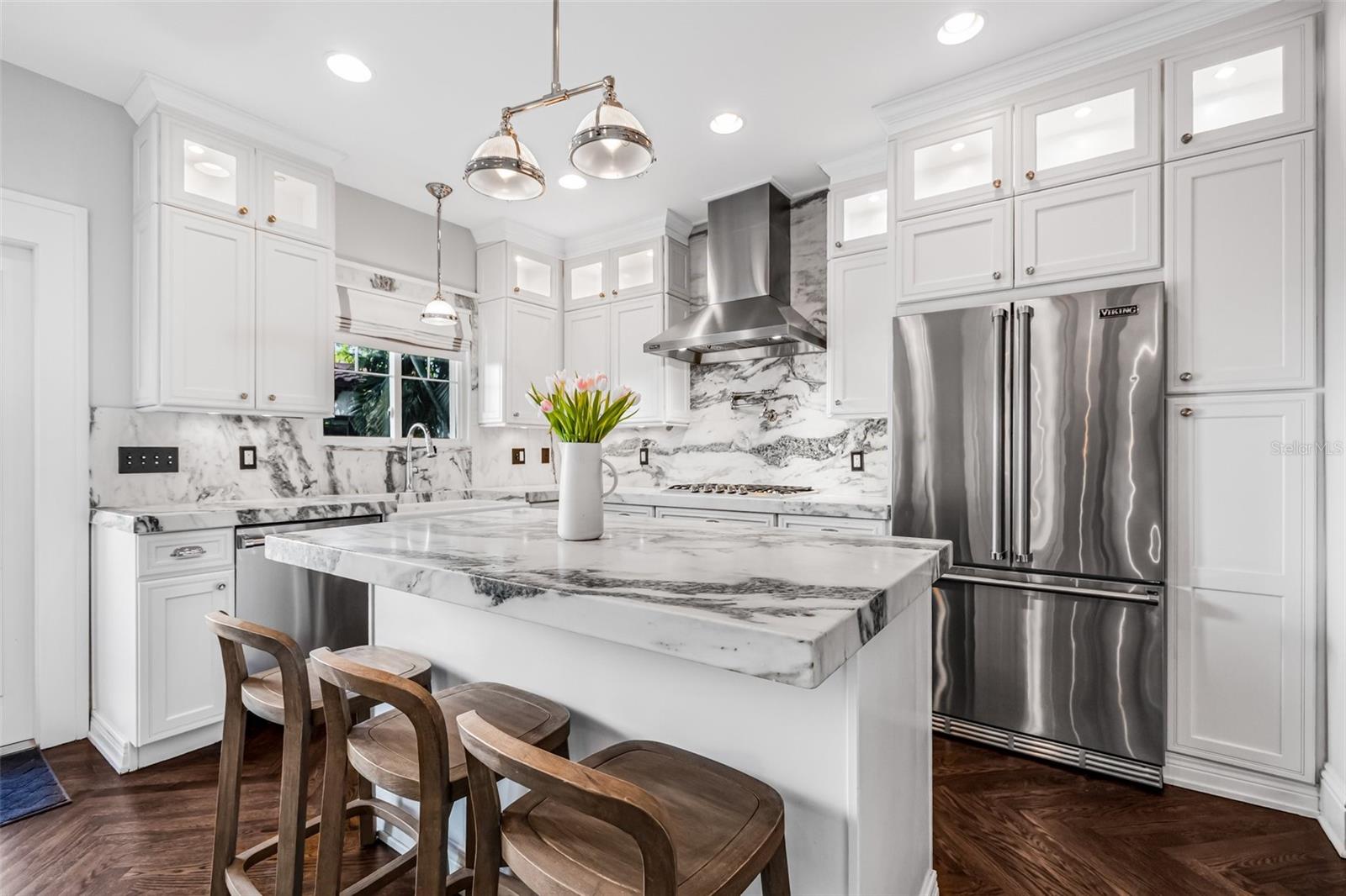 Have you ever dreamed of stepping inside the pages of Architectural Digest? Here is your chance to experience a truly exceptional opportunity. Welcome to 1505 Beach, a captivating pool home that exudes historic allure, gracefully positioned on a beautifully landscaped corner lot, offering ample privacy on one of the most iconic streets in highly sought-after Historic Old Northeast. From the moment you pass through the gates onto the meticulously maintained grounds, the home's timeless appeal is unmistakable. The privacy of the corner lot allows for an idyllic setting, complete with a tropical saltwater pool, lush gardens, dual porches adorned with designer tile, and enchanting outdoor retreats. This property seamlessly blends historic craftsmanship with contemporary luxury, creating an aura of exclusivity that sets it apart from anything else. Spanning 2,900 square feet, this two-story estate offers five bedrooms, four bathrooms, a main-floor ensuite and laundry room, plus a cozy den topped in seagrass wallpaper. Every inch of the home reflects an impeccable attention to detail, with coffered ceilings, expertly crafted trim work, and rich hardwood floors that flow seamlessly throughout the open-concept layout. The gourmet chef’s kitchen is a masterpiece, featuring herringbone wood floors, thick mitered-edge marble countertops, a marble counter splash, custom real-wood cabinetry, a dedicated beverage center, and a full suite of matching Viking luxury appliances—ensuring an unparalleled hosting experience. Upstairs, the spacious primary suite boasts a walk-in closet and a spa-like ensuite bathroom with dual marble vanities, a soaking tub, a separate shower, and elegant marble flooring. Two additional guest bedrooms, each with ample storage, share a beautifully appointed guest bath, also featuring thick mitered-edge marble countertops. This home is a masterclass in restoration, where no detail has been overlooked. Recent updates include hurricane-impact windows and doors, tasteful plantation shutters, two new HVAC systems (2024 & 2022) with updated ductwork, newer plumbing, a new vapor barrier, and updated electrical—ensuring comfort and efficiency for years to come. Additional exquisite touches include a newly renovated gas brick fireplace, Level-5 smooth texture walls, elegant French doors, and thoughtfully restored door hardware and light switches. Step outside to experience the pinnacle of indoor-outdoor living. The heart of this private oasis is a saltwater PebbleTec pool and a gas summer kitchen surrounded by Italian travertine, perfect for al fresco dining and entertaining. Above the spacious 2 car garage is a newly renovated and separately metered guest house. Your visitors may never leave the luxurious accommodations of this 400 square foot guest house which includes a full kitchen, bathroom, and new mini split AC. Further enhancing this remarkable home is a newer roof and a whole-house Generac gas generator, offering peace of mind. Located just a leisurely 10-minute stroll from vibrant downtown St. Petersburg and only one block from the serene Tampa Bay waterfront, parks, and trails, this home offers the perfect blend of historic charm, modern luxury, and an unbeatable location.