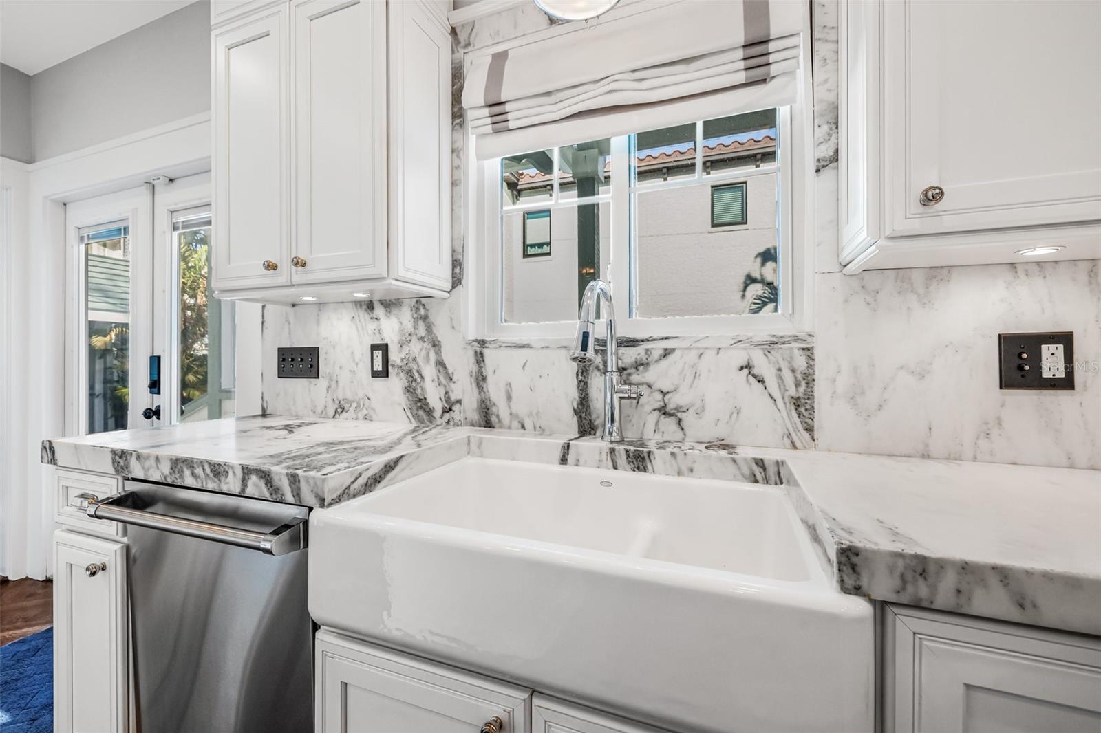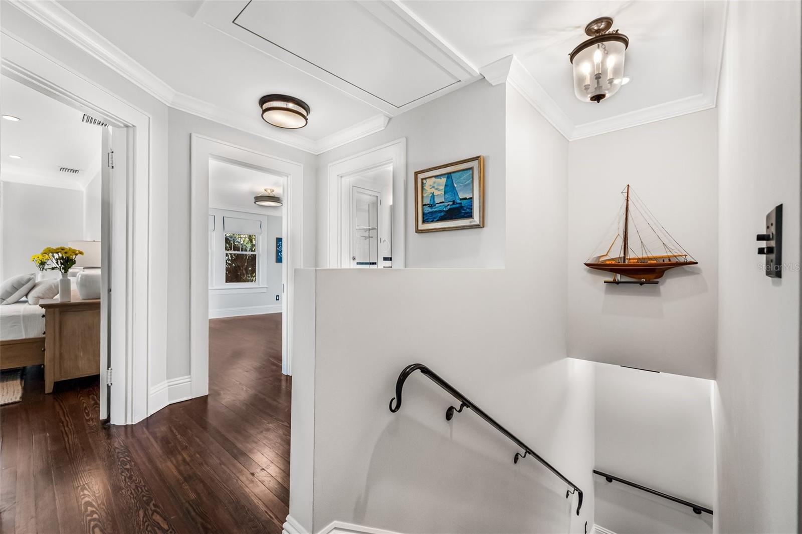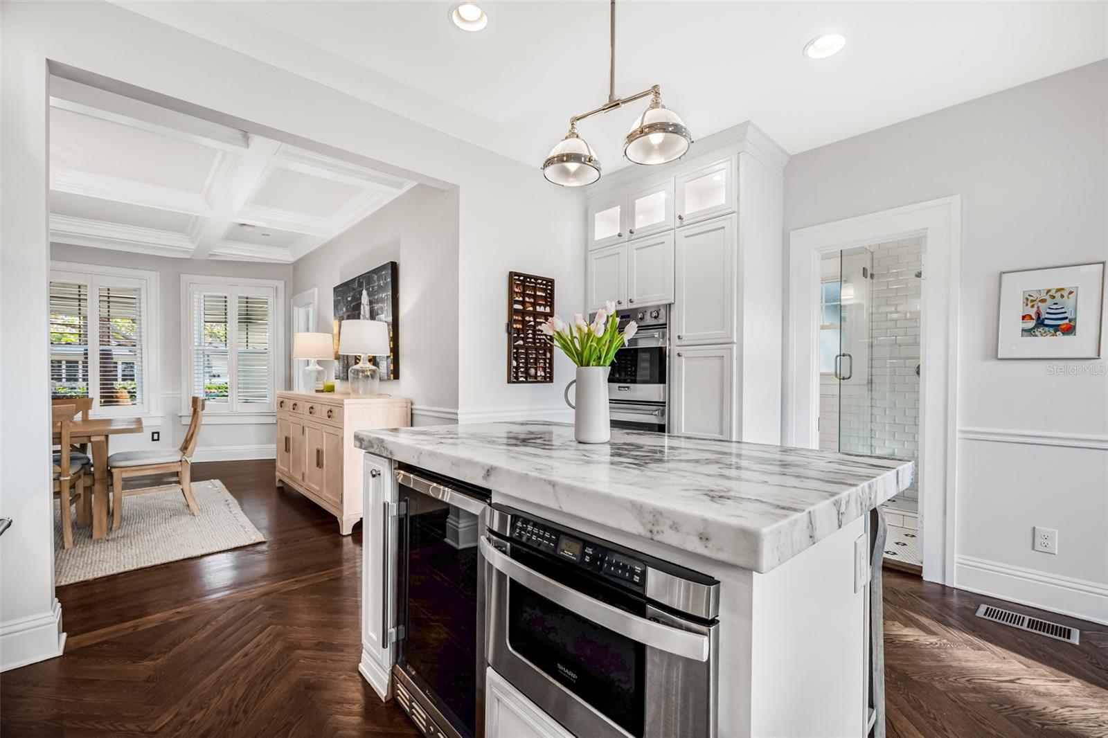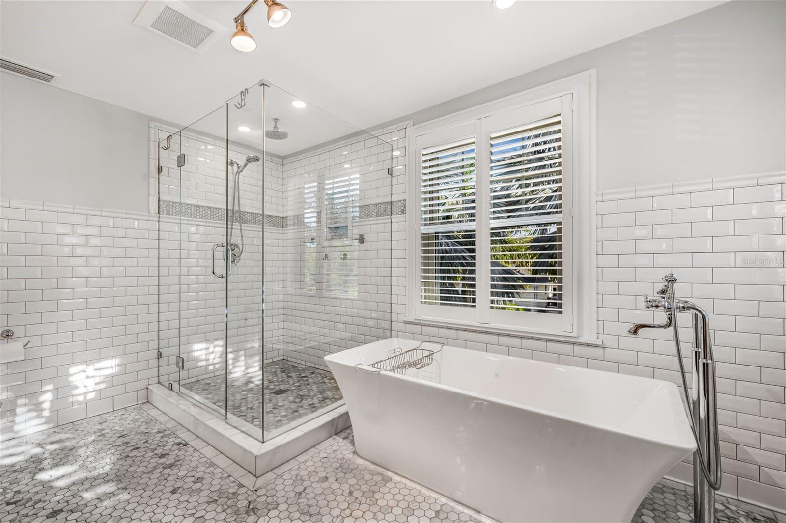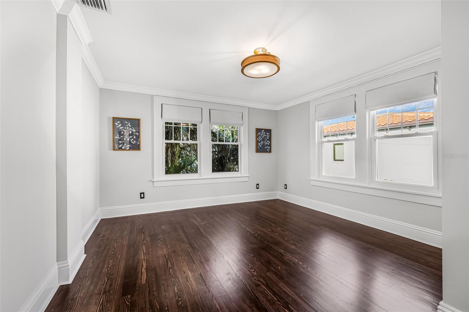 Have you ever dreamed of stepping inside the pages of Architectural Digest? Here is your chance to experience a truly exceptional opportunity. Welcome to 1505 Beach, a captivating pool home that exudes historic allure, gracefully positioned on a beautifully landscaped corner lot, offering ample privacy on one of the most iconic streets in highly sought-after Historic Old Northeast. From the moment you pass through the gates onto the meticulously maintained grounds, the home's timeless appeal is unmistakable. The privacy of the corner lot allows for an idyllic setting, complete with a tropical saltwater pool, lush gardens, dual porches adorned with designer tile, and enchanting outdoor retreats. This property seamlessly blends historic craftsmanship with contemporary luxury, creating an aura of exclusivity that sets it apart from anything else. Spanning 2,900 square feet, this two-story estate offers five bedrooms, four bathrooms, a main-floor ensuite and laundry room, plus a cozy den topped in seagrass wallpaper. Every inch of the home reflects an impeccable attention to detail, with coffered ceilings, expertly crafted trim work, and rich hardwood floors that flow seamlessly throughout the open-concept layout. The gourmet chef’s kitchen is a masterpiece, featuring herringbone wood floors, thick mitered-edge marble countertops, a marble counter splash, custom real-wood cabinetry, a dedicated beverage center, and a full suite of matching Viking luxury appliances—ensuring an unparalleled hosting experience. Upstairs, the spacious primary suite boasts a walk-in closet and a spa-like ensuite bathroom with dual marble vanities, a soaking tub, a separate shower, and elegant marble flooring. Two additional guest bedrooms, each with ample storage, share a beautifully appointed guest bath, also featuring thick mitered-edge marble countertops. This home is a masterclass in restoration, where no detail has been overlooked. Recent updates include hurricane-impact windows and doors, tasteful plantation shutters, two new HVAC systems (2024 & 2022) with updated ductwork, newer plumbing, a new vapor barrier, and updated electrical—ensuring comfort and efficiency for years to come. Additional exquisite touches include a newly renovated gas brick fireplace, Level-5 smooth texture walls, elegant French doors, and thoughtfully restored door hardware and light switches. Step outside to experience the pinnacle of indoor-outdoor living. The heart of this private oasis is a saltwater PebbleTec pool and a gas summer kitchen surrounded by Italian travertine, perfect for al fresco dining and entertaining. Above the spacious 2 car garage is a newly renovated and separately metered guest house. Your visitors may never leave the luxurious accommodations of this 400 square foot guest house which includes a full kitchen, bathroom, and new mini split AC. Further enhancing this remarkable home is a newer roof and a whole-house Generac gas generator, offering peace of mind. Located just a leisurely 10-minute stroll from vibrant downtown St. Petersburg and only one block from the serene Tampa Bay waterfront, parks, and trails, this home offers the perfect blend of historic charm, modern luxury, and an unbeatable location.