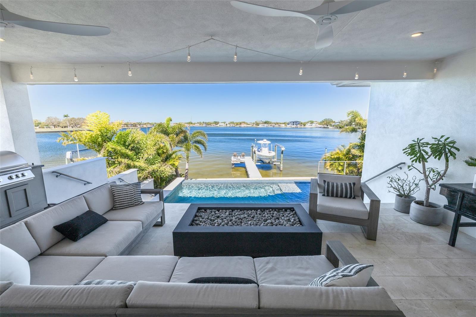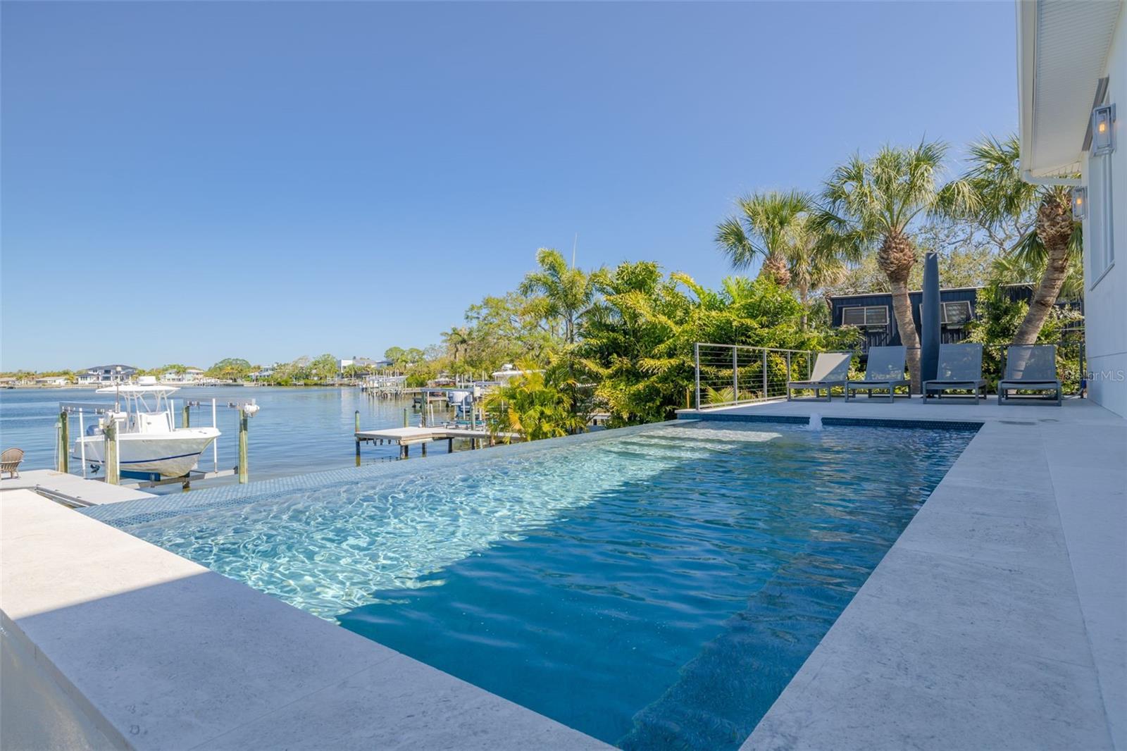 Exquisite Waterfront Oasis on Smacks Bayou! Indulge in the pinnacle of Florida waterfront living with this breathtaking estate, offering expansive, unobstructed views of Smacks Bayou. Built in 2022 with elevated construction, this home provides peace of mind, having remained untouched by storms while embracing the beauty of coastal living. Spanning approximately 3,094 square feet, this architectural masterpiece boasts 3 spacious bedrooms, 3 full bathrooms, and 1 half bath, all meticulously designed to blend modern elegance with timeless Moroccan-inspired details. A six-car garage, equipped with five mini-splits and two car lifts, ensures ample space for your prized collection. Effortless luxury begins the moment you arrive. Park in your expansive garage and take the private elevator directly to the main level—an unparalleled convenience for groceries, packages, and daily living. The chef’s kitchen is a culinary dream, featuring top-of-the-line JennAir appliances, including a six-burner gas range, built-in refrigerator and dishwasher, and an exquisite waterfall island adorned with marble countertops. The interiors exude warmth and sophistication, with hand-selected fixtures from Anthropologie, 8-foot solid core doors, and a seamless open-concept floor plan that showcases panoramic waterfront views from the moment you enter. The primary suite is a sanctuary, complete with a spa-like bath featuring a curbless shower, Moroccan-inspired Zellige Clay Tile walls, and a luxurious soaking tub beneath a cascading rain shower head. Custom Arhaus pendant lighting adorns the bedside, while a sprawling walk-in closet with a built-in island offers space for every wardrobe essential. Each guest ensuite is a private retreat, featuring marble tile, marble countertops, and meticulous craftsmanship. The home’s seamless indoor-outdoor flow is enhanced by Origin bifold doors, allowing you to transition effortlessly to the covered terrace. Here, you’ll find a Sekas custom infinity pool, a natural gas firepit and grill, and a fully equipped outdoor kitchen with an ice maker, sink, and refrigerator—perfect for entertaining against a stunning waterfront backdrop. The newly constructed seawall and composite dock are designed for effortless boating, featuring a 10,000 lb boat lift. Immerse yourself in serene waterfront living, from watching dolphins glide through the bayou to setting sail from your private dock. Located just minutes from Downtown St. Petersburg, the Vinoy Golf Club, world-class shopping, museums, and fine dining, this residence is more than a home—it’s an invitation to an unparalleled lifestyle. Don’t miss the opportunity to own this waterfront masterpiece. Call today to experience its grandeur firsthand! **Metal Roof** Impact Windows and Doors** Whole Home Generator** Elevated Construction**