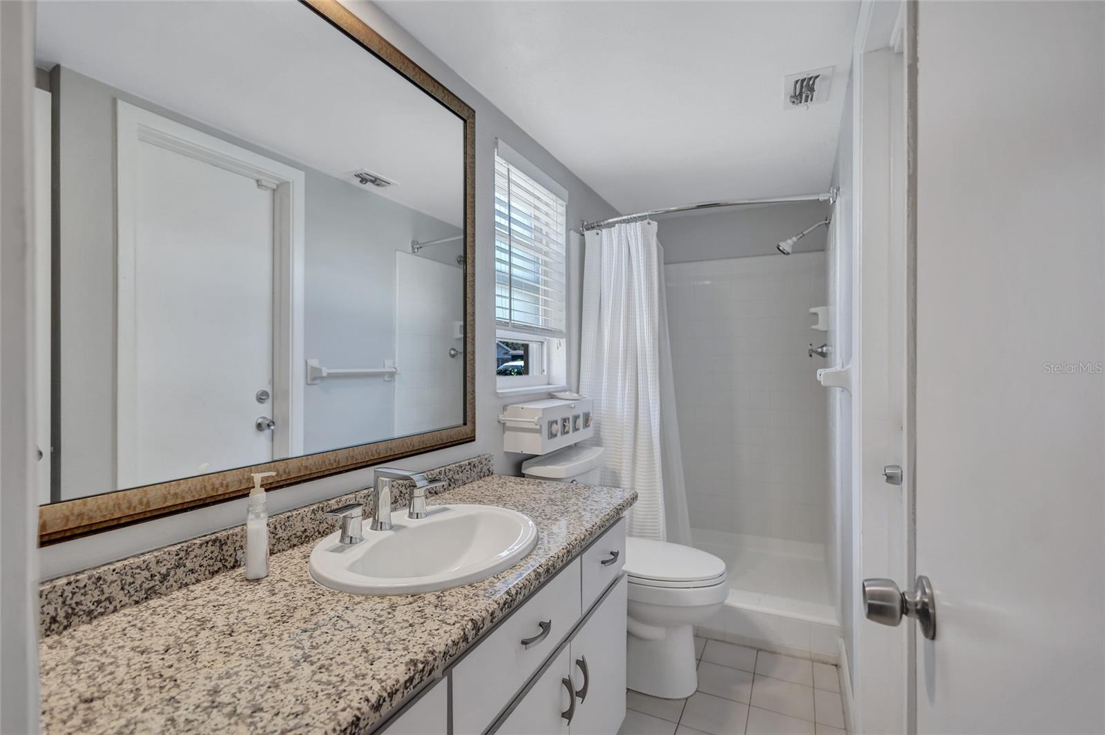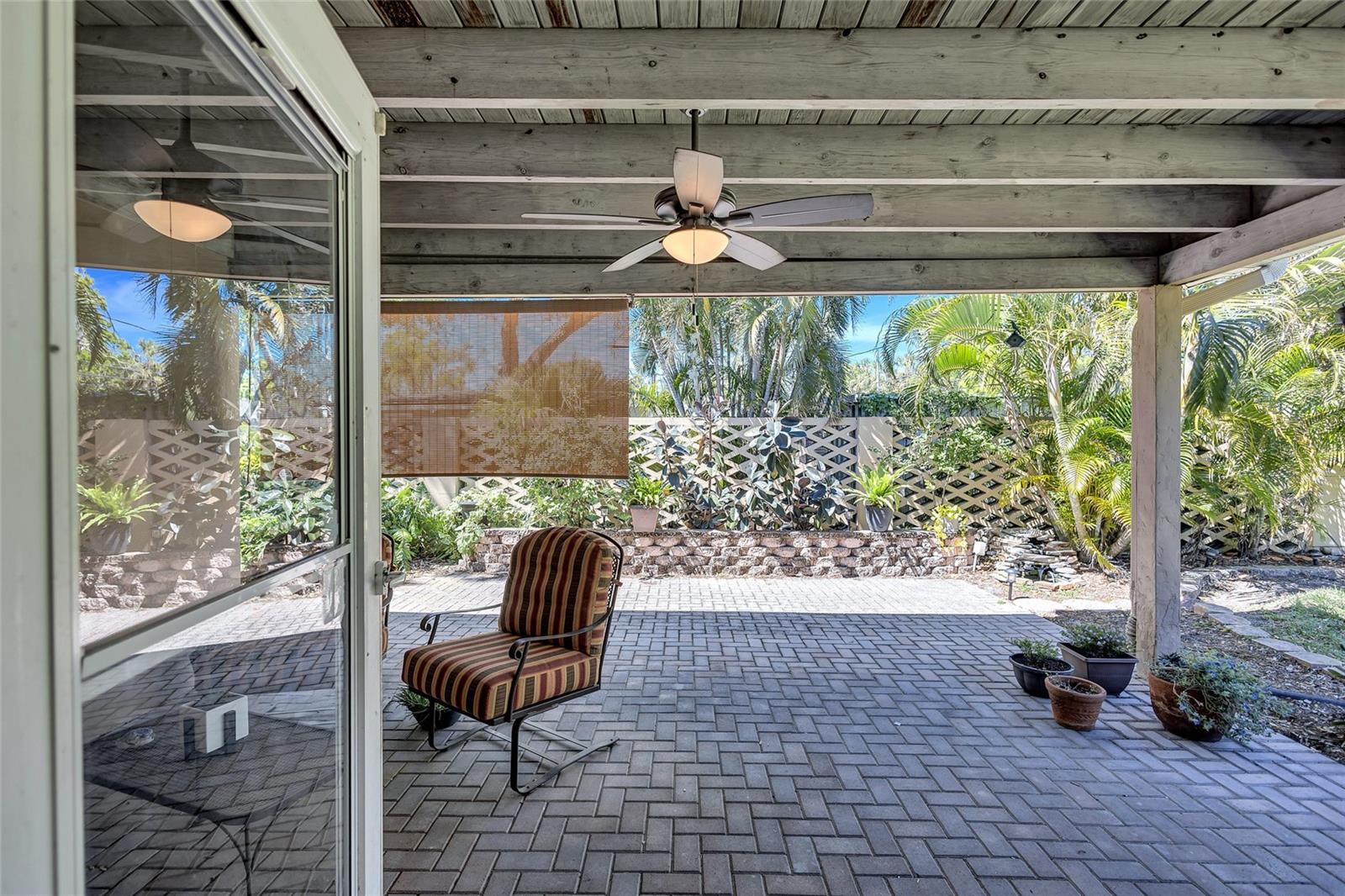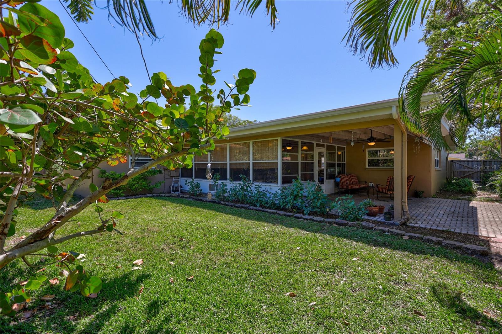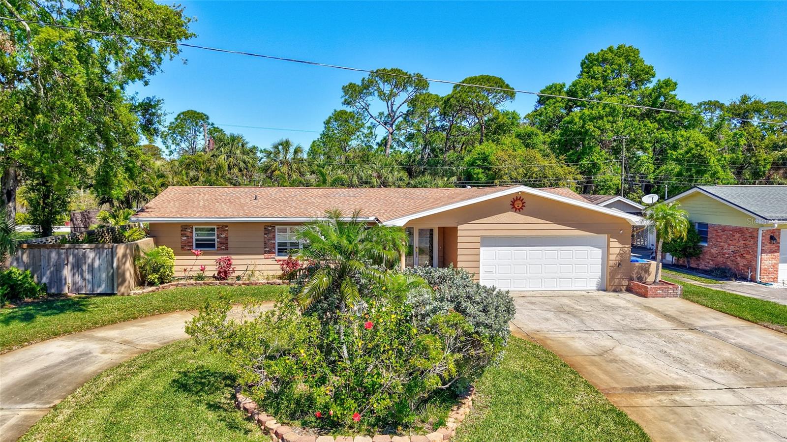 Welcome to the area of Abercrombie Park in Jungle Terrace and this 4BR/3BA block home on a quiet dead-end street. Enter this home through the beautiful stained-glass door to the open living/dining room combo with ceramic tile and plantation shutters. The updated kitchen features stainless steel appliances, granite counter tops with tile backsplash, and a convenient breakfast bar that opens on to an additional family room for entertaining. The Primary Suite is 12X15 and features a fully remodeled bathroom with dual sinks in the new vanity with granite countertop. The 2nd Bedroom can also be used as a Primary Bedroom with en-suite, full bath and a door leading to the laundry room. Additional Bedrooms are spacious with terrazzo floors and built-in closets. Additionally, there’s a 400-square-foot cooled Florida room and covered Lanai just off the kitchen looking out onto the tranquil green backyard with a calming fountain and room for a pool. The gate at the rear of the backyard leads to Abercrombie Park for the hiking trails, dog-walking, picnics and sunsets on Boca Ciega Bay. In the front of the home, there is a large circular driveway, with abundant space for parking, plus additional space to park a boat or RV. The lush landscape is maintained by a well-fed irrigation system, ensuring your property looks fantastic year-round. This home has been perfectly maintained, with a new Roof in 2025, a new HVAC system in 2024 and new Electric panel in 2024. Located just minutes to the beaches, dining, shopping and more. Also, in a X500 flood zone for peace of mind.