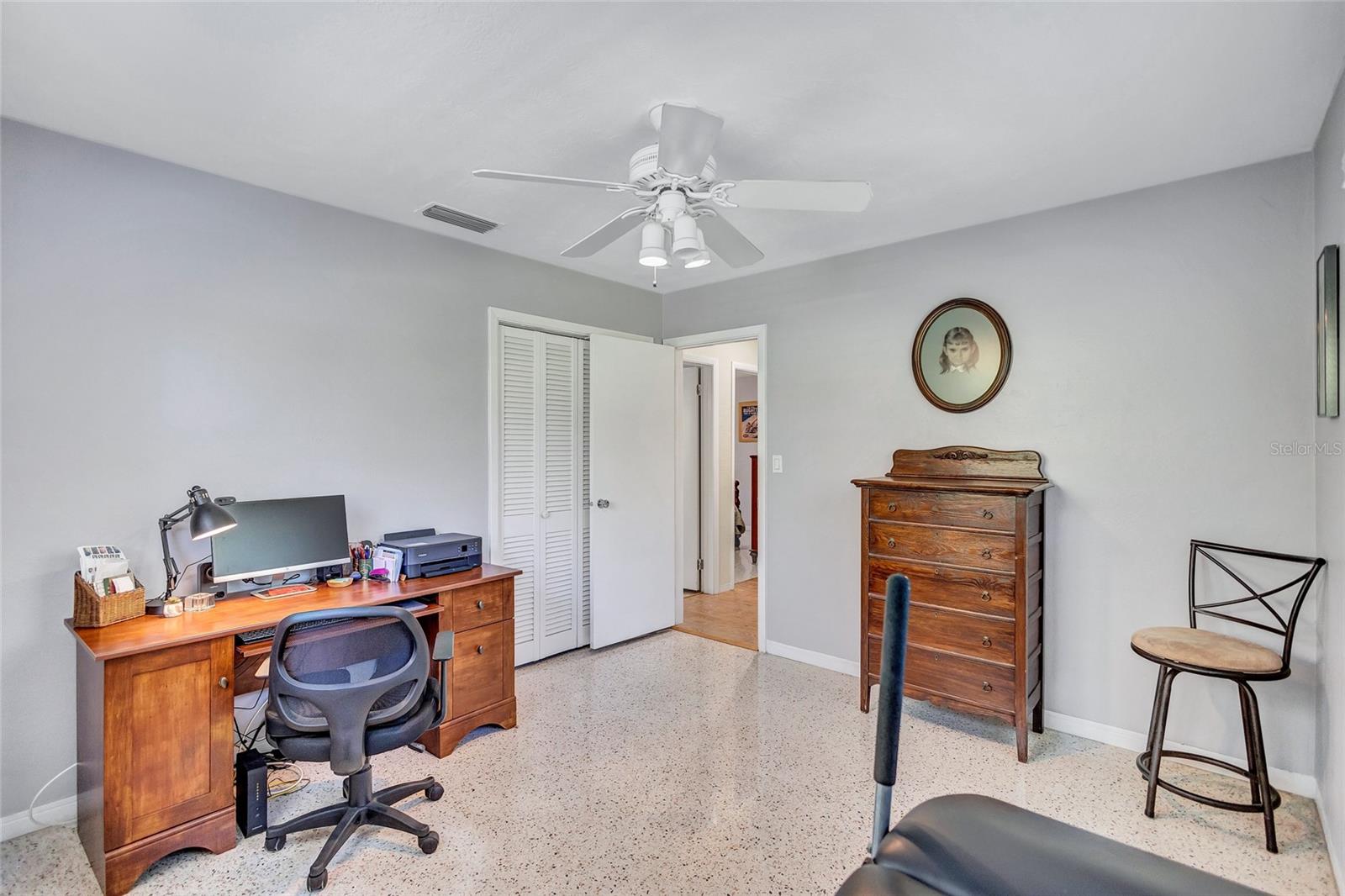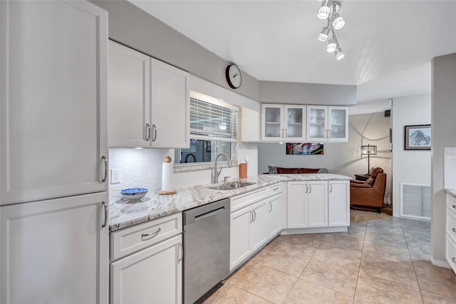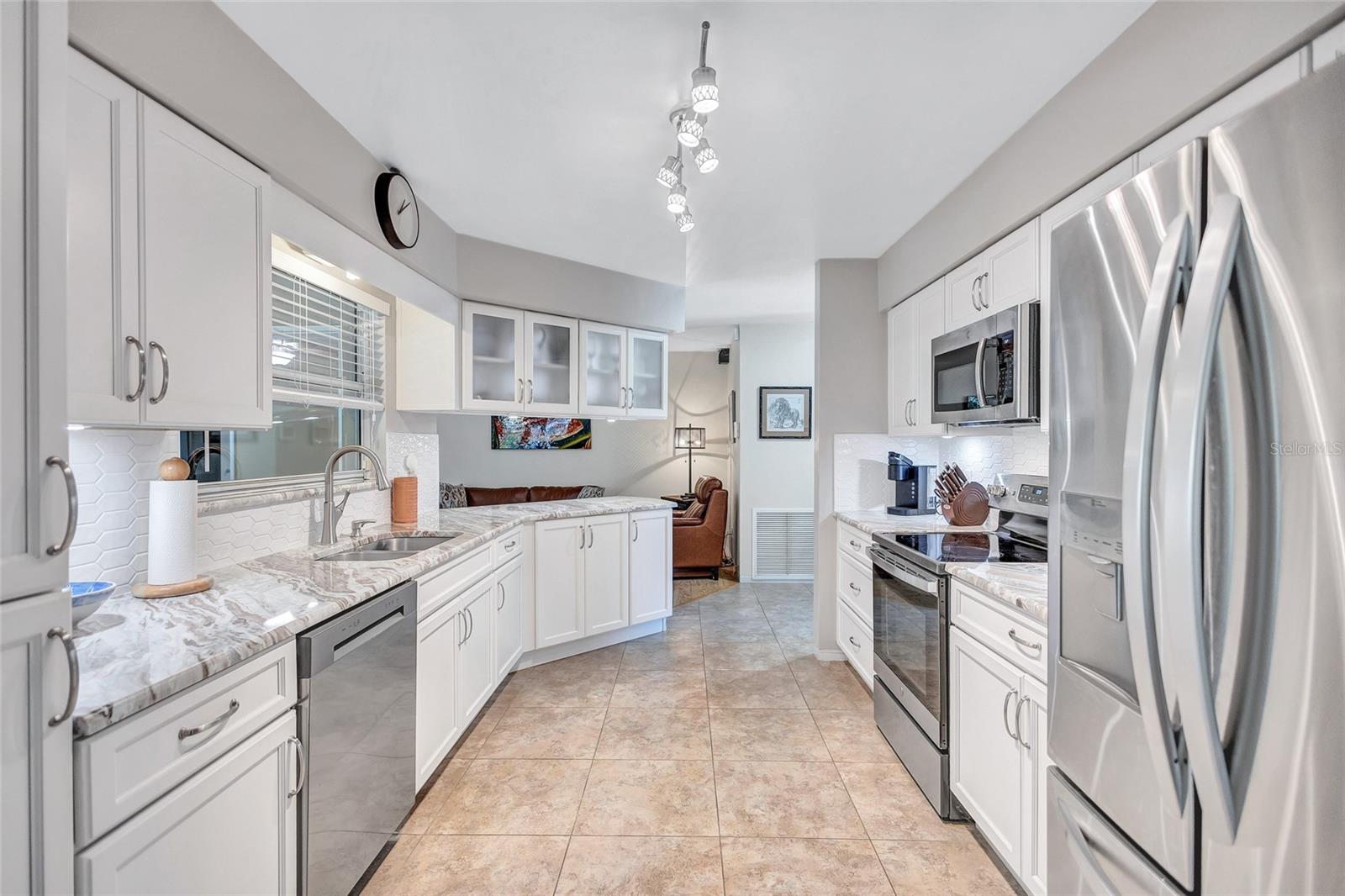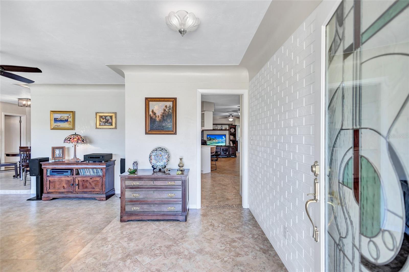 Welcome to the area of Abercrombie Park in Jungle Terrace and this 4BR/3BA block home on a quiet dead-end street. Enter this home through the beautiful stained-glass door to the open living/dining room combo with ceramic tile and plantation shutters. The updated kitchen features stainless steel appliances, granite counter tops with tile backsplash, and a convenient breakfast bar that opens on to an additional family room for entertaining. The Primary Suite is 12X15 and features a fully remodeled bathroom with dual sinks in the new vanity with granite countertop. The 2nd Bedroom can also be used as a Primary Bedroom with en-suite, full bath and a door leading to the laundry room. Additional Bedrooms are spacious with terrazzo floors and built-in closets. Additionally, there’s a 400-square-foot cooled Florida room and covered Lanai just off the kitchen looking out onto the tranquil green backyard with a calming fountain and room for a pool. The gate at the rear of the backyard leads to Abercrombie Park for the hiking trails, dog-walking, picnics and sunsets on Boca Ciega Bay. In the front of the home, there is a large circular driveway, with abundant space for parking, plus additional space to park a boat or RV. The lush landscape is maintained by a well-fed irrigation system, ensuring your property looks fantastic year-round. This home has been perfectly maintained, with a new Roof in 2025, a new HVAC system in 2024 and new Electric panel in 2024. Located just minutes to the beaches, dining, shopping and more. Also, in a X500 flood zone for peace of mind.