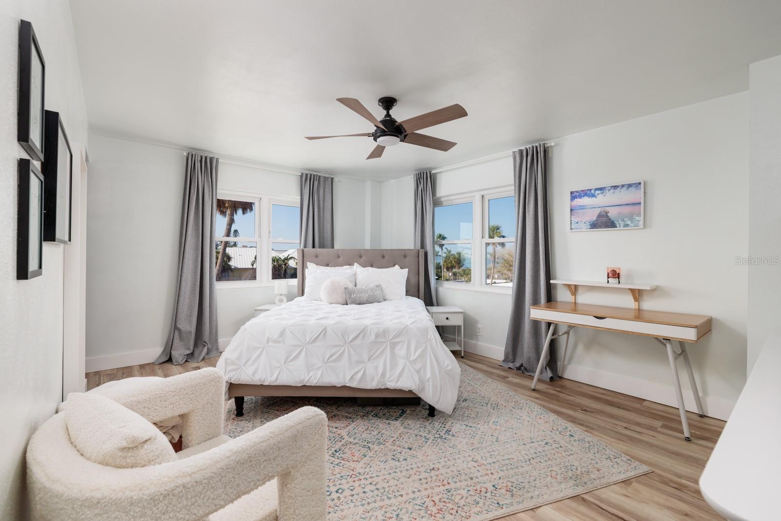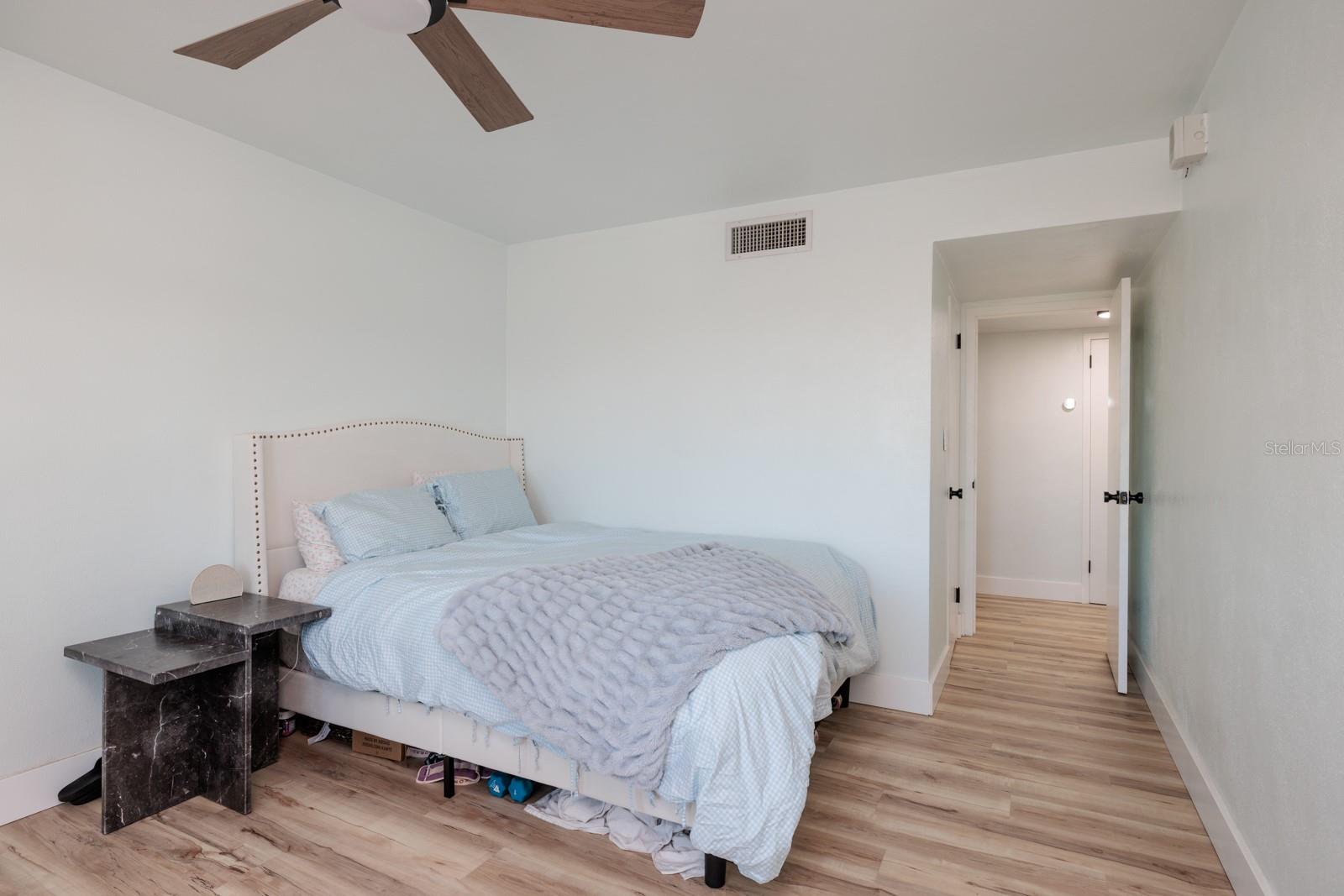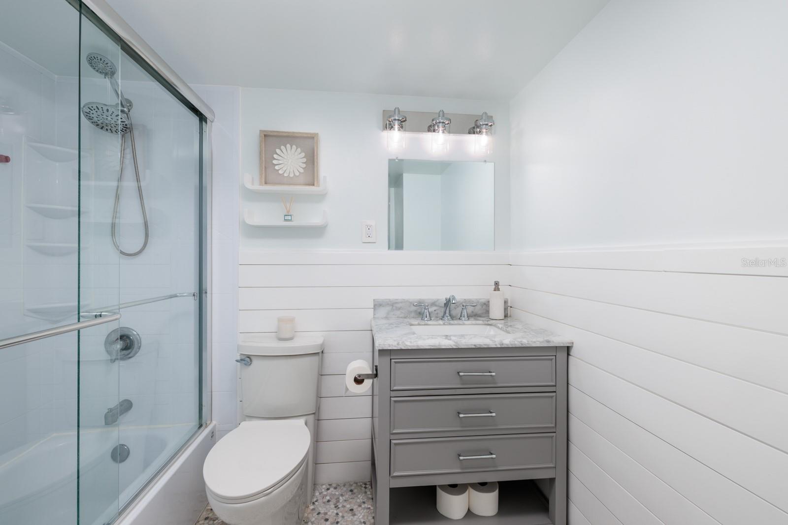 Welcome to an exceptional two-bedroom, two-bathroom condominium nestled within the esteemed waterfront community of Sky Harbour, located at 7200 Sunshine Skyway Lane South in St. Petersburg, Florida. This meticulously updated residence seamlessly blends modern luxury with unparalleled comfort. Spanning 1,400 square feet, the condo showcases brand new hurricane-impact windows and a recently installed air conditioning system, enhanced by a Google Nest thermostat for optimal climate control. The state-of-the-art kitchen, remodeled in 2023, is a culinary enthusiast's dream, featuring LG Wi-Fi-enabled appliances—including a stove, refrigerator, microwave, and dishwasher—complemented by soft-close cabinetry, a central island, and gleaming quartz countertops. Throughout the residence, luxury vinyl flooring adds a touch of sophistication, while both bathrooms have been elegantly redesigned with contemporary tile work, modern vanities, and updated lighting fixtures. The master suite offers a spacious walk-in closet with custom inserts, catering to extensive wardrobe needs. The living area is accentuated by a shiplap entertainment center with concealed storage, and the entire unit has been freshly painted, exuding a bright and inviting ambiance. Sky Harbour elevates the living experience with a suite of resort-style amenities, including a waterfront heated pool equipped with outdoor changing areas, tiki huts, barbecue grills, and a fishing pier complete with a cleaning station. Residents can also enjoy a kayak launch, dedicated storage for kayaks and bicycles, an on-site fitness center, a hobby workshop, a game room, and a versatile conference or party room. Additional conveniences encompass a shuffleboard court, laundry facilities, and extra storage options. Ideally situated just off the Tampa Bay waterfront, Sky Harbour offers effortless access to downtown St. Petersburg, renowned beaches, diverse shopping venues, and an array of dining establishments. Proximity to major highways ensures seamless commutes to surrounding locales. Experience the epitome of resort-style living in this beautifully updated Sky Harbour condo. Schedule your private tour today to explore the exceptional features and lifestyle this unit and community have to offer.