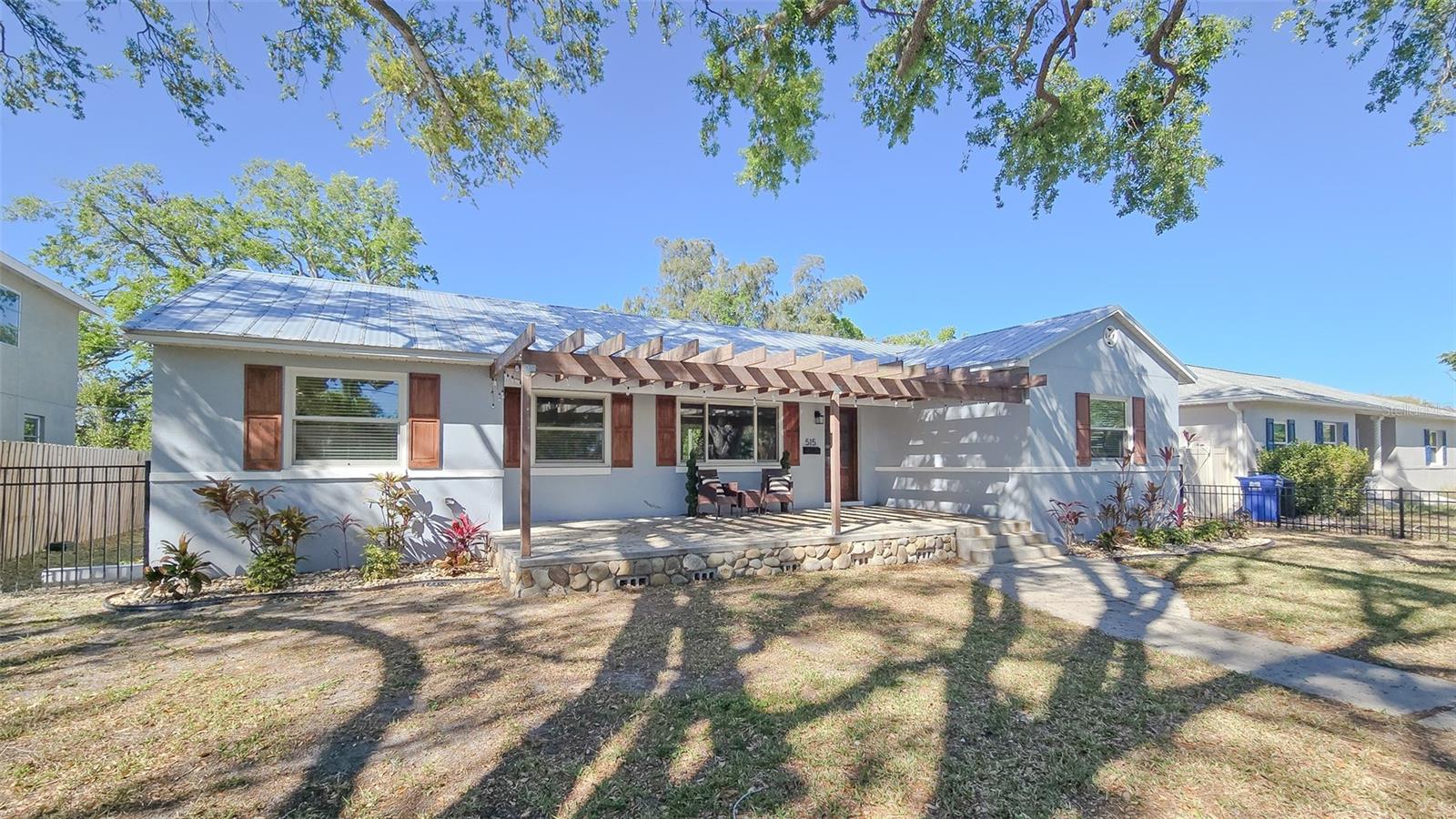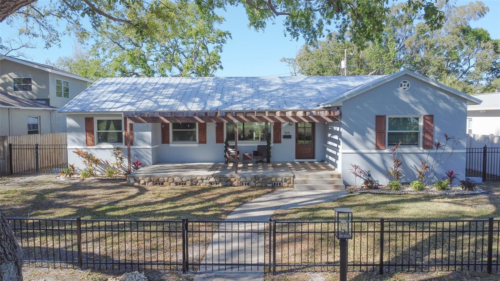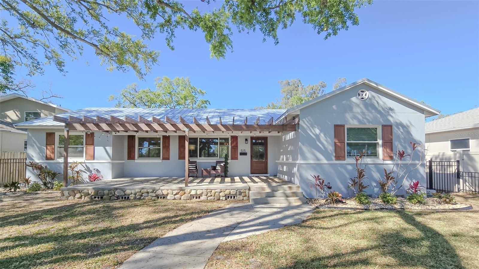 What if you could have a gorgeous golf course view right from your front window? Or be steps from a waterfront park? Then this is the bungalow for you, in the best location. Welcome to 515 34th Ave NE in St Petersburg! This three-bedroom, two-bath home is the quintessential Florida bungalow, with the ideal combination of 1950s charm and modern amenities. From the oversized front porch, gated front yard and mature trees and landscaping, there is so much curb appeal. With alley access, lots of green space and two-car covered parking, this home has it all. Step inside to find a fully renovated interior with an open-concept living and dining room. Both rooms are spacious and have tons of natural light pouring in from the large windows and sliders. The kitchen is well appointed with stainless steel appliances, beautiful wood cabinets and granite countertops as well. It even features an eat-in breakfast nook that could also be used as a gathering room or extension of the kitchen. This home offers a split floor plan with an oversized primary bedroom. Its en-suite bath is gorgeously updated with large vanity, walk-in shower and walk-in closet with built-ins. On the other side of the house, the two guest bedrooms are generously sized. And the guest bath is equally beautiful with a huge free-standing tub, separate tiled shower and accented color cabinets for extra storage. The home even features a whole-house water softener. The front patio is the space to sit out and watch the golfers on a beautiful day. The screened-in back patio is just as big and provides another great space for entertaining with sliders off the dining room so you can easily flow from indoor to outdoor living. Take a walk down the block and enjoy the benefits of Waterfront living with quick access to Crisp Park with a playground and public boat ramp. You’ll be in the heart of it all, minutes from local shops and restaurants along 4th Street and a new Whole Foods right down the street. Downtown St Pete is a short car ride away or take a bike down the Pinellas trail along 1st Street and you’ve got endless options to fill your day or night in this great city. Don’t miss your opportunity to start living your dream Florida lifestyle today!