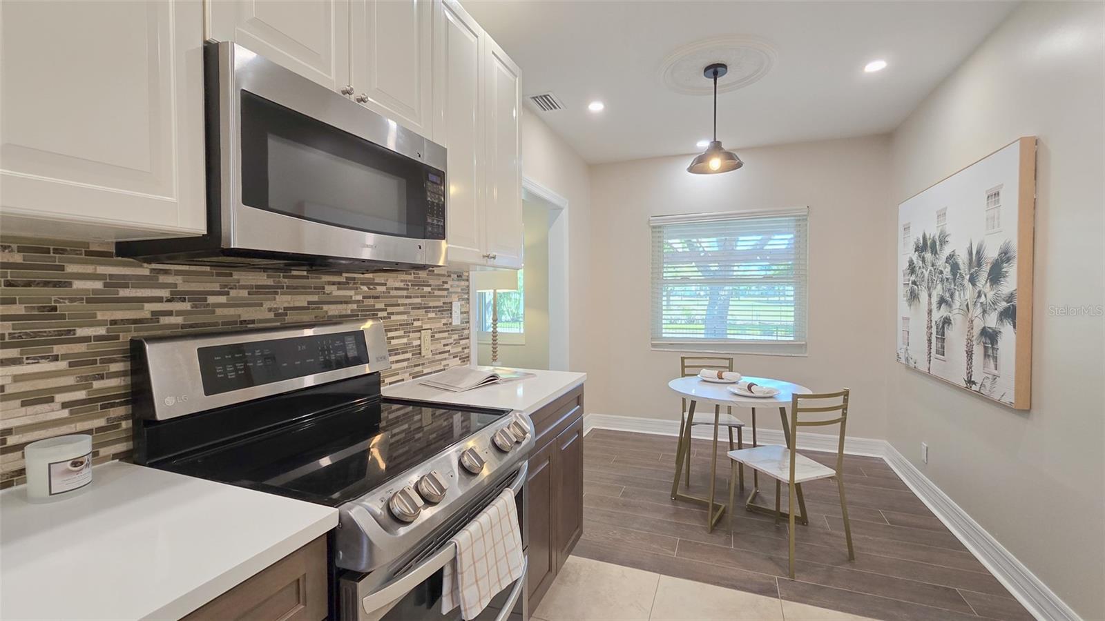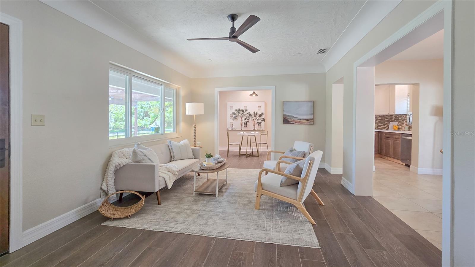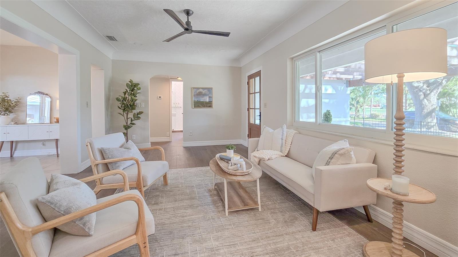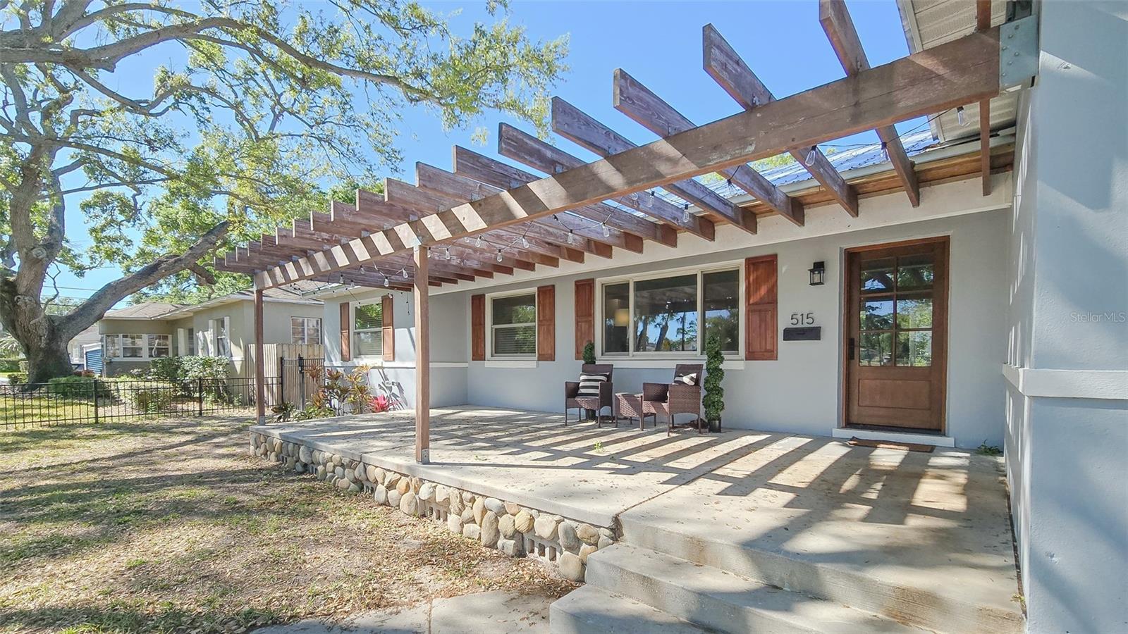 What if you could have a gorgeous golf course view right from your front window? Or be steps from a waterfront park? Then this is the bungalow for you, in the best location. Welcome to 515 34th Ave NE in St Petersburg! This three-bedroom, two-bath home is the quintessential Florida bungalow, with the ideal combination of 1950s charm and modern amenities. From the oversized front porch, gated front yard and mature trees and landscaping, there is so much curb appeal. With alley access, lots of green space and two-car covered parking, this home has it all. Step inside to find a fully renovated interior with an open-concept living and dining room. Both rooms are spacious and have tons of natural light pouring in from the large windows and sliders. The kitchen is well appointed with stainless steel appliances, beautiful wood cabinets and granite countertops as well. It even features an eat-in breakfast nook that could also be used as a gathering room or extension of the kitchen. This home offers a split floor plan with an oversized primary bedroom. Its en-suite bath is gorgeously updated with large vanity, walk-in shower and walk-in closet with built-ins. On the other side of the house, the two guest bedrooms are generously sized. And the guest bath is equally beautiful with a huge free-standing tub, separate tiled shower and accented color cabinets for extra storage. The home even features a whole-house water softener. The front patio is the space to sit out and watch the golfers on a beautiful day. The screened-in back patio is just as big and provides another great space for entertaining with sliders off the dining room so you can easily flow from indoor to outdoor living. Take a walk down the block and enjoy the benefits of Waterfront living with quick access to Crisp Park with a playground and public boat ramp. You’ll be in the heart of it all, minutes from local shops and restaurants along 4th Street and a new Whole Foods right down the street. Downtown St Pete is a short car ride away or take a bike down the Pinellas trail along 1st Street and you’ve got endless options to fill your day or night in this great city. Don’t miss your opportunity to start living your dream Florida lifestyle today!