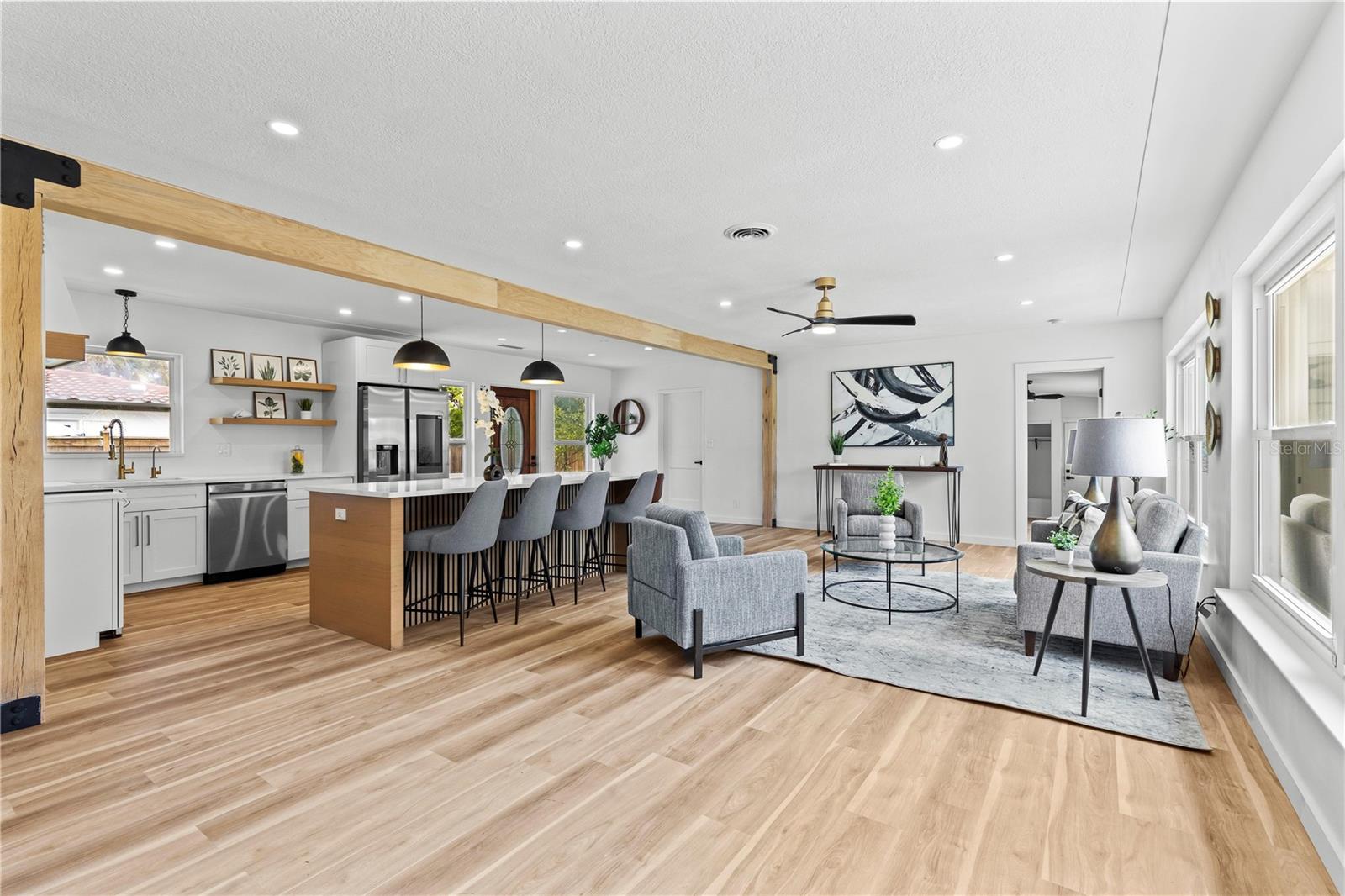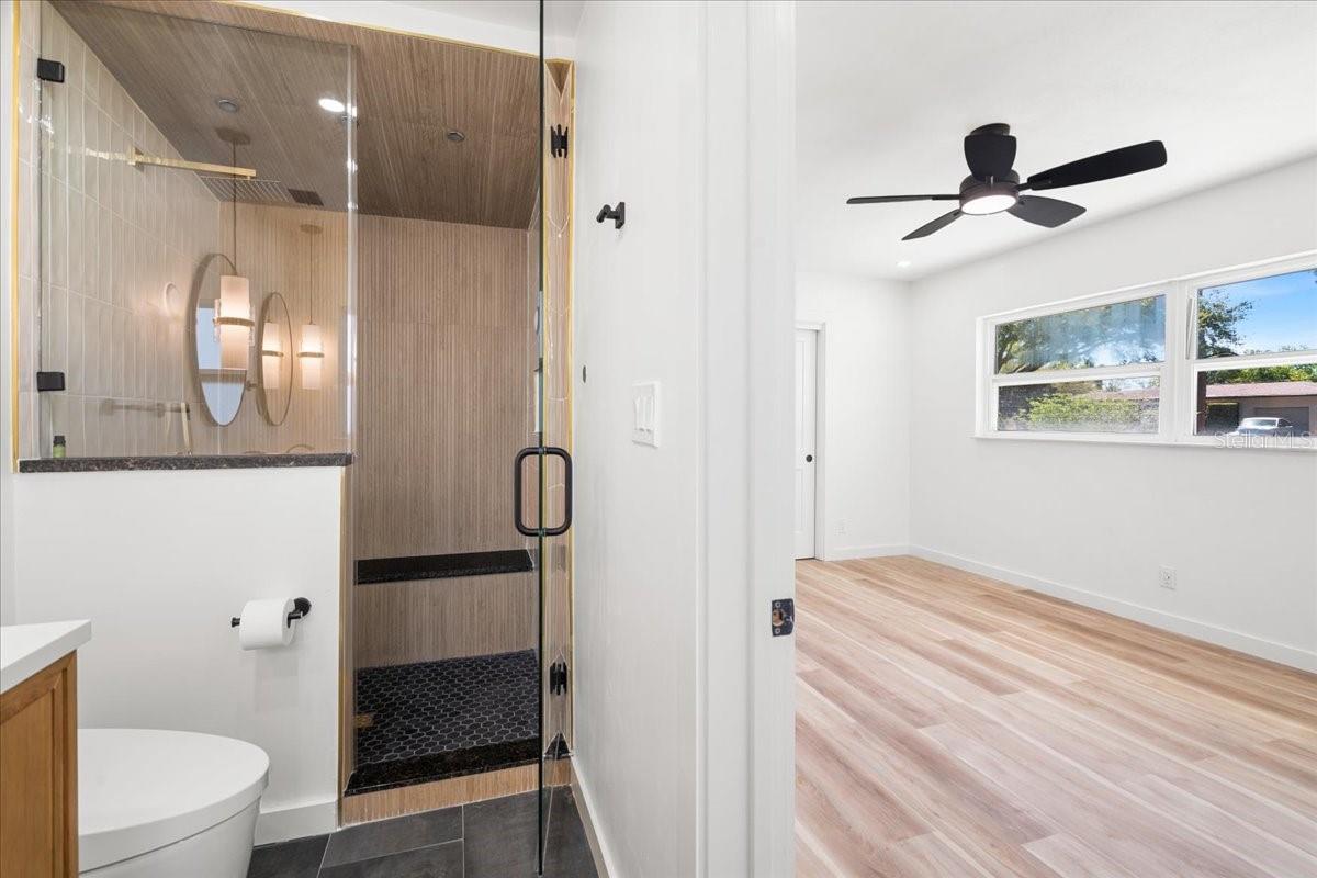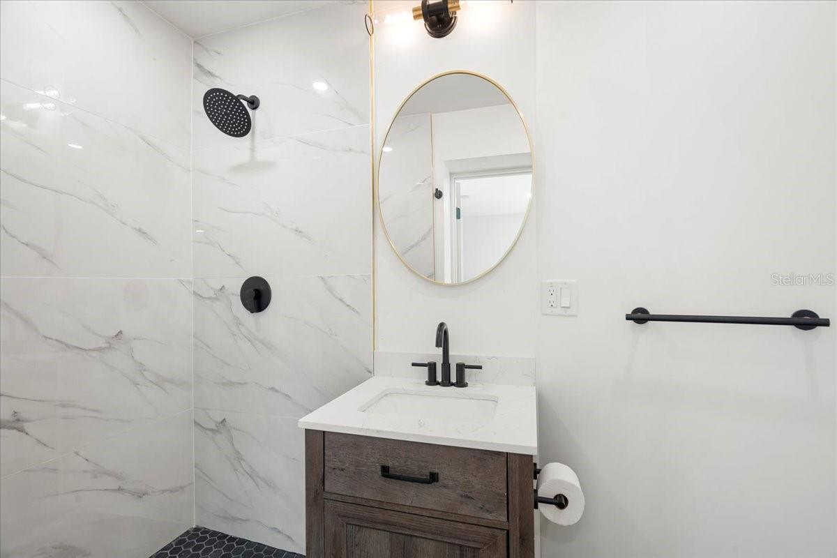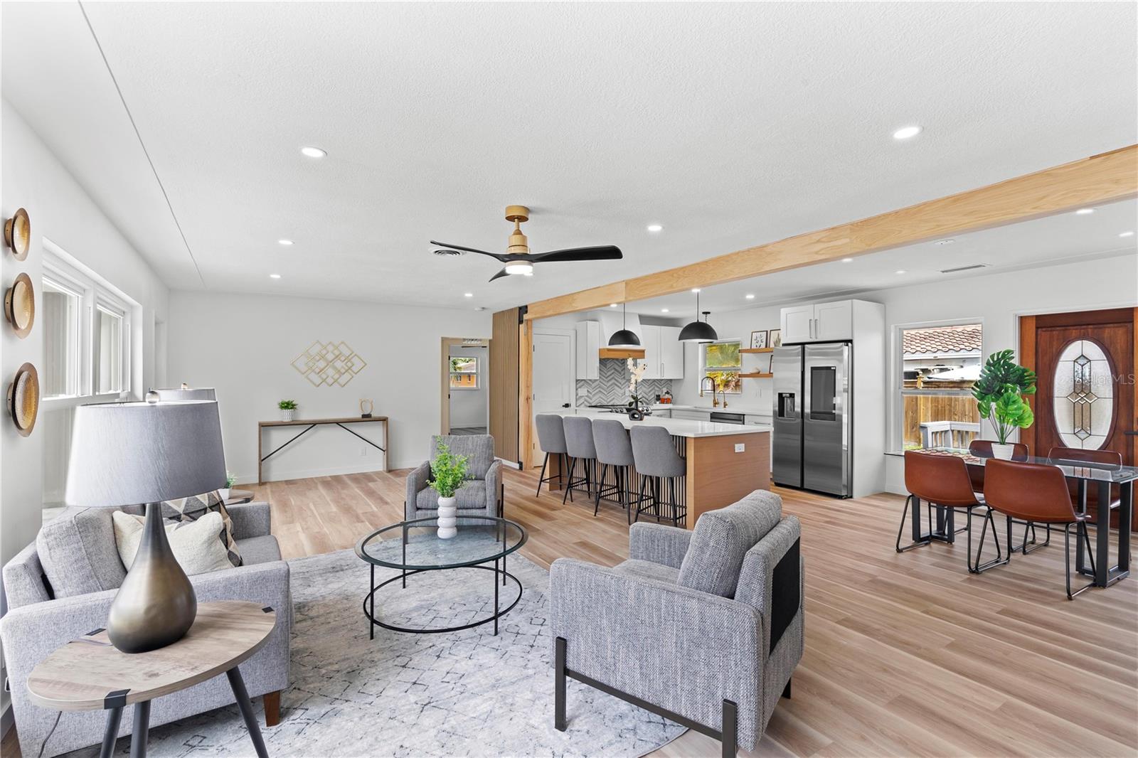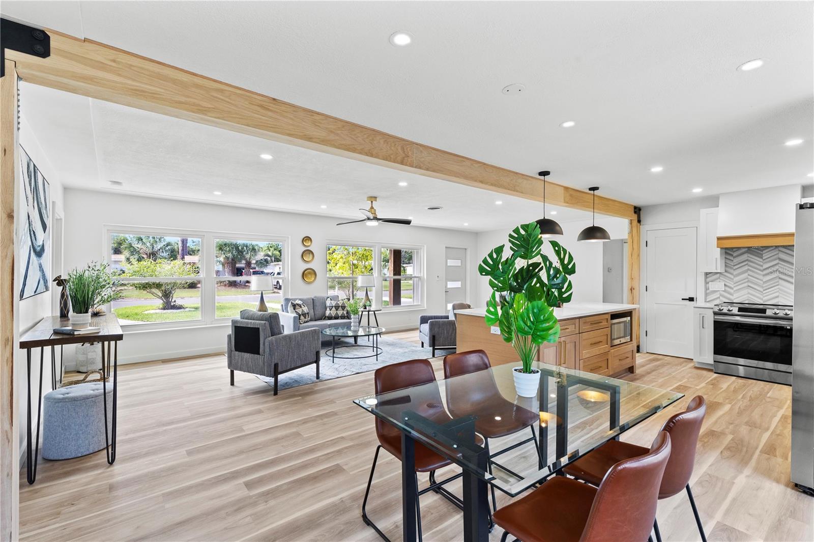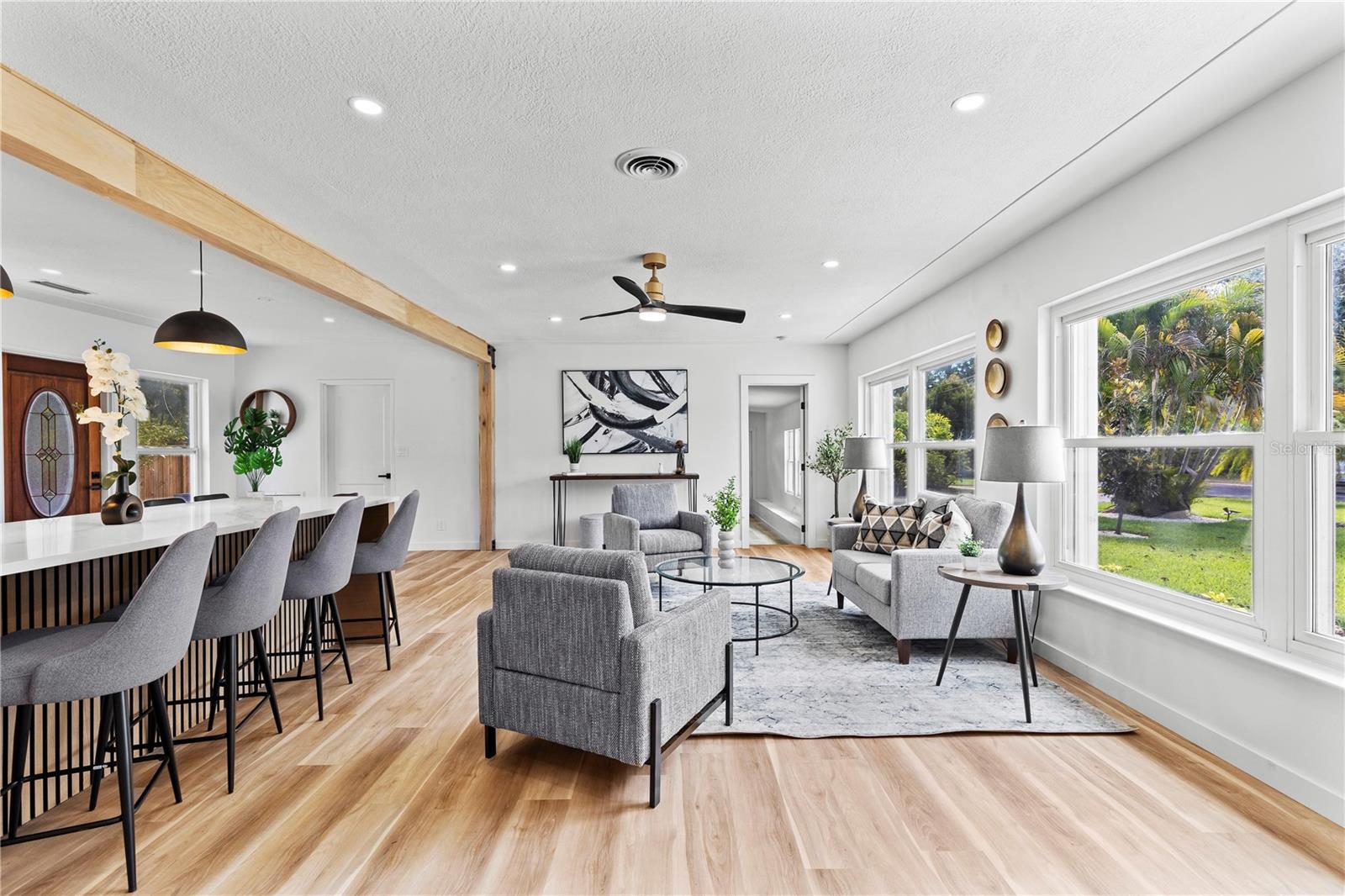 *1 Point Lender Paid, Full-term Rate Buy Down offered by Jonathan Ferrante with Blue Water Mortgage - ***Buyers must qualify for financing* Experience this stunning home in the heart of St. Pete, where every detail has been meticulously designed and nothing has been overlooked. This newly renovated 3-bedroom, 3-bath masterpiece offers all the bells and whistles, blending modern design with luxurious amenities for a truly elevated lifestyle. Step inside to discover a spacious open-concept living area with oak luxury vinyl plank flooring and a wall of windows that floods the space with natural light. The kitchen is equipped with brand new stainless steel appliances including a Samsung smart fridge, touch less faucet, filtered water dispenser, and a custom white oak range hood. The 8-foot oak island is complete with an in-island microwave, USB outlets, cladding accents, and statement pendant lighting. Every room has been outfitted with new recessed lighting and ceiling fans and the electrical box has been updated with new wiring and GFCI breakers. Indulge in the primary bathroom featuring a luxurious SteamSpa steam shower with chromotherapy lighting, Bluetooth, an automatic heated bidet, and elegant brass fixtures that evoke a spa-like feeling. The private entry to the third bedroom, with its en-suite bathroom, offers ultimate guest privacy, perfect for a mother-in-law suite or a dedicated guest retreat. Situated on a corner lot, the exterior features all new sod, fully landscaped grounds, and a Rain Bird irrigation system. The deck leads to a tranquil pergola complete with swings, an ideal spot to relax and unwind. The circle driveway with alley access to the sleek, one-car garage provides curb appeal and functionality. Nestled in a quiet neighborhood in the heart of St. Pete, just 10 minutes to the beach and less than 15 minutes to downtown, this home offers unmatched convenience. Remarkably, this property remained high and dry during the recent hurricanes and is not in a flood zone. The hurricane shutters add an extra layer of assurance.