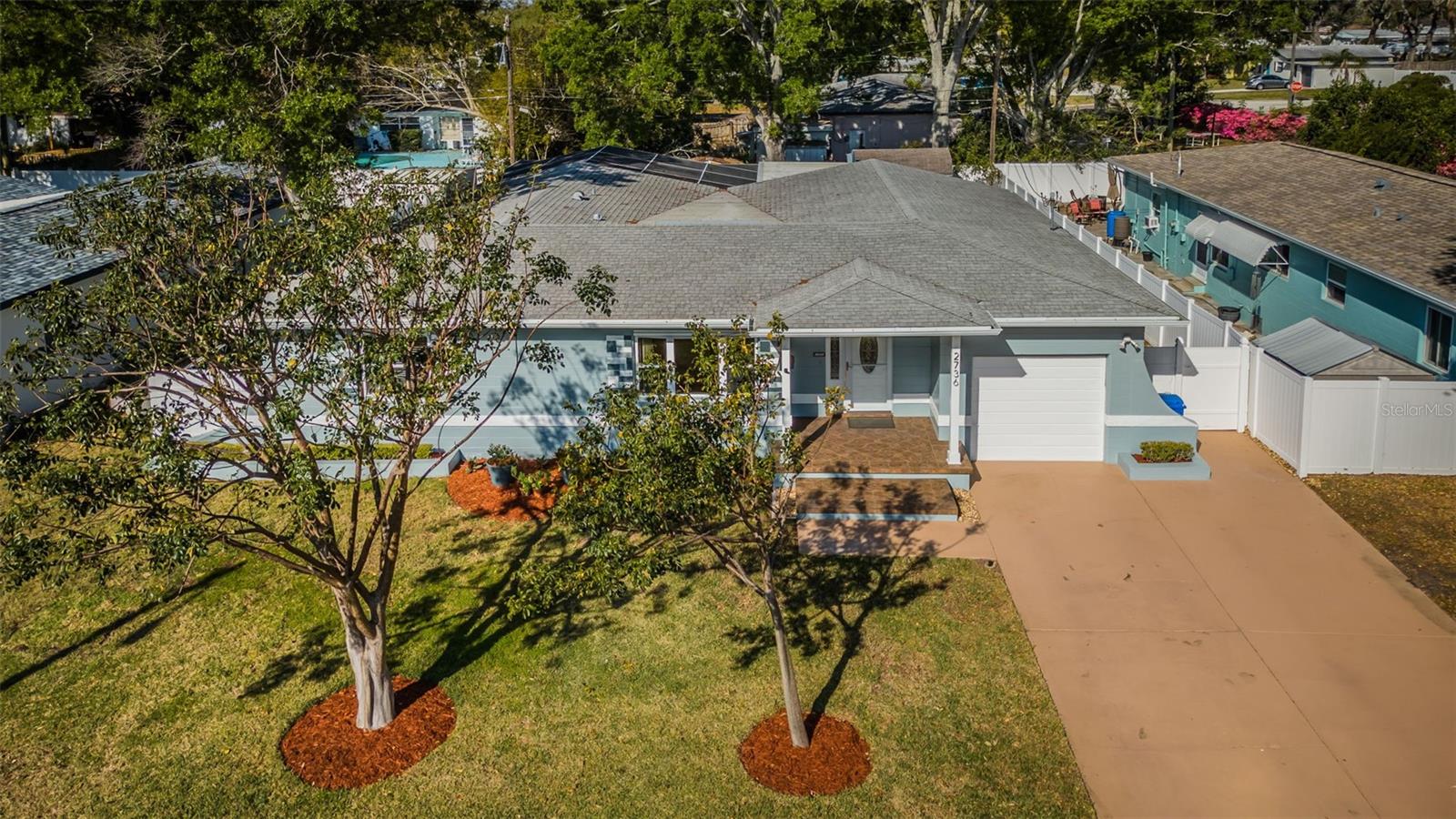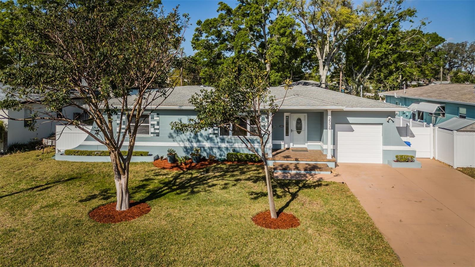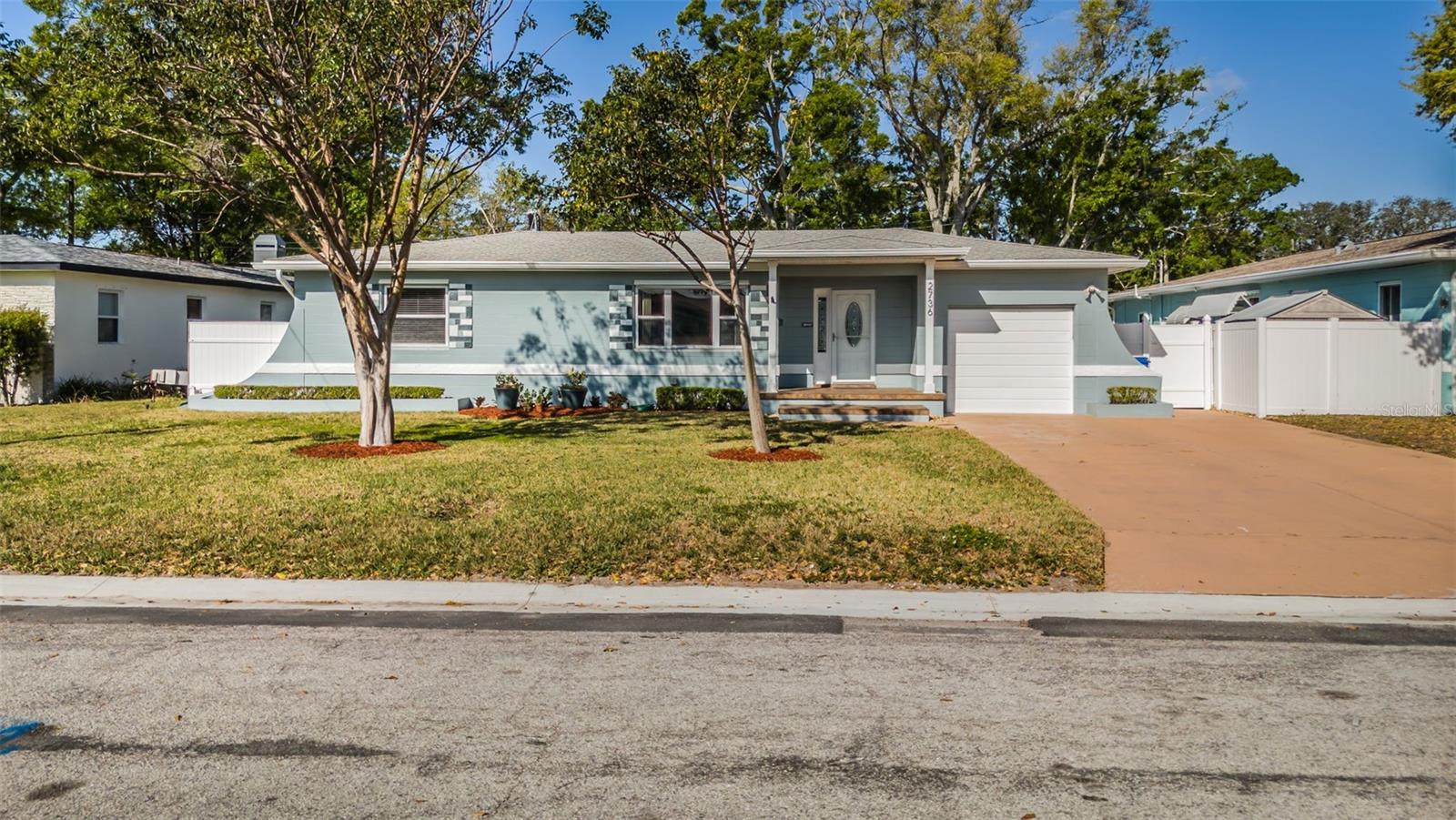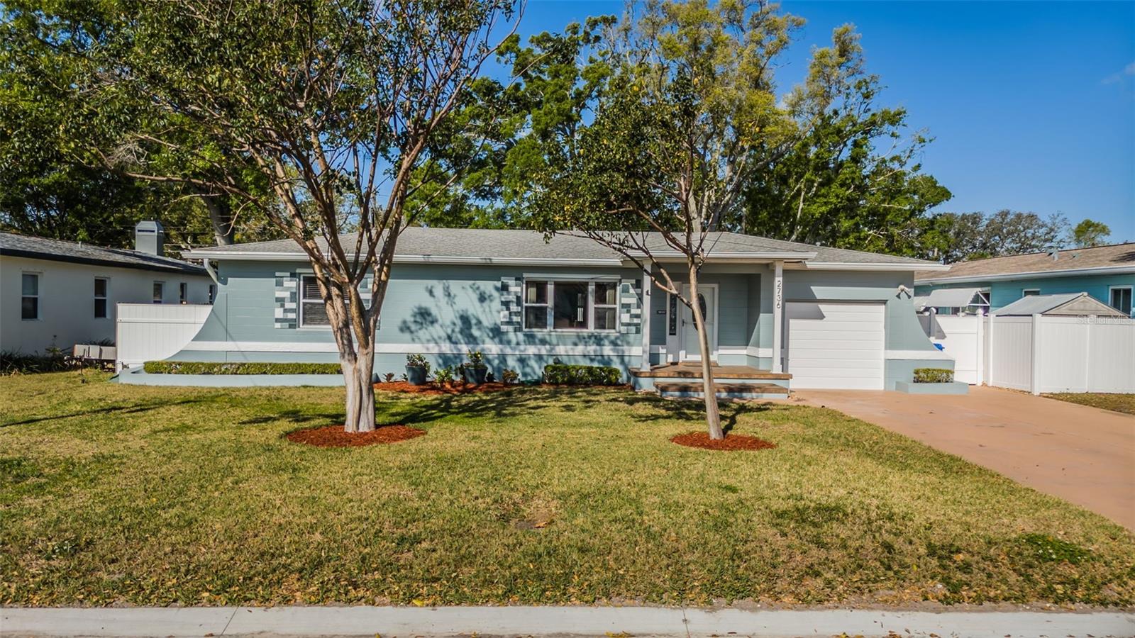 No need to compromise between a charming mid-century modern traditional block home and a newer modern home. This home has exactly what you have been looking for! This meticulously maintained pool home offers the charm of coved ceilings, arched doorways, and original wood flooring in a desirable well-established neighborhood. The newer addition offers a spacious living room and primary suite. Add to that a generous sized patio with custom pool and cage and you have Florida living at its finest. The kitchen is a dream with plenty of wood cabinets to hold all your culinary needs and an additional island with multiple electric outlets and casual breakfast bar. The spacious open concept is ideal for entertaining and preparation and conversations with the chef are invited. Bring the party outside to the covered lanai and enjoy the custom pool with screen cage and outdoor grilling space. There is a separate hot tub to relax in! The newer addition is in the back and not visible from the road so the homes aesthetic isn't compromised. It incorporates an extra large living room and spacious primary suite usually seen in high end properties. It offers a very large walk in closet, duel sinks with solid surface counters with a solid wood cabinet for storage, and a walk in shower with bench. There are double glass doors, with blinds built in, leading to the lanai for those private late-night swims. This home is minutes to award winning beaches and a vibrant downtown. The sports enthusiast will enjoy being close to football, baseball, hocky and soccer complexes. Multiple golf clubs and marinas are nearby. Visit the many farmer markets and quaint main streets nearby. All this less than 30 mins to two international airports! Relax privately poolside, collect seashells in the warm waters of the Gulf, cheer on your favorite team or dance the night away. Whatever you desire, it is available within moments from your front door. Don't hesitate. This home has it all and located in a high and dry location in St. Pete requiring no flood insurance! It has been 29 years since this property has been on the market and won’t last long! Please note that some of the pictures have been digitally staged.