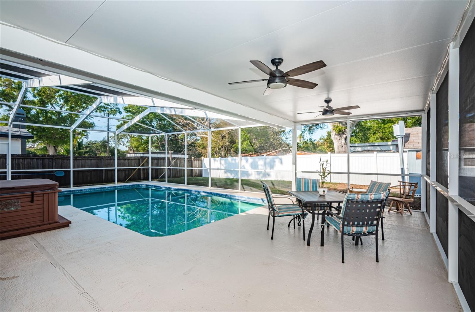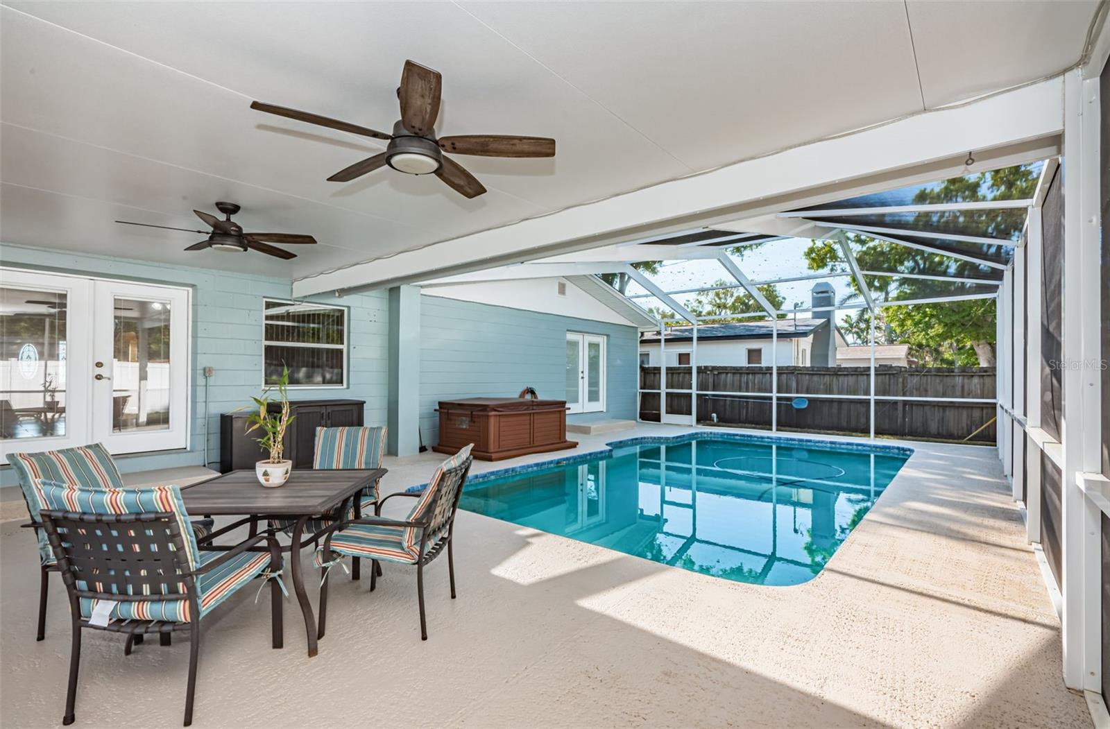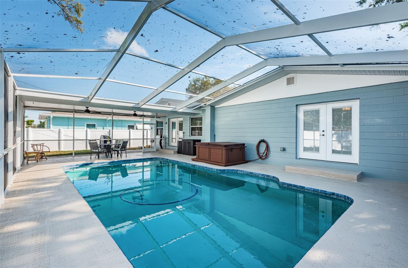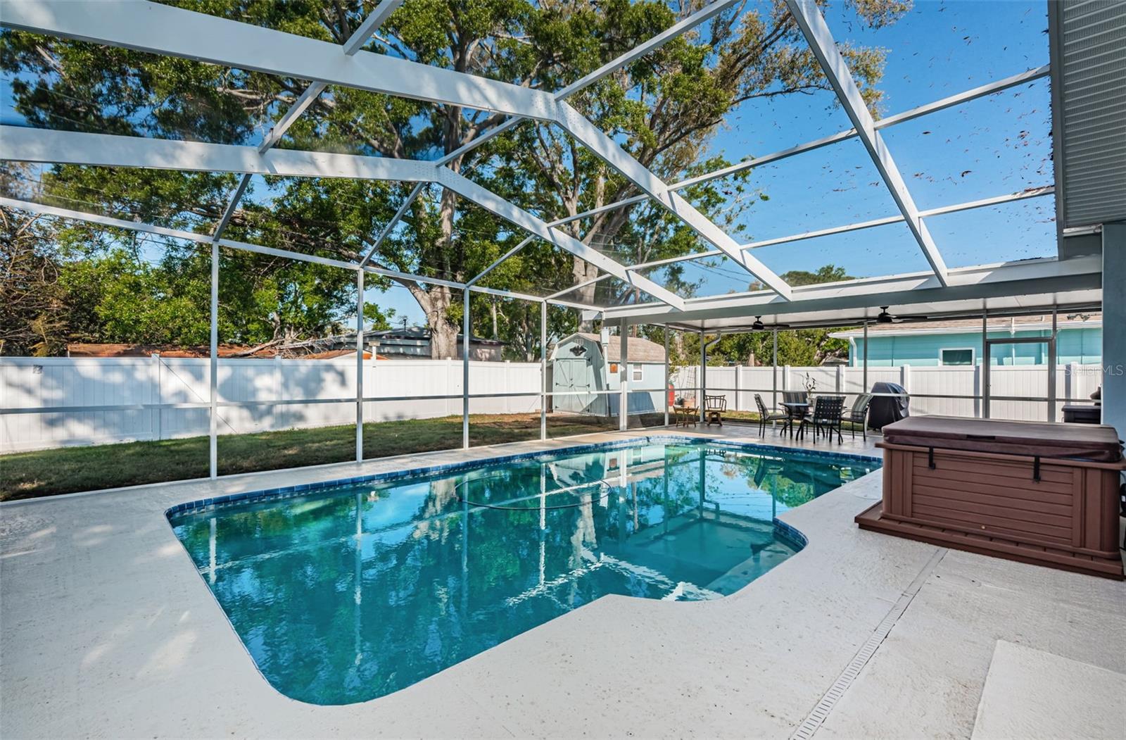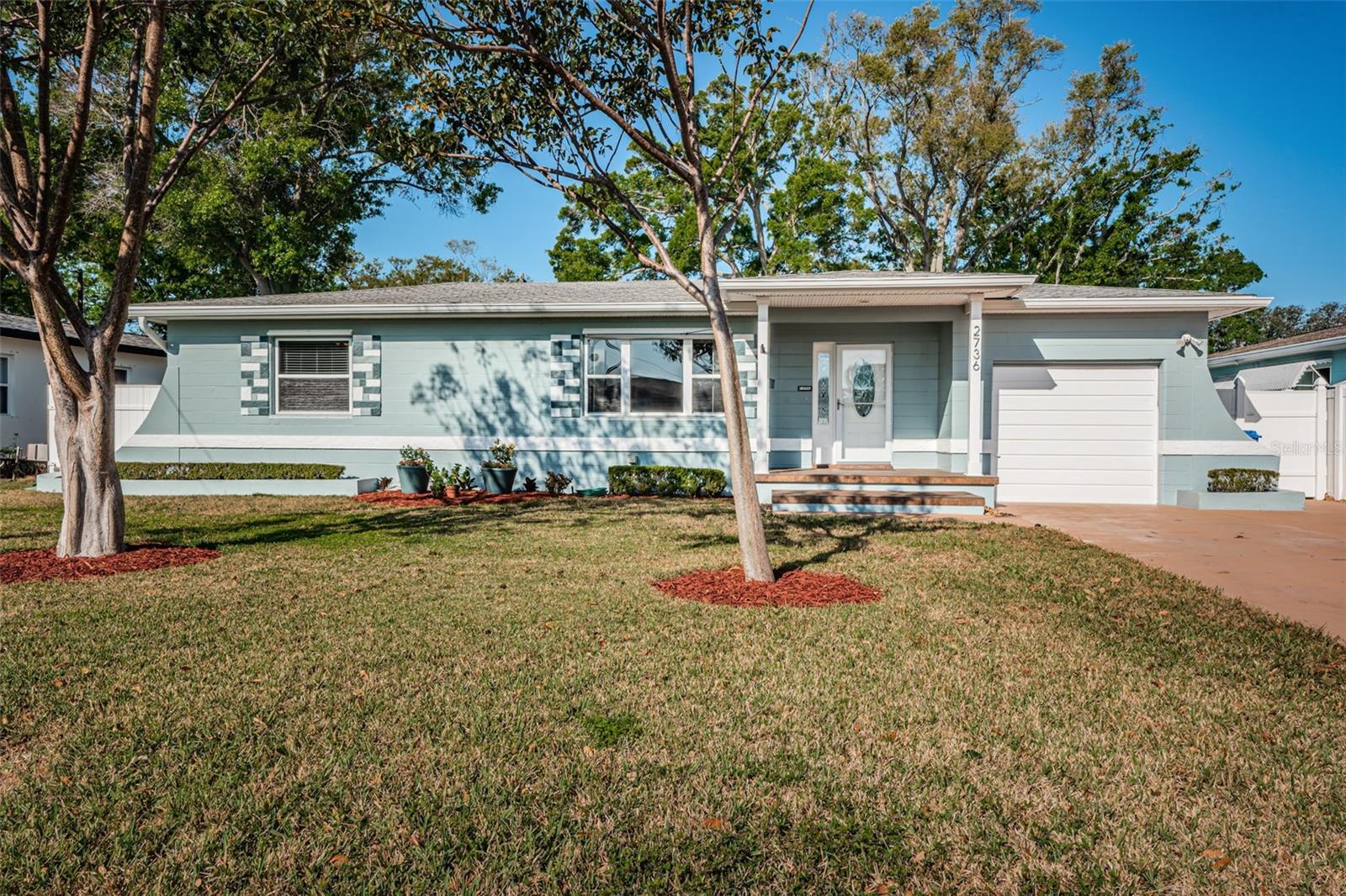No need to compromise between a charming mid-century modern traditional block home and a newer modern home. This home has exactly what you have been looking for! This meticulously maintained pool home offers the charm of coved ceilings, arched doorways, and original wood flooring in a desirable well-established neighborhood. The newer addition offers a spacious living room and primary suite. Add to that a generous sized patio with custom pool and cage and you have Florida living at its finest. The kitchen is a dream with plenty of wood cabinets to hold all your culinary needs and an additional island with multiple electric outlets and casual breakfast bar. The spacious open concept is ideal for entertaining and preparation and conversations with the chef are invited. Bring the party outside to the covered lanai and enjoy the custom pool with screen cage and outdoor grilling space. There is a separate hot tub to relax in! The newer addition is in the back and not visible from the road so the homes aesthetic isn't compromised. It incorporates an extra large living room and spacious primary suite usually seen in high end properties. It offers a very large walk in closet, duel sinks with solid surface counters with a solid wood cabinet for storage, and a walk in shower with bench. There are double glass doors, with blinds built in, leading to the lanai for those private late-night swims. This home is minutes to award winning beaches and a vibrant downtown. The sports enthusiast will enjoy being close to football, baseball, hocky and soccer complexes. Multiple golf clubs and marinas are nearby. Visit the many farmer markets and quaint main streets nearby. All this less than 30 mins to two international airports! Relax privately poolside, collect seashells in the warm waters of the Gulf, cheer on your favorite team or dance the night away. Whatever you desire, it is available within moments from your front door. Don't hesitate. This home has it all and located in a high and dry location in St. Pete requiring no flood insurance! It has been 29 years since this property has been on the market and won’t last long! Please note that some of the pictures have been digitally staged.