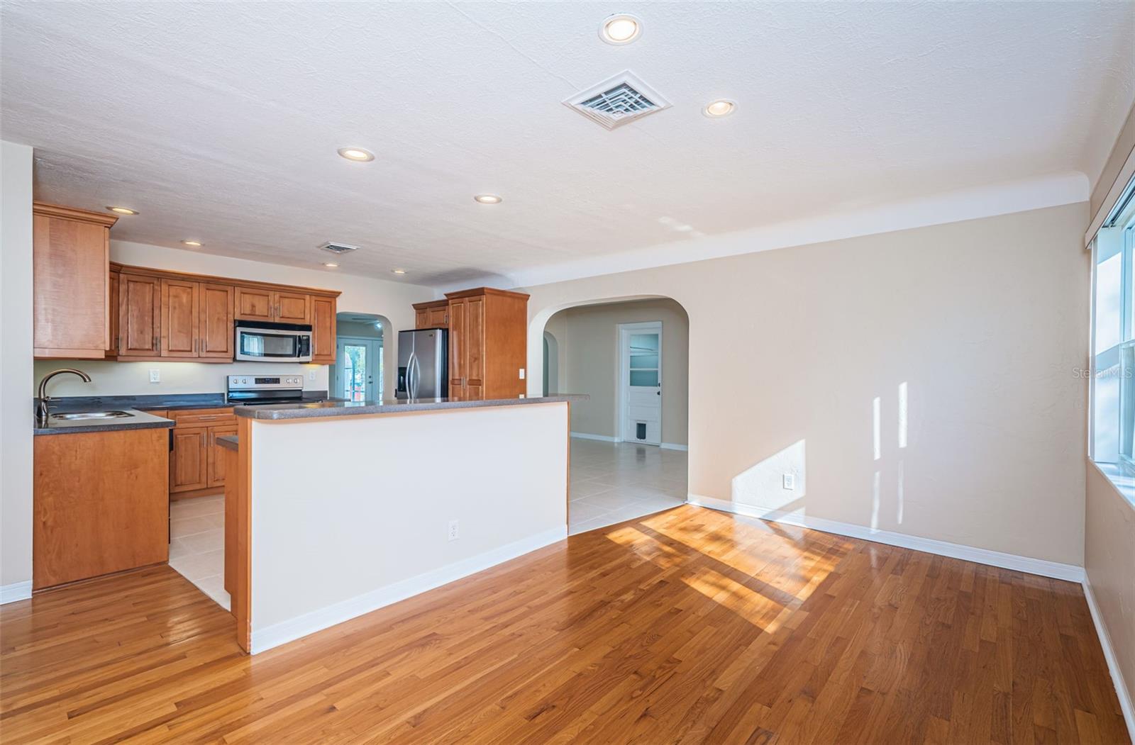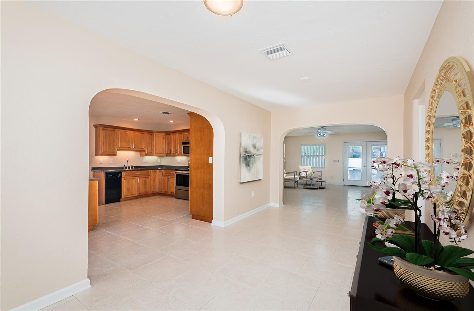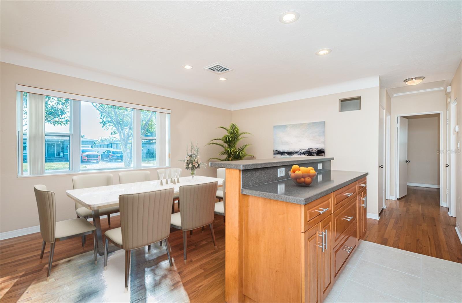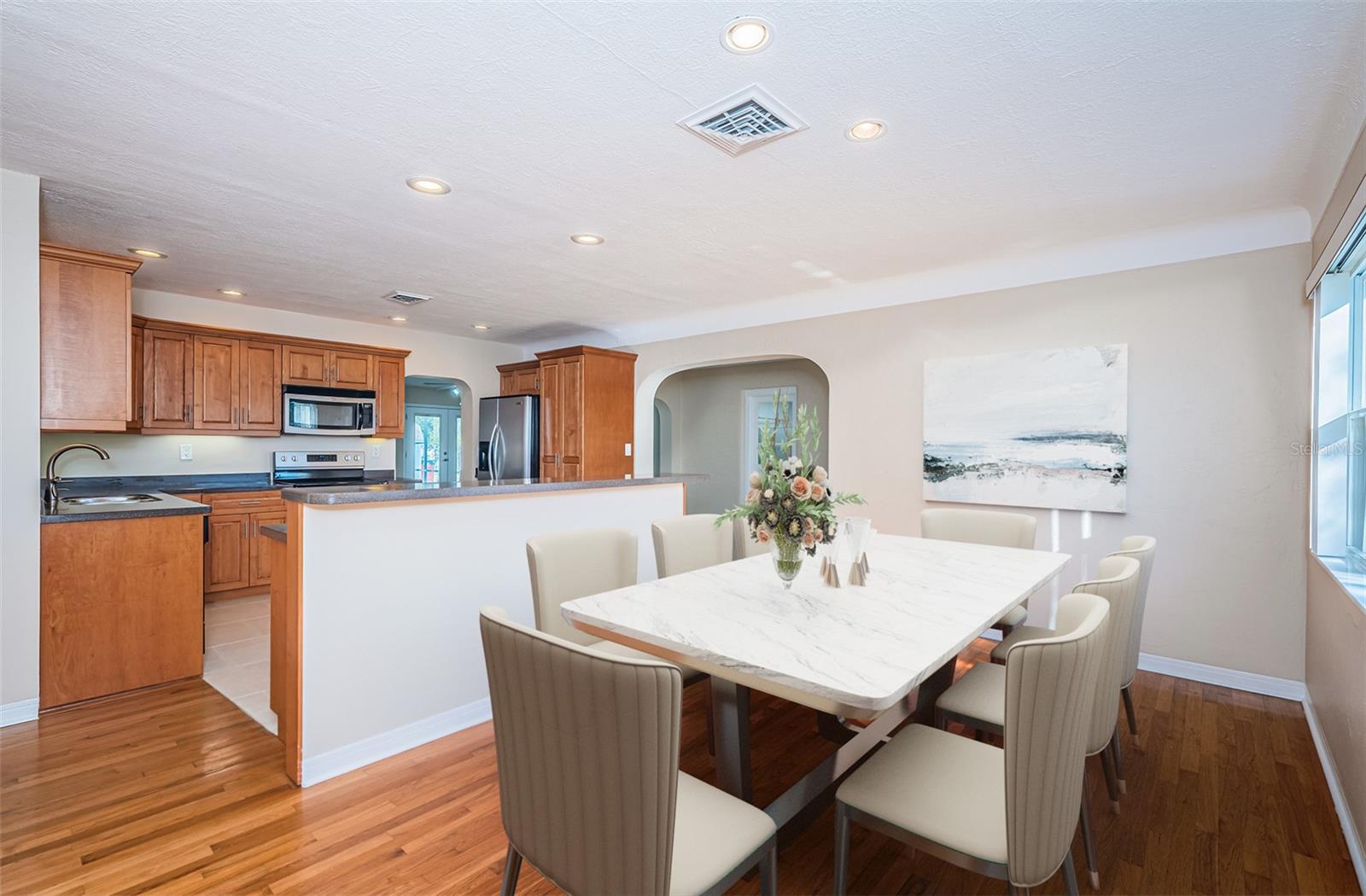 No need to compromise between a charming mid-century modern traditional block home and a newer modern home. This home has exactly what you have been looking for! This meticulously maintained pool home offers the charm of coved ceilings, arched doorways, and original wood flooring in a desirable well-established neighborhood. The newer addition offers a spacious living room and primary suite. Add to that a generous sized patio with custom pool and cage and you have Florida living at its finest. The kitchen is a dream with plenty of wood cabinets to hold all your culinary needs and an additional island with multiple electric outlets and casual breakfast bar. The spacious open concept is ideal for entertaining and preparation and conversations with the chef are invited. Bring the party outside to the covered lanai and enjoy the custom pool with screen cage and outdoor grilling space. There is a separate hot tub to relax in! The newer addition is in the back and not visible from the road so the homes aesthetic isn't compromised. It incorporates an extra large living room and spacious primary suite usually seen in high end properties. It offers a very large walk in closet, duel sinks with solid surface counters with a solid wood cabinet for storage, and a walk in shower with bench. There are double glass doors, with blinds built in, leading to the lanai for those private late-night swims. This home is minutes to award winning beaches and a vibrant downtown. The sports enthusiast will enjoy being close to football, baseball, hocky and soccer complexes. Multiple golf clubs and marinas are nearby. Visit the many farmer markets and quaint main streets nearby. All this less than 30 mins to two international airports! Relax privately poolside, collect seashells in the warm waters of the Gulf, cheer on your favorite team or dance the night away. Whatever you desire, it is available within moments from your front door. Don't hesitate. This home has it all and located in a high and dry location in St. Pete requiring no flood insurance! It has been 29 years since this property has been on the market and won’t last long! Please note that some of the pictures have been digitally staged.