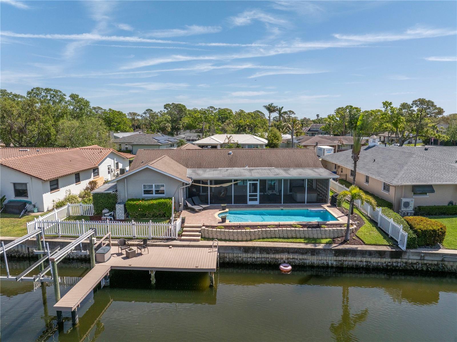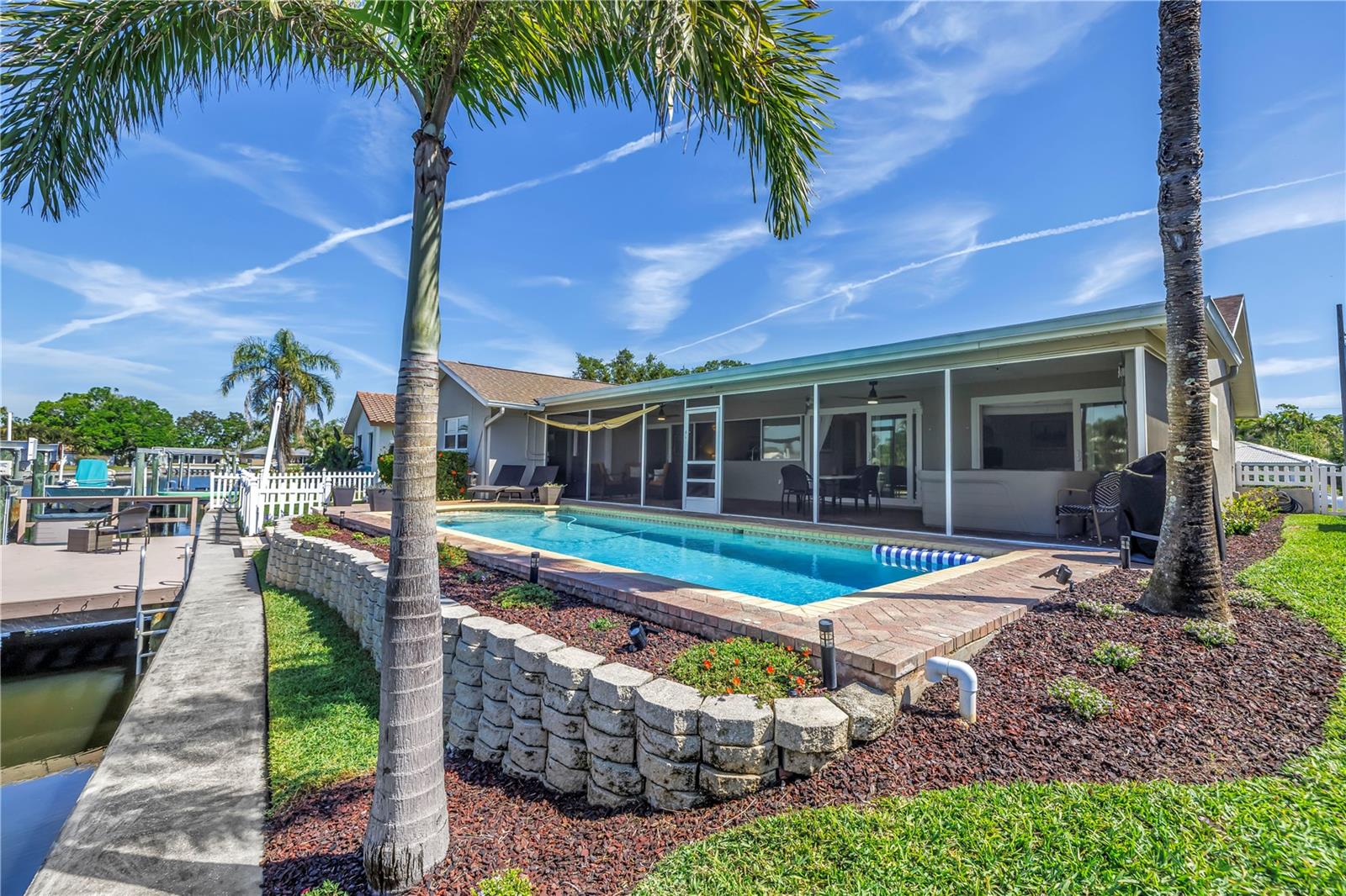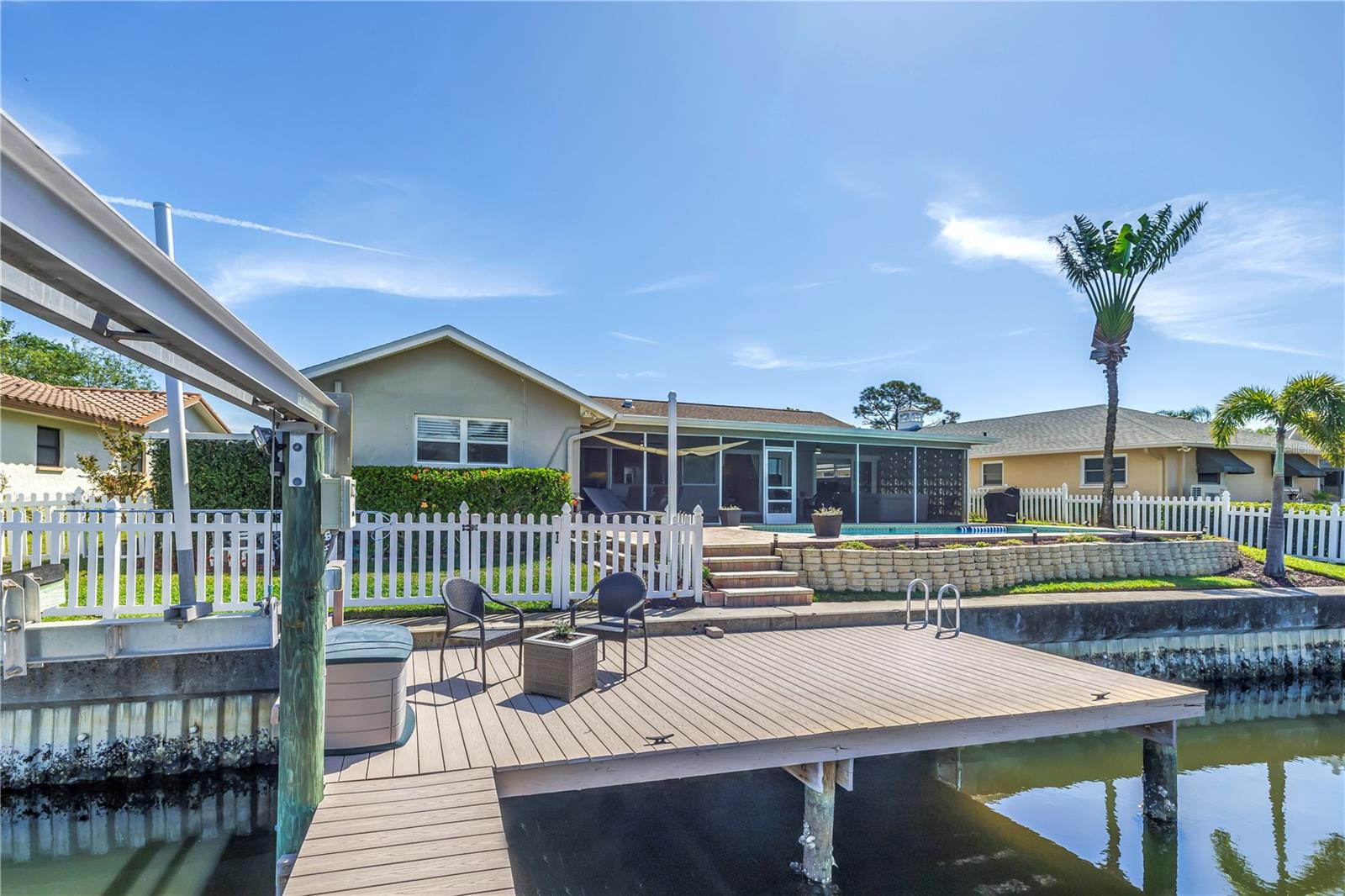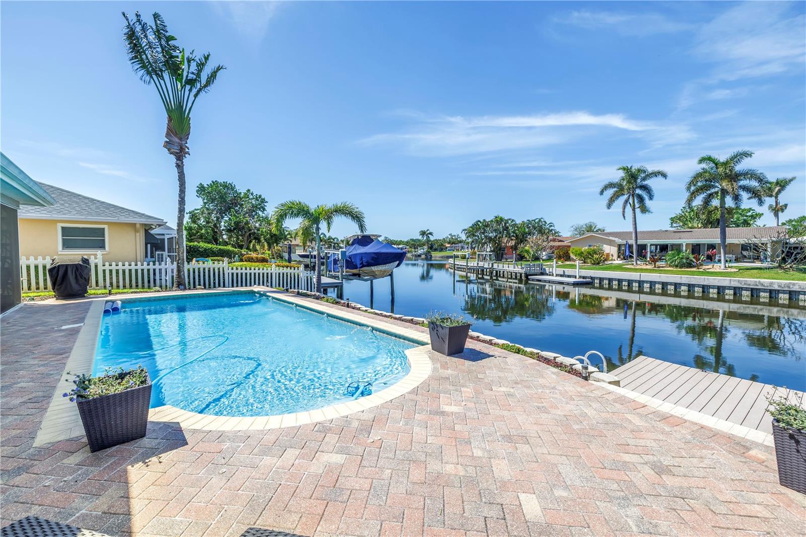 Amazingly cared for & NEVER been flooded, waterfront home now available! Through the years this Ponderosa Shores homes has been maintained with great pride and nothing overlooked, see attachments for full list. This ranch style home features three bedrooms, two full bathrooms, two car garage and large rear covered porch, perfect for entertaining and waterfront FL living! The exterior living space also includes a salt water pool (new salt system in 24'), free-standing hot tub, dock w/boat lift and still a yard with plenty of space. Updates include (but not limited to) new sliding glass doors in 24', new water heater in 24', new flooring in 23', new kitchen granite countertops in 23', pool resurfaced in 20' and bathrooms remodeled in 20'. True pride of ownership can be seen at every turn and is certainly a must see home!