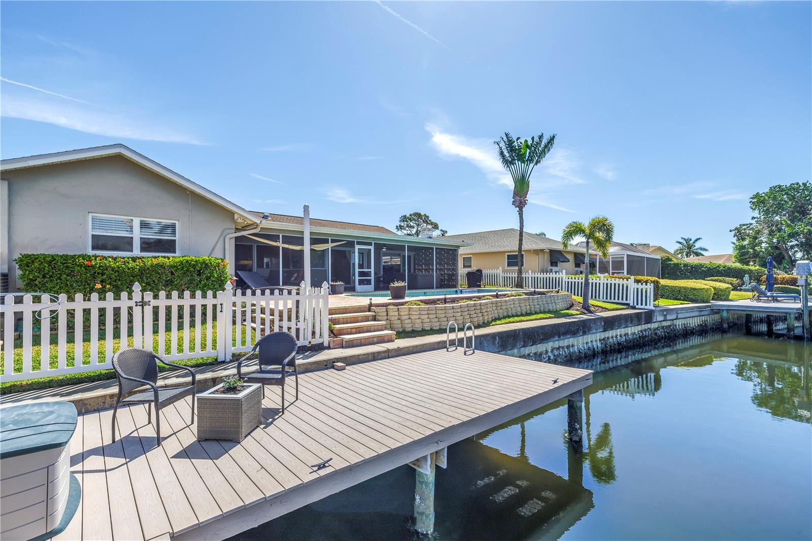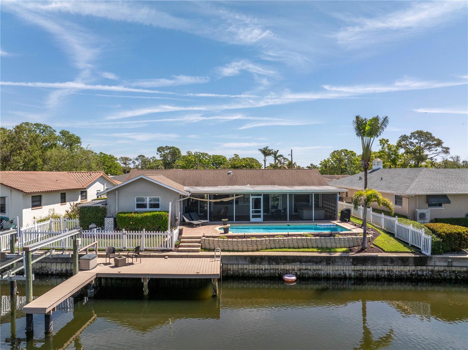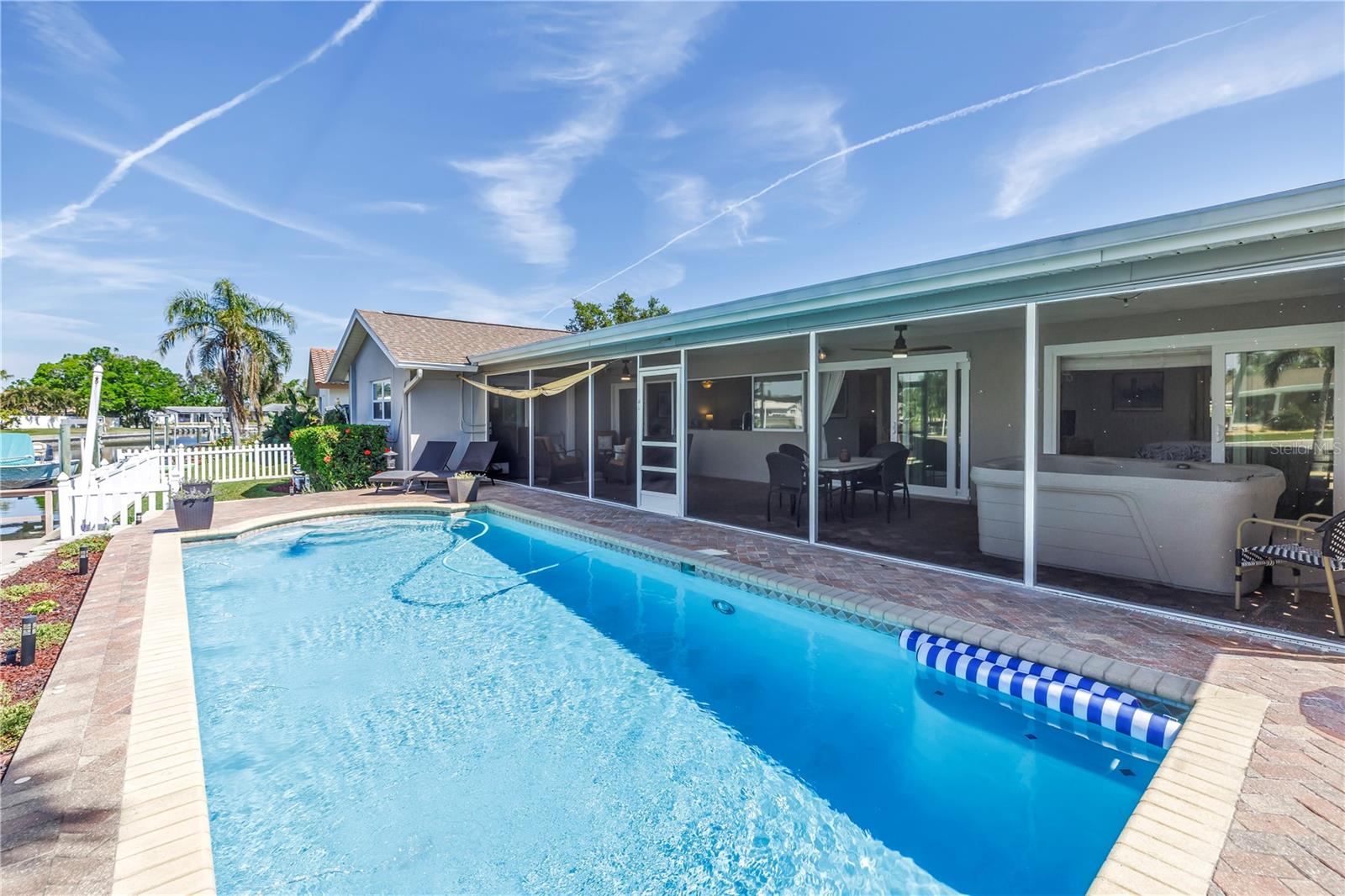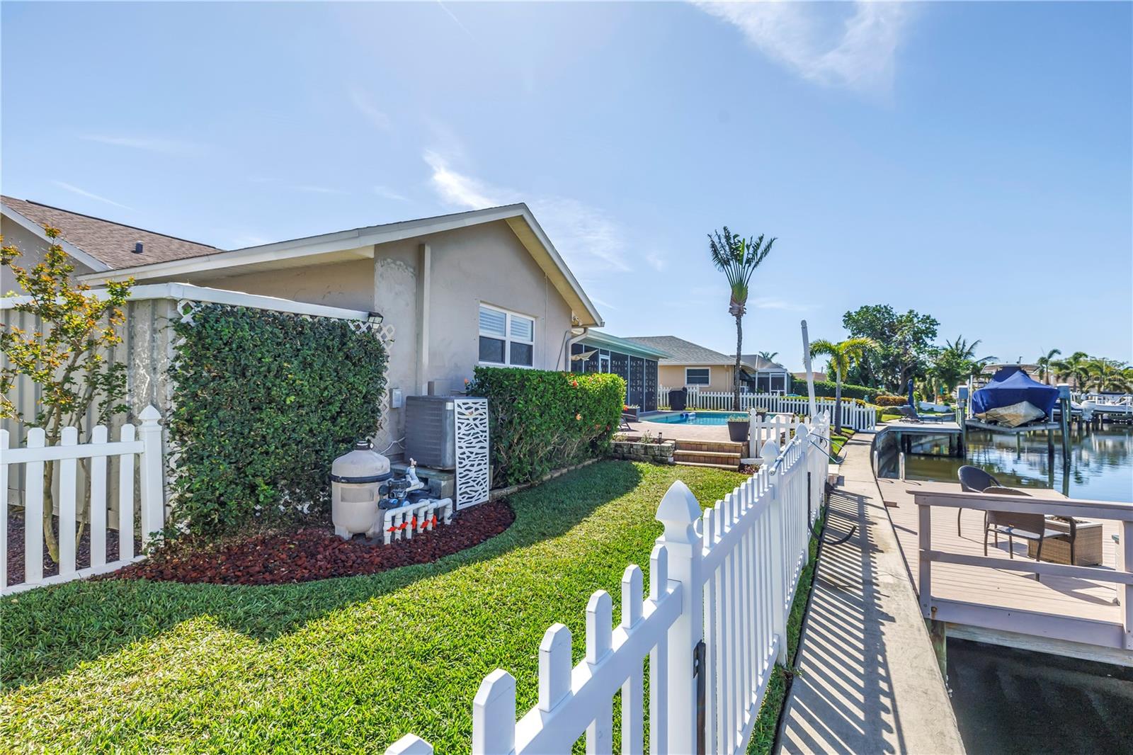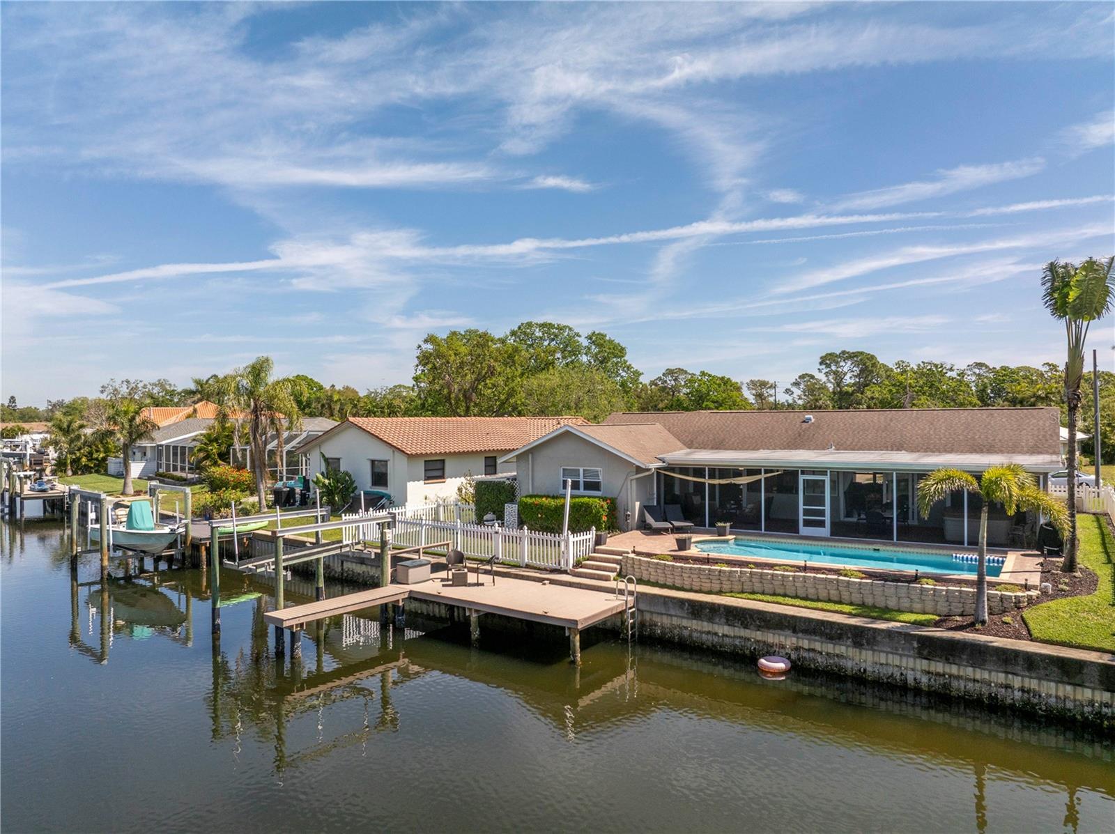 Amazingly cared for & NEVER been flooded, waterfront home now available! Through the years this Ponderosa Shores homes has been maintained with great pride and nothing overlooked, see attachments for full list. This ranch style home features three bedrooms, two full bathrooms, two car garage and large rear covered porch, perfect for entertaining and waterfront FL living! The exterior living space also includes a salt water pool (new salt system in 24'), free-standing hot tub, dock w/boat lift and still a yard with plenty of space. Updates include (but not limited to) new sliding glass doors in 24', new water heater in 24', new flooring in 23', new kitchen granite countertops in 23', pool resurfaced in 20' and bathrooms remodeled in 20'. True pride of ownership can be seen at every turn and is certainly a must see home!