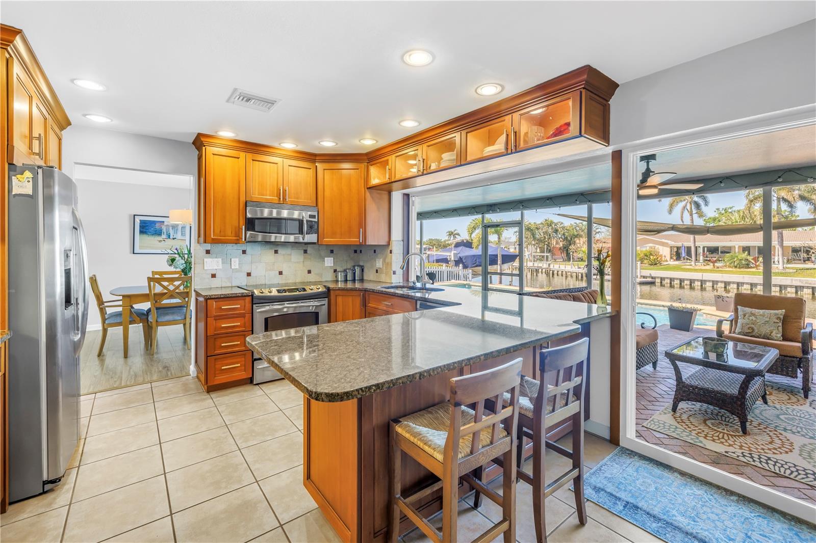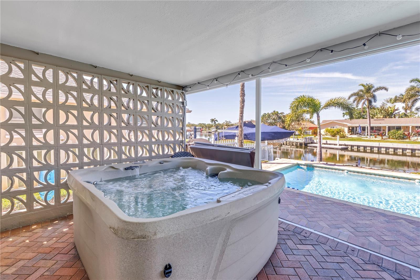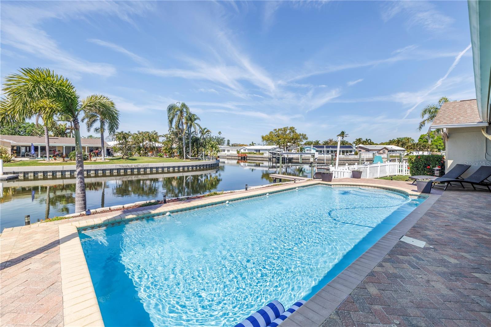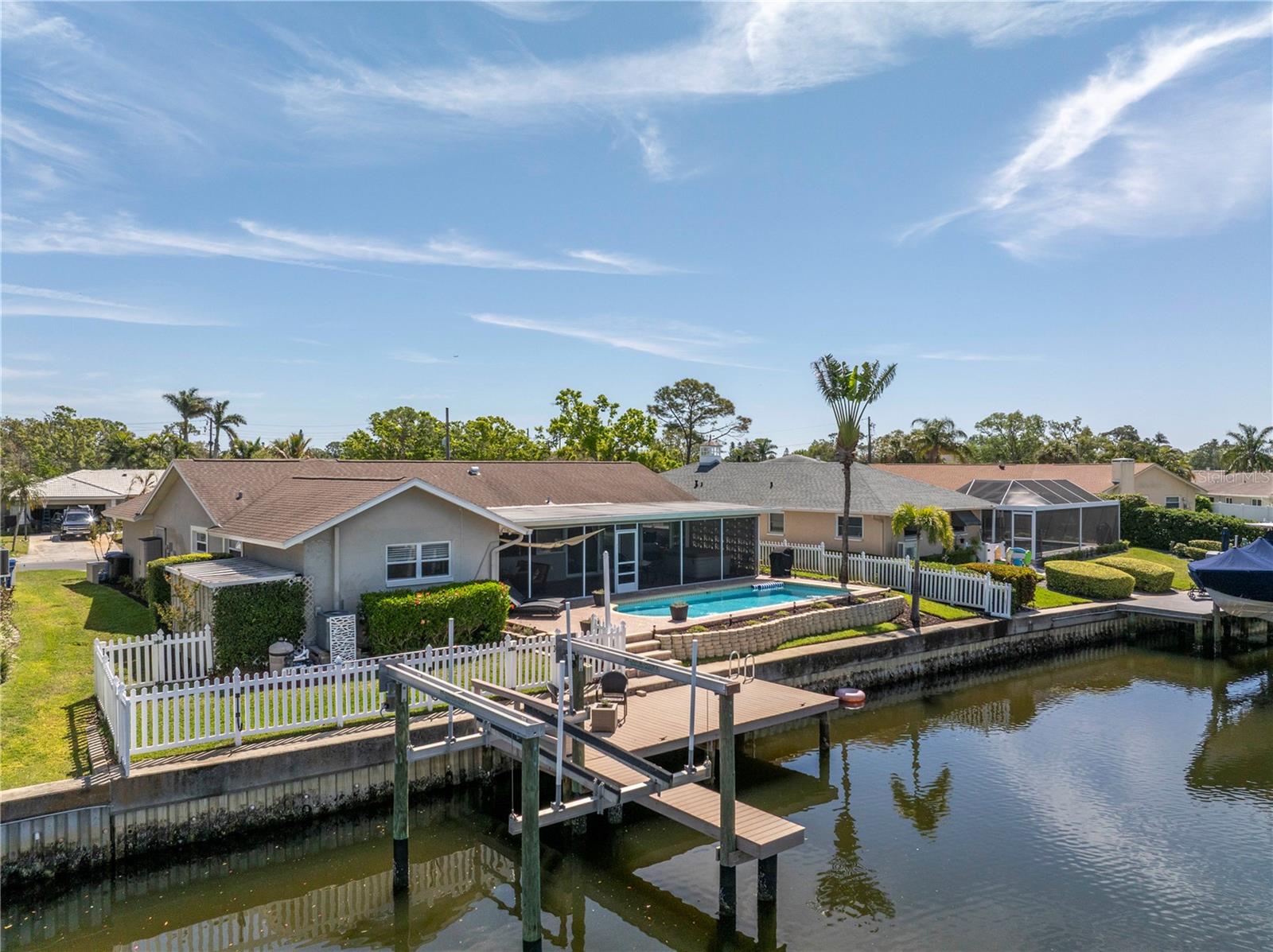 Amazingly cared for & NEVER been flooded, waterfront home now available! Through the years this Ponderosa Shores homes has been maintained with great pride and nothing overlooked, see attachments for full list. This ranch style home features three bedrooms, two full bathrooms, two car garage and large rear covered porch, perfect for entertaining and waterfront FL living! The exterior living space also includes a salt water pool (new salt system in 24'), free-standing hot tub, dock w/boat lift and still a yard with plenty of space. Updates include (but not limited to) new sliding glass doors in 24', new water heater in 24', new flooring in 23', new kitchen granite countertops in 23', pool resurfaced in 20' and bathrooms remodeled in 20'. True pride of ownership can be seen at every turn and is certainly a must see home!