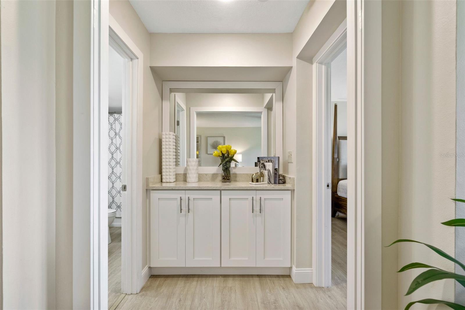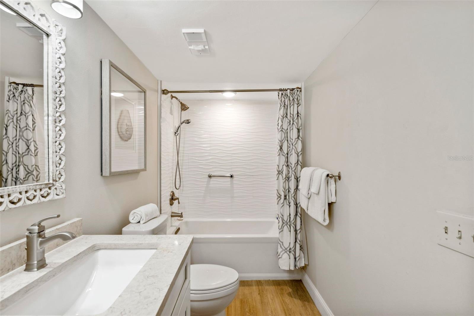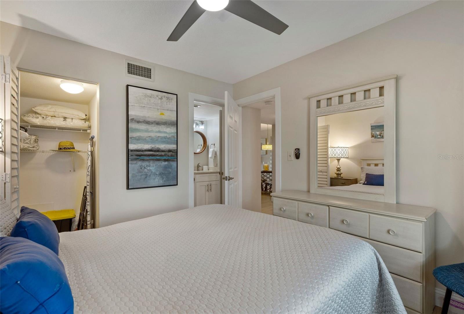 Welcome home to the epitome of Country Club living, Florida-style. What does that mean? It means golf now, go to the beach later! This unit is convenient to not one, but TWO of the best beaches in North America! It is less than 2 miles from the sand at #1 Rated St. Pete Beach and about a 10-min drive (6.4 miles) to beautiful Ft. DeSoto Beach! And, for a change of pace, it is only about a 15-minute drive to the Riviera-esque scene of Downtown St. Pete, which boasts world class, museums, restaurants, parks and a vibrant buzz of activity both day and night! There is always something fun to do in Downtown St. Pete! This is a perfect vacation spot that you can enjoy year-round as a resident. OR come and enjoy your slice of Florida bliss part-time and gain the offsetting income of weekly rentals in the wildly popular Isla del Sol Community! Realistically, you could easily be earning in the neighborhood of $40K+/yr. The property is sold fully furnished. All you need is your toothbrush, swimsuit, golf attire, clubs, and sunscreen! This bright and cheery first-floor condo has been meticulously and beautifully remodeled to an exacting standard. The most recent update was the installation of impact resistant, hurricane-rated sliders and windows last summer, at a cost just over $20K. These windows are not only attractive! They also provide great energy efficiency, sound insulation and security! AND, they are water-tight! It is indeed comforting to know that this unit was high and dry with ZERO water or damage of any kind from last year’s storms. This truly is one of the nicest units that you will find in Vista Verde. Even the location within the Isla Community is terrific. Located off of a fairway on the award-winning Isla del Sol Golf Course, the views are serene. You will enjoy the great outdoors from your covered patio area year-round! Bonus: Your patio has a storage closet that is perfect for housing all your beach necessities. And while the patio is a serene retreat, whenever you fancy it, the sparkling pool and spa, that is exclusively for Vista Verde East’s use, is a very short stroll from your doorstep! Truly, you WILL LOVE EVERYTHING about this home. It is spotlessly clean with furnishings that look as if they were delivered only yesterday! The luxury vinyl plank flooring throughout is easy to clean and comfy for your tootsies. The kitchen is bright and airy, enjoying sunlight from three windows! It features an eat-in area, quartz countertops, abundant cabinets, stainless steel appliances AND a full-size washer and dryer conveniently secreted within a closet right there in your kitchen! The master bedroom, with king bed, is beautifully furnished and en-suite, complete with a classy bathroom featuring a deep tub with shower and a stylish vanity with dual sinks. The second bedroom has a queen bed with a walk-in closet and enjoys direct access to the guest bath, which has also been beautifully remodeled to include a walk-in shower, comfort height water closet and stylish vanity. EVERYTHING is included in this price: dishes, cutlery, pots and pans, electronics, major and minor appliances, art….. It's all here, ready and waiting for you!