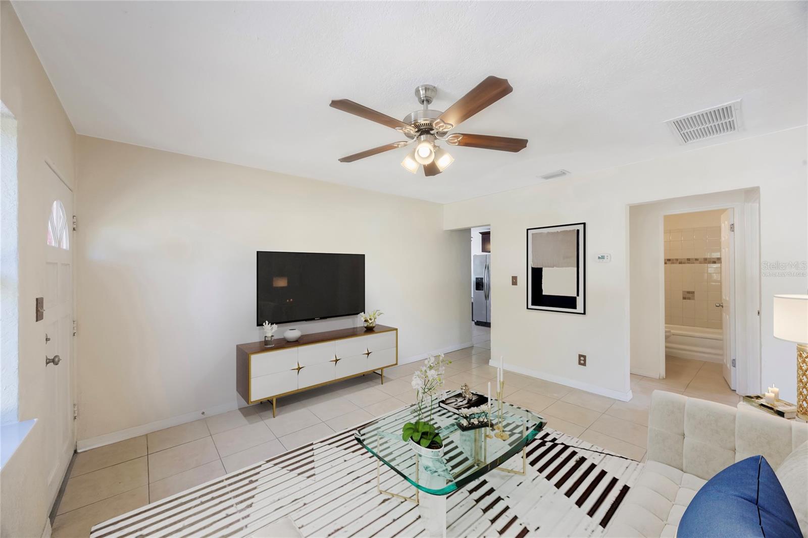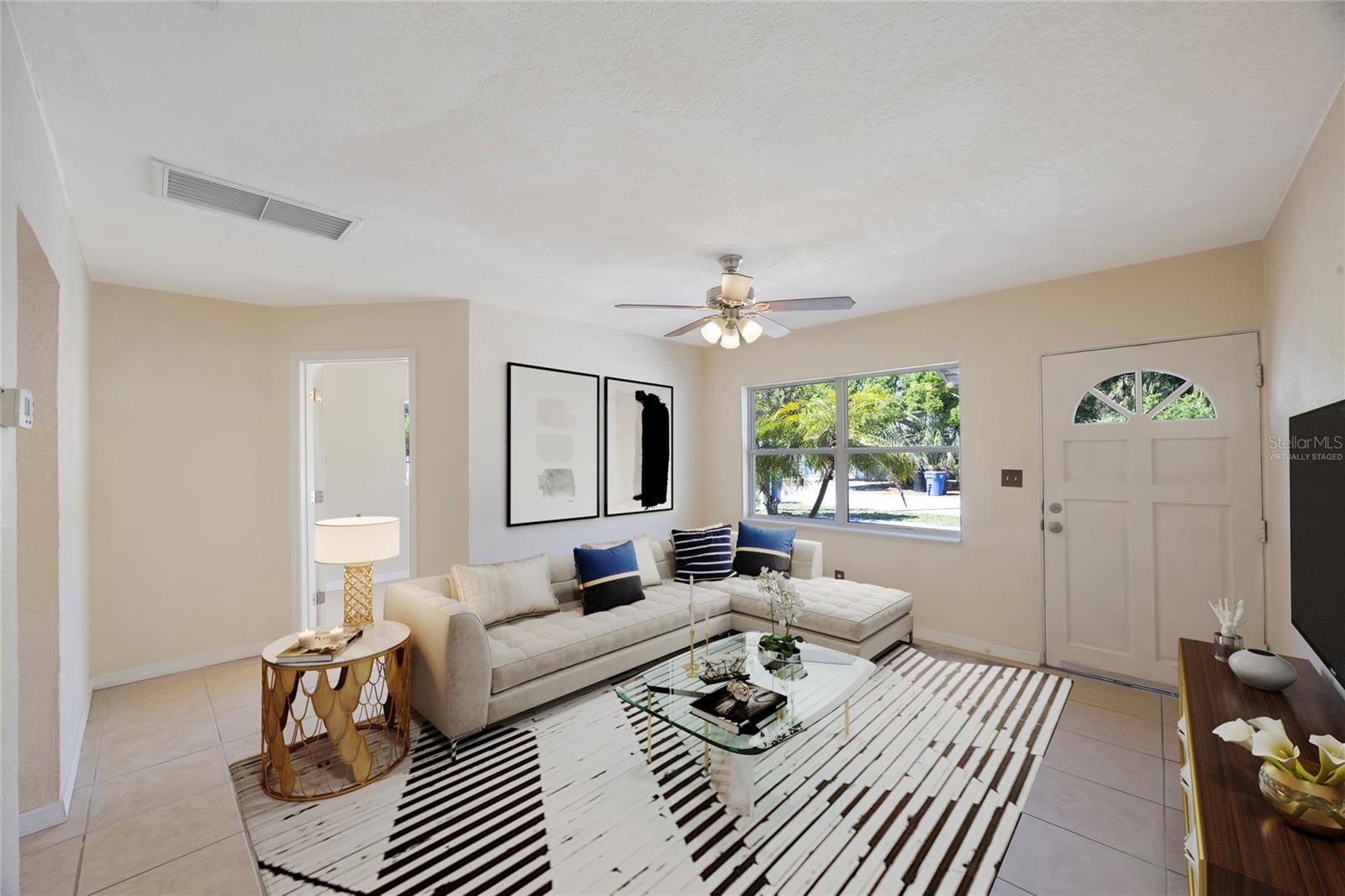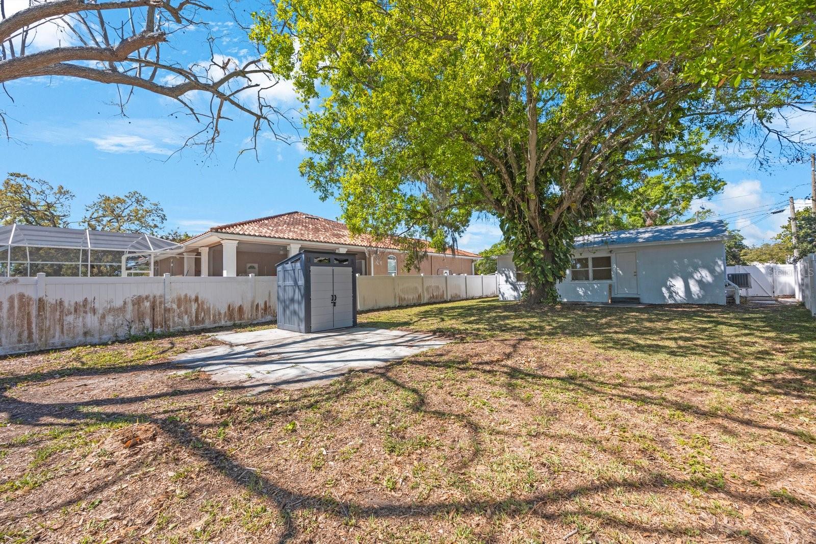 One or more photo(s) has been virtually staged. Charming 3BR/1BA/1Car garage block home with a huge fenced yard! Spacious updated kitchen has a breakfast area for your morning coffee. Ceramic tiles throughout the entire home, NO Carpet here! Inside Utility Room is roomy for extra storage. The backyard gate opens to Mystic Lake Dr - you can bring in all your toys(boats, jet skies, etc) to the backyard. BRAND NEW ROOF(Dec 2024). The home is situated on a tranquil road, yet very close to 4th Street corridor full of stores & restaurants, New YMCA, multiple parks with golf course & tennis courts. Few minutes' drive to downtown St Petersburg. Easy access to I-275.