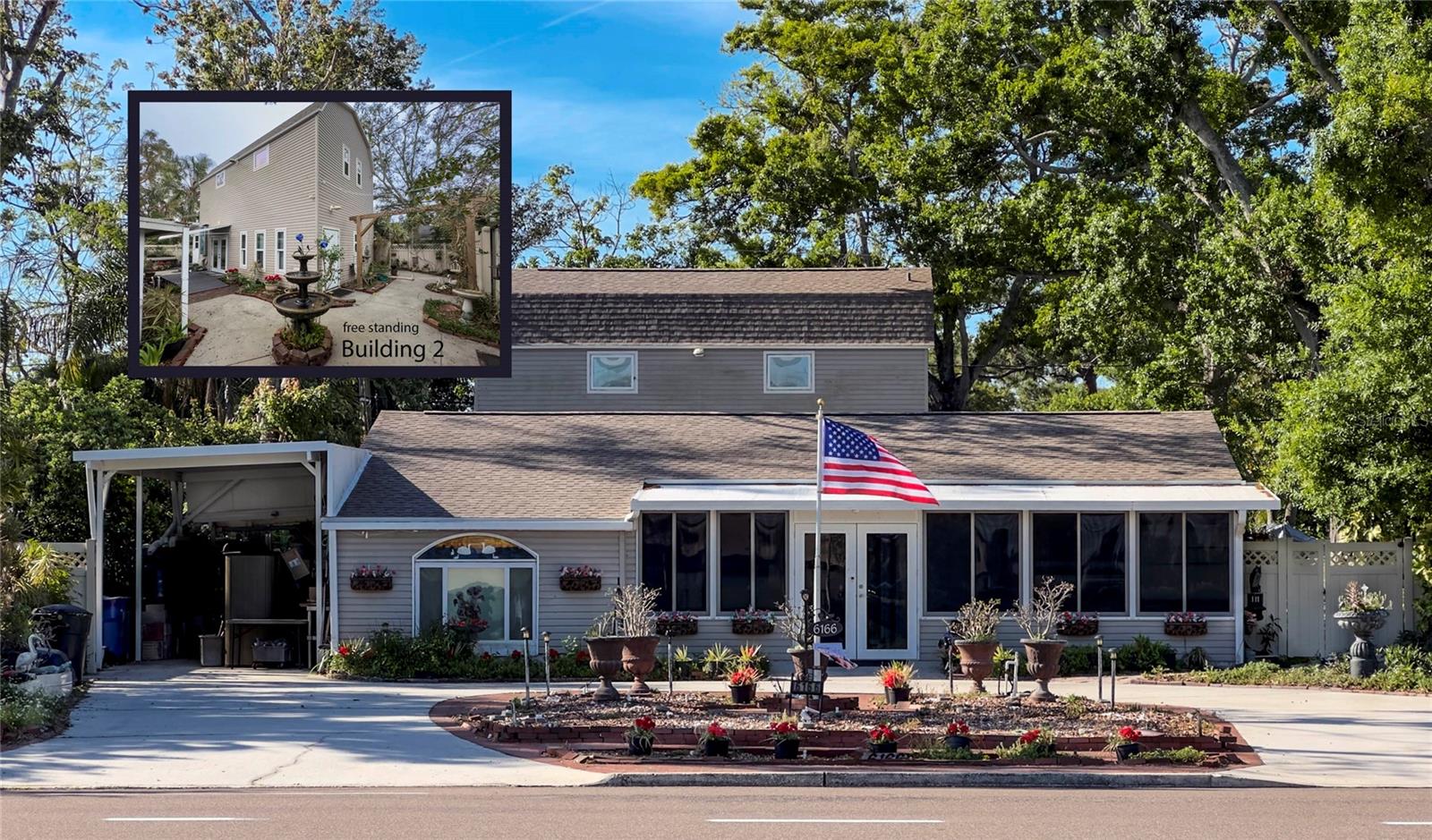 Looking for space, style, and flexibility? This charming 2-bedroom, 1-bath home with 1,486sf of living area includes an amazing 2-story detached 960 square foot building built in 2006 with its own A/C, full bath, and luxury vinyl floors — 2 buildings, a total of 2,400 square feet, ideal for a home office, studio, or guest space, including the both patio's square footage: 3,358 square feet. This property also qualifies for lender credits! A converted former garage can easily be made a bedroom and, there is plenty of room to add another bathroom. The main house features a bright, updated kitchen, open living spaces, and a sunny Florida room in back and a Florida room in the front are perfect for relaxing. Recent upgrades include new roofs (2024) and updated systems for peace of mind. The landscaped yard is low maintenance - no mowing and offers plenty of parking — even for an RV or boat! Located near local shops, parks, schools, and just a short drive to the beach and downtown St Petersburg. No flood insurance required! This home has room to grow, work, entertain and unwind. Opportunities like this don’t come often — schedule your tour today before it’s gone! This property is not ordinary, it's extraordinary. Complete list of upgrades and maintenance is available.