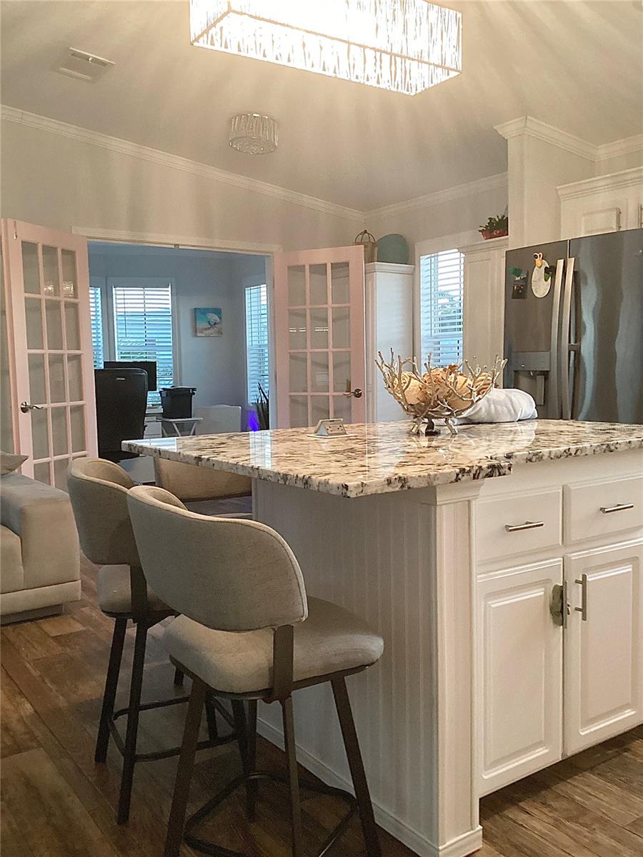 Welcome to Harbor lights, one of St Pete’s premier 55+ manufacturered home parks!! This perfectly located waterfront and gated community is where you’ll find one of the only elevated homes in this entire park, and suffered no damage from either Helene or Milton! Your 2018 built 2 bed 2 bath home with a full office comes well appointed with an open floor plan, vaulted ceilings, wood floors, granite countertops, stainless steel appliances, a linear fireplace, your own laundry room with washer and dryer, and a master bedroom complete with an en-suite and walk in closet. Outside you’ll appreciate this elevated home that also comes with an elevated HVAC system, a fully shingled roof, 2 storage sheds, a huge composite wood deck and an oversized covered driveway currently being utilized as extra outdoor space! Harbor Lights is absolutely loaded with amenities that include an Olympic size heated pool, a full clubhouse w work-out facilities, a library, numerous outdoor lounging spaces complete w sun blocking umbrellas and lounge chairs, multiple shuffleboard courts, a tiki hut viewing area, a huge fishing pier with a fish cleaning station, and a fully equipped marina right next door to park your boat! Harbor Lights is exceptionally located only 5 mins from the famous Pinellas County beaches and right down the road from the popular Tyrone commerce strip where you’ll notice plenty of upscale shopping/dining/entertainment choices. You’re also within a 20 min drive to PIE, TIA, DTSP, and dozens of upscale golf courses! Bring your golf cart! Call or text today for your showing!
