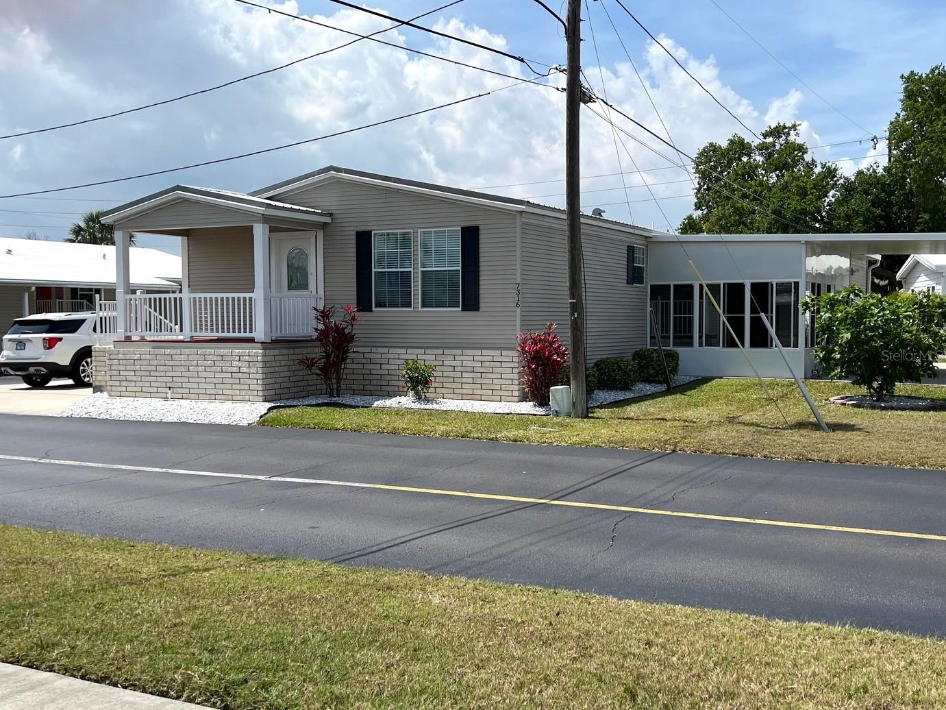 Seller update: Offers will be considered with property unfurnished and without golf cart! Spacious and Well-Built to Wind Zone III Standards, 2011 Palm Harbor, Double-Wide on Two (2) Lots in the Premier Waterfront Community of Americana Cove! This Turn-Key Vacation Home is being *Offered with Golf Cart and *Fully Furnished, with Nearly New High-End Recliners and Electric Fireplace in Living Room, Great Room Layout Perfect for Entertaining, *Durable Metal Roof, Convenient Double Extended Carport with Attached Enclosed Florida Room, Storage Room/Garage for Golf Cart, and Two (2) Additional Parking Spaces Adjoining the Home. *No Flooding, *No Wind Damage here! *Price includes Share for the Lot and *Ownership in the Co-op. This Uniquely Situated Home is Just a Brief Stroll Away from the Community's Fabulous Waterfront Clubhouse, Pool, Fitness Center, Billiards Room, the Marina Docks and Newly Surfaced Boat Ramp. Watch the Gorgeous Florida Sunrise from your Front Porch, Enjoy Outdoor Breezes from your Enclosed Florida Room with Large Sliding Windows and Take a Golf Cart Ride to the Waterfront Park Facing the Mangroves. Enjoy the Home's Roomy Feel with the High Cathedral Ceilings Throughout, the Custom Tray Ceiling in Living Room, the Natural Light Reflecting Inside. The Kitchen and Bar Seating Area, Adjoining Dining Area Will Make Entertaining Easy and Fun! Nearby is Trendy Downtown St Pete, Numerous Eating Establishments, Museums, Clearwater Beach, Tampa International Airport, The Tampa Bay Lightning Hockey Team and So Much More! You'll Love This Home and Living at Americana Cove!