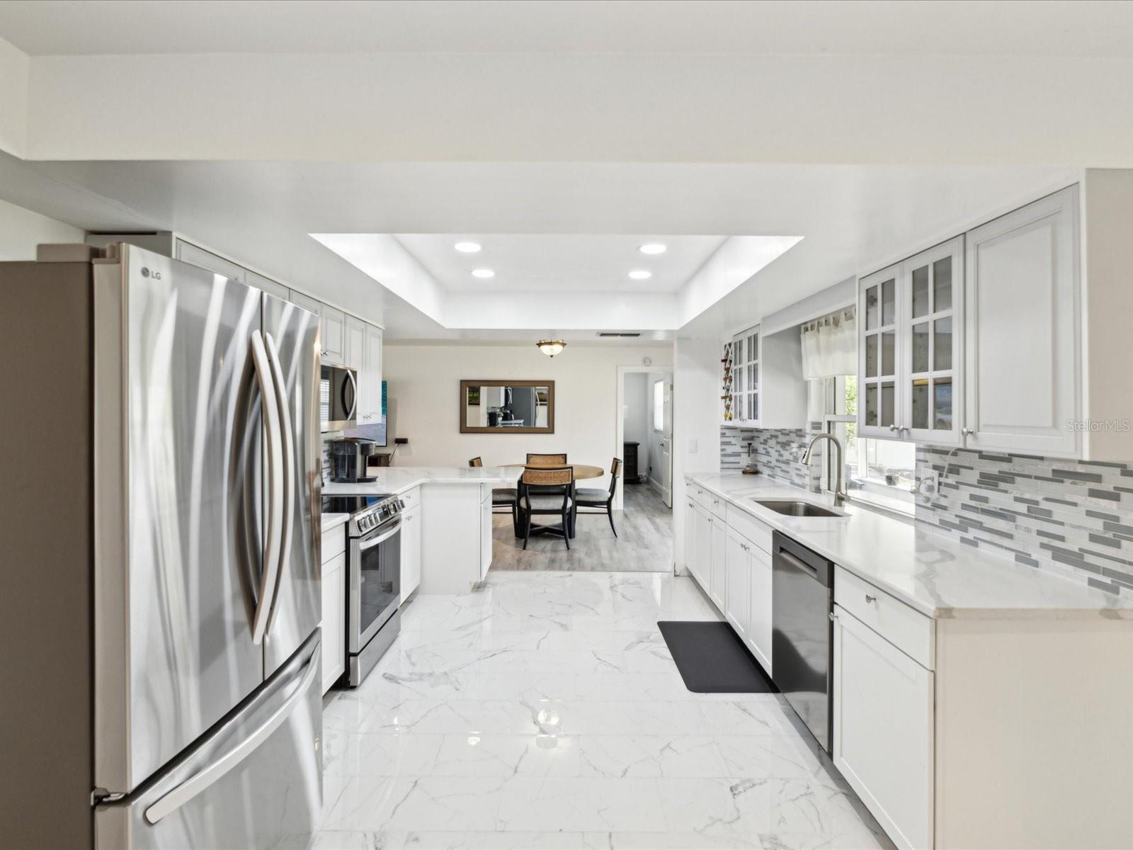 *NEW PRICE IMPROVEMENT*Welcome to your bright and beautiful home in the vibrant Shore Acres neighborhood! TURN KEY charming 3-bedroom, 2-bathroom mid-century modern style home offers 1,725 square feet of modern living space complete with a 2 car garage. Completely renovated, this home boasts contemporary updates throughout, providing a fresh and inviting atmosphere. *This property did have water intrusion during the previous storms and has since been remediated and renovated.* Property is also listed as rental on MLS #TB8367723. Step inside to discover a bright and airy layout featuring plantation shutters in the living room, and enjoy the sleek laminate and tile floors underfoot. The kitchen is a chef's delight with stainless steel appliances and luxury quartz countertops. An inviting breakfast nook gives an extra space for casual dining. The primary bedroom offers a luxurious walk-in closet and ensuite. Designed as a split plan that is perfect for family or guests to enjoy their own privacy. The formal dining area provides a separate space for those special occasions. Two sets of sliding glass doors seamlessly connect to the enclosed lanai—a perfect spot for relaxation or entertaining and bringing the outdoors in. The expansive 11,186 square foot lot is a true outdoor oasis, offering plenty of room for gardening, storage, or even the addition of a pool. This pet-friendly property includes a newer roof (2024) & HVAC (2024) with 10 year warranty. Located in a golf cart-friendly community known for its holiday parades and proximity to parks, water activities, and downtown St. Pete, this home is truly a gem. New YMCA is minutes away with community pool. Public boat ramp, parks and playground are also right there in the neighborhood! Arrive in downtown St. Pete in minutes and adventure and enjoy it's award winning restaurants, pier, many museums, art galleries, boutique shopping, concerts and festivals in waterfront parks, the historic Vinoy Hotel and Saturday morning market. Don't miss your chance to make it yours!