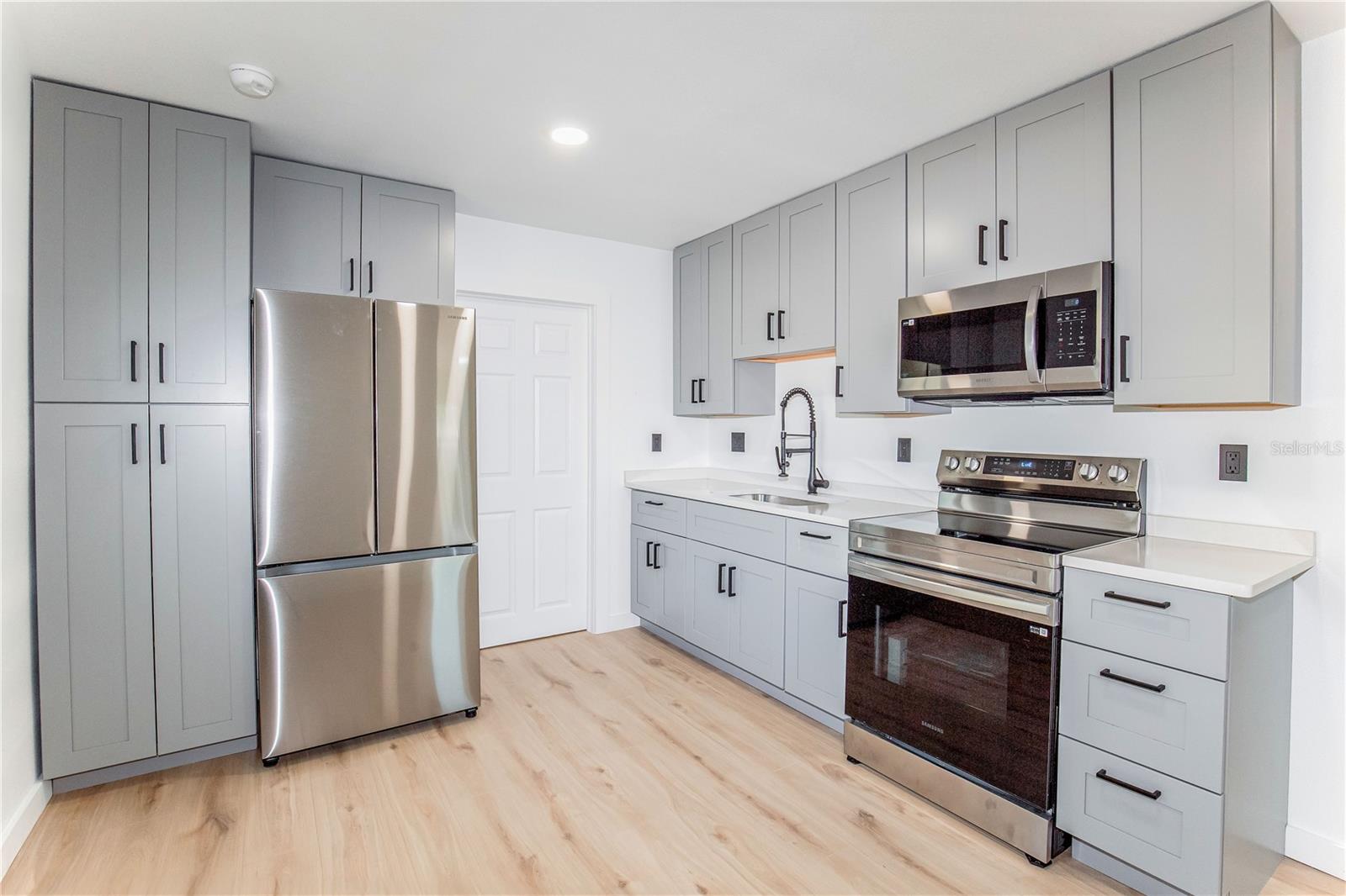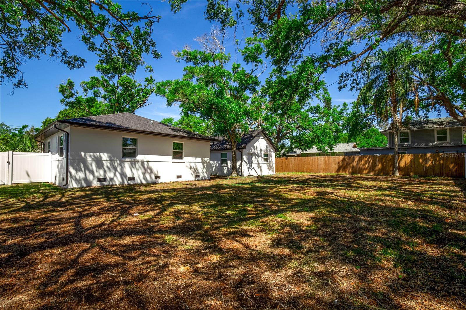 Huge backyard! Double lot! Step inside this beautifully upgraded home, where nearly everything has been transformed to give you a fresh, contemporary living experience. Though serene, this is a property on a large double lot, and it's possibly one of the rarest chances you'll get—not just to live in a house but to put up another house in this lot, including an ADU. Only about seven minutes of drive time to downtown St. Pete and 13 minutes from the beach, the property affords all the urban settings and beach riding too. This home has undergone a meticulous improvement job top to bottom by licensed professionals, who laid down quality craftsmanship. New roof, fascia, soffits, and gutters are built to last, while the entire exterior of the house is freshly painted to enhance curb appeal. A new 6-foot vinyl fence enhances privacy and security and has two access points, while steel security door enhances peace of mind. May I present to you an elegant and easy-to-maintain interior design that makes for a split bedroom configuration with luxury vinyl flooring throughout. To please the home chef, the kitchen is fitted with quartz countertops of elegant sheen and solid wood cabinets with soft-close doors, along with brand-new appliances, including a washer and dryer, all with a five-year warranty. Spa-like yet chic, bathroom have been made over in elegant finishes. It is more than beauty-it is built to last, withstanding forces beyond any definable judgment. New insulation in exterior walls and attic provide comfort all year while curtailing energy costs. All doors, both exterior and interior, have been replaced with solid-core option and complemented by sleek black hardware that adds to the modern sophistication. Every detail has been considered for a functioning blend of modernity and utility. The entire house will ensure that every system, utility, and machinery facility is exceptionally modern in energy efficiency and reliability. The electrical system has been fully rewired, and a central new HVAC system with new ductworks is available to keep the residence comfortable throughout the year. The entire plumbing system has been replaced, while new drywall installation complements the overall clean appearance of the interior. New impact windows not only add character but also provide extra protection, security, soundproof and energy efficiency. The existing garage is primed for conversion into an accessory dwelling unit (ADU) with minimal effort. It already features concrete block walls, new impact windows, and a new roof, plus water and sewer connections are in place. The house comes with one-year warranties for HVAC, plumbing, and electrical systems and five years for the roof. This magnificent home is truly a rare opportunity. Leave out the turn-key home, flexible house with development potential, and any other kind of living arrangement that may fit your vision: this one checks all boxes. Totally unbeatable location and modern upgrades make this home a piece of luck for investors in the thriving St Petersburg real estate market. So don't let this exciting opportunity to buy an amazing, fully-renovated residence in the heart of St. Petersburg's slip away!