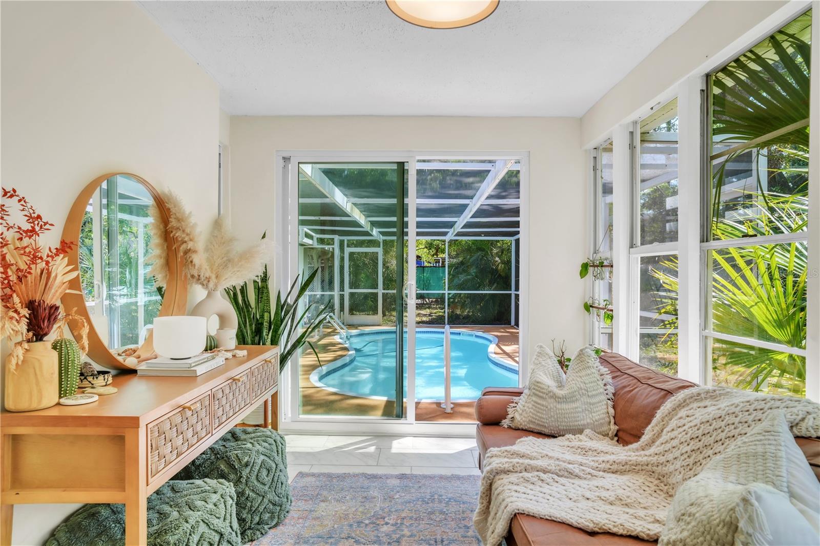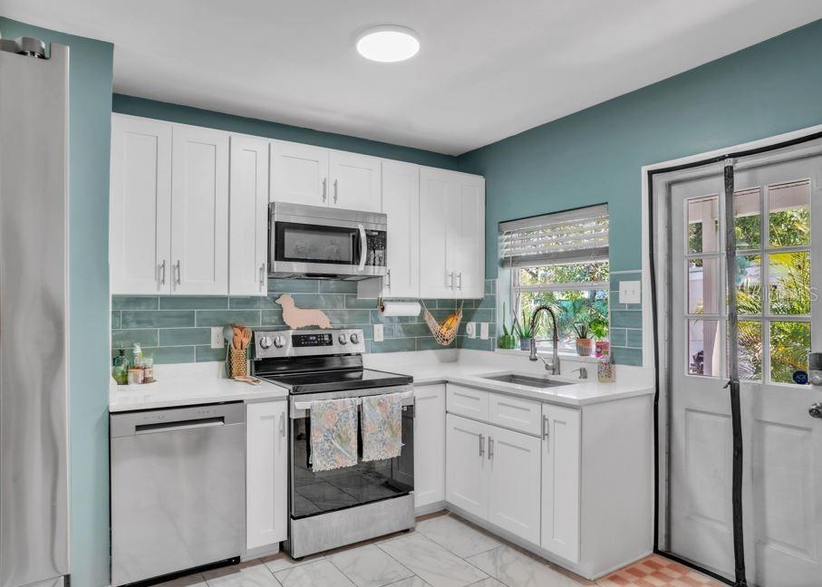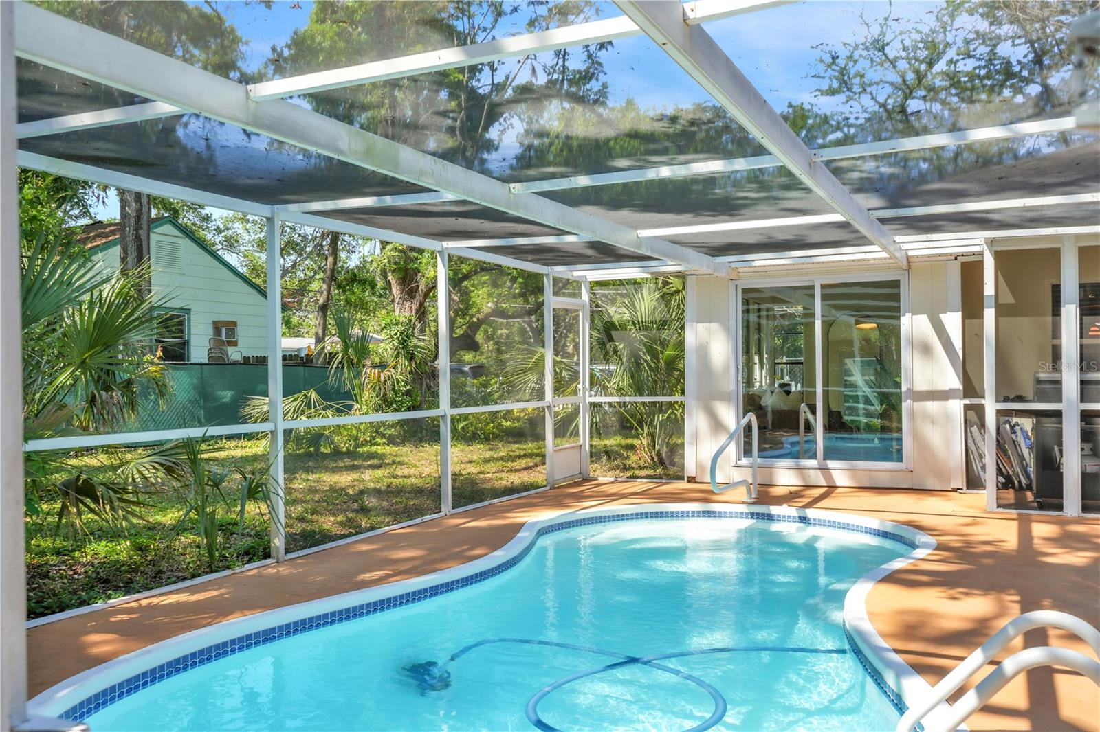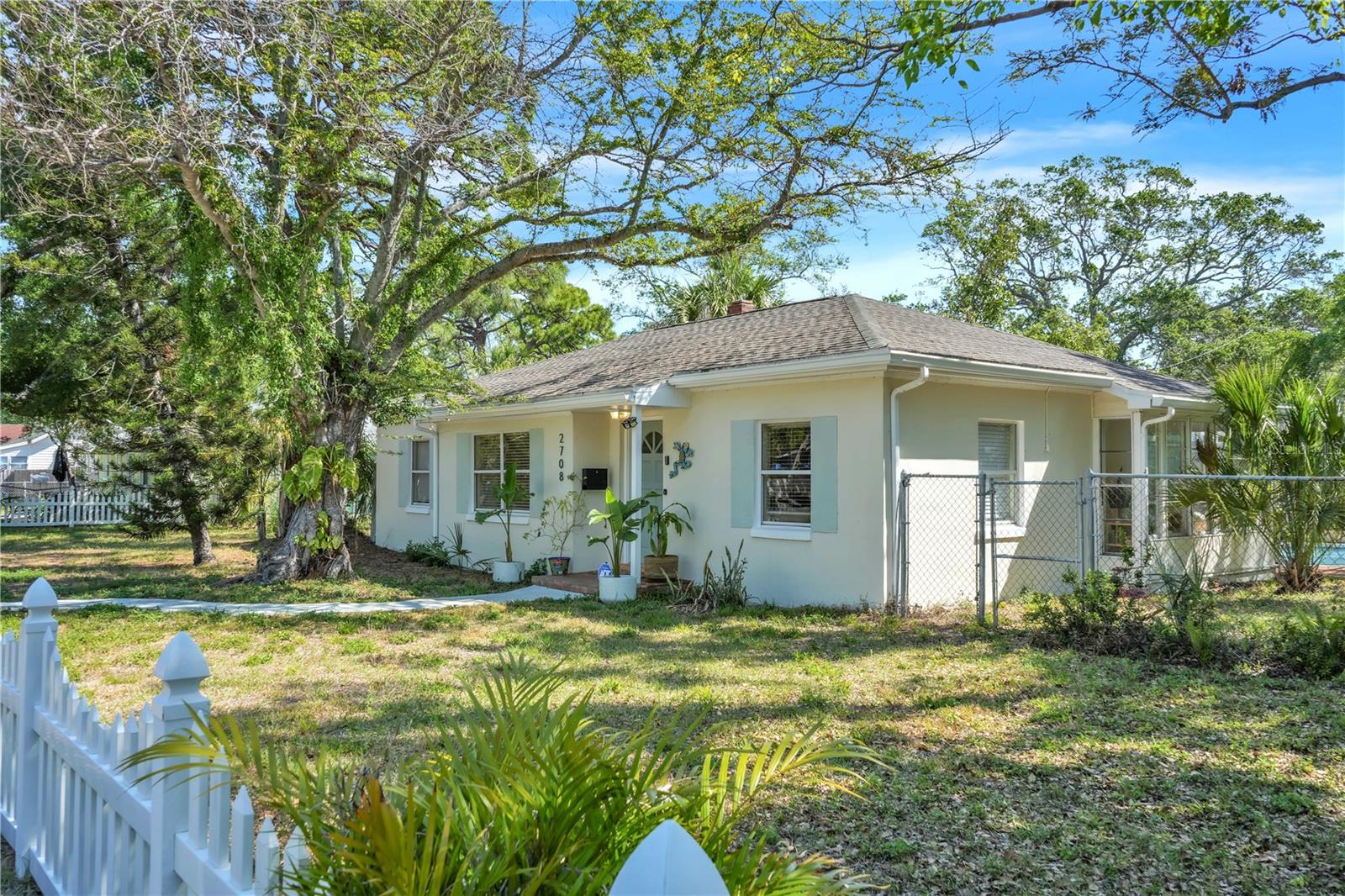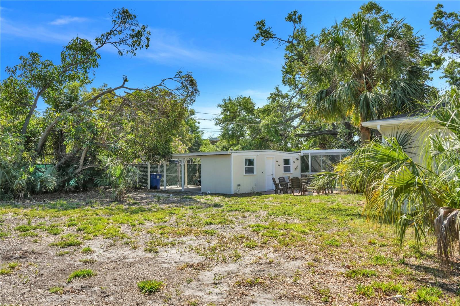 Welcome HOME to this charming, versatile, beautifully updated pool home in Harbordale. Located just 2 miles south of downtown St. Pete! This 3-bedroom, 1-bath main home features a bright Florida room overlooking the pool with an abundance of natural light. A separate pool house offers a dedicated laundry area, extra storage and a second full bath with shower. Situated on a fully fenced .32-acre double lot, the property boasts mature landscaping, mango trees with plenty of room to add an additional dwelling unit in the back. The covered two-car carport with alley access offers security, or could be used as a fitness area. Major 2023 updates include: new roof (main house, pool house, carport), A/C & ductwork, hot water tank, electrical system, quartz & stainless kitchen, washer/dryer, flooring, window treatments, updated bathrooms, pool equipment (pump, filter, skimmer, panel), and added insulation. New plumbing updates in 2023. Located on a quiet street in an up-and-coming area, this move-in-ready home is a must-see!