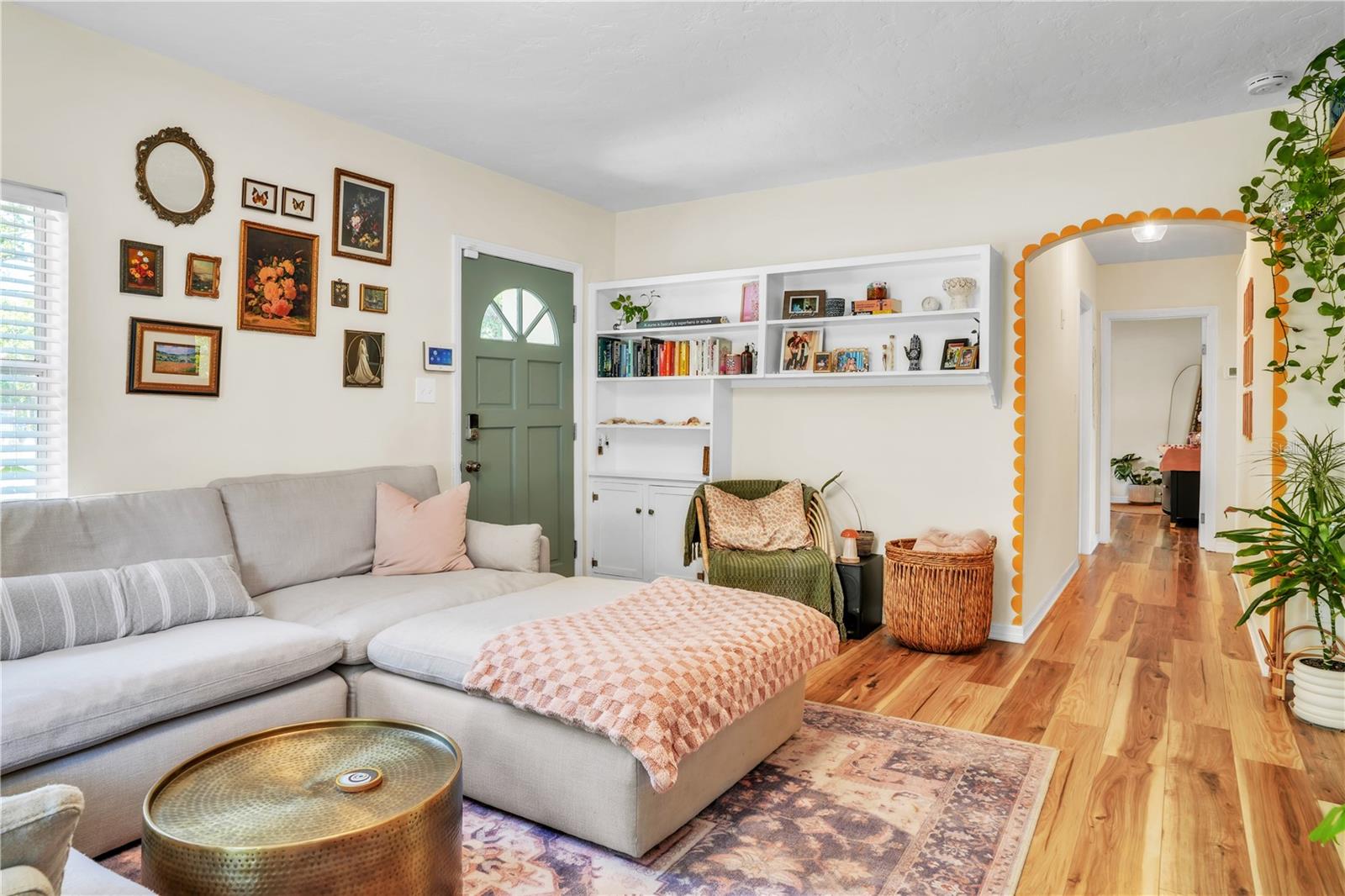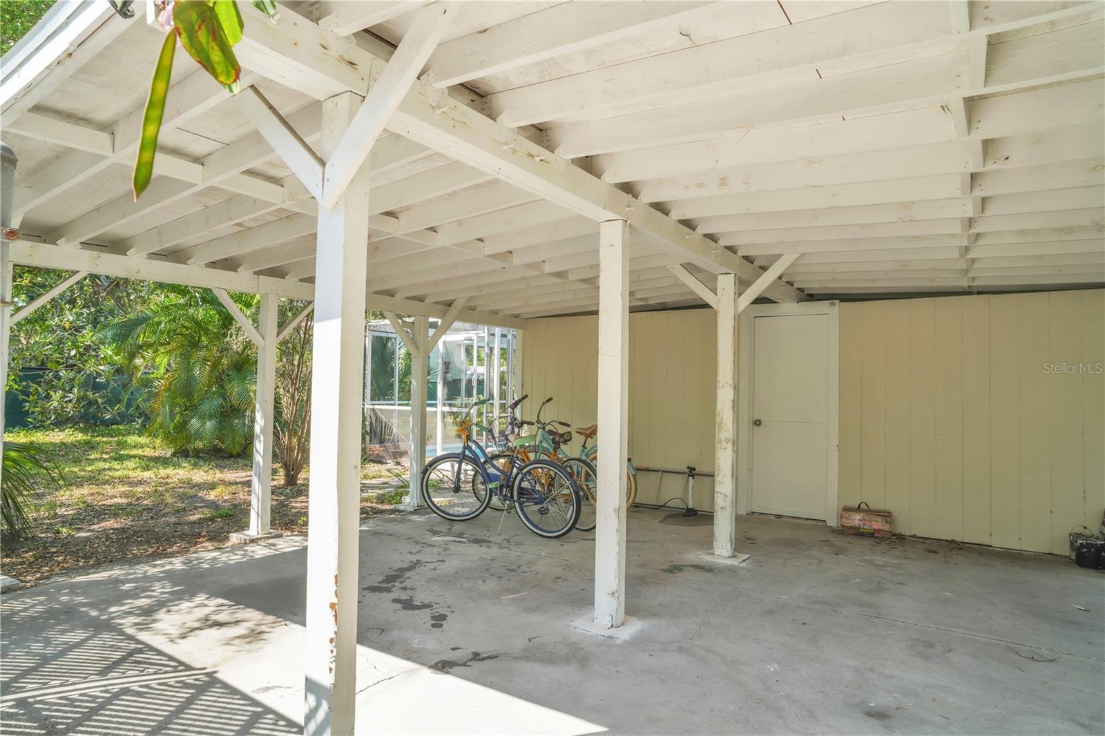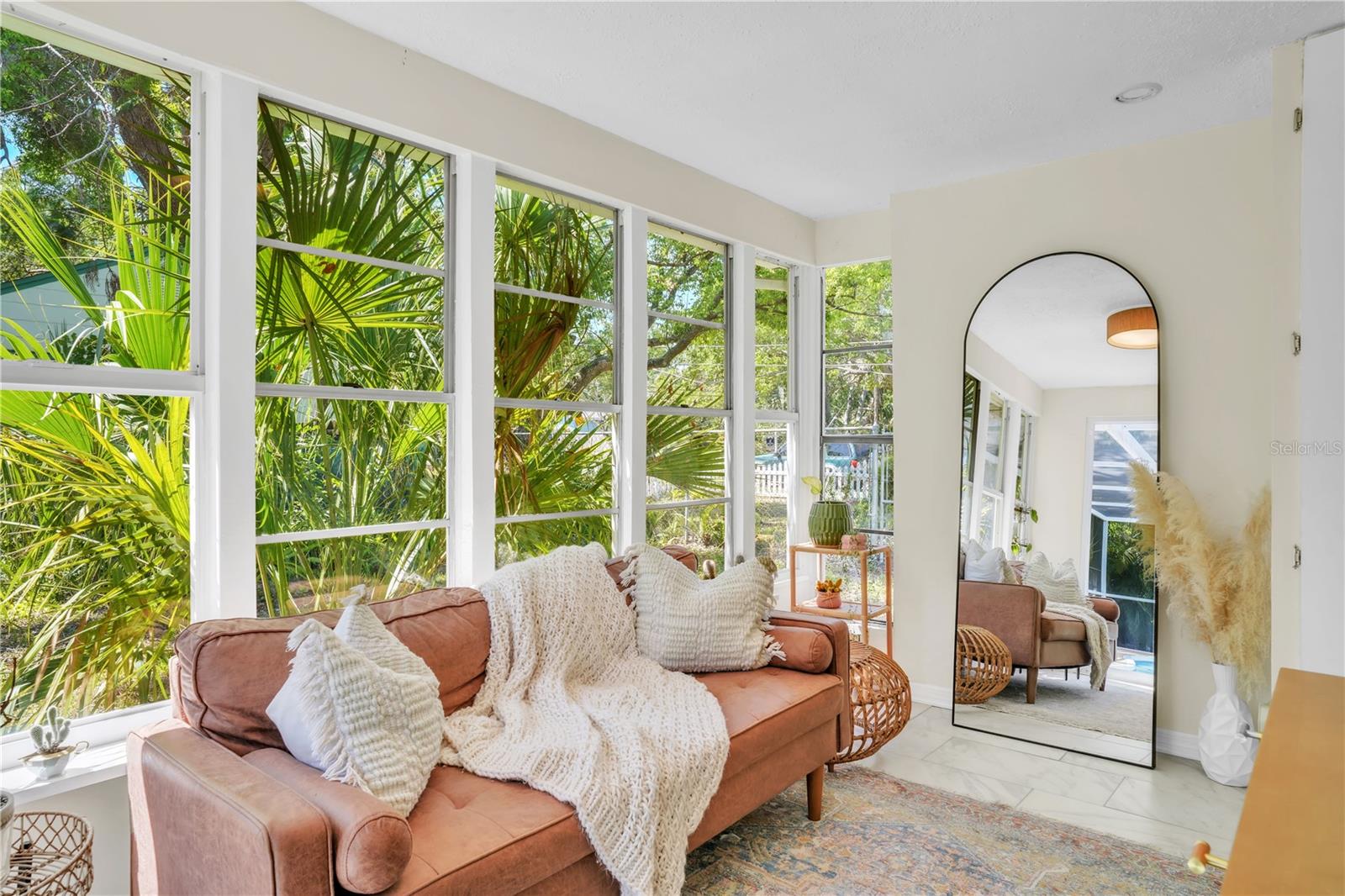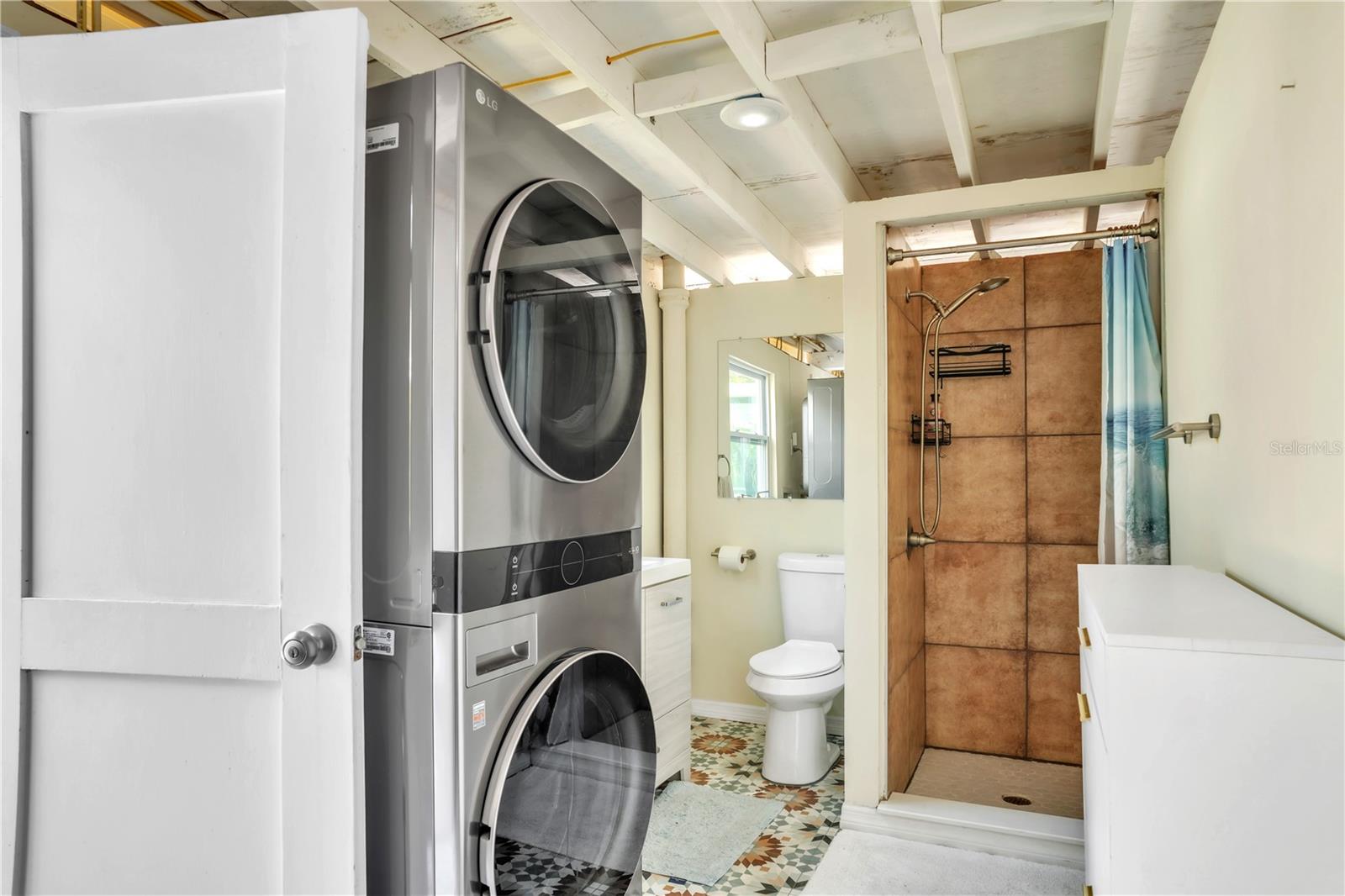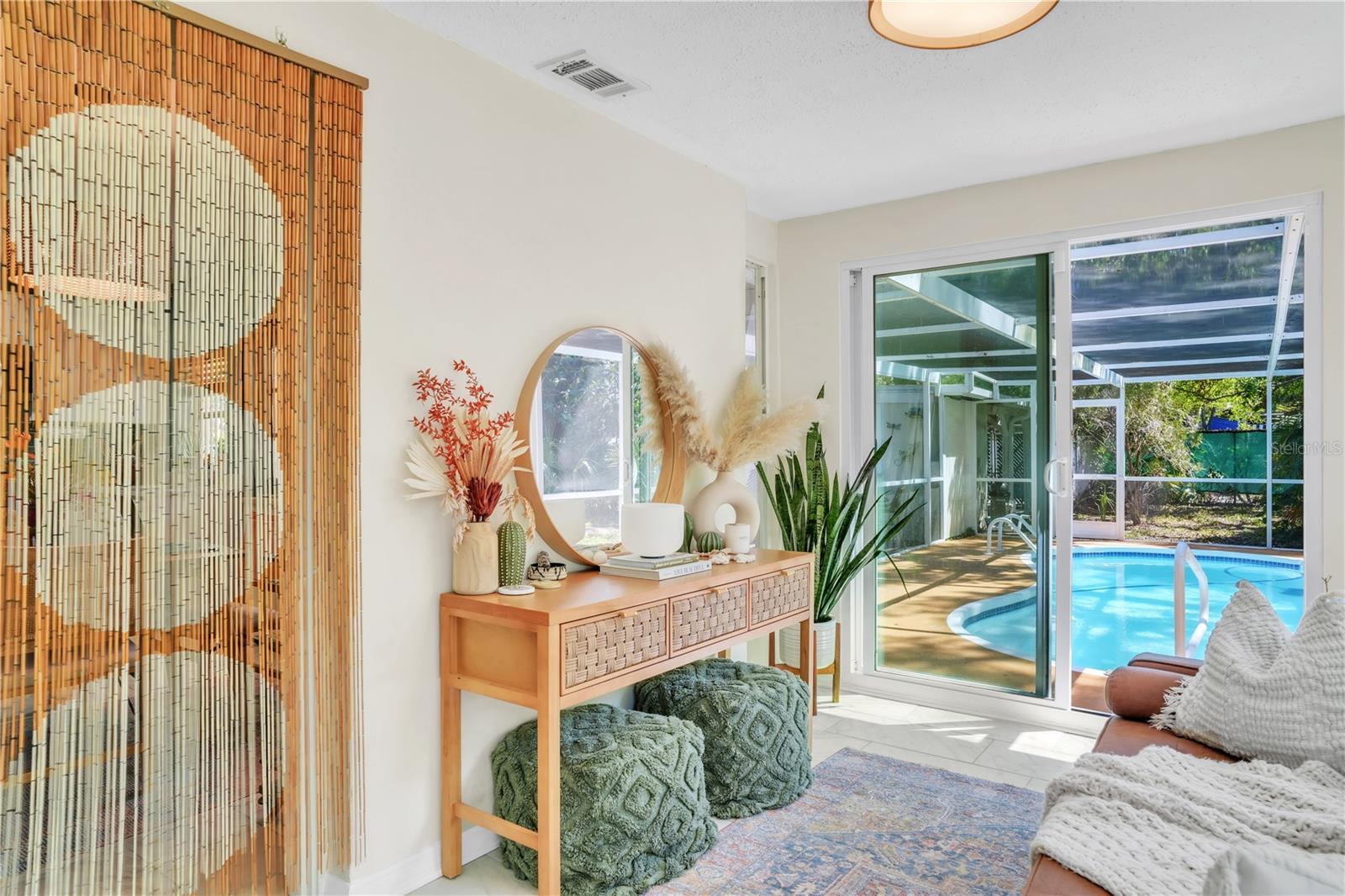 Welcome HOME to this charming, versatile, beautifully updated pool home in Harbordale. Located just 2 miles south of downtown St. Pete! This 3-bedroom, 1-bath main home features a bright Florida room overlooking the pool with an abundance of natural light. A separate pool house offers a dedicated laundry area, extra storage and a second full bath with shower. Situated on a fully fenced .32-acre double lot, the property boasts mature landscaping, mango trees with plenty of room to add an additional dwelling unit in the back. The covered two-car carport with alley access offers security, or could be used as a fitness area. Major 2023 updates include: new roof (main house, pool house, carport), A/C & ductwork, hot water tank, electrical system, quartz & stainless kitchen, washer/dryer, flooring, window treatments, updated bathrooms, pool equipment (pump, filter, skimmer, panel), and added insulation. New plumbing updates in 2023. Located on a quiet street in an up-and-coming area, this move-in-ready home is a must-see!