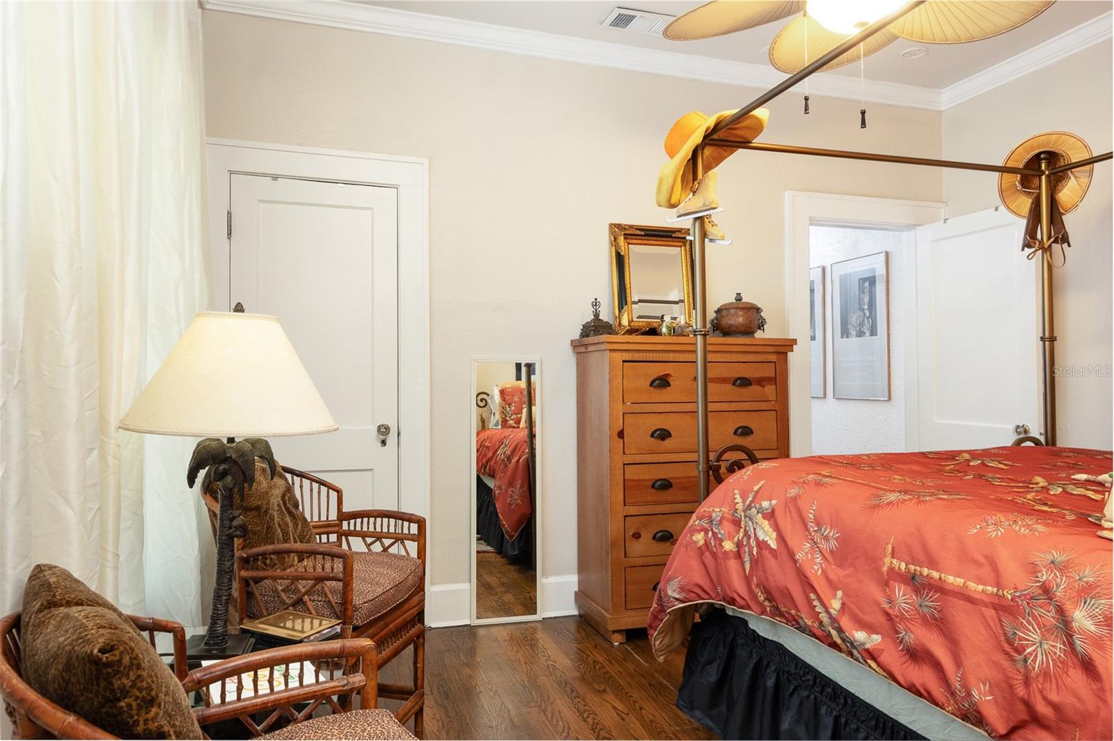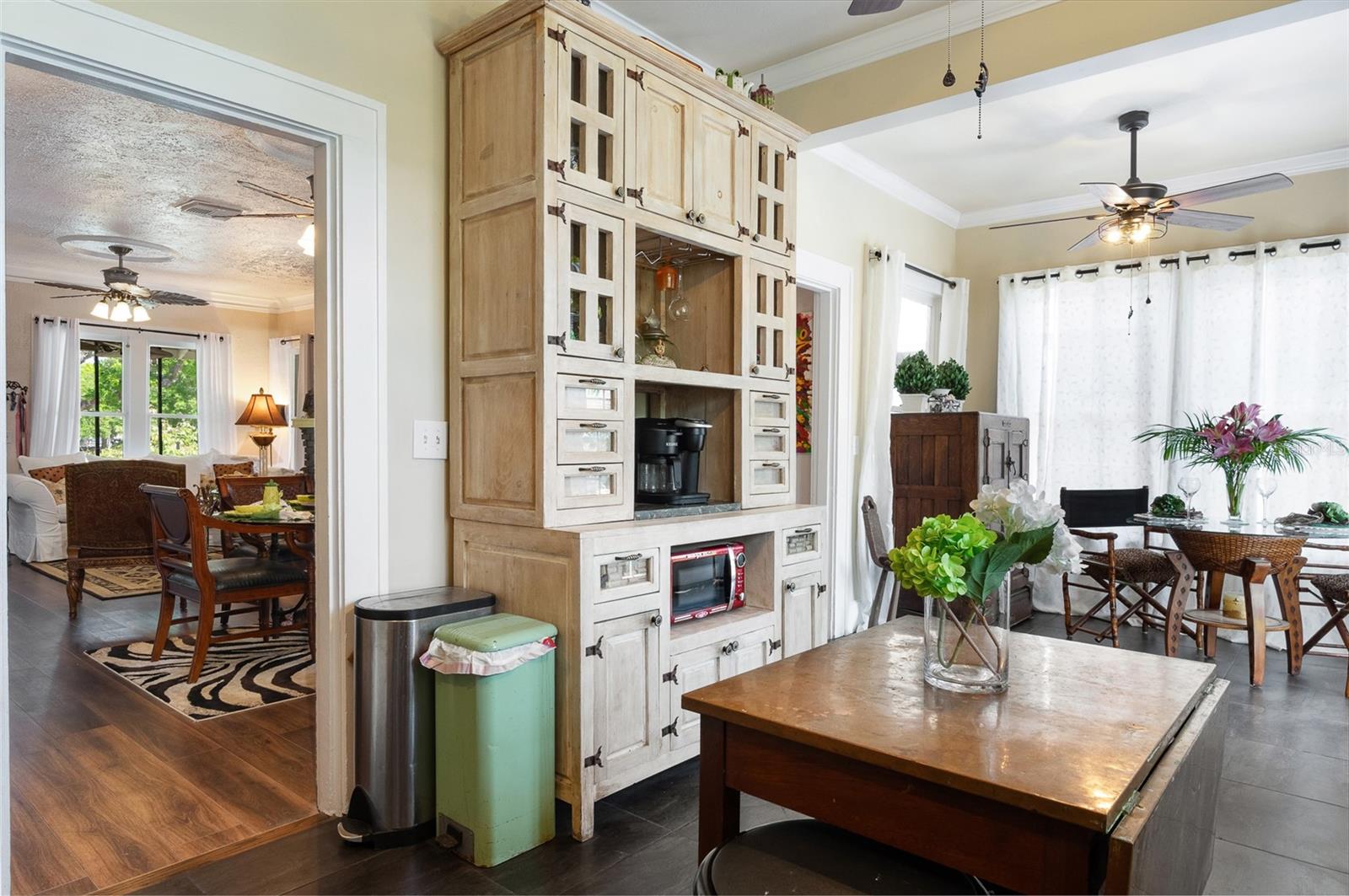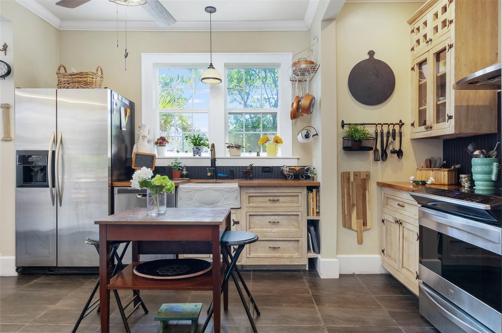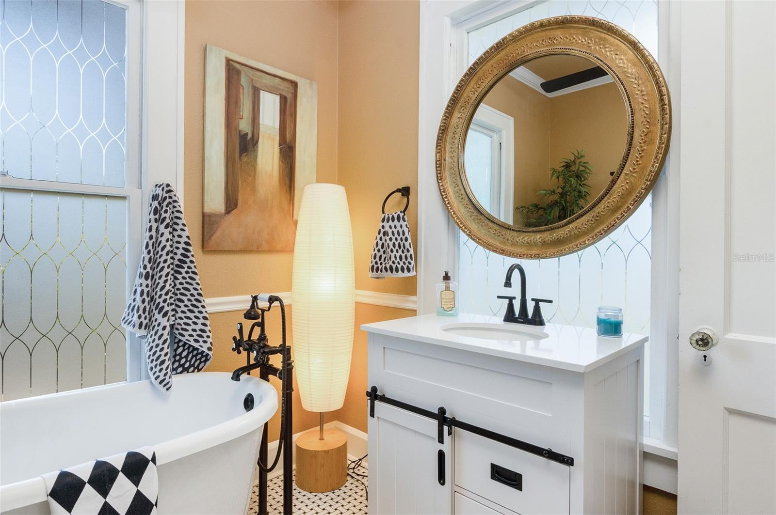 PRICE REDUCTION.… you have waited 105 years for this Charming American Craftsman Bungalow to become available! First…The Neighborhood-Historic Kenwood. On the National Register of Historic places, Kenwood was St. Pete’s first “suburb” in 1912. Often praised for its unique architecture… characterized by Craftsman Bungalows, Tudor revival elements, and its emphasis on nature, conservation, strong sense of community and slow pace of life. A community in St. Pete that has NOT pushed out the historic dwellings. Enjoy all of this in a NO FLOOD ZONE. Second…The Location- In the heart of Historic Kenwood, DIRECTLY on arguably the best streetside position viewing beautiful Seminole Park, with green space, mature trees and the historic Pavillion…all from your unobstructed large private screened porch with original tile. Of Course, the Home itself- Built in 1920,this 2 bedroom 2 bath historic gem blends all the charm you would expect with important updates. The 2025 freshly painted exterior has the low-pitched roofs, overhanging eaves and hallmark decorations of the period. The fireplaced (original hearth tile) living room/dining room floods with natural light through multiple large windows and high ceilings with glass sliding doors leading to a large, covered porch. The family-sized designer eat-in kitchen features unique old-world cabinets & stainless appliances… then flows to a rear deck porch viewing a stone patio with a mix of new and mature landscaping. The primary bedroom features a roomy, newly installed stunning bathroom with claw-foot tub. The guest bedroom boasts extra-large windows. The second updated bathroom with tub/shower has all the charm of the 1920’s, as well as a laundry closet with tankless hot water heater and stackable washer/dryer. A combination of original hardwood floors blend well with new complimentary flooring material. Crown molding and original 8” baseboards abound throughout the house including the kitchen. The original large detached garage has new roof in 2024. Other improvements in 2024 include new sprinkler system, new side porch roof & interior paint. The main house roof, and HVAC is new in 2015. The entire lot is privately wood fenced and brick walkway front and back new in 2025. Historic Kenwood…known for its community events, block parties, art walks and “Bungalow Tours”, borders Central Ave with its growing community of eateries and unique shops. The location is unbeatable-close to Downtown St. Pete and Gulf of Mexico beaches. 4-Point inspection completed 2025. *Please see attached sheet for full list of dated improvements.