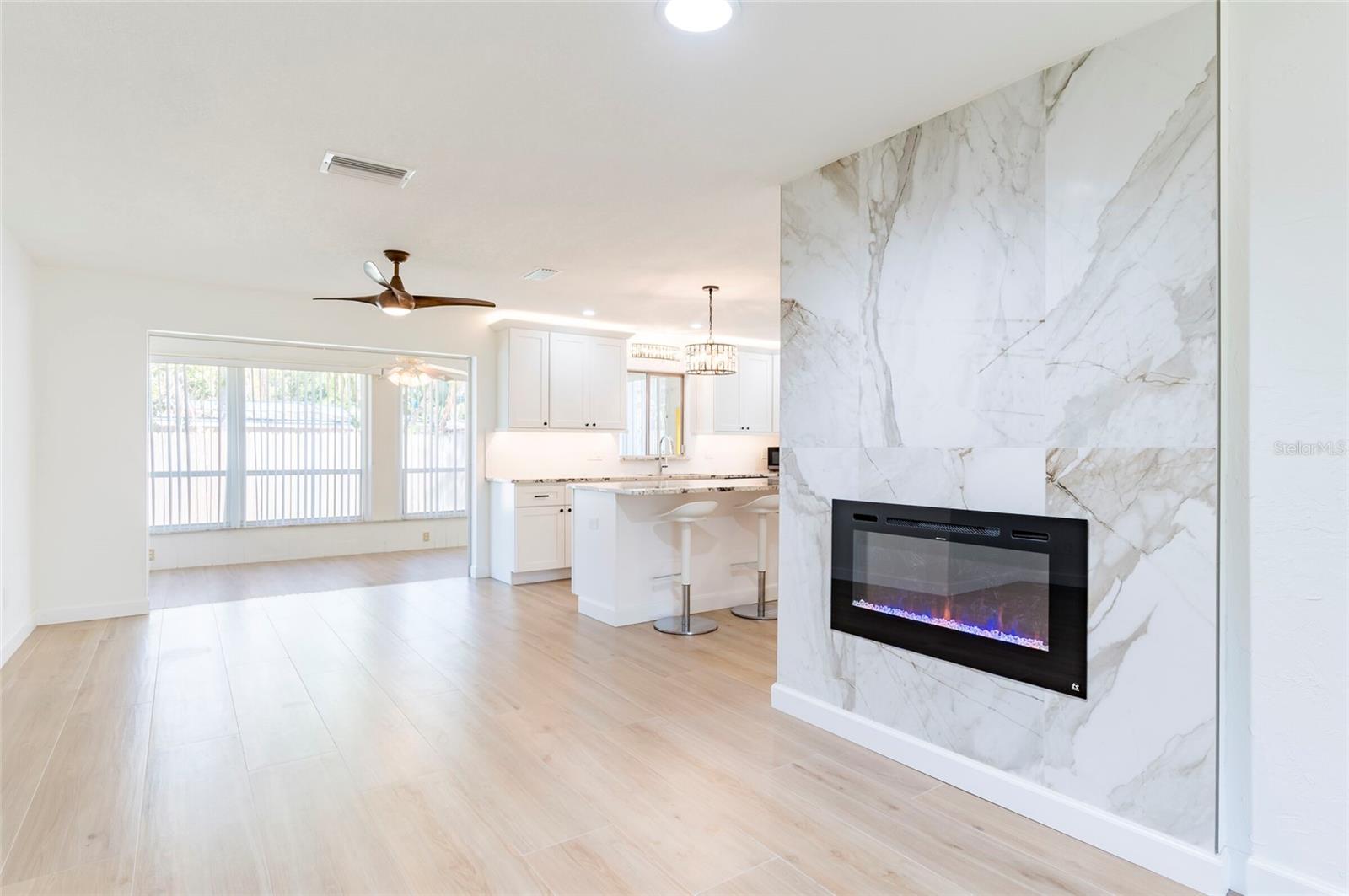 Discover your own piece of paradise in the highly sought after Pink Streets neighborhood of St Petersburg. NO FLOOD INSURANCE REQUIRED. This nicely updated 2 bedroom 2 bath home has a 20 x 10 versatile Florida room that is move-in ready. Step inside this open floor plan featuring tile throughout the house, stylish finishes, custom blinds, hurricane shade system, electric fireplace, updated kitchen with stainless steel appliances, and renovated bathrooms. The Florida room could be a bedroom, office, play area, or slide the doors open all the way to create continuous entertaining space. Laundry room is off the kitchen with a pantry cabinet, access to the side of the home, and entry to a one car garage with an automatic garage door. Fresh landscaping, well irrigation system, fenced back yard, room for a pool, and new sod. Charming front porch to enjoy your morning coffee in this peaceful, historic neighborhood. Metal roof 2023, AC 2021, electric water heater with timer 2021, dishwasher, 2025. Easy access to I-275. You're just minutes away from downtown St Pete, world-famous beaches, boat ramps, marina, and waterfront parks. Don't miss the opportunity to own a piece of St Petersburg's history in our charming Pink Streets community.