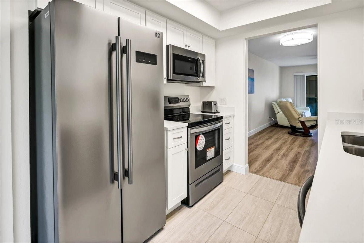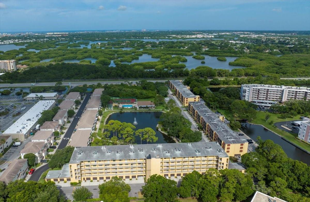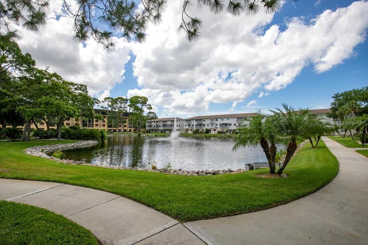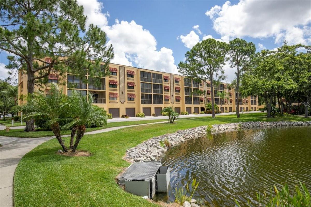 Do not miss the opportunity to purchase this spacious condo in an 'all ages' resort style community. This condo comes with your own personal garage built into the building which is very rare. The unit has been completely remodeled with new kitchen, appliances, bathrooms, flooring, etc. No work needs to be done, this condo is move in Ready. Furniture is also included which is not seen in the pictures. Located on the 2nd floor which makes it easy to use the elevator or walk up the short amount of stairs. Inside utility room with full size washer and dryer. Beautiful views of the pond and grounds from your balcony. This community has the following amenities... Gliding rockers and walking path located around the pond that also has a fountain. The clubhouse can be used for parties or events and also has a fitness room, ping-pong, darts, kitchen, television, library, sauna, men & women bathrooms. Large heated pool, hot tub, large deck, community grill, tennis court, and shuffle board courts. Located very close to the beach (10 min), short distance to Tampa International Airport (35 min), and major highways. Only 8 min to Tyrone mall with many shops and restaurants in that area. There is also a plaza just South of this community that you can walk to which includes a Publix, Pub, Nail Salon, and more.