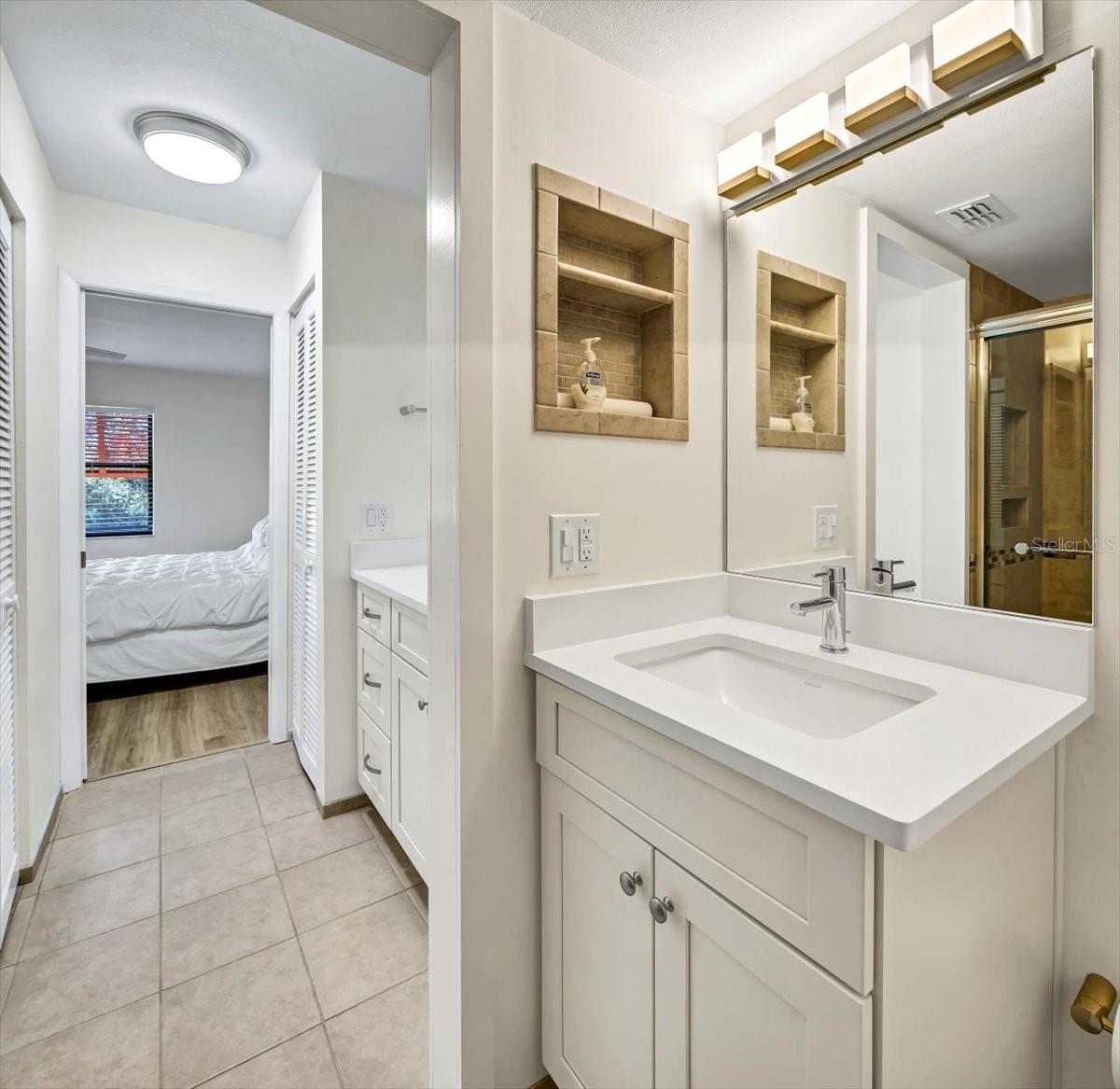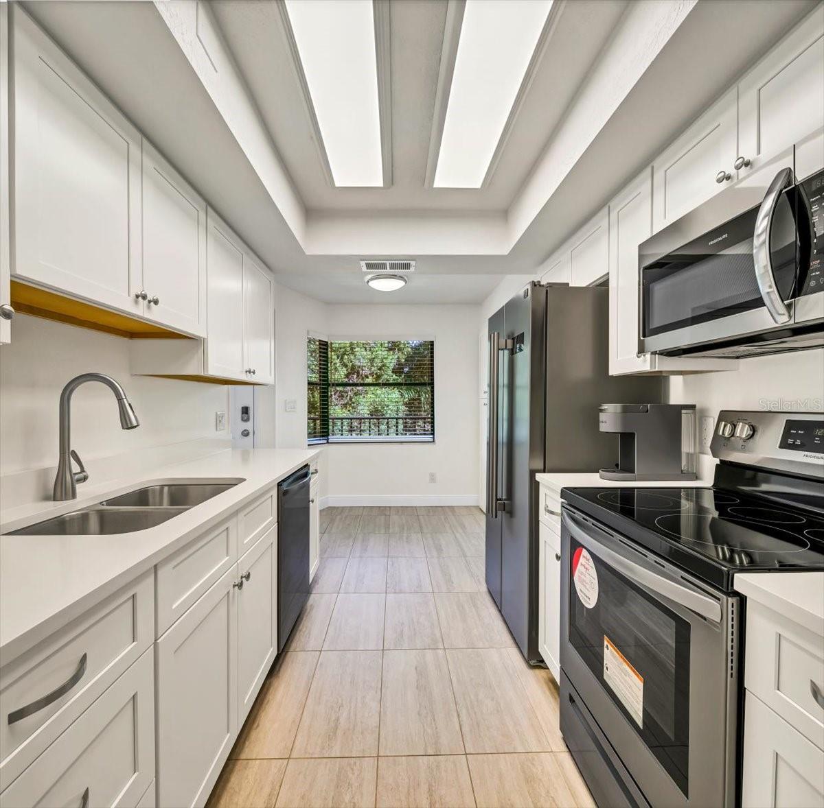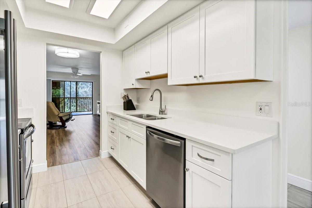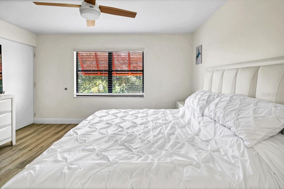 Do not miss the opportunity to purchase this spacious condo in an 'all ages' resort style community. This condo comes with your own personal garage built into the building which is very rare. The unit has been completely remodeled with new kitchen, appliances, bathrooms, flooring, etc. No work needs to be done, this condo is move in Ready. Furniture is also included which is not seen in the pictures. Located on the 2nd floor which makes it easy to use the elevator or walk up the short amount of stairs. Inside utility room with full size washer and dryer. Beautiful views of the pond and grounds from your balcony. This community has the following amenities... Gliding rockers and walking path located around the pond that also has a fountain. The clubhouse can be used for parties or events and also has a fitness room, ping-pong, darts, kitchen, television, library, sauna, men & women bathrooms. Large heated pool, hot tub, large deck, community grill, tennis court, and shuffle board courts. Located very close to the beach (10 min), short distance to Tampa International Airport (35 min), and major highways. Only 8 min to Tyrone mall with many shops and restaurants in that area. There is also a plaza just South of this community that you can walk to which includes a Publix, Pub, Nail Salon, and more.