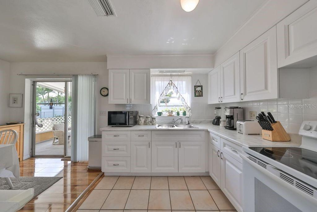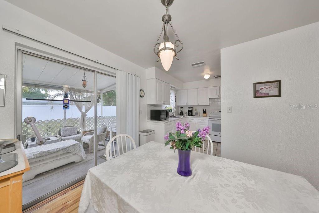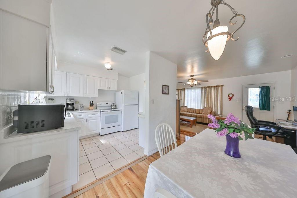 Cozy, comfortable and lovingly maintained home located in a very convenient location, close to schools, Tyrone Square Mall, shopping, restaurants, hospitals, parks, recreation. Short drive to Downtown St Pete and beautiful beaches! Nice kitchen updated with white cabinets (2023). New beautiful wood floors. New roof 2023. AC system 2018. Garage is converted to a living space; it can be used as a family room, office, craft room or the 3rd bedroom, it has attached a full bathroom. Large covered porch off the dining room and kitchen. Utility room in the back of the house with full size washer and dryer. Public record shows 912 sq ft living space. Storage room in the front of the house (part of converted garage). Large private back yard, fenced in. This home can be sold fully furnished. No flood zone and no HOA fees.