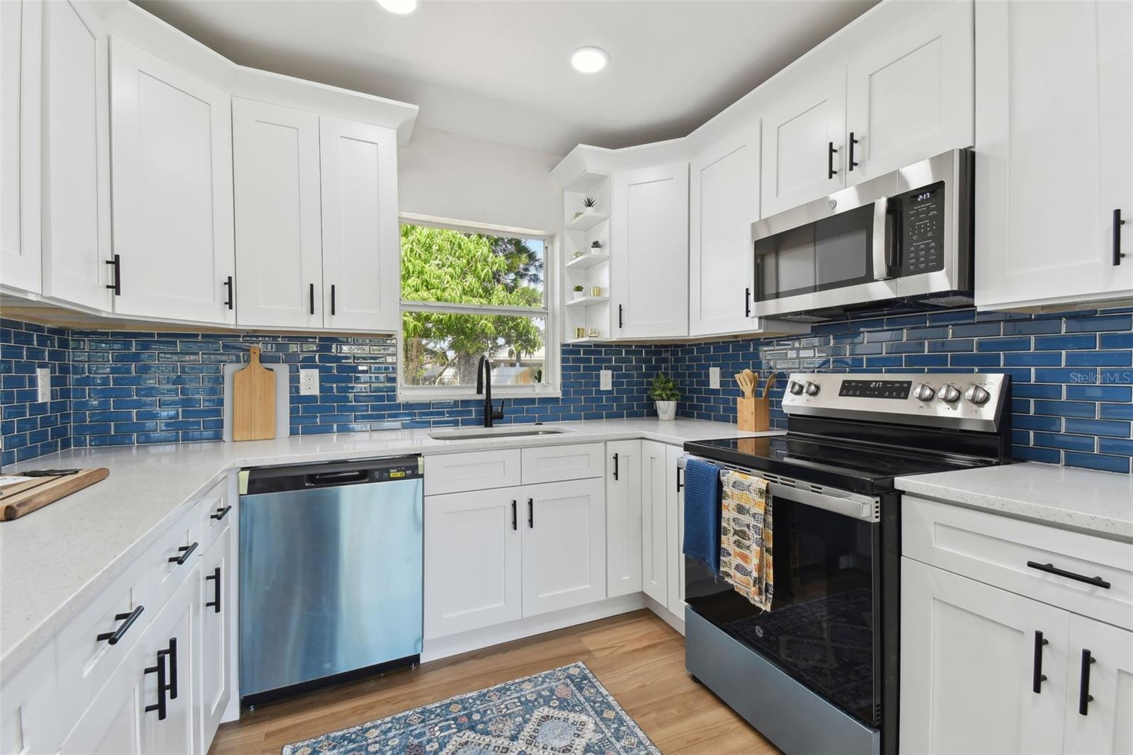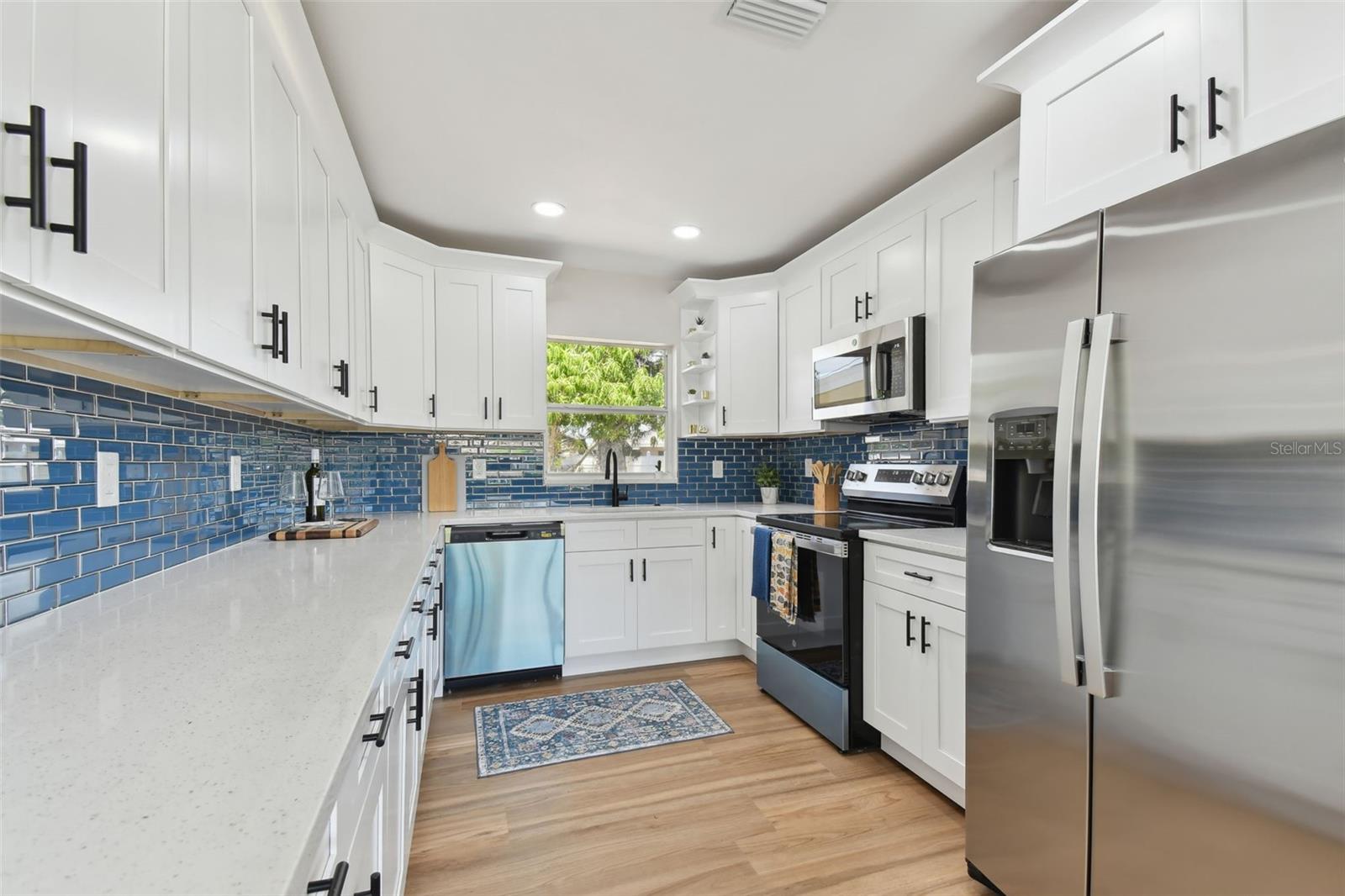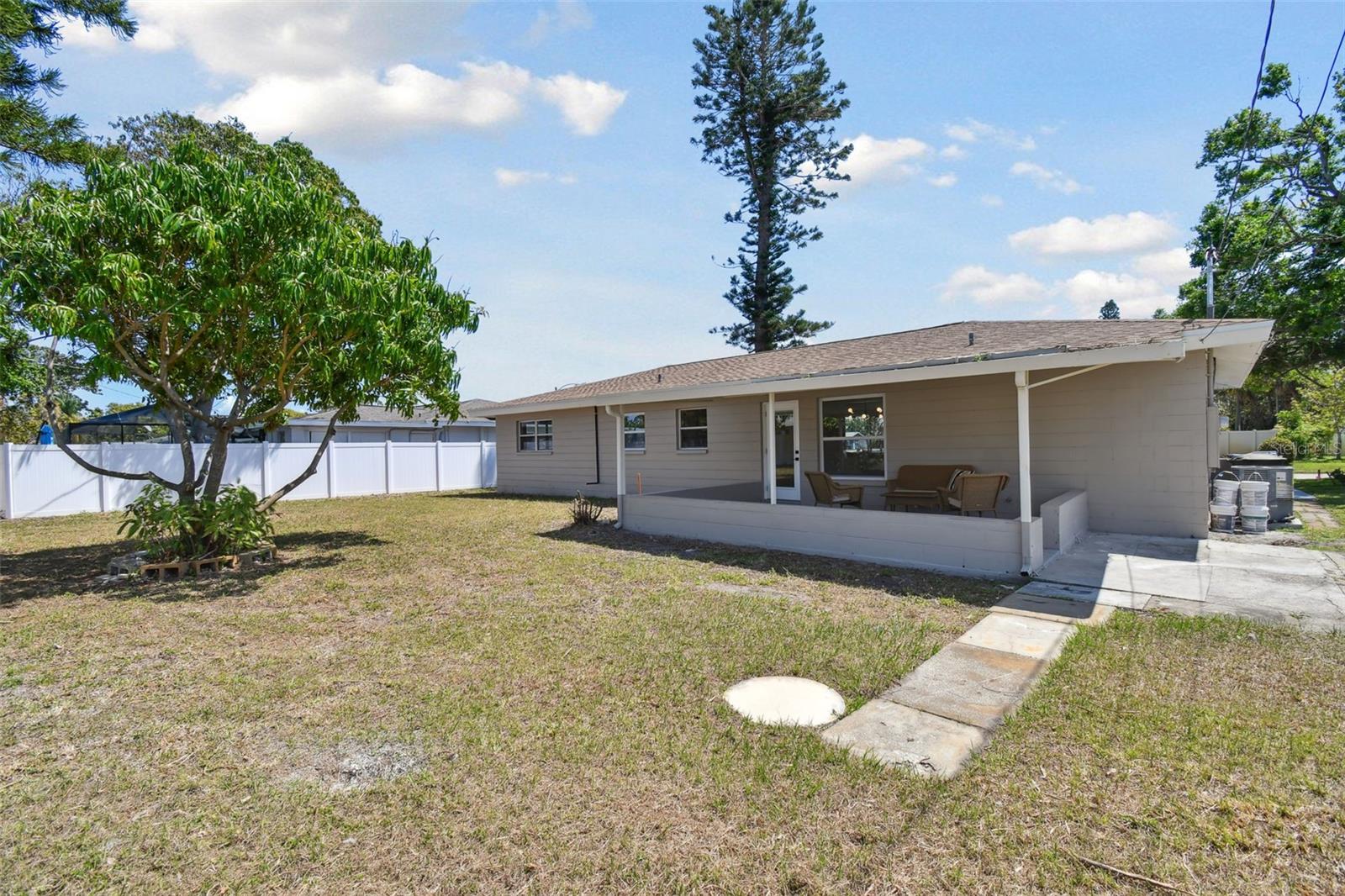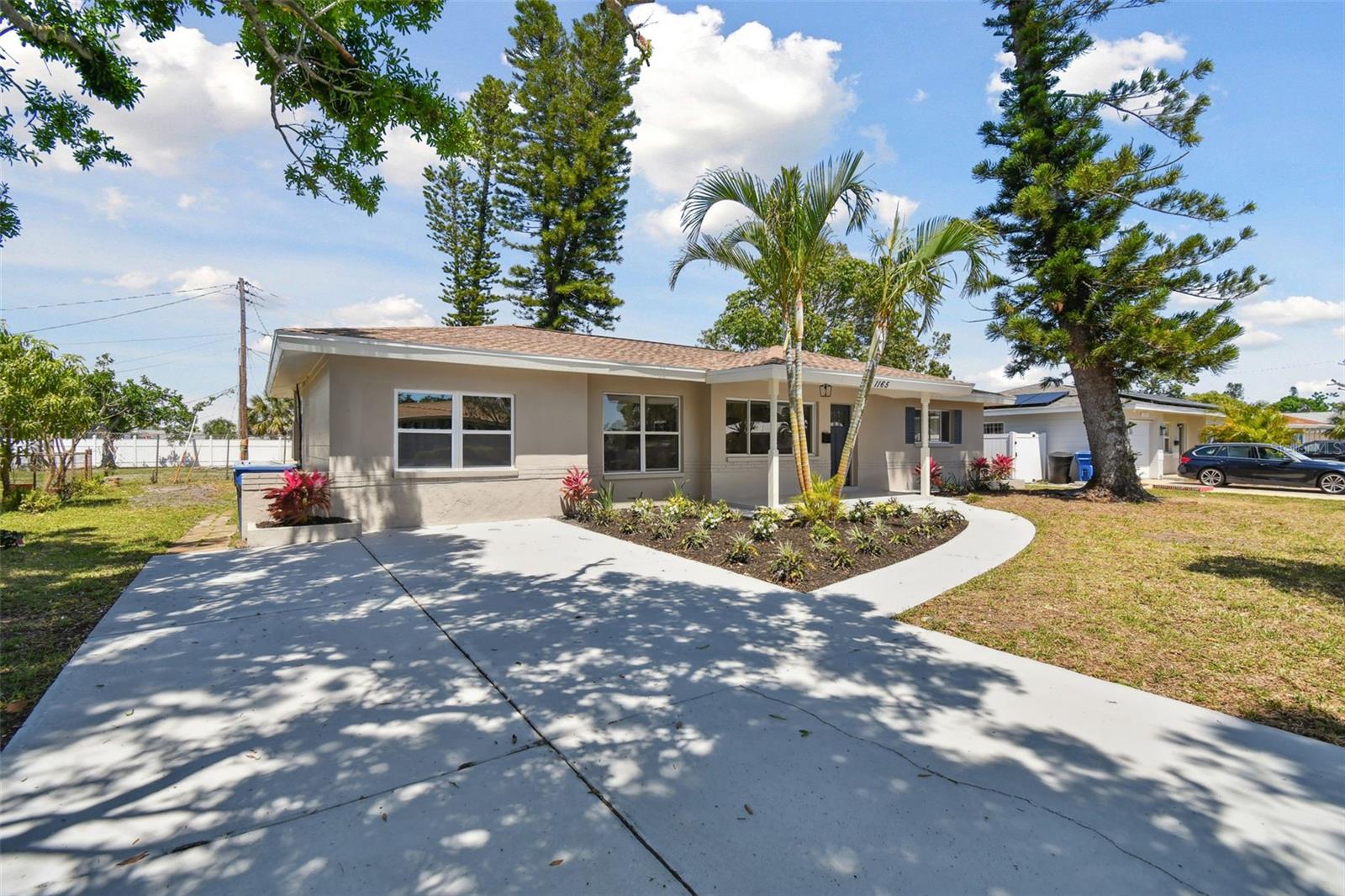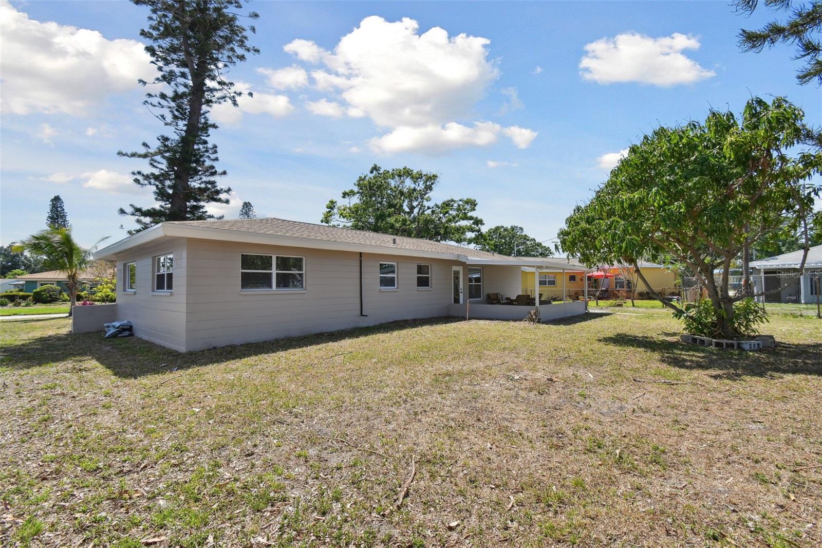 Welcome home to this beautiful and spacious 3 bedroom 2 bath St. Pete home! If you are looking for the perfect starter or family home, look no further. GREAT OUTDOOR LIVING SPACES with a large back porch overlooking a huge yard with enough room for a pool or additional storage. This home has been TOTALLY RENOVATED by the owner and includes upgrades perfectly fit for a first time home buyer or growing family. The totally remodeled kitchen features solid wood cabinets, quartz countertops, stainless steel appliances, custom backsplash, and a designer faucet. The bathrooms feature the same level of upgrades including custom vanity, designer tile, and new hardware. This home is a split plan and the master bedroom features a walk-in closet. Other upgrades include NEW ROOF (2025), NEW WATER HEATER (2025), NEW ELECTRIC PANEL & METER BOX (2025), NEW HVAC (2025), new impact windows in the master bedroom/hall bath/dining room, new flooring throughout, new paint, new LED light fixtures, and MORE!! All of these amenities and upgrades are complimented by the unique curb appeal of the home which sits on a quiet street! This home has many desirable features and is a must see. Please call us or use ShowingTime to set up a showing today!