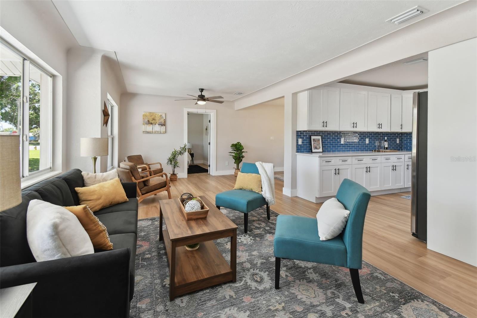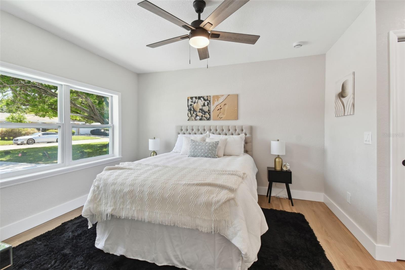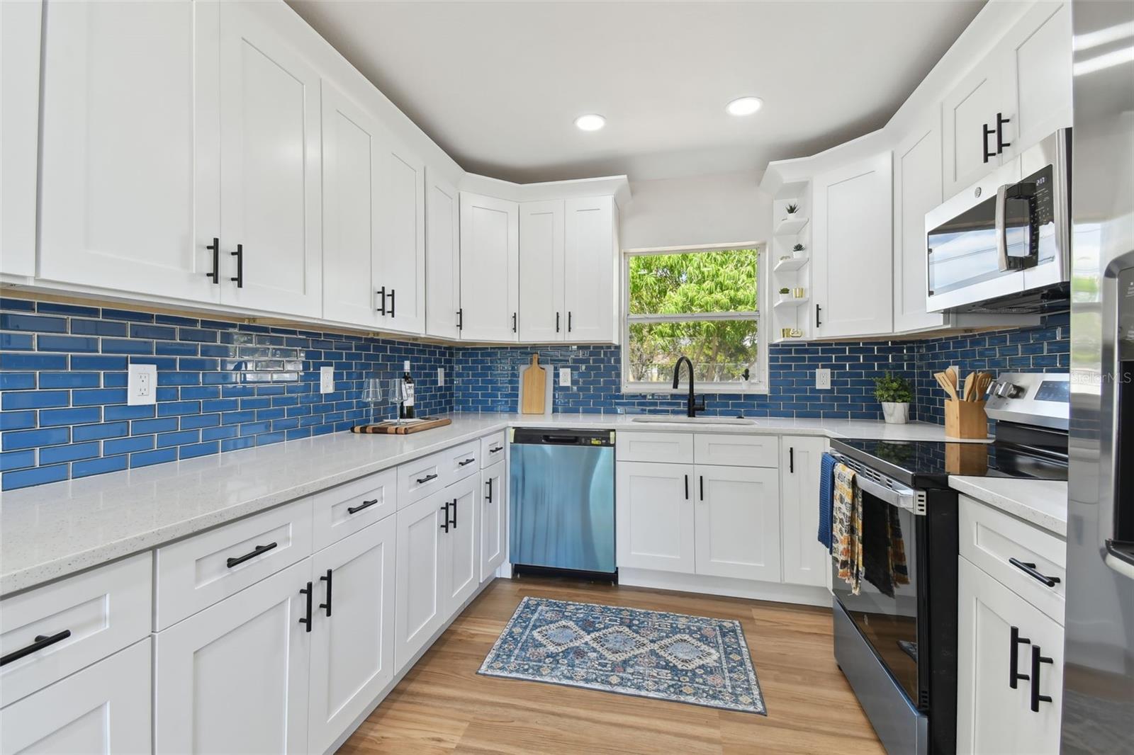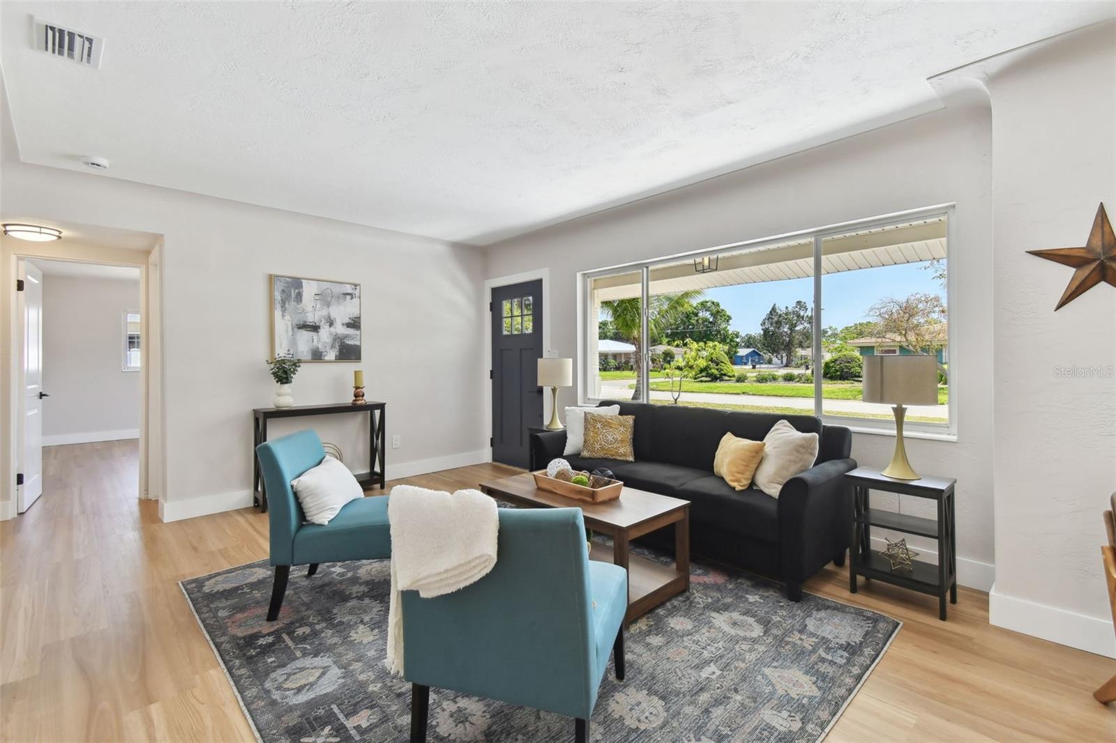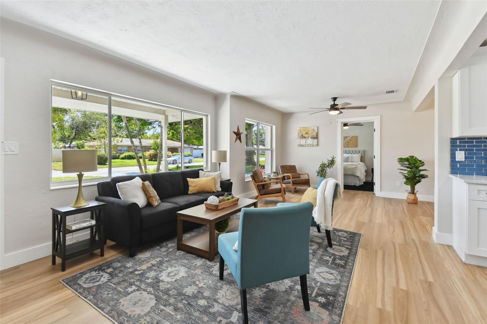 Welcome home to this beautiful and spacious 3 bedroom 2 bath St. Pete home! If you are looking for the perfect starter or family home, look no further. GREAT OUTDOOR LIVING SPACES with a large back porch overlooking a huge yard with enough room for a pool or additional storage. This home has been TOTALLY RENOVATED by the owner and includes upgrades perfectly fit for a first time home buyer or growing family. The totally remodeled kitchen features solid wood cabinets, quartz countertops, stainless steel appliances, custom backsplash, and a designer faucet. The bathrooms feature the same level of upgrades including custom vanity, designer tile, and new hardware. This home is a split plan and the master bedroom features a walk-in closet. Other upgrades include NEW ROOF (2025), NEW WATER HEATER (2025), NEW ELECTRIC PANEL & METER BOX (2025), NEW HVAC (2025), new impact windows in the master bedroom/hall bath/dining room, new flooring throughout, new paint, new LED light fixtures, and MORE!! All of these amenities and upgrades are complimented by the unique curb appeal of the home which sits on a quiet street! This home has many desirable features and is a must see. Please call us or use ShowingTime to set up a showing today!