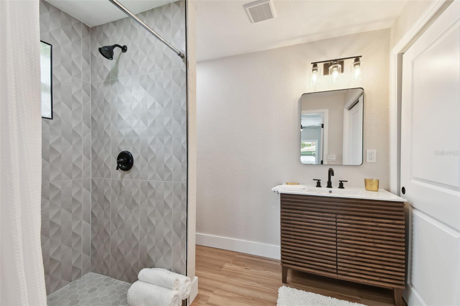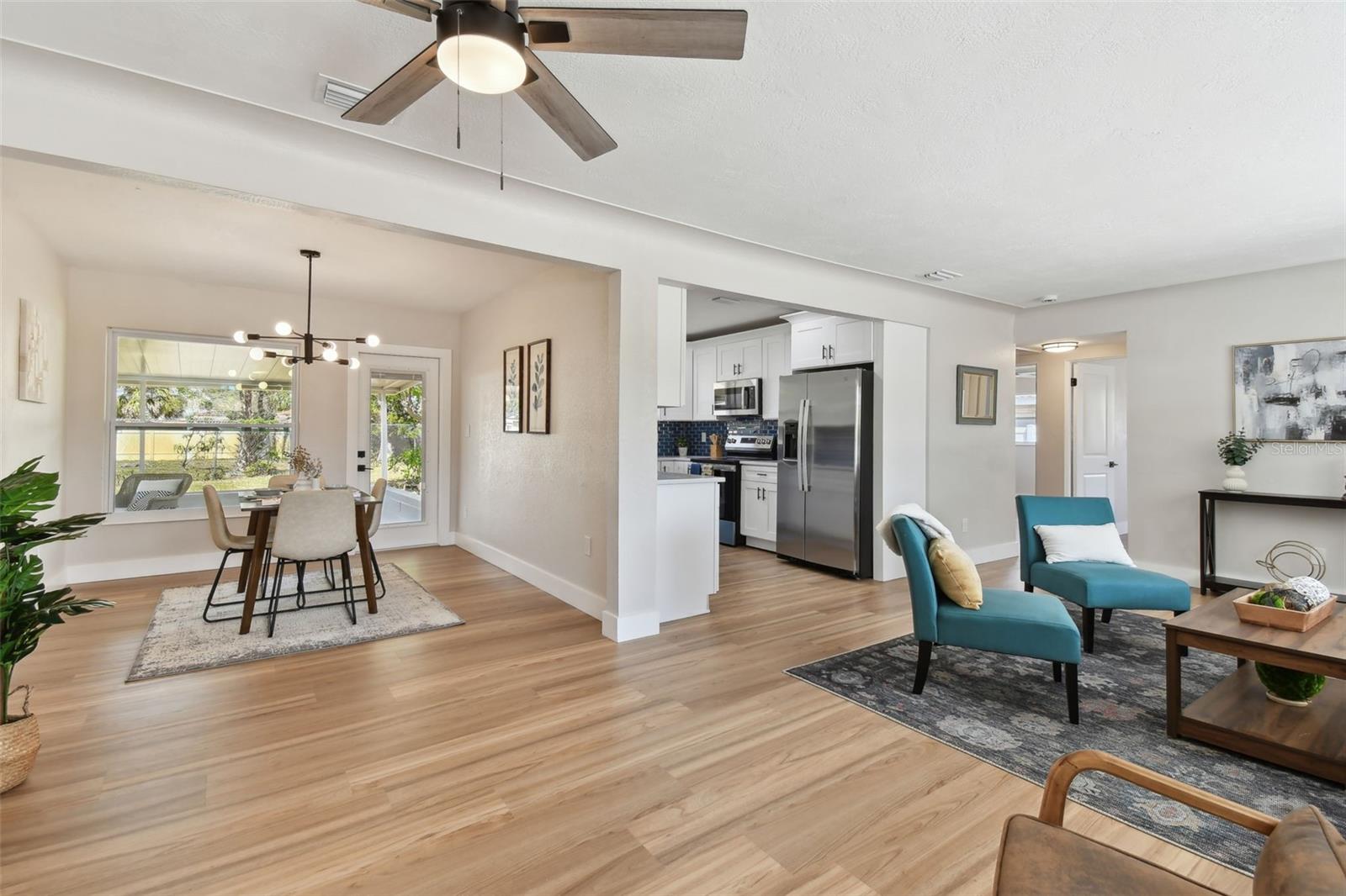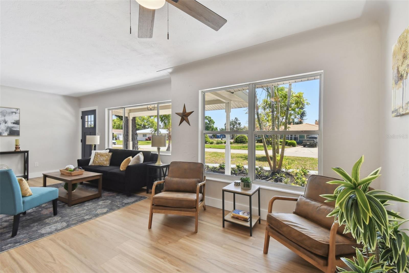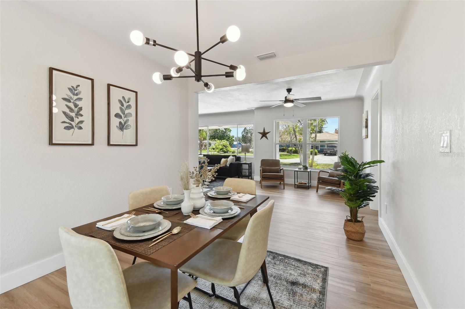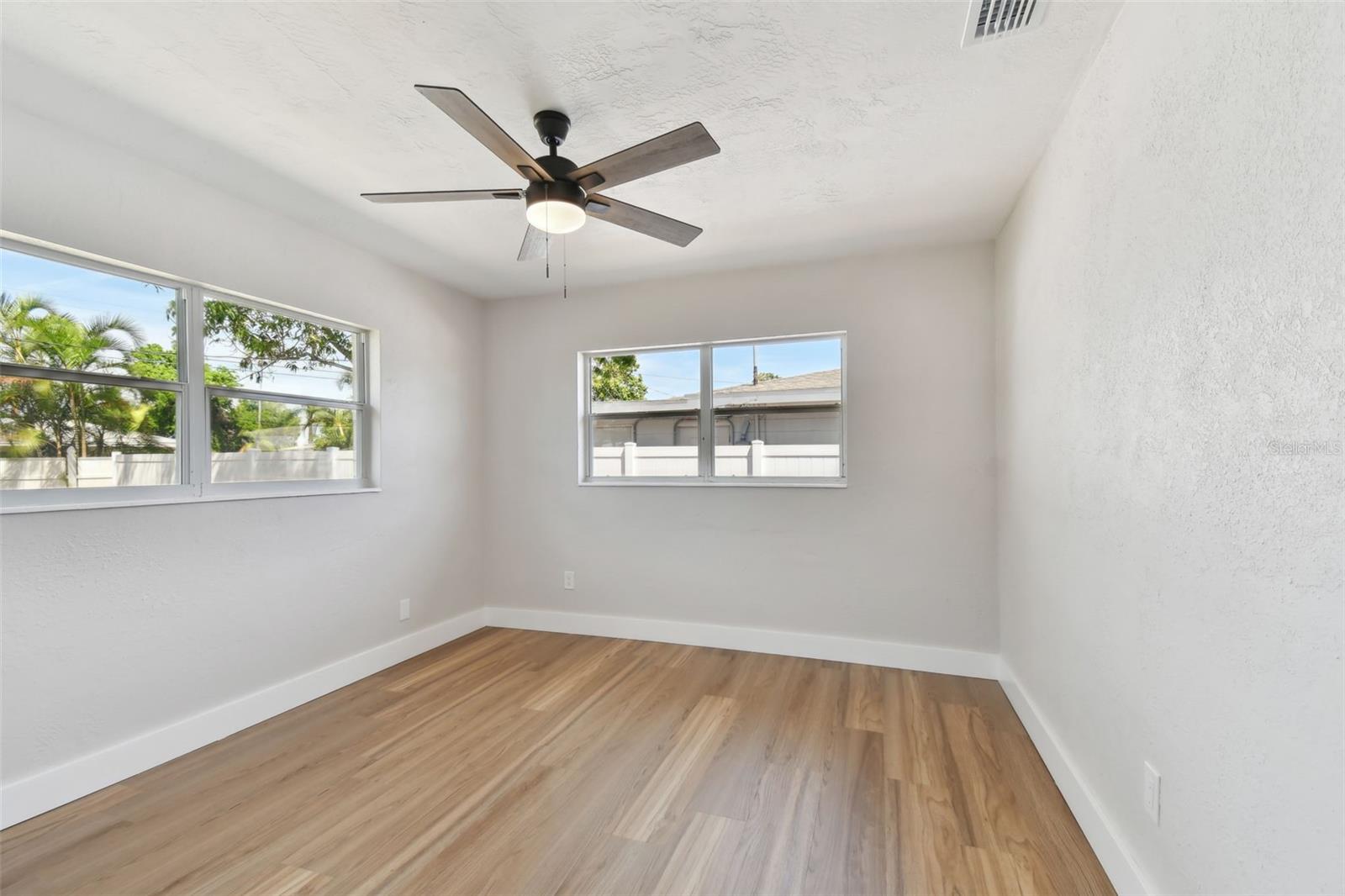 Welcome home to this beautiful and spacious 3 bedroom 2 bath St. Pete home! If you are looking for the perfect starter or family home, look no further. GREAT OUTDOOR LIVING SPACES with a large back porch overlooking a huge yard with enough room for a pool or additional storage. This home has been TOTALLY RENOVATED by the owner and includes upgrades perfectly fit for a first time home buyer or growing family. The totally remodeled kitchen features solid wood cabinets, quartz countertops, stainless steel appliances, custom backsplash, and a designer faucet. The bathrooms feature the same level of upgrades including custom vanity, designer tile, and new hardware. This home is a split plan and the master bedroom features a walk-in closet. Other upgrades include NEW ROOF (2025), NEW WATER HEATER (2025), NEW ELECTRIC PANEL & METER BOX (2025), NEW HVAC (2025), new impact windows in the master bedroom/hall bath/dining room, new flooring throughout, new paint, new LED light fixtures, and MORE!! All of these amenities and upgrades are complimented by the unique curb appeal of the home which sits on a quiet street! This home has many desirable features and is a must see. Please call us or use ShowingTime to set up a showing today!