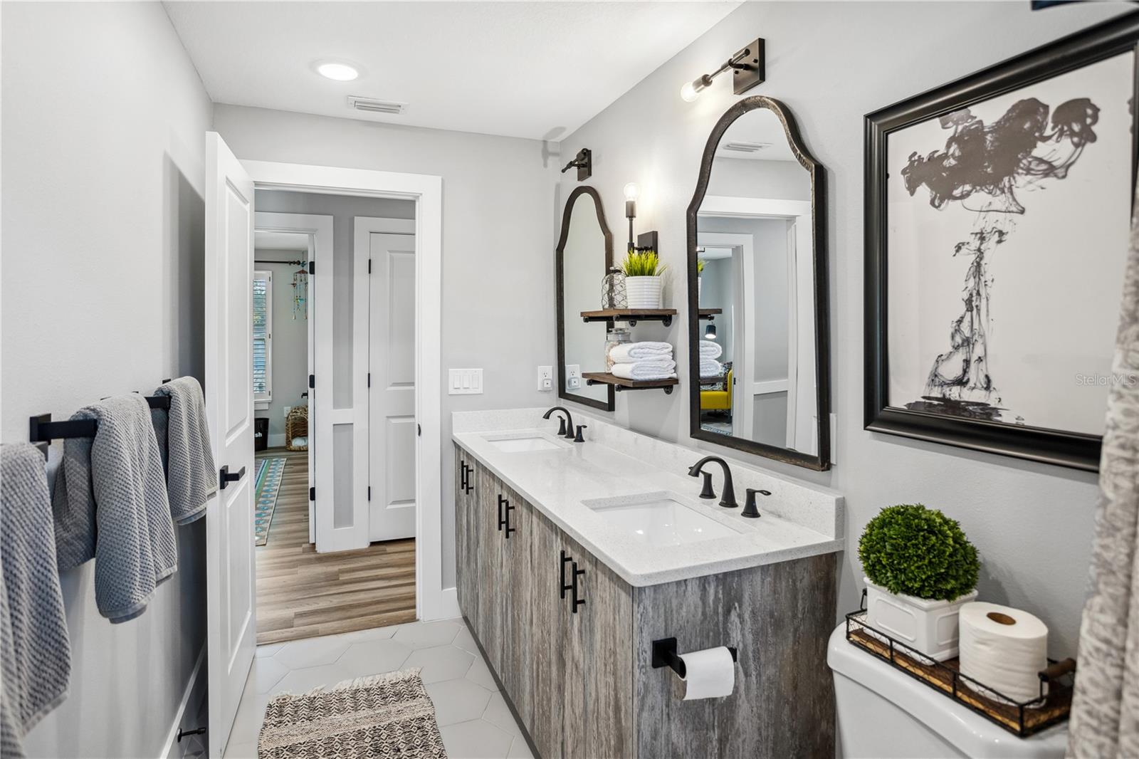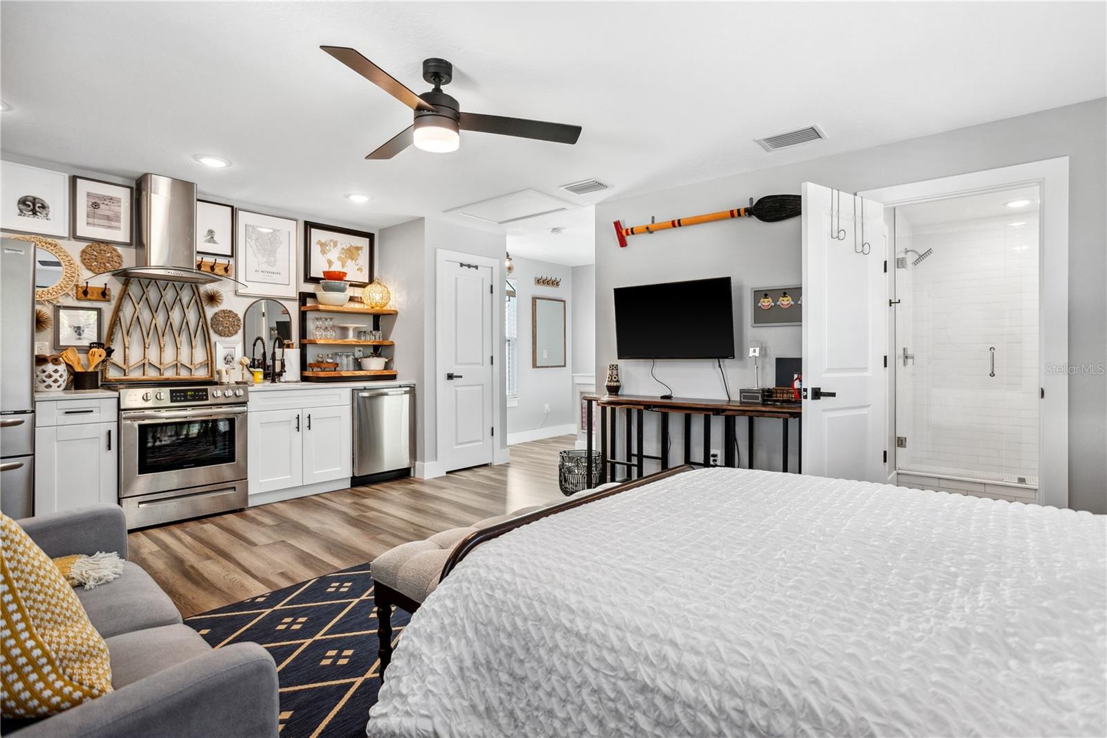 MODERN LIVING + DETACHED APARTMENT + NO FLOOD INSURANCE REQUIRED — Welcome to 4015 10th Avenue N — a 2021-built home located HIGH AND DRY in Flood Zone X, just minutes from Downtown St. Pete, Grand Central District, and Treasure Island Beach. This property blends modern style with VERSATILE LIVING OPTIONS, including a DETACHED INCOME-PRODUCING APARTMENT above the garage. — The main house offers 4 bedrooms, 2.5 bathrooms, and an open-concept layout designed for easy everyday living and effortless entertaining. The kitchen features a statement island, quartz countertops, stainless steel appliances, a vented range hood, and a custom walk-in pantry — ideal for home chefs and hosts alike. — Upstairs, the spacious primary suite includes a spa-inspired bathroom with a walk-in shower and custom closets for comfort and convenience. — The detached apartment offers a private entrance, full bath, dedicated parking pad, and washer/dryer hookups — great for GUESTS, MULTIGENERATIONAL LIVING, or RENTAL INCOME. — Additional highlights include luxury vinyl flooring, upgraded tile throughout, IMPACT-RATED WINDOWS AND DOORS, Nest thermostat, Ring doorbell, and other smart home features for peace of mind and modern comfort. — Enjoy a fully fenced backyard with new pavers connecting the home and apartment — an inviting outdoor space with room to envision a FUTURE POOL. A detached two-car garage with rear alley access and NO HOA or CDD FEES completes this rare opportunity. — FLEXIBLE LIVING. MODERN UPGRADES. INCOME POTENTIAL. NO FLOOD INSURANCE REQUIRED. Schedule your private showing today.