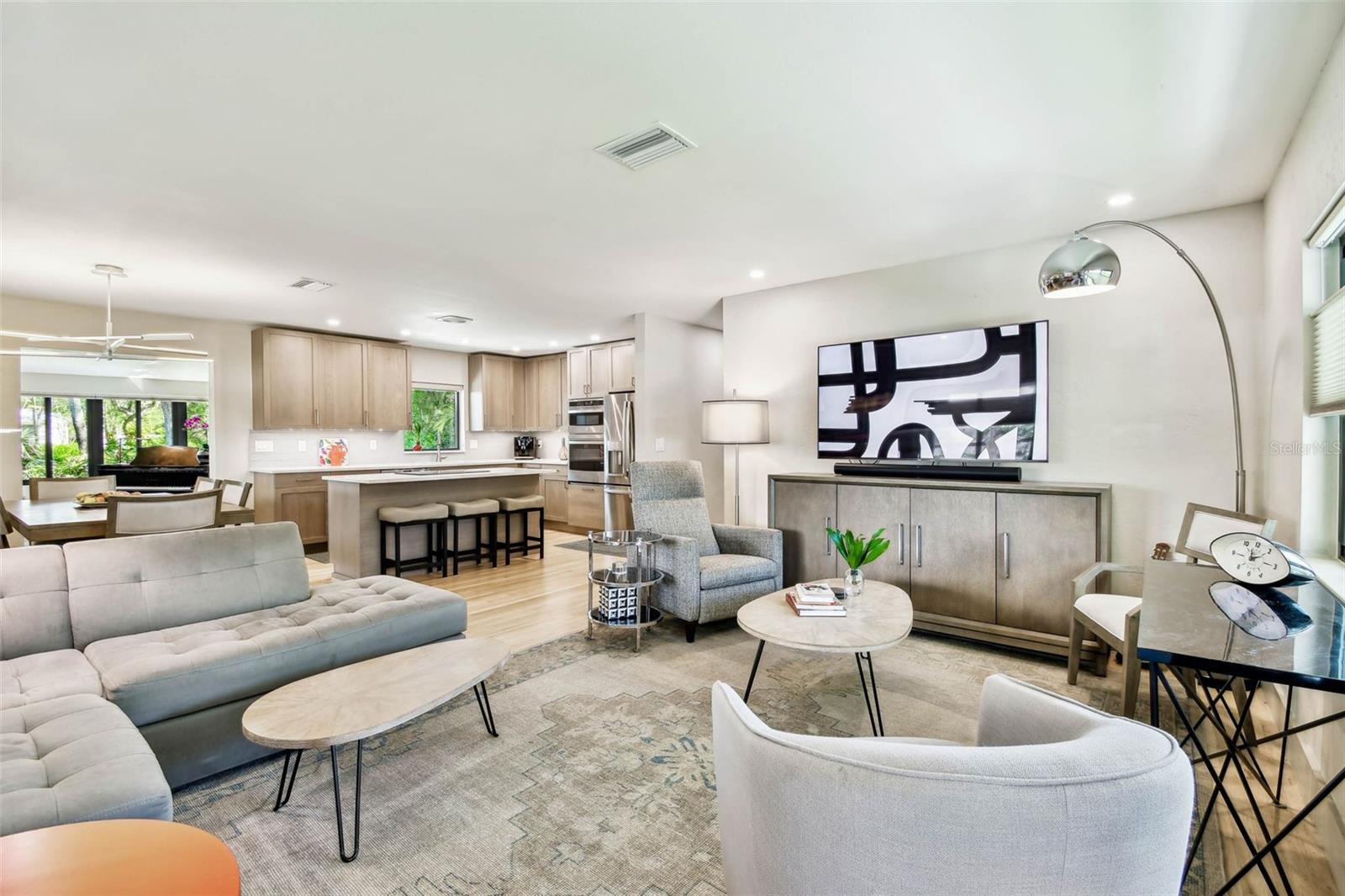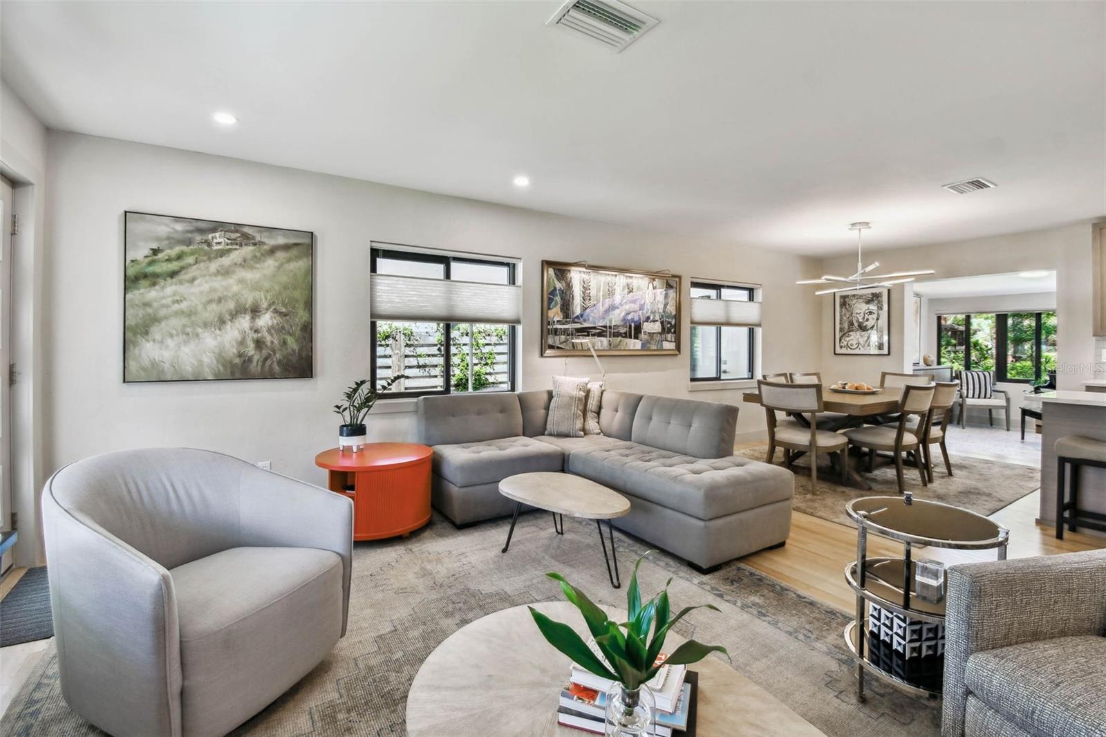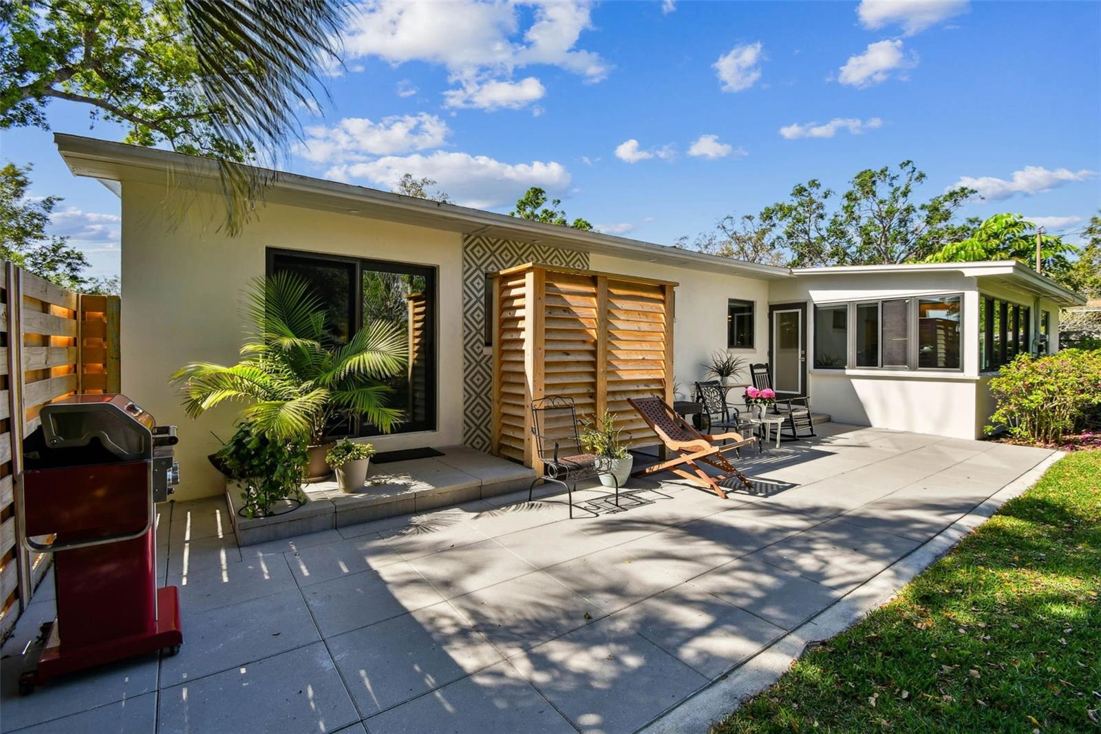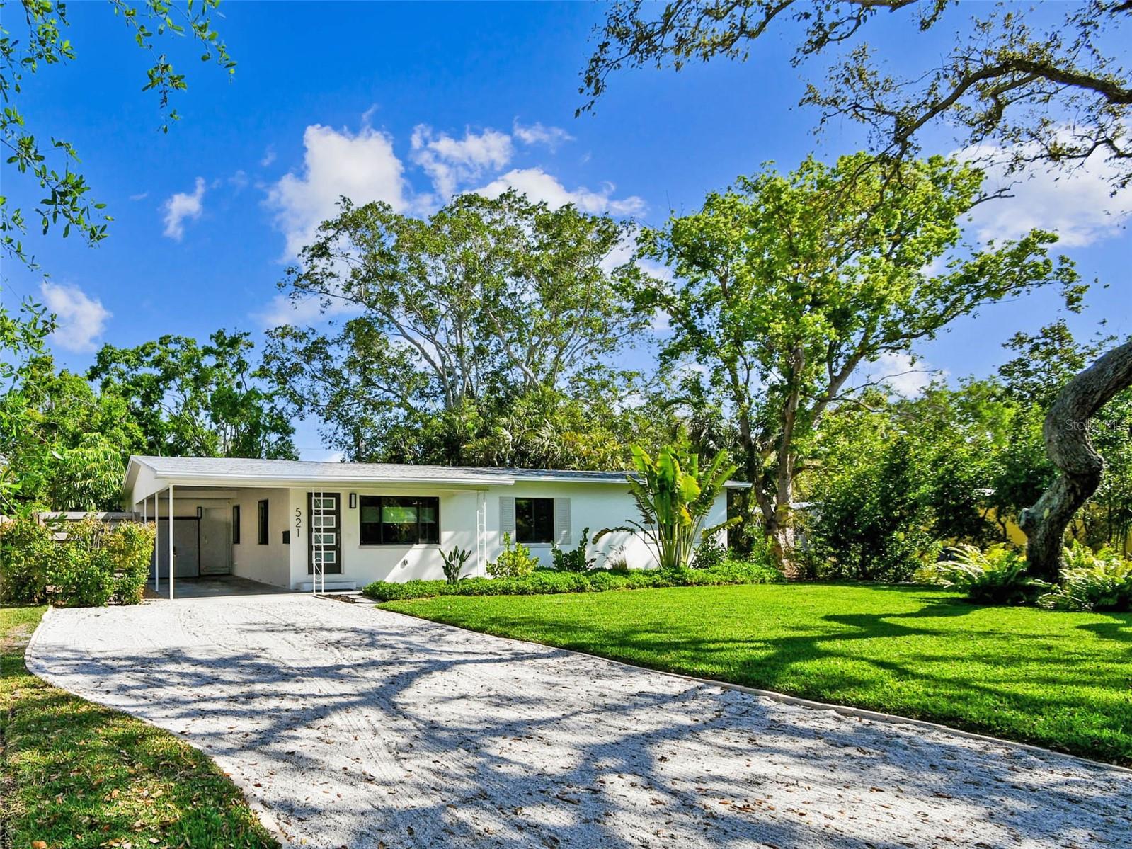 A mid-century gem, positioned near St. Petersburg's most desirable attractions, this stunning home is just minutes from Boyd Hill Nature Preserve, the waterfront trails of Lassing Park, and the vibrant dining and arts scene of downtown St. Pete. Offering the best of Florida living, this fully renovated, move-in-ready masterpiece seamlessly blends mid-century charm with contemporary elegance. Completely transformed in 2024, this home boasts a state-of-the-art kitchen, luxurious new baths and real solid wood floors throughout. The 2019 roof and 2023 air conditioner ensure peace of mind, while abundant natural light enhances every space, ideal for showcasing an art collection. A bonus room, home to a grand baby piano, offers a tranquil retreat with views of the serene backyard. Outside, a lush garden sanctuary awaits, complete with an outdoor shower and a majestic mature oak tree that adds character to the porte cochère and white pebble gravel driveway. This single-story mid-century treasure is a rare opportunity to own a piece of St. Petersburg's finest. Make it yours.
