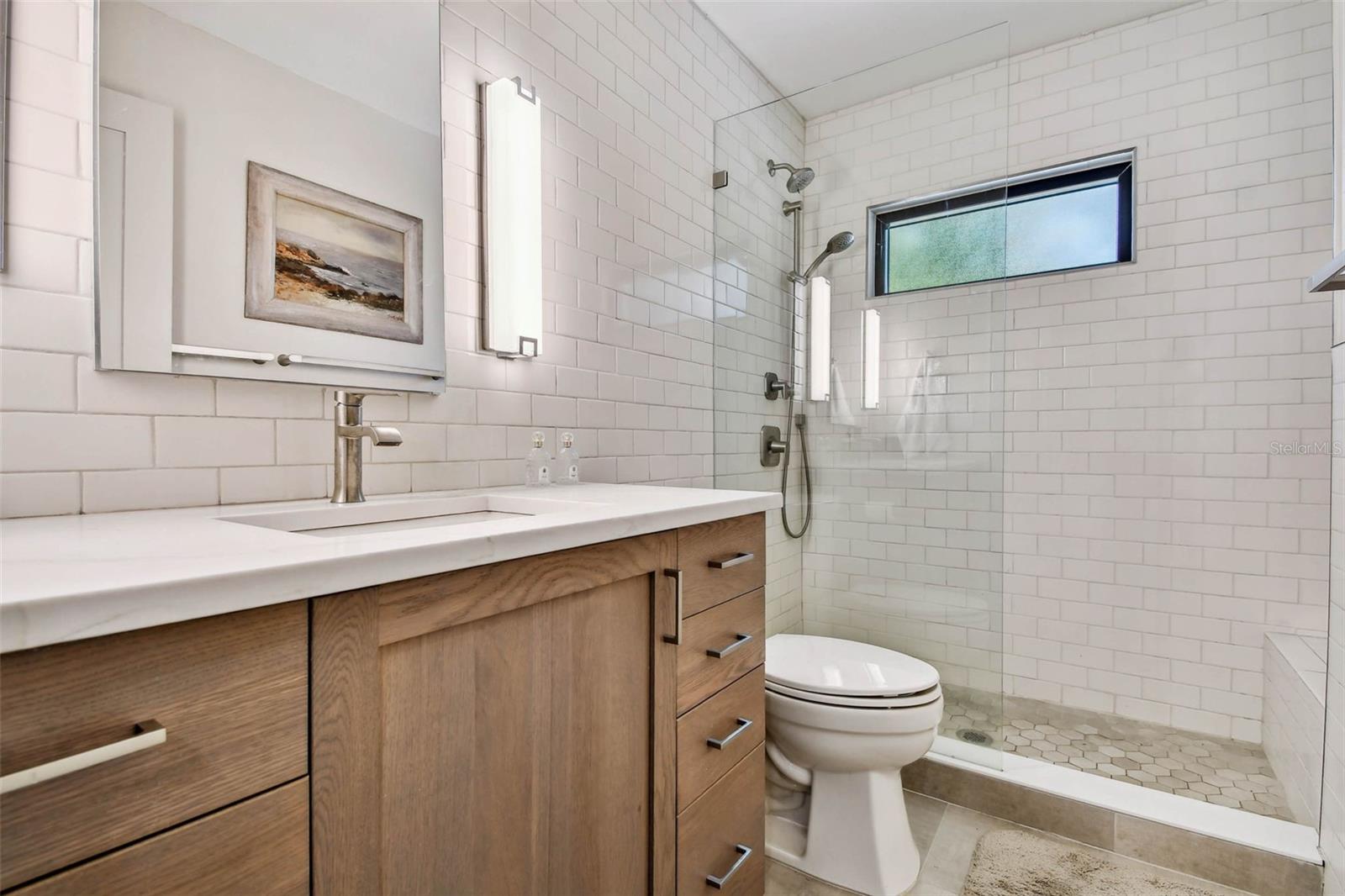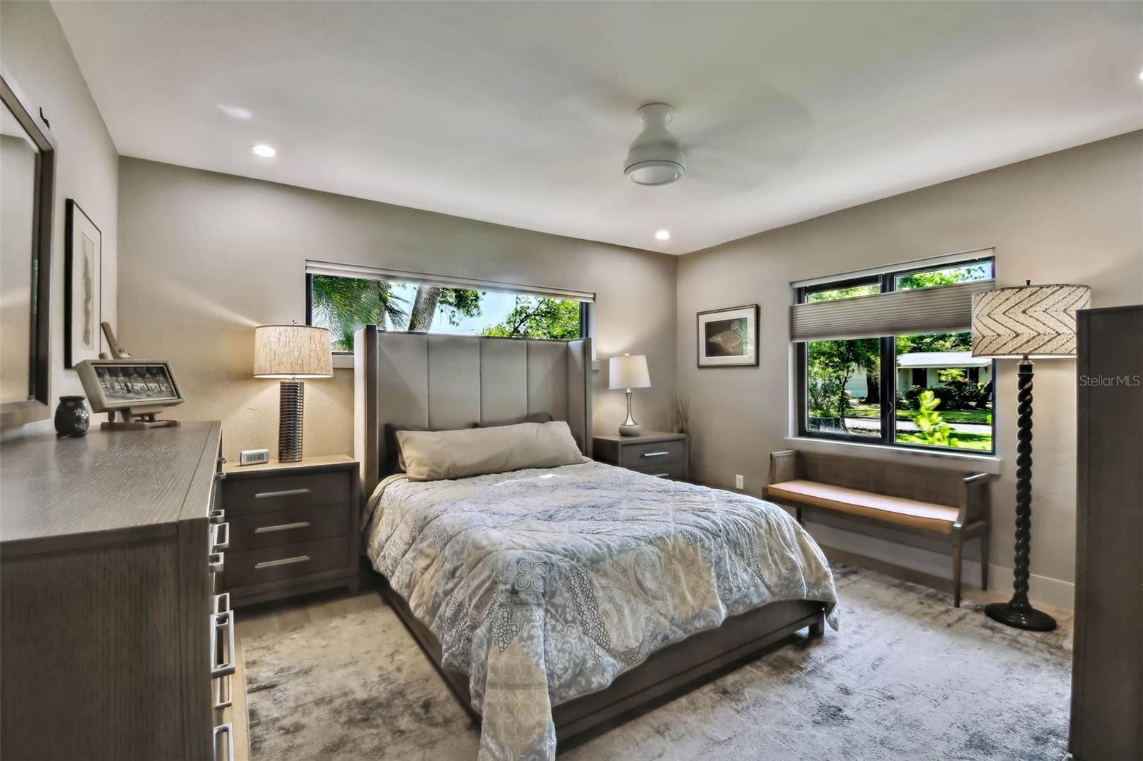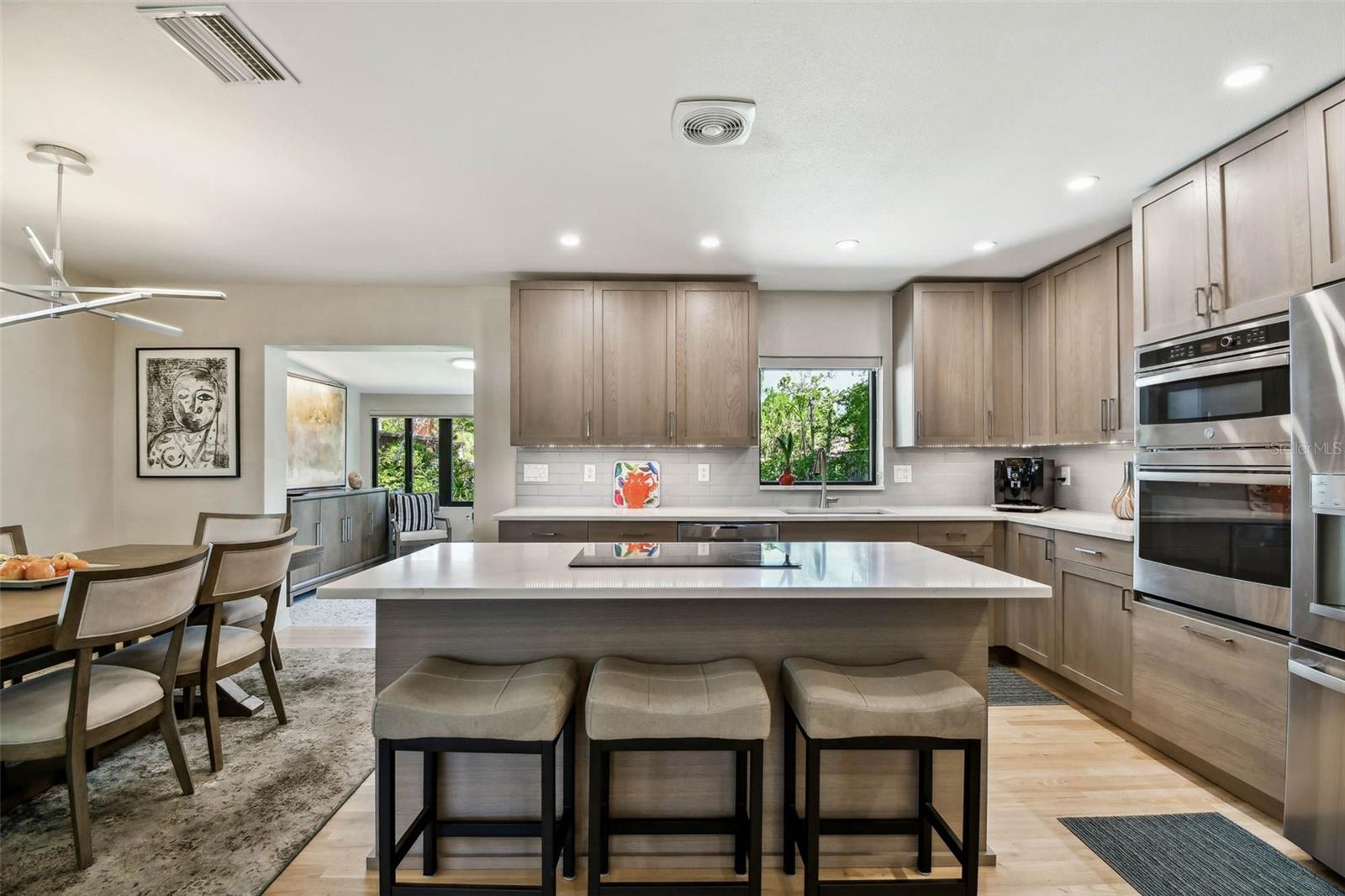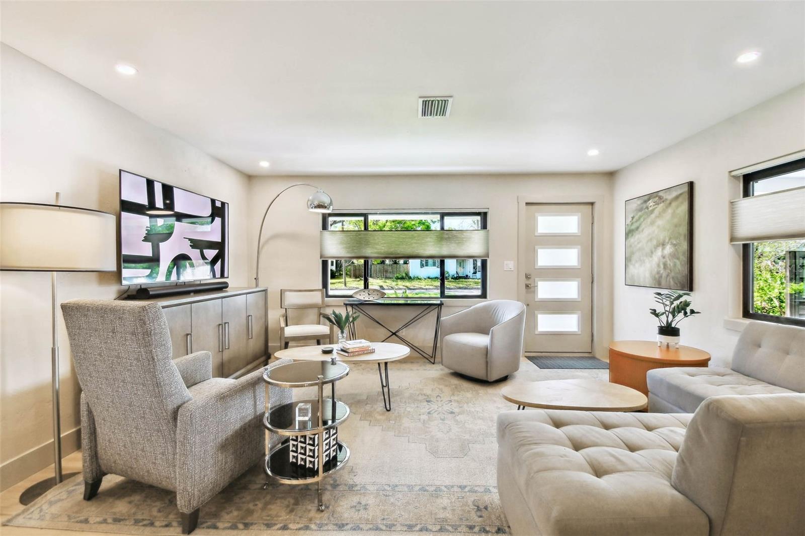 A mid-century gem, positioned near St. Petersburg's most desirable attractions, this stunning home is just minutes from Boyd Hill Nature Preserve, the waterfront trails of Lassing Park, and the vibrant dining and arts scene of downtown St. Pete. Offering the best of Florida living, this fully renovated, move-in-ready masterpiece seamlessly blends mid-century charm with contemporary elegance. Completely transformed in 2024, this home boasts a state-of-the-art kitchen, luxurious new baths and real solid wood floors throughout. The 2019 roof and 2023 air conditioner ensure peace of mind, while abundant natural light enhances every space, ideal for showcasing an art collection. A bonus room, home to a grand baby piano, offers a tranquil retreat with views of the serene backyard. Outside, a lush garden sanctuary awaits, complete with an outdoor shower and a majestic mature oak tree that adds character to the porte cochère and white pebble gravel driveway. This single-story mid-century treasure is a rare opportunity to own a piece of St. Petersburg's finest. Make it yours.