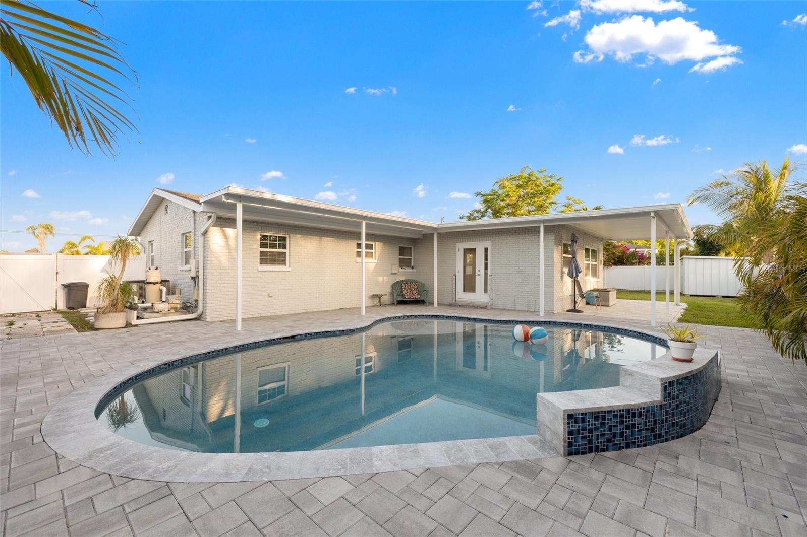 Coastal Retreat POOL home awaits your personal touch in sunny St Petersburg, FL! Welcome to this charming 3-bedroom, 2-bathroom block home nestled in the waterfront community of Riviera Bay. This beautiful property offers the perfect blend of coastal living and modern comforts, with a NEW POOL, HUGE lot, spacious living areas, large bedrooms, and a host of fantastic features to make this your dream home. Per the seller, for the FIRST time in 30+ years of living in this lovely home, it experienced hurricane damage in the living space and was remediated with a "flood cut" post Helene, so bring your coastal living vision for this blank canvas! The home boasts a new HVAC system for optimal comfort and efficiency. and new pool pump. The open-concept living and dining spaces flow effortlessly, offering ample room for relaxation and entertaining. The oversized lot is a true standout, providing plenty of space for outdoor fun and privacy. The backyard is a serene oasis with a stunning pool, ideal for cooling off on those hot Florida days. Enjoy the tranquil setting from your covered back porch, or relax in the fully fenced-in yard, which is perfect for pets or family activities. For those who enjoy waterfront living, this home is ideally located in a vibrant neighborhood with easy access to a community boat ramp. The area is also known for its festive holiday golf cart and boat parades, adding a touch of whimsy to the neighborhood’s charm. Additional features of this home include a one-car garage, two sheds for ample storage, and block construction for durability. The property is on a coveted corner lot, offering extra space and curb appeal. Located just a short drive from downtown St. Petersburg, Tampa International Airport, world-class shopping, dining, and a wide array of outdoor activities, this home truly offers the best of Florida living. Don’t miss the opportunity to make this coastal retreat your own!