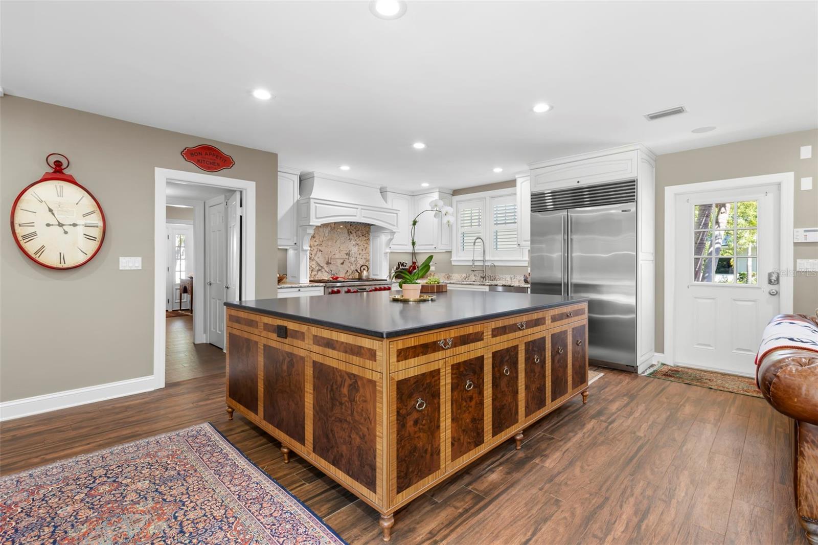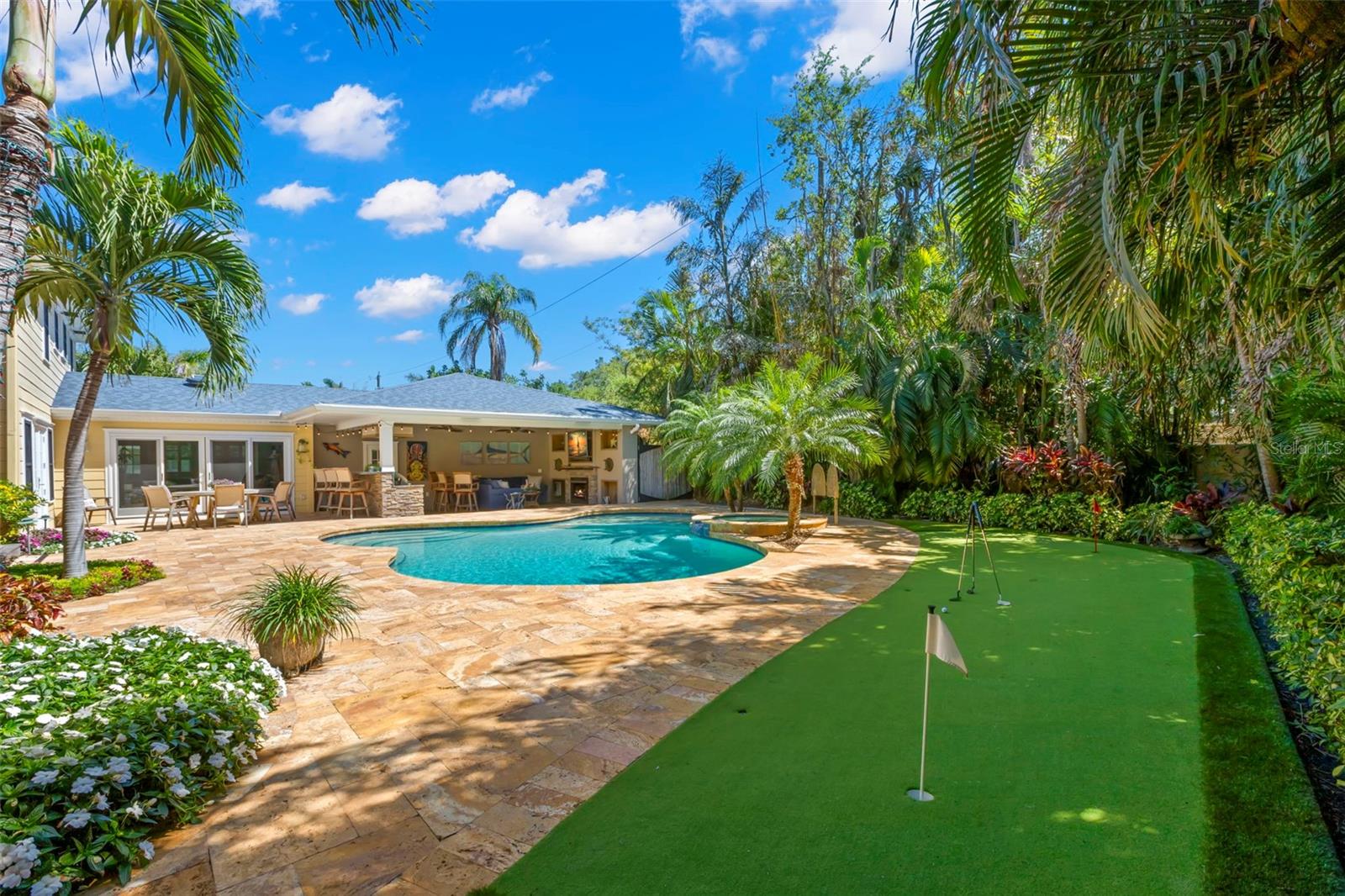 One or more photo(s) has been virtually staged. Nestled in Historic Old Northeast, just steps from Coffee Pot Bayou, this exquisite estate offers a true resort-style experience. Situated on a rare double corner lot, this home boasts stunning outdoor living spaces, lush landscaping, and is an entertainer’s paradise. Step through the inviting wrap-around front porch into a grand formal entryway, where tile floors that mimic hardwood and intricate custom molding set the stage for timeless elegance. The formal living room, complete with a fireplace, seamlessly flows into the bright and spacious formal dining room, featuring double French doors out to the lanai. The chef’s kitchen has been thoughtfully renovated to the studs, boasting high-end appliances including a Wolf dual fuel range, Wolf warming drawer, Subzero side by side refrigerator, Bosch dishwasher, Sharp microwave drawer, and Marvel wine refrigerators. An oversized island, custom cabinetry, and a stylish prep sink make this space as functional as it is beautiful. The expansive open-concept family room off the kitchen extends effortlessly to the outdoor oasis through oversized sliding doors for casual living. Here, you’ll find multiple covered seating areas, an outdoor fireplace, a built-in grill and serving station, a tv for ball game and movie night and a breathtaking resort-style pool and spa with travertine tile decking. A putting green, lush landscaping, and a lanai with IPE wood flooring complete the unparalleled outdoor experience. The grand first floor primary suite is a serene retreat, featuring vaulted ceilings, transom windows, and a private den. The spa-like en-suite bath is adorned with Italian marble, dual vanities, a seamless glass shower, a Jacuzzi tub, and a private water closet with a bidet. A spacious walk-in closet with custom organizers and a covered sitting area overlooking the pool add to the suite’s luxurious feel. The second level hosts four oversized bedrooms with Jack & Jill bathrooms, a bonus family room with kitchenette and a terrace with views of the Snell Isle bridge. This home is not only stunning but also equipped with premium upgrades for modern living, including Hardy Board siding, hurricane-rated windows and doors (2019), a Control 4 and Sonos surround sound system (2017), new HVAC systems (2019 & 2024), and a monitored alarm system with cameras (2017). Additional energy-efficient features include solar water heaters, attic fans, and new spray insulation in both attics (2024). The meticulously maintained property also boasts a laundry mud room off the two-car garage with extra-wide doors and keypad-secure alley entry. With its unbeatable location and breathtaking outdoor spaces, this estate is truly a rare find in Historic Old Northeast! Experience the ultimate in Florida living—schedule your private showing today.