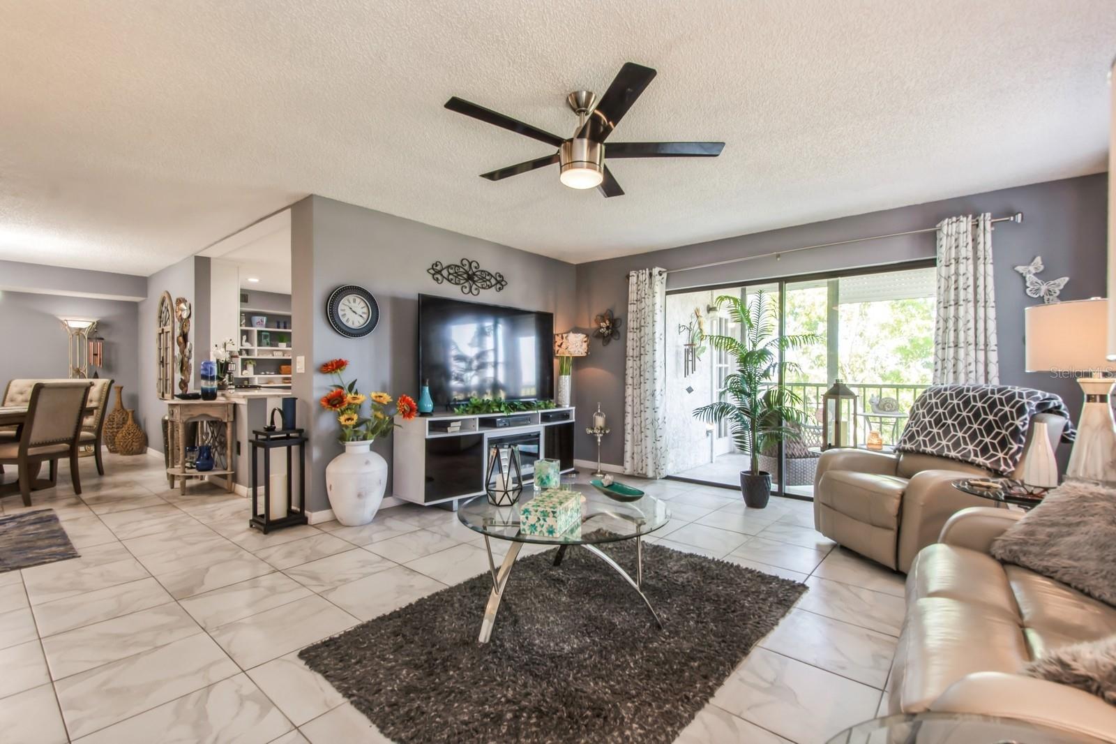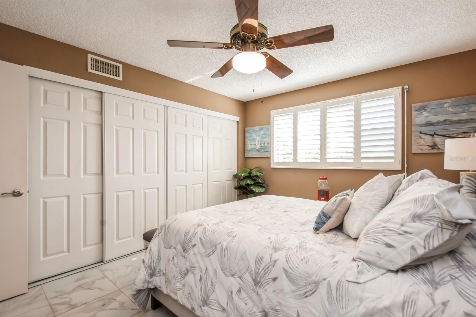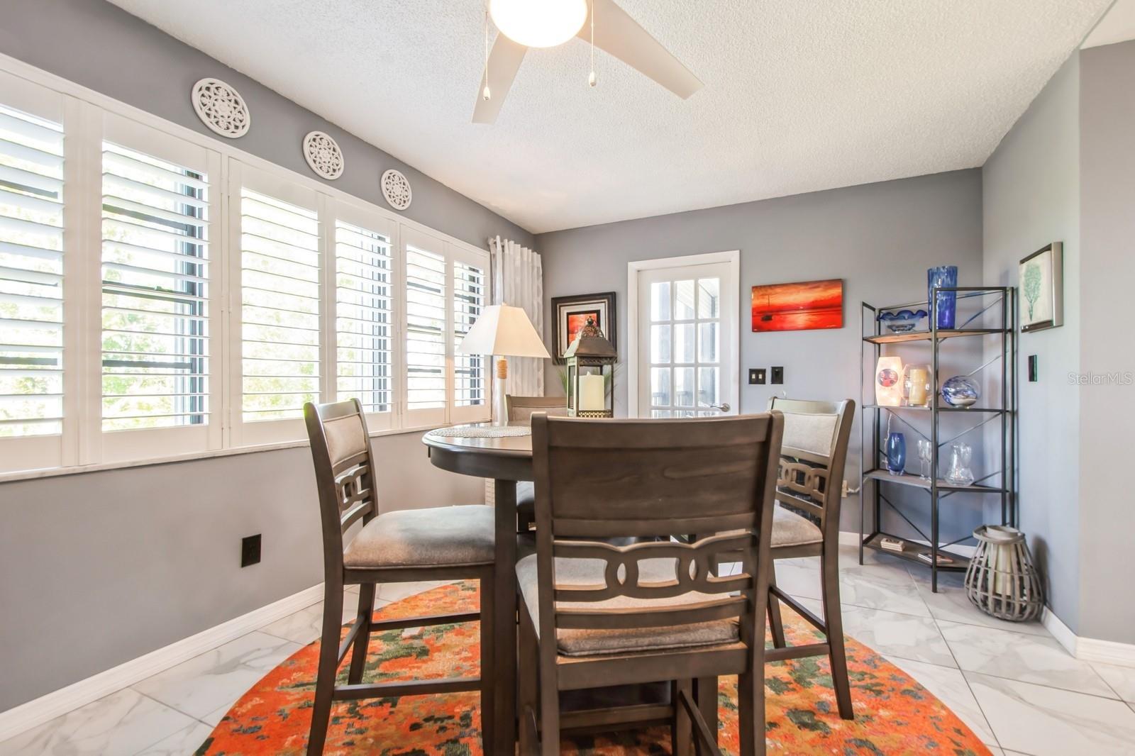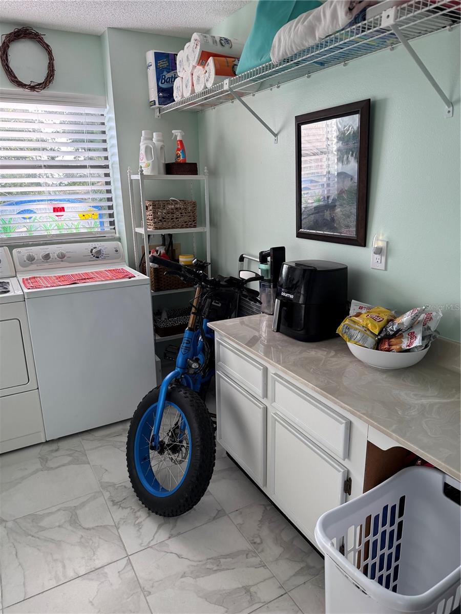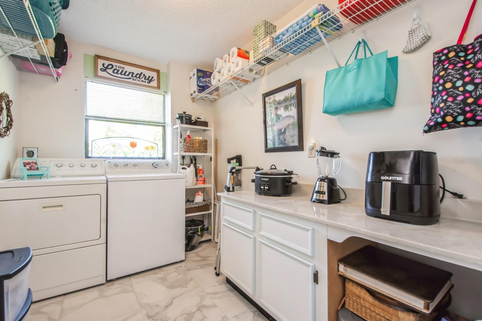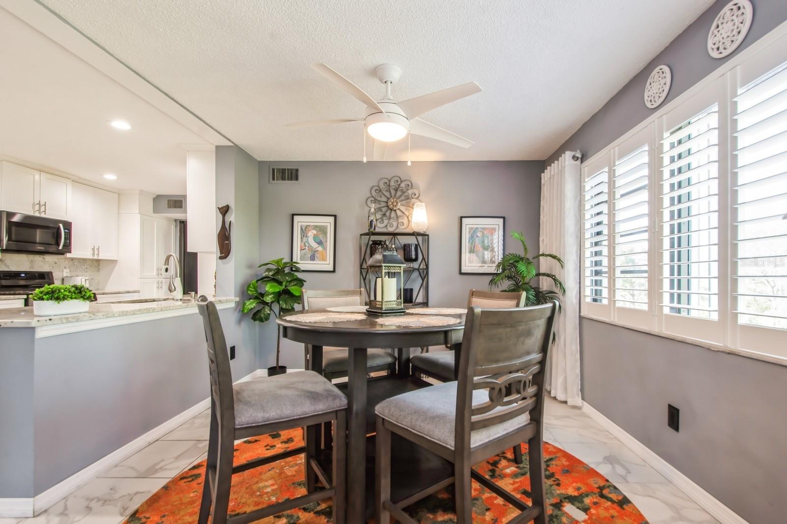 Welcome to your dream home at 8198 Terrace Garden Dr N #411, a beautifully maintained 2-bedroom, 2-bathroom condo in the sought-after 55+ community of Terrace Park of Five Towns. Spanning 1,700 square feet, this residence offers a perfect blend of modern elegance and low-maintenance living, designed to impress from the moment you step inside. The porcelain tile floors flow seamlessly throughout, creating a bright and cohesive space, while every window is dressed with stylish interior plantation shutters and equipped with hurricane-rated shutters for both sophistication and security. The heart of this condo is its updated kitchen, a chef’s delight with shaker cabinets topped with crown molding, luxurious granite countertops and backsplash, a gas stove, and matching stainless steel Samsung appliances. Just off the kitchen, a spacious laundry room with side-by-side washer and dryer units and ample storage makes daily tasks effortless. The open-concept layout enhances the sense of space, inviting relaxation or entertaining with ease. Retreat to the primary suite, a generously sized haven featuring a walk-in closet, a powder room, and an en-suite bathroom with updated stone countertops. This suite also boasts its own private balcony, offering peaceful views of the surrounding greenery—a perfect spot for morning coffee or evening unwinding. The second bedroom, equally inviting, enjoys access to a second full bathroom, also updated with stone countertops, making it ideal for guests or a home office. Outdoor living is a highlight here, with two private balconies showcasing tranquil vistas of the lush landscape. The main balcony, accessible from the living area, is perfect for gatherings or quiet moments, while the primary suite’s balcony adds an extra touch of serenity. The building itself offers standout features, including an elevator for convenience, common area storage spaces, covered bike storage, and an assigned covered carport space. Best of all, it’s the only building in Five Towns with its own sparkling swimming pool right next door—a rare luxury for residents. Living in Terrace Park at Five Towns means enjoying a wealth of community amenities. Beyond the pool attached to this building, you’ll find additional pools, scenic walking paths winding around ponds and lakes, a soon-to-be-renovated clubhouse and gym, tennis and pickleball courts, and a vibrant social scene with various community events. The HOA fee takes care of nearly everything—cable, internet, natural gas for heating and cooking, pest control, pool maintenance, recreational facilities, sewer, trash, and water—leaving only the electric bill as your additional expense. Perfectly positioned, this condo is just minutes from world-class beaches, shopping, dining, and major highways, offering an unbeatable combination of relaxation and accessibility. Don’t miss your chance to own this stunning condo in one of Southwest Florida’s premier 55+ communities—schedule your private tour today and experience the carefree, active lifestyle awaiting you!