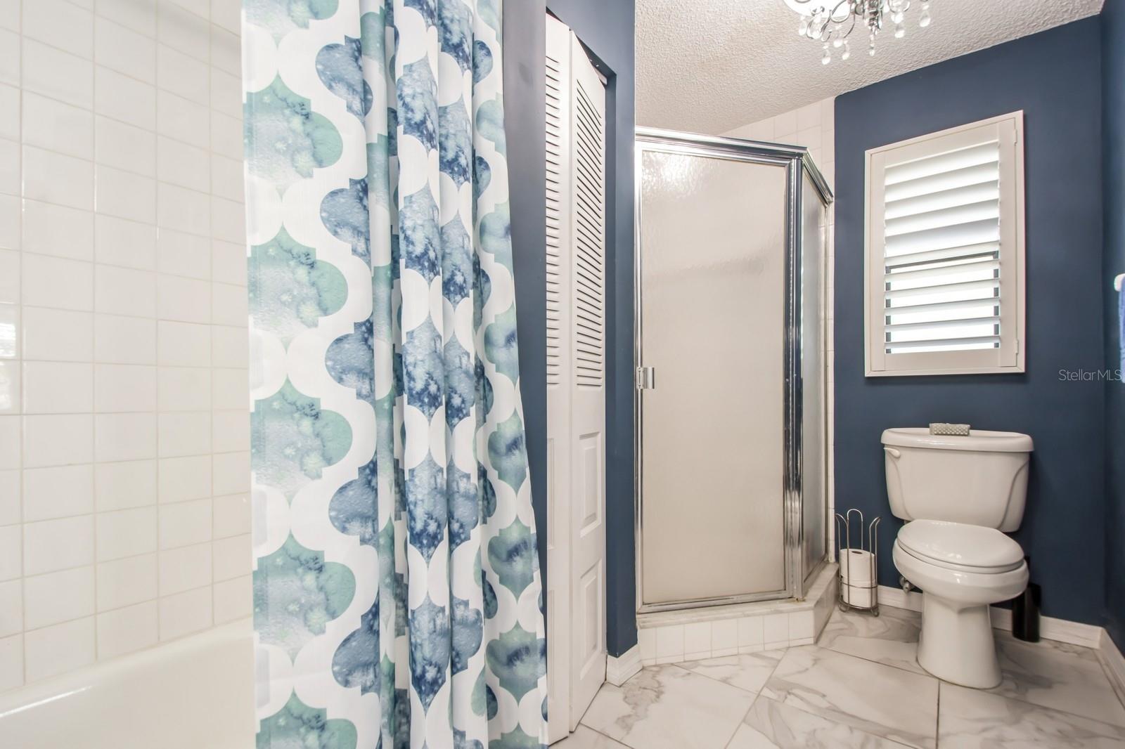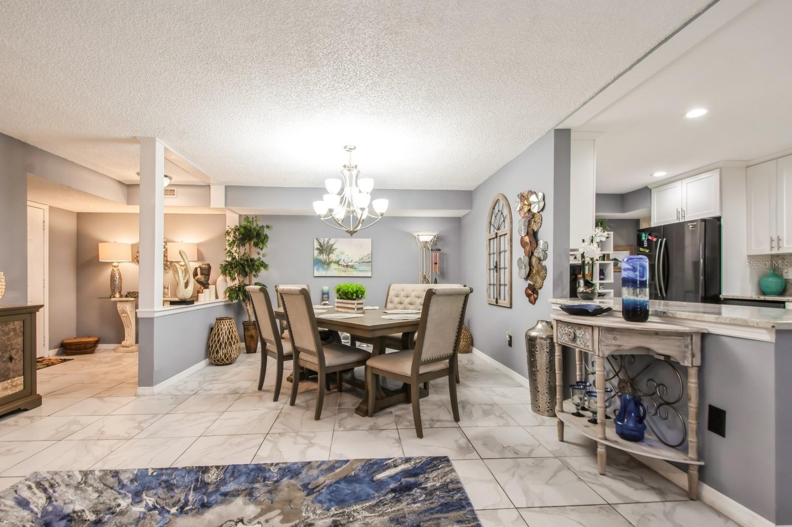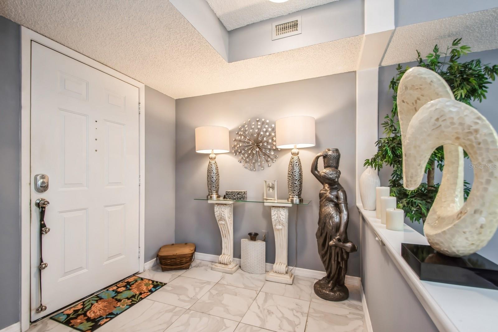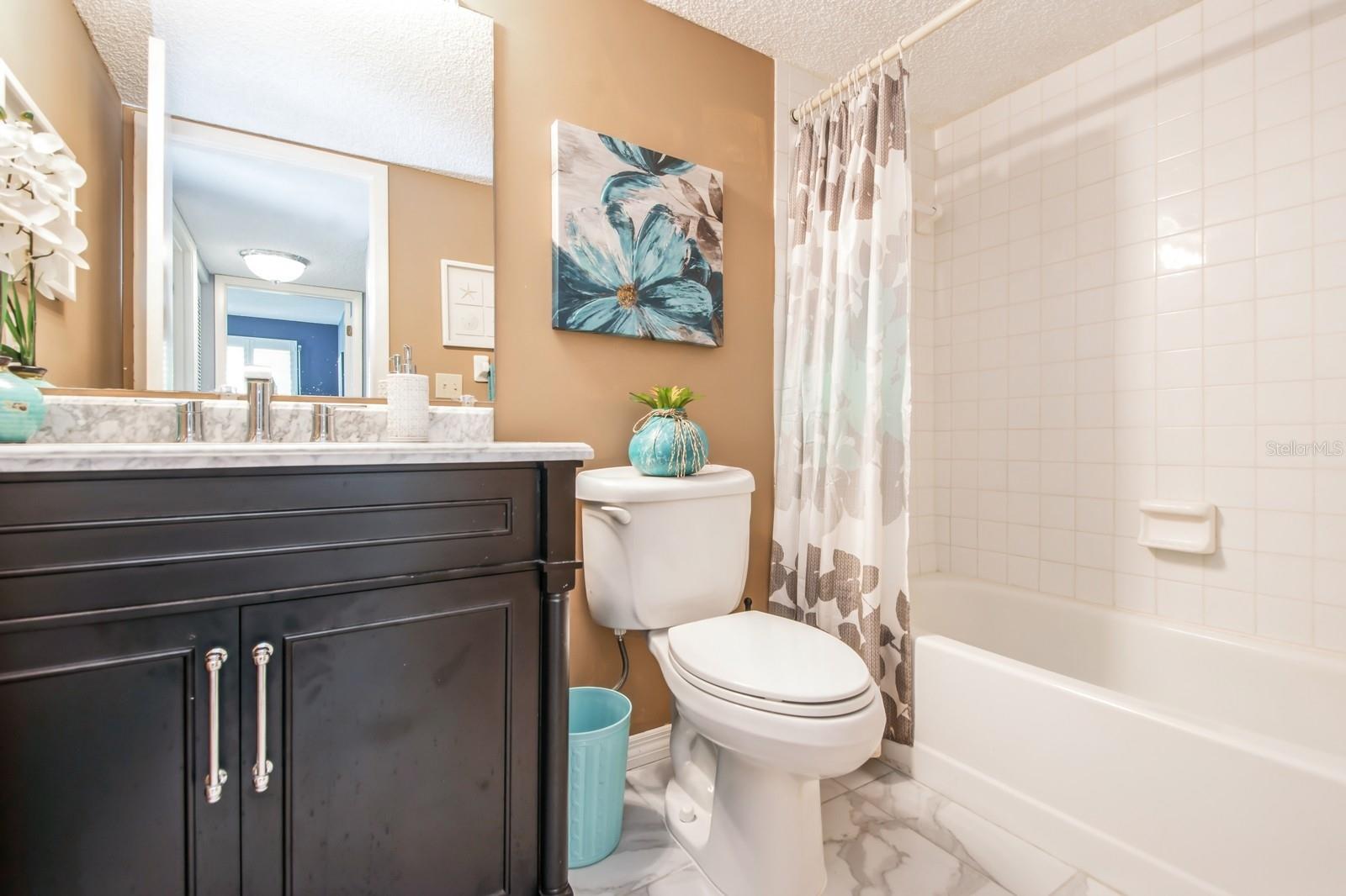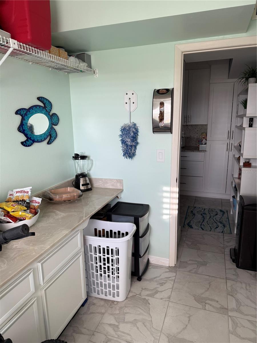 Welcome to your dream home at 8198 Terrace Garden Dr N #411, a beautifully maintained 2-bedroom, 2-bathroom condo in the sought-after 55+ community of Terrace Park of Five Towns. Spanning 1,700 square feet, this residence offers a perfect blend of modern elegance and low-maintenance living, designed to impress from the moment you step inside. The porcelain tile floors flow seamlessly throughout, creating a bright and cohesive space, while every window is dressed with stylish interior plantation shutters and equipped with hurricane-rated shutters for both sophistication and security. The heart of this condo is its updated kitchen, a chef’s delight with shaker cabinets topped with crown molding, luxurious granite countertops and backsplash, a gas stove, and matching stainless steel Samsung appliances. Just off the kitchen, a spacious laundry room with side-by-side washer and dryer units and ample storage makes daily tasks effortless. The open-concept layout enhances the sense of space, inviting relaxation or entertaining with ease. Retreat to the primary suite, a generously sized haven featuring a walk-in closet, a powder room, and an en-suite bathroom with updated stone countertops. This suite also boasts its own private balcony, offering peaceful views of the surrounding greenery—a perfect spot for morning coffee or evening unwinding. The second bedroom, equally inviting, enjoys access to a second full bathroom, also updated with stone countertops, making it ideal for guests or a home office. Outdoor living is a highlight here, with two private balconies showcasing tranquil vistas of the lush landscape. The main balcony, accessible from the living area, is perfect for gatherings or quiet moments, while the primary suite’s balcony adds an extra touch of serenity. The building itself offers standout features, including an elevator for convenience, common area storage spaces, covered bike storage, and an assigned covered carport space. Best of all, it’s the only building in Five Towns with its own sparkling swimming pool right next door—a rare luxury for residents. Living in Terrace Park at Five Towns means enjoying a wealth of community amenities. Beyond the pool attached to this building, you’ll find additional pools, scenic walking paths winding around ponds and lakes, a soon-to-be-renovated clubhouse and gym, tennis and pickleball courts, and a vibrant social scene with various community events. The HOA fee takes care of nearly everything—cable, internet, natural gas for heating and cooking, pest control, pool maintenance, recreational facilities, sewer, trash, and water—leaving only the electric bill as your additional expense. Perfectly positioned, this condo is just minutes from world-class beaches, shopping, dining, and major highways, offering an unbeatable combination of relaxation and accessibility. Don’t miss your chance to own this stunning condo in one of Southwest Florida’s premier 55+ communities—schedule your private tour today and experience the carefree, active lifestyle awaiting you!