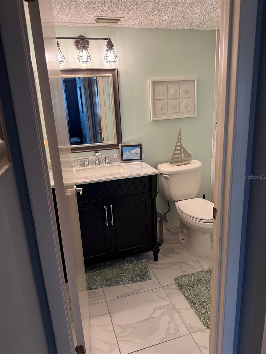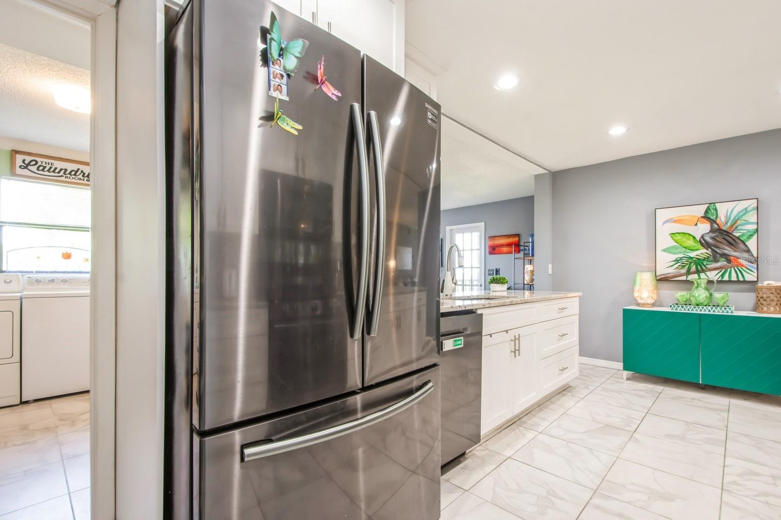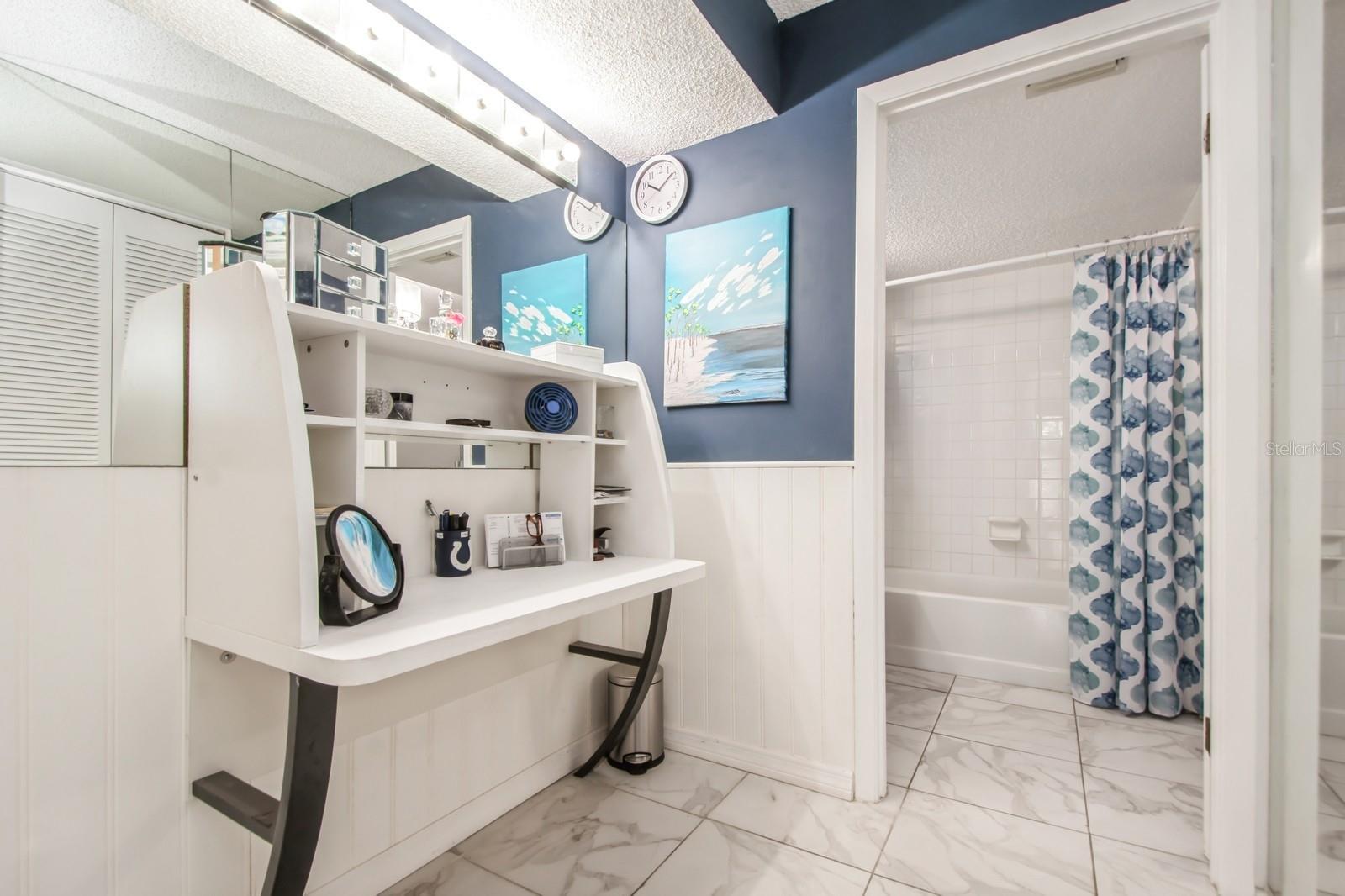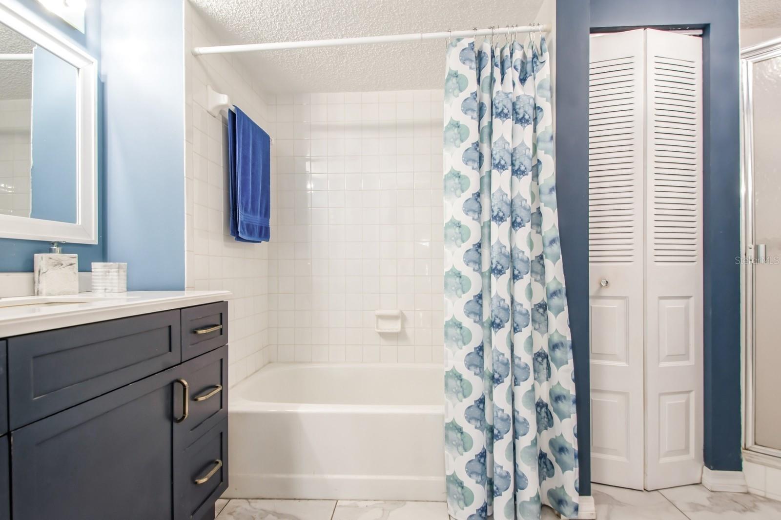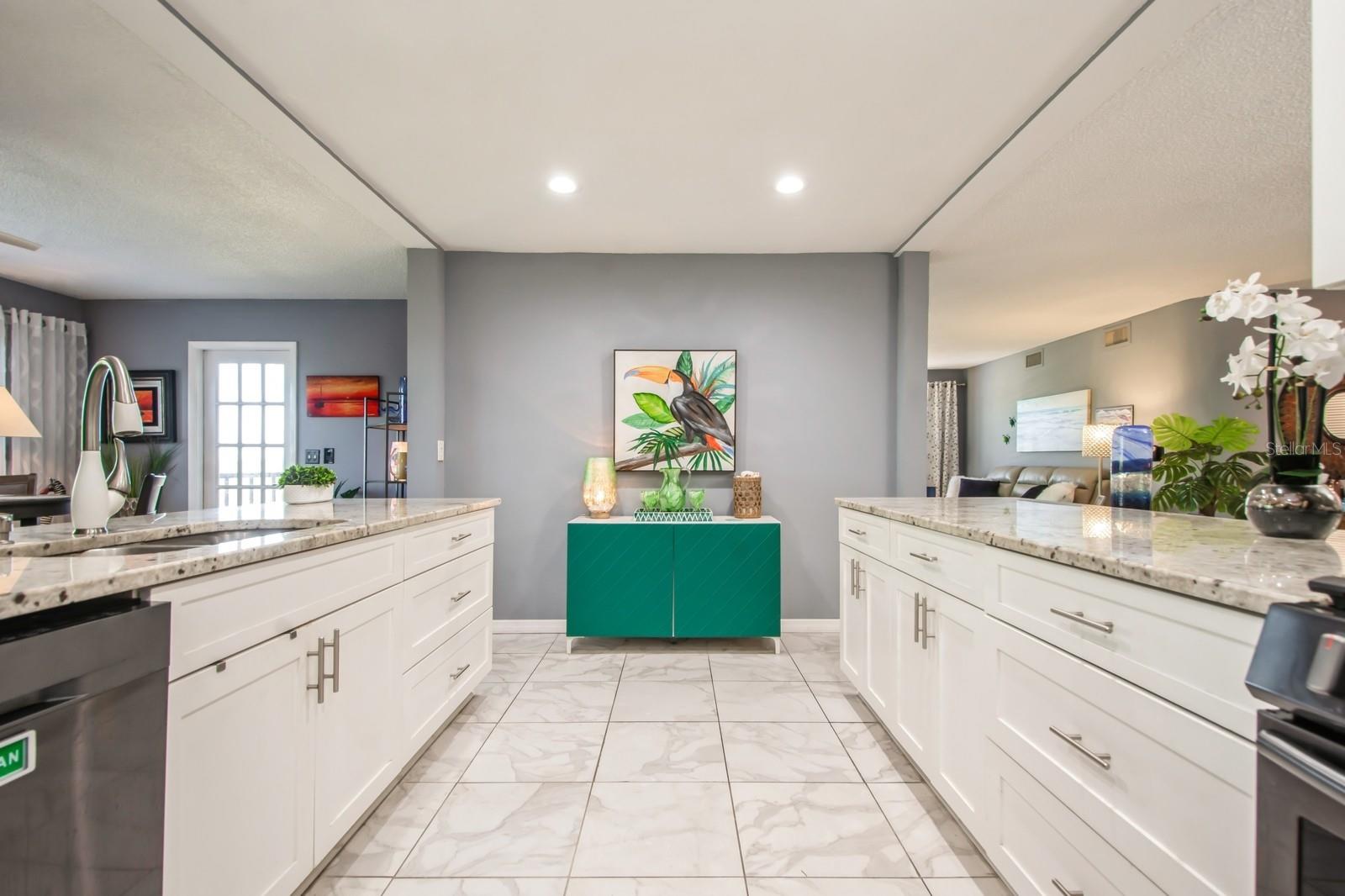 Welcome to your dream home at 8198 Terrace Garden Dr N #411, a beautifully maintained 2-bedroom, 2-bathroom condo in the sought-after 55+ community of Terrace Park of Five Towns. Spanning 1,700 square feet, this residence offers a perfect blend of modern elegance and low-maintenance living, designed to impress from the moment you step inside. The porcelain tile floors flow seamlessly throughout, creating a bright and cohesive space, while every window is dressed with stylish interior plantation shutters and equipped with hurricane-rated shutters for both sophistication and security. The heart of this condo is its updated kitchen, a chef’s delight with shaker cabinets topped with crown molding, luxurious granite countertops and backsplash, a gas stove, and matching stainless steel Samsung appliances. Just off the kitchen, a spacious laundry room with side-by-side washer and dryer units and ample storage makes daily tasks effortless. The open-concept layout enhances the sense of space, inviting relaxation or entertaining with ease. Retreat to the primary suite, a generously sized haven featuring a walk-in closet, a powder room, and an en-suite bathroom with updated stone countertops. This suite also boasts its own private balcony, offering peaceful views of the surrounding greenery—a perfect spot for morning coffee or evening unwinding. The second bedroom, equally inviting, enjoys access to a second full bathroom, also updated with stone countertops, making it ideal for guests or a home office. Outdoor living is a highlight here, with two private balconies showcasing tranquil vistas of the lush landscape. The main balcony, accessible from the living area, is perfect for gatherings or quiet moments, while the primary suite’s balcony adds an extra touch of serenity. The building itself offers standout features, including an elevator for convenience, common area storage spaces, covered bike storage, and an assigned covered carport space. Best of all, it’s the only building in Five Towns with its own sparkling swimming pool right next door—a rare luxury for residents. Living in Terrace Park at Five Towns means enjoying a wealth of community amenities. Beyond the pool attached to this building, you’ll find additional pools, scenic walking paths winding around ponds and lakes, a soon-to-be-renovated clubhouse and gym, tennis and pickleball courts, and a vibrant social scene with various community events. The HOA fee takes care of nearly everything—cable, internet, natural gas for heating and cooking, pest control, pool maintenance, recreational facilities, sewer, trash, and water—leaving only the electric bill as your additional expense. Perfectly positioned, this condo is just minutes from world-class beaches, shopping, dining, and major highways, offering an unbeatable combination of relaxation and accessibility. Don’t miss your chance to own this stunning condo in one of Southwest Florida’s premier 55+ communities—schedule your private tour today and experience the carefree, active lifestyle awaiting you!