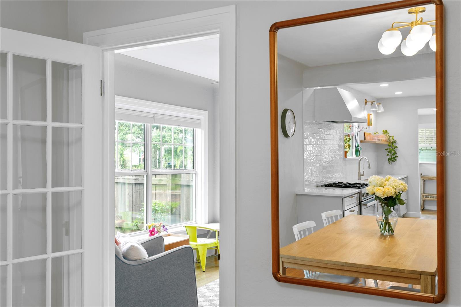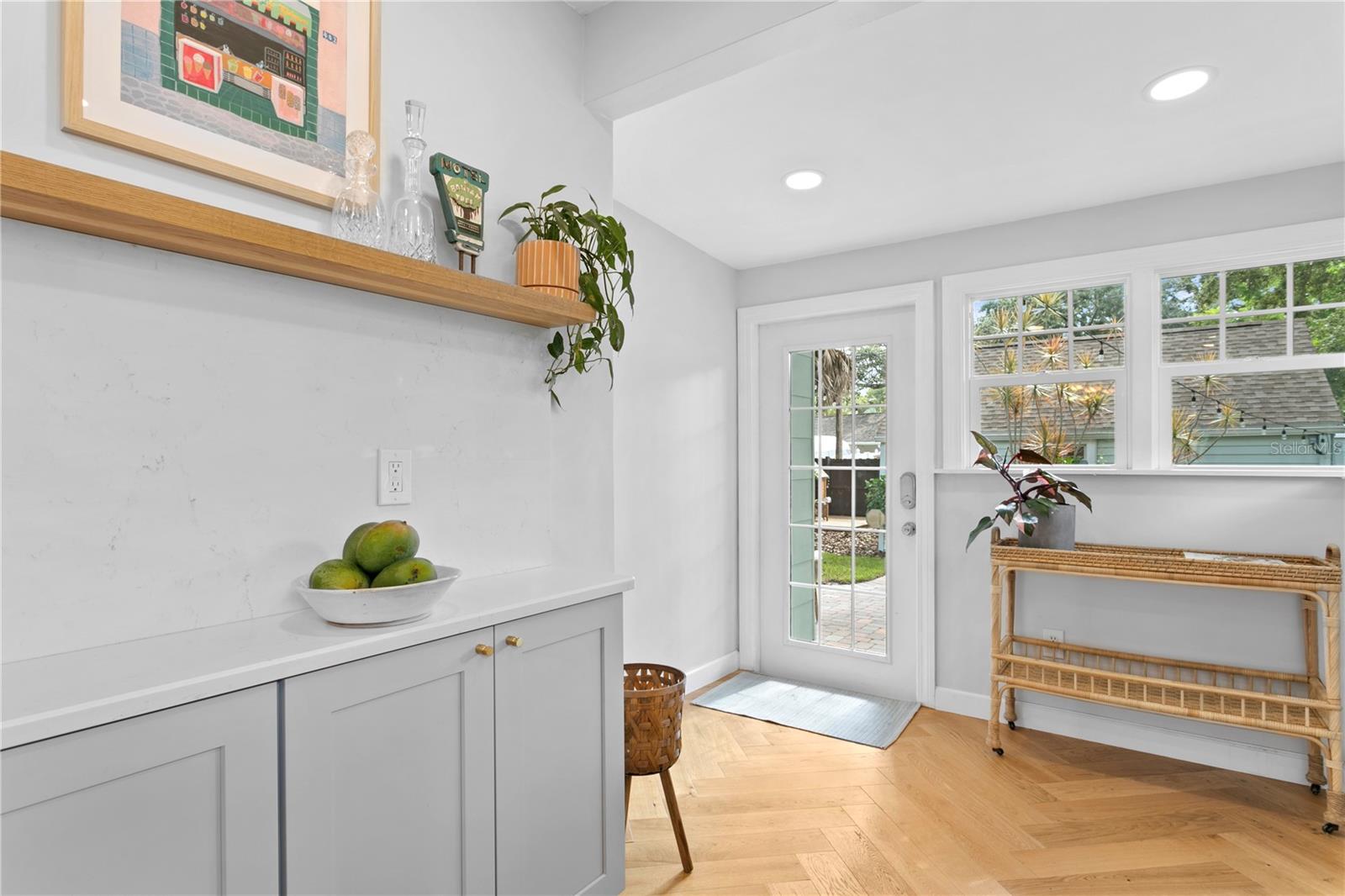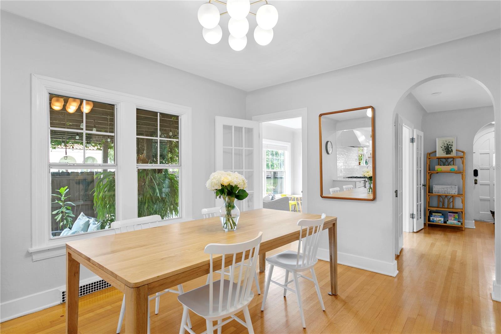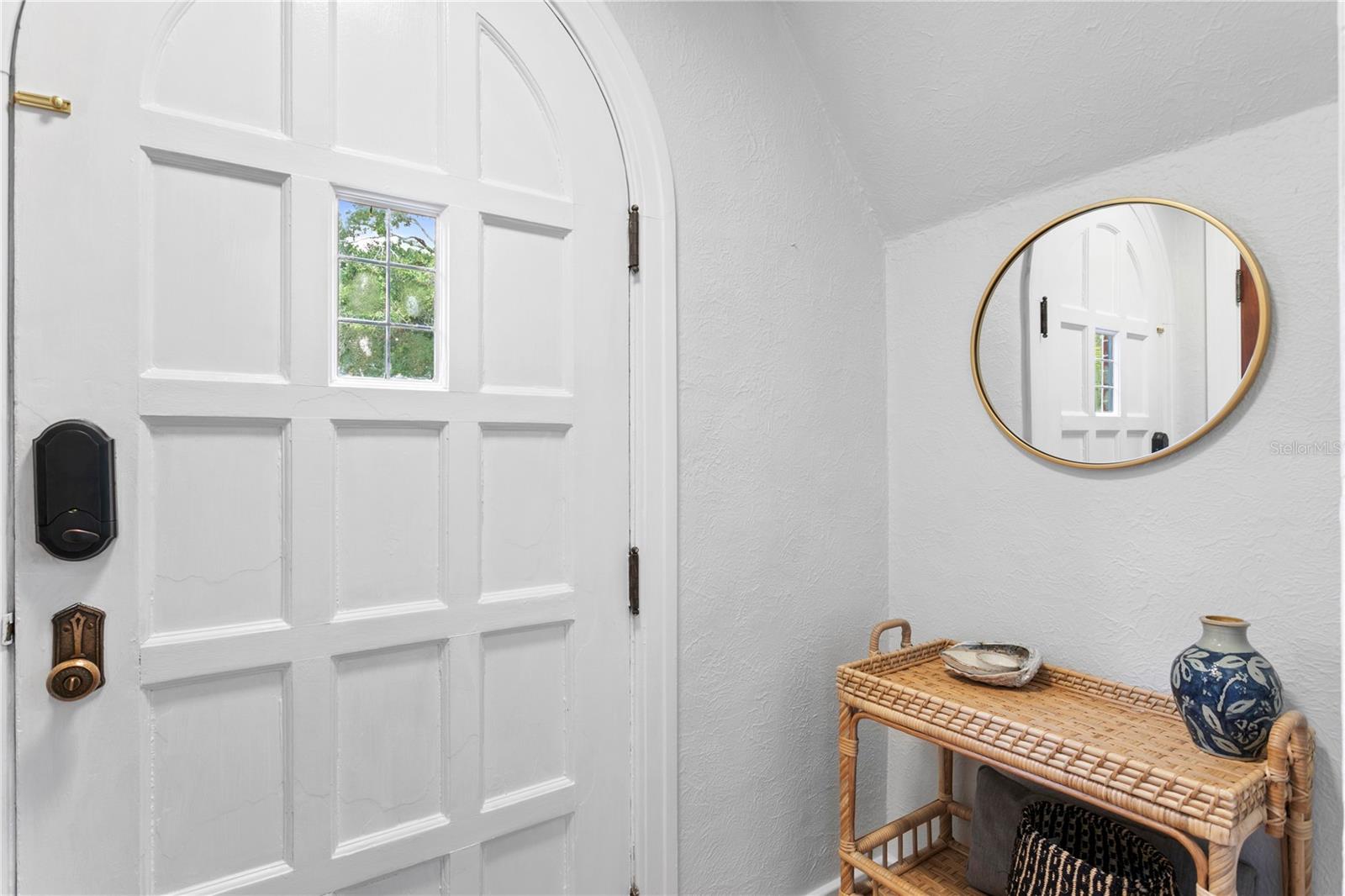 Charming Renovated Tudor in Prime Euclid St. Paul Location. Nestled on a quiet brick-lined street in the heart of Euclid St. Paul, this beautifully updated Tudor-style home offers timeless character with thoughtful modern upgrades. Just minutes from Crescent Lake Park and vibrant downtown St. Pete, the location is as convenient as it is desirable. Inside, you’ll find nearly 1,500 square feet of warm and inviting living space, featuring original hardwood floors, elegant crown molding, double-pane windows, coved ceilings, and graceful archways. The spacious kitchen is a standout with shaker wood cabinetry, quartz countertops, stainless steel appliances, and ample prep space—ideal for home cooks and entertainers alike. The home offers two well-sized bedrooms and two full baths, including a luxurious primary suite with a walk-in shower, double vanity, and an impressively large walk-in closet. A flexible bonus room provides options for a third bedroom, home office, or creative space. The indoor laundry room adds everyday convenience. Blending historic charm with modern comforts, this move-in ready home is a perfect retreat in one of St. Pete’s most beloved neighborhoods.