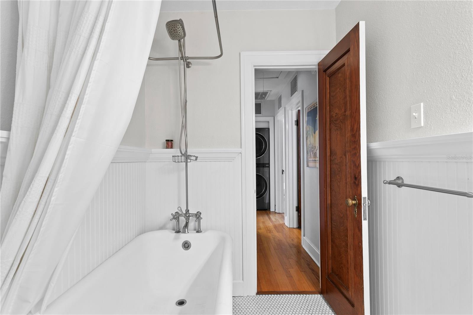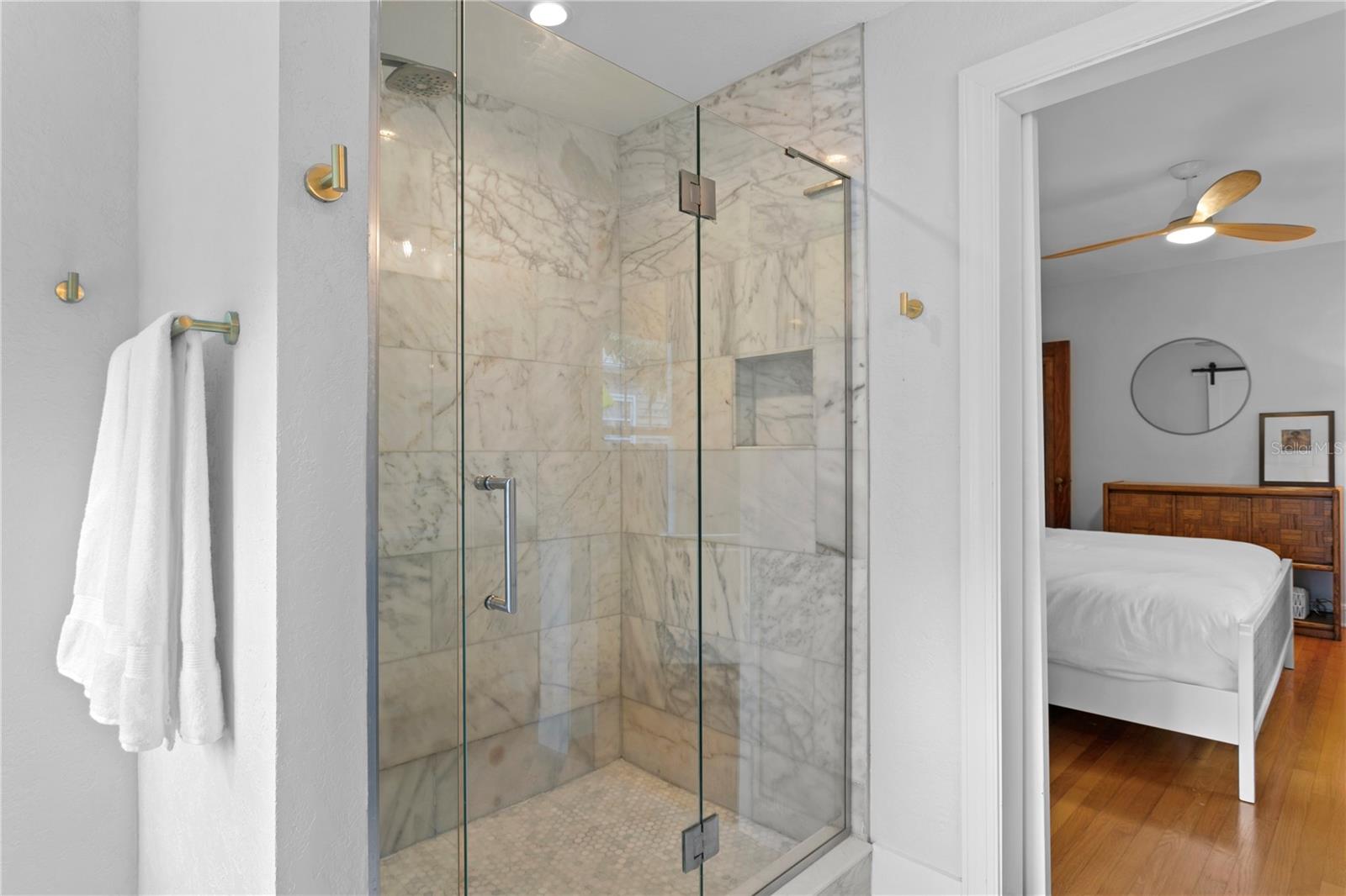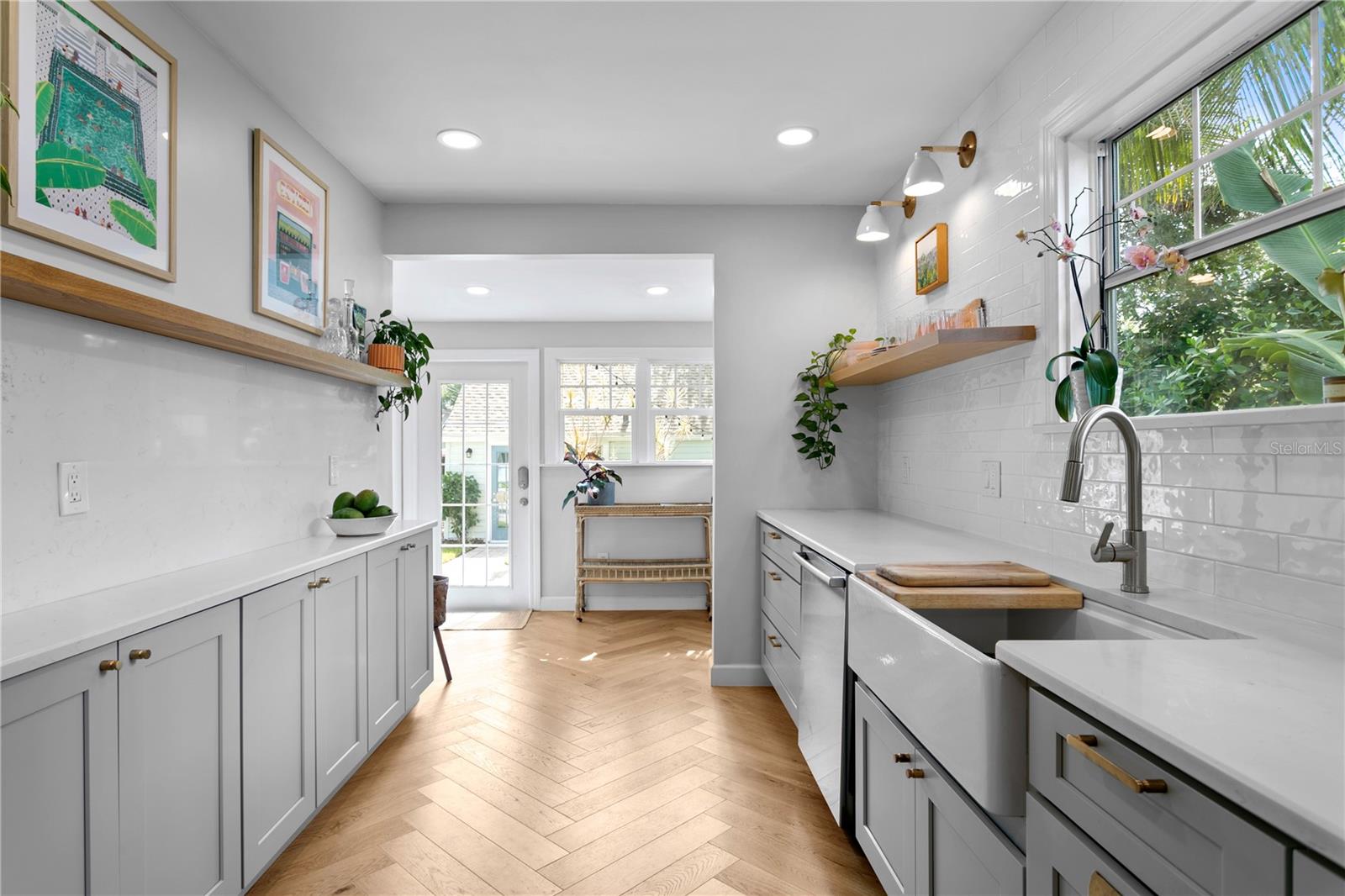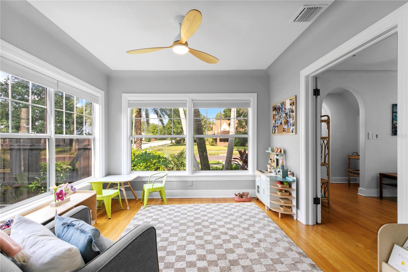 Charming Renovated Tudor in Prime Euclid St. Paul Location. Nestled on a quiet brick-lined street in the heart of Euclid St. Paul, this beautifully updated Tudor-style home offers timeless character with thoughtful modern upgrades. Just minutes from Crescent Lake Park and vibrant downtown St. Pete, the location is as convenient as it is desirable. Inside, you’ll find nearly 1,500 square feet of warm and inviting living space, featuring original hardwood floors, elegant crown molding, double-pane windows, coved ceilings, and graceful archways. The spacious kitchen is a standout with shaker wood cabinetry, quartz countertops, stainless steel appliances, and ample prep space—ideal for home cooks and entertainers alike. The home offers two well-sized bedrooms and two full baths, including a luxurious primary suite with a walk-in shower, double vanity, and an impressively large walk-in closet. A flexible bonus room provides options for a third bedroom, home office, or creative space. The indoor laundry room adds everyday convenience. Blending historic charm with modern comforts, this move-in ready home is a perfect retreat in one of St. Pete’s most beloved neighborhoods.