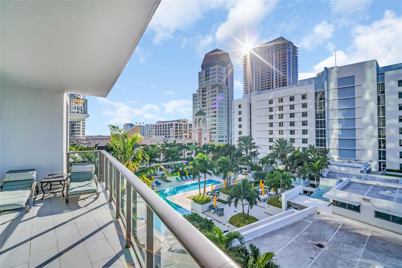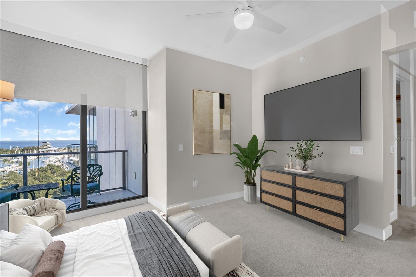 Exquisite Living with Stunning Water views at ONE St. Petersburg Step into a world of unparalleled elegance and modern luxury with this stunning 3-bedroom + den, 3.5-bath corner condo at ONE St. Petersburg, one of the city’s most sought-after addresses. Spanning an expansive 2,475 square feet, this one-of-a-kind residence offers one of the largest floor plans available in the building, delivering the perfect combination of space, style, and breathtaking views. From the moment you enter, you’ll be captivated by the seamless flow of the open-concept living spaces, enhanced by upgraded electrical receptacles and 24x24 porcelain tile throughout. The chef-inspired kitchen is a true masterpiece, featuring roll-out pantry shelves, sleek stainless steel appliances, a lazy Susan corner cabinetry for easy access, and a custom backsplash. The center island creates an ideal space for gathering and entertaining, while the separate bar area with additional cabinet space and built-in wine fridge elevates the home’s sophistication. Throughout the living areas, custom built-ins and floating shelves add a touch of refinement, offering practical yet stylish storage solutions. All windows are equipped with electric blinds, and the master suite features blackout shades for ultimate privacy and comfort. With three private terraces, you’ll find the perfect outdoor retreat at every turn. Enjoy direct east-facing views of the tranquil waters from the main living area, soak in stunning west-facing city views from the guest suite and den, or unwind in the master suite, which boasts a private terrace with panoramic vistas of Tampa Bay, the new St. Pete Pier, and the marina. This luxurious condo is not only beautifully designed but also comes with two parking spaces and a climate-controlled storage unit, ensuring your convenience and comfort. As a resident of ONE St. Petersburg, you’ll have access to an array of world-class amenities, including a 40,000-square-foot amenities deck featuring a 75-foot lap pool, cabanas, a luxurious spa, outdoor kitchens, fire pits, and abundant seating areas perfect for both relaxation and socializing. Inside, enjoy a state-of-the-art fitness center, a yoga studio, and exceptional social spaces, including a formal social room, game room, and club room—all complemented by the seamless concierge service. Located in the heart of downtown St. Petersburg, ONE St. Petersburg offers immediate access to over 40 restaurants, museums, theaters, galleries, shopping, and the vibrant waterfront. Here, you'll discover a lifestyle where sophistication, convenience, and urban luxury come together effortlessly, perfectly encapsulating the essence of modern living in one of Florida's most dynamic cities.