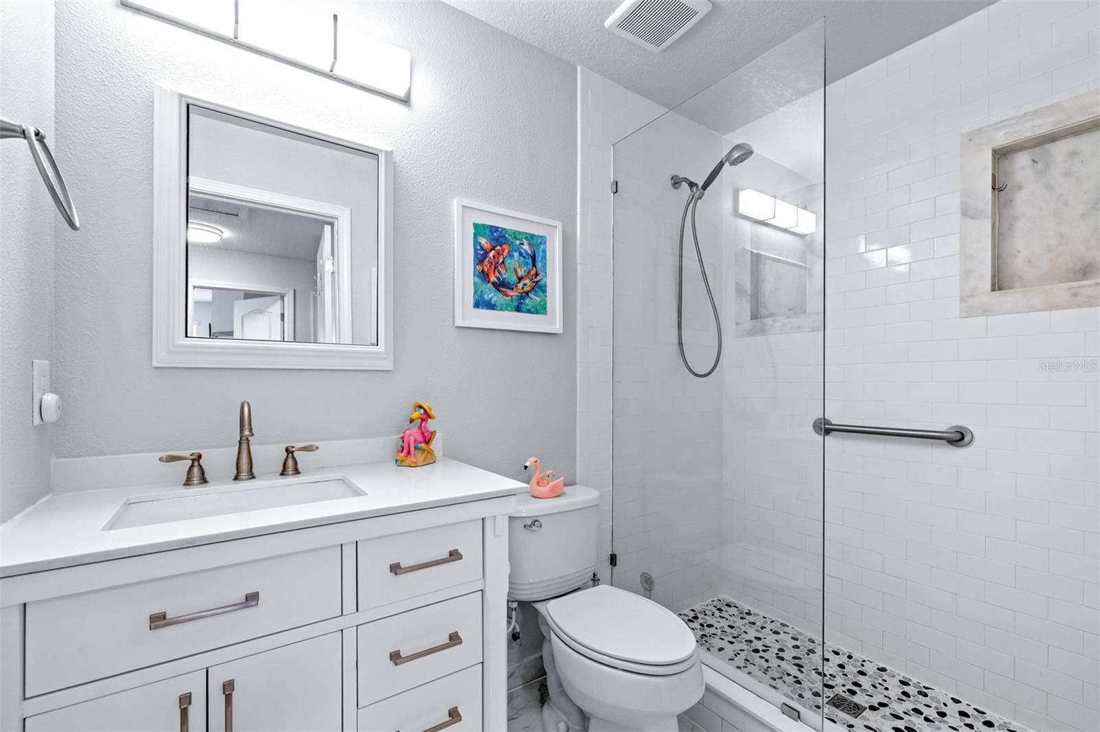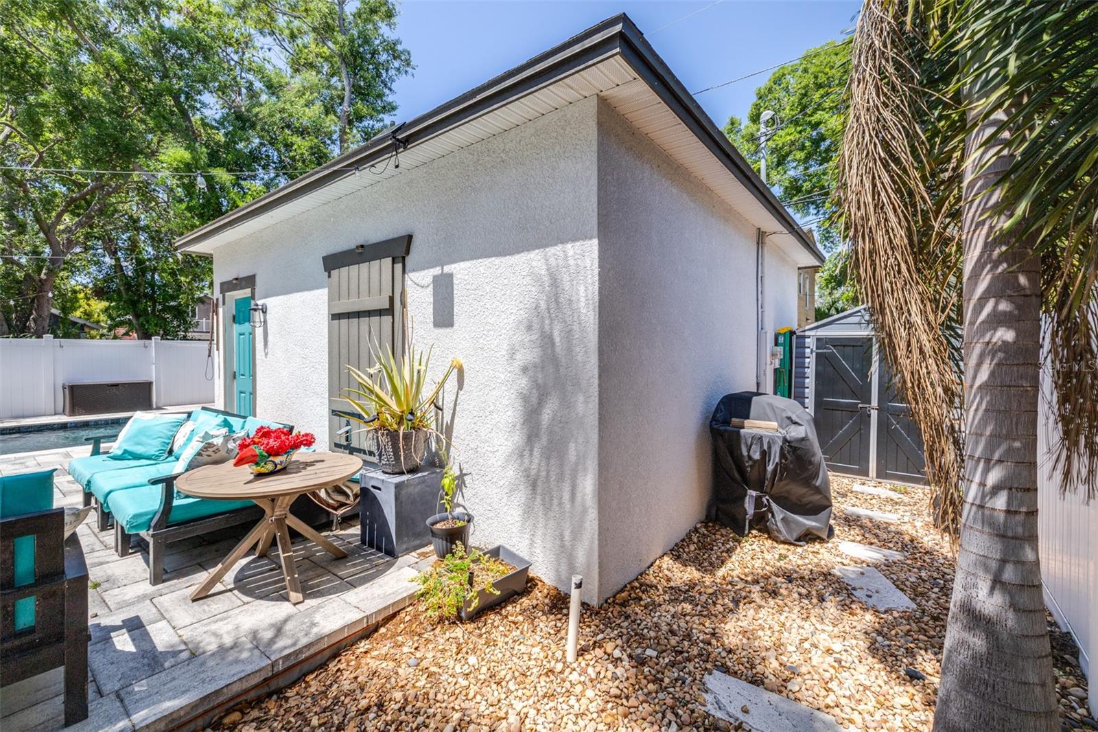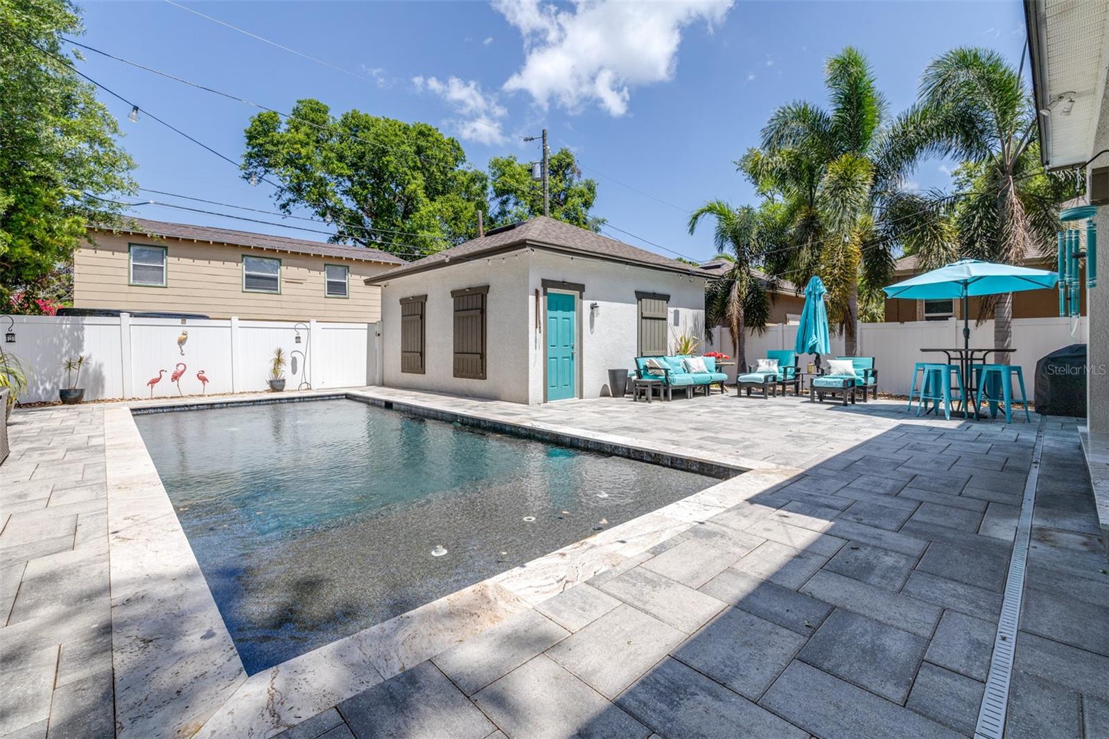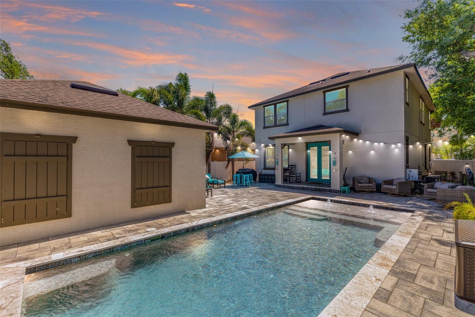Experience the perfect blend of historic charm and modern luxury in this stunning 4-bedroom, 3-bathroom pool home, located in the highly sought-after Roser Park neighborhood just minutes from vibrant downtown St. Petersburg. Built in 2017, this two-story home is tucked away at the end of a quiet street, offering privacy, serene wooded views, and private alley access to a spacious two-car garage. Step through the grand oversized front door into an inviting space with soaring ceilings and elegant tile floors. The front bonus room offers endless possibilities—it can serve as a home office, movie room, formal dining room, or additional living space. The spacious kitchen is a standout feature, boasting expansive counter and cabinet space, stainless steel appliances, granite and quartz countertops, a walk-in pantry, and a built-in wine fridge. The open-concept layout flows seamlessly into the bright and airy living room, making it perfect for entertaining. French doors lead out to the private backyard oasis, where you’ll find a gorgeous custom saltwater pool surrounded by luxury pavers, creating an elegant and low-maintenance outdoor space. The fenced backyard provides a tranquil retreat with plenty of space for pets, family, and friends. Upstairs, the luxurious master suite boasts a tray ceiling, a spacious walk-in closet, and a spa-like en suite with double vanities, a soaking tub, and a glass-enclosed shower. Two additional bedrooms, a full bathroom, and a laundry room complete the second floor. Located near Johns Hopkins All Children’s Hospital, USF, parks, marinas, restaurants, and boutiques, this home offers unparalleled convenience and charm. Don’t miss out on this incredible opportunity to live just minutes from the best of downtown St. Pete—schedule your showing today! No Flood Zone!