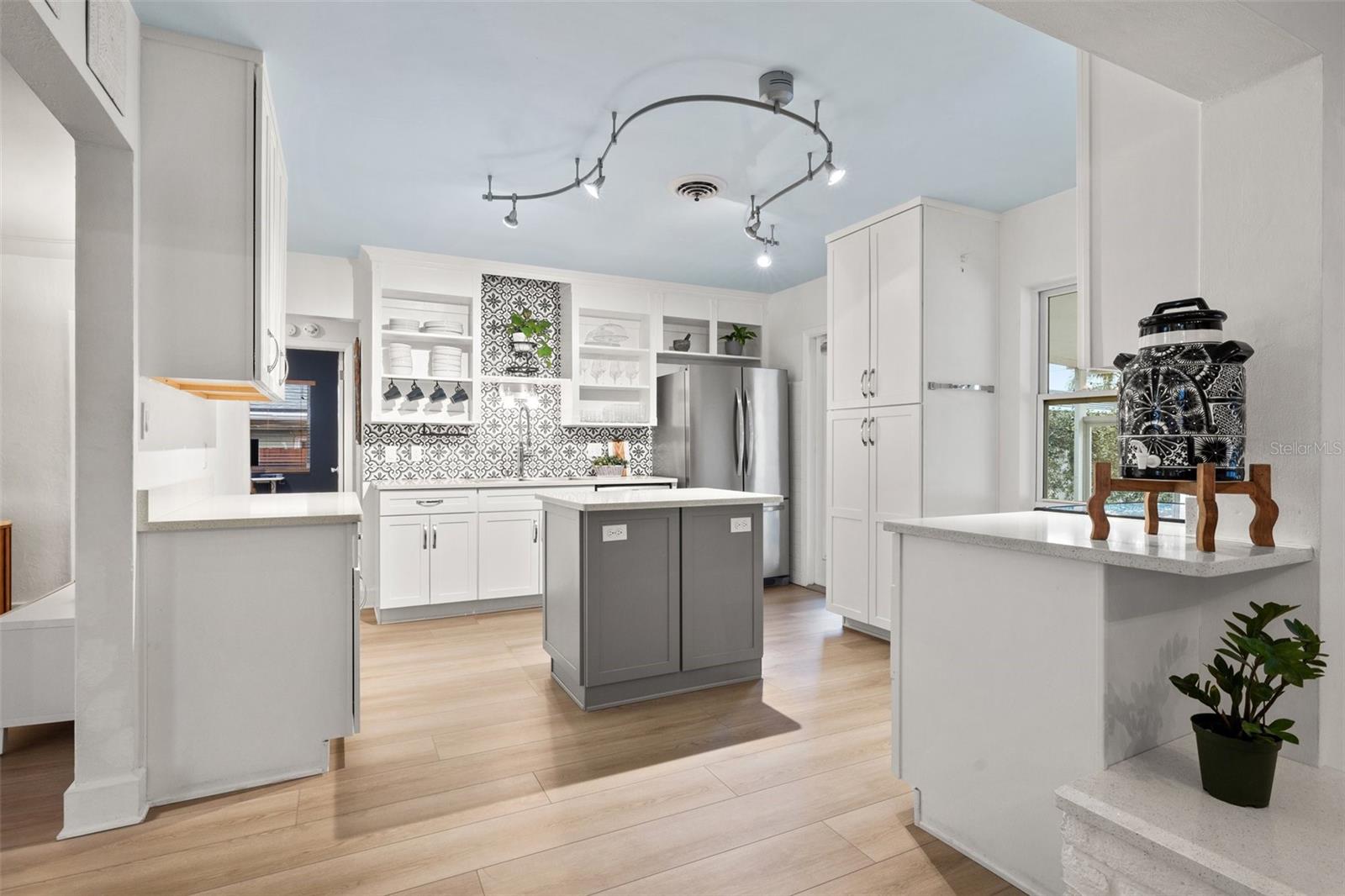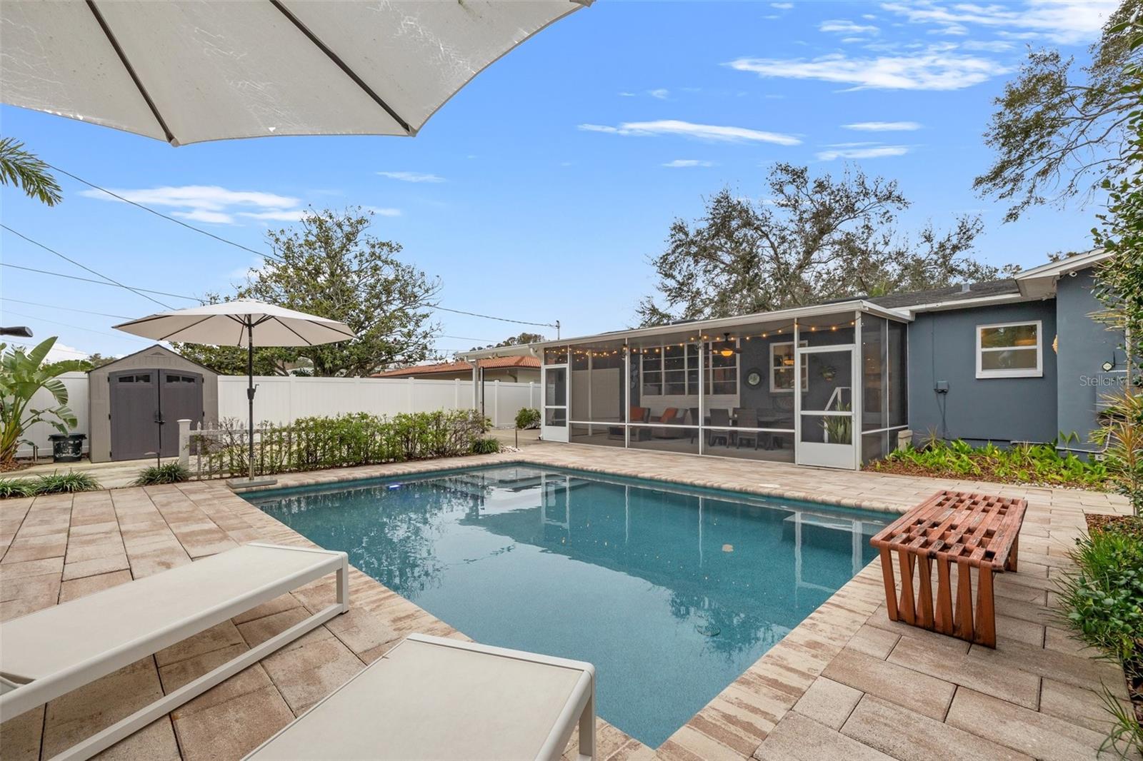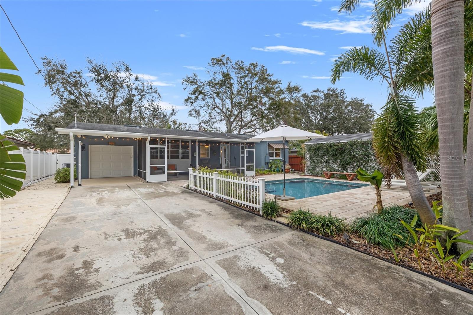 SELLER MOTIVATED! BRING ALL REASONABLE OFFERS BY SUNDAY 6/22/2025. LOCATION, LOCATION, LOCATION! Welcome to this beautifully renovated POOL home in the highly desirable Crisp Park neighborhood of St. Petersburg. Full of charm and character, this home must be seen to be truly appreciated. Upon entry, a welcoming screened lanai greets you—perfect for morning coffee or evening cocktails—and opens into a spacious and airy living area. The heart of the home is the stunning, updated kitchen, complete with a central island, generous cabinetry, and expansive counter space—ideal for both entertaining and everyday living. The open-concept dining area flows seamlessly from the kitchen, offering effortless gatherings and abundant natural light. The primary suite features a recently renovated en suite bathroom, while the stylish guest bath has also been thoughtfully updated. Step outside to your very own private tropical oasis: a large screened lanai perfect for alfresco dining and lounging, overlooking the custom-designed pool with automation (added in 2019). Framed by pavers and lush landscaping, this backyard retreat is made for relaxing, entertaining, and enjoying Florida’s outdoor lifestyle.The home also offers exceptional parking and access: two rear driveways with alley access—one covered and ideal for a boat or RV, the other providing ample space for multiple vehicles. A vinyl privacy fence with gates encloses both driveways, and a paved alley enhances accessibility.The one-car garage features built-in storage shelving, offering functional space for tools, gear, or toys. Additional upgrades include: new HVAC system (2024), new pool pump and salt cell (2024), new luxury vinyl plank flooring throughout. Just one block from the water, you’ll enjoy easy access to Crisp Park, with a public boat ramp, playground, and picnic shelters. Launch your boat, kayak, or paddleboard for a relaxing tour of Smacks Bayou or head out to Tampa Bay within minutes. This home is also a quick golf cart or bike ride to downtown St. Pete, with easy access to Publix, Trader Joe’s, Fresh Market, and the new Whole Foods Market. Experience the best of St. Petersburg living in one of its most sought-after neighborhoods. This home did not sustain any water intrusion from Hurricane Helene or Hurricane Milton.