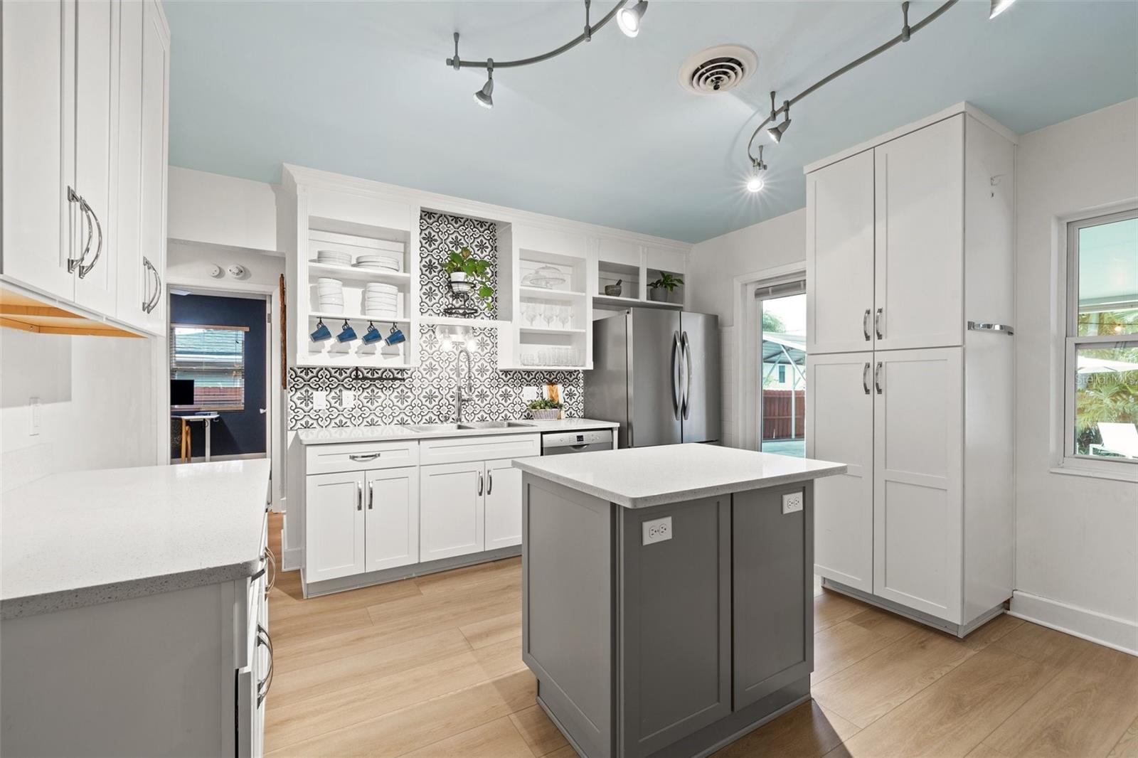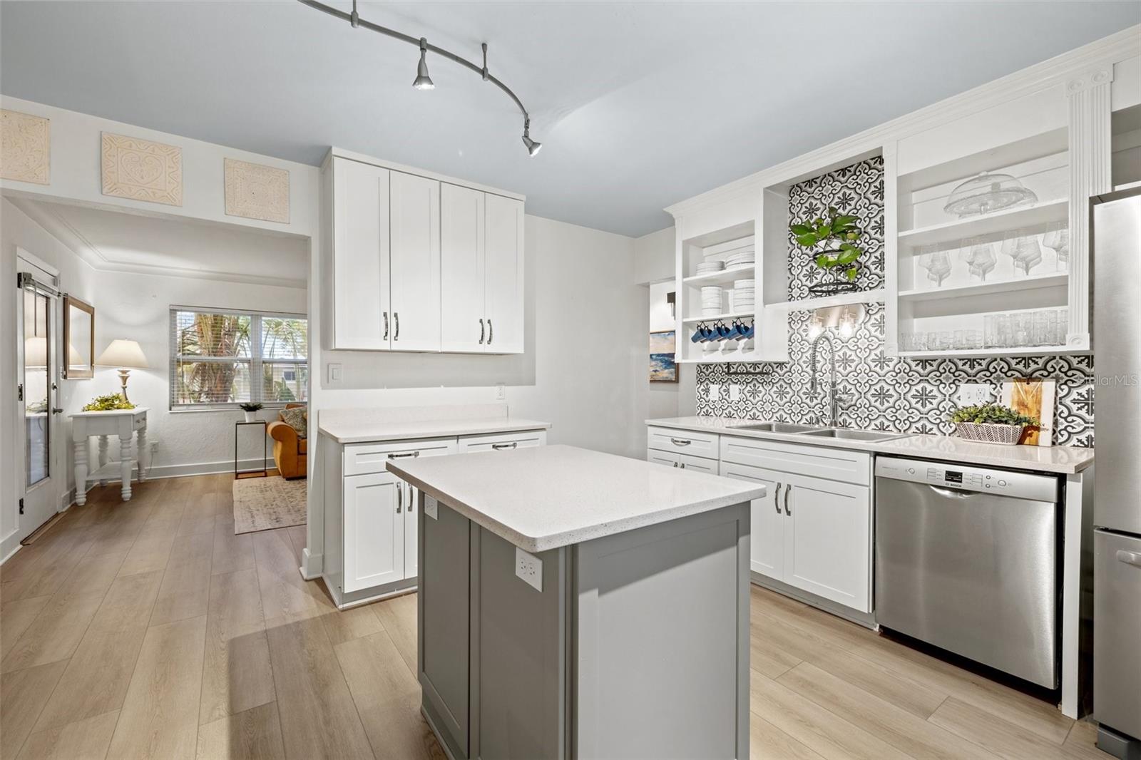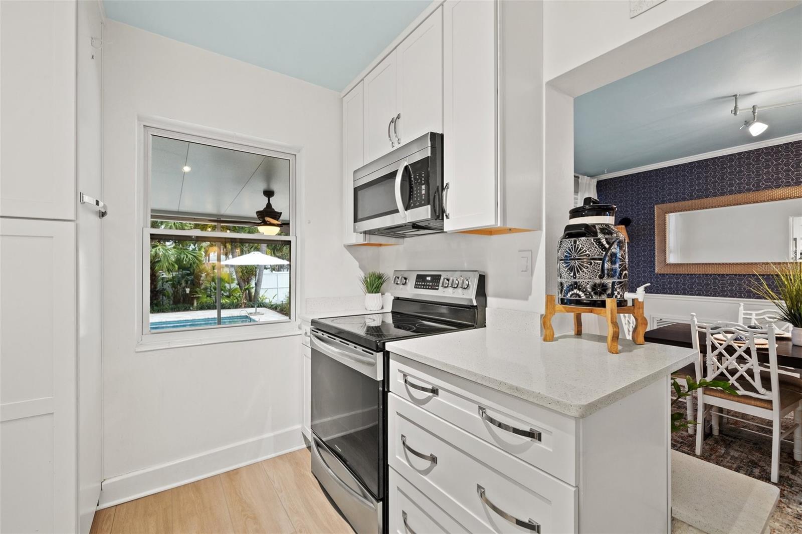 SELLER MOTIVATED! BRING ALL REASONABLE OFFERS BY SUNDAY 6/22/2025. LOCATION, LOCATION, LOCATION! Welcome to this beautifully renovated POOL home in the highly desirable Crisp Park neighborhood of St. Petersburg. Full of charm and character, this home must be seen to be truly appreciated. Upon entry, a welcoming screened lanai greets you—perfect for morning coffee or evening cocktails—and opens into a spacious and airy living area. The heart of the home is the stunning, updated kitchen, complete with a central island, generous cabinetry, and expansive counter space—ideal for both entertaining and everyday living. The open-concept dining area flows seamlessly from the kitchen, offering effortless gatherings and abundant natural light. The primary suite features a recently renovated en suite bathroom, while the stylish guest bath has also been thoughtfully updated. Step outside to your very own private tropical oasis: a large screened lanai perfect for alfresco dining and lounging, overlooking the custom-designed pool with automation (added in 2019). Framed by pavers and lush landscaping, this backyard retreat is made for relaxing, entertaining, and enjoying Florida’s outdoor lifestyle.The home also offers exceptional parking and access: two rear driveways with alley access—one covered and ideal for a boat or RV, the other providing ample space for multiple vehicles. A vinyl privacy fence with gates encloses both driveways, and a paved alley enhances accessibility.The one-car garage features built-in storage shelving, offering functional space for tools, gear, or toys. Additional upgrades include: new HVAC system (2024), new pool pump and salt cell (2024), new luxury vinyl plank flooring throughout. Just one block from the water, you’ll enjoy easy access to Crisp Park, with a public boat ramp, playground, and picnic shelters. Launch your boat, kayak, or paddleboard for a relaxing tour of Smacks Bayou or head out to Tampa Bay within minutes. This home is also a quick golf cart or bike ride to downtown St. Pete, with easy access to Publix, Trader Joe’s, Fresh Market, and the new Whole Foods Market. Experience the best of St. Petersburg living in one of its most sought-after neighborhoods. This home did not sustain any water intrusion from Hurricane Helene or Hurricane Milton.