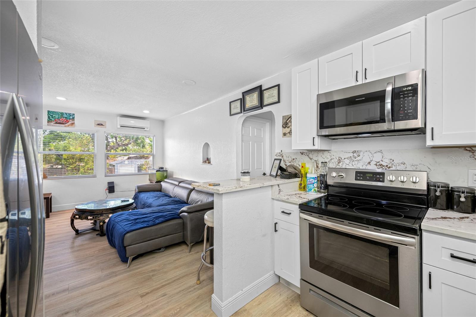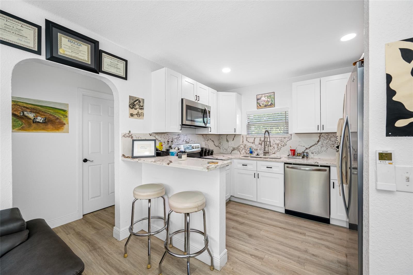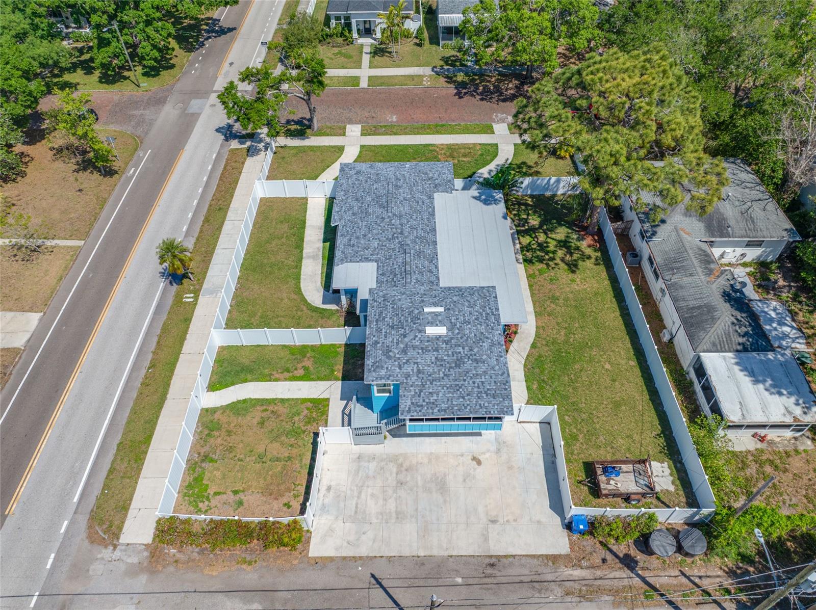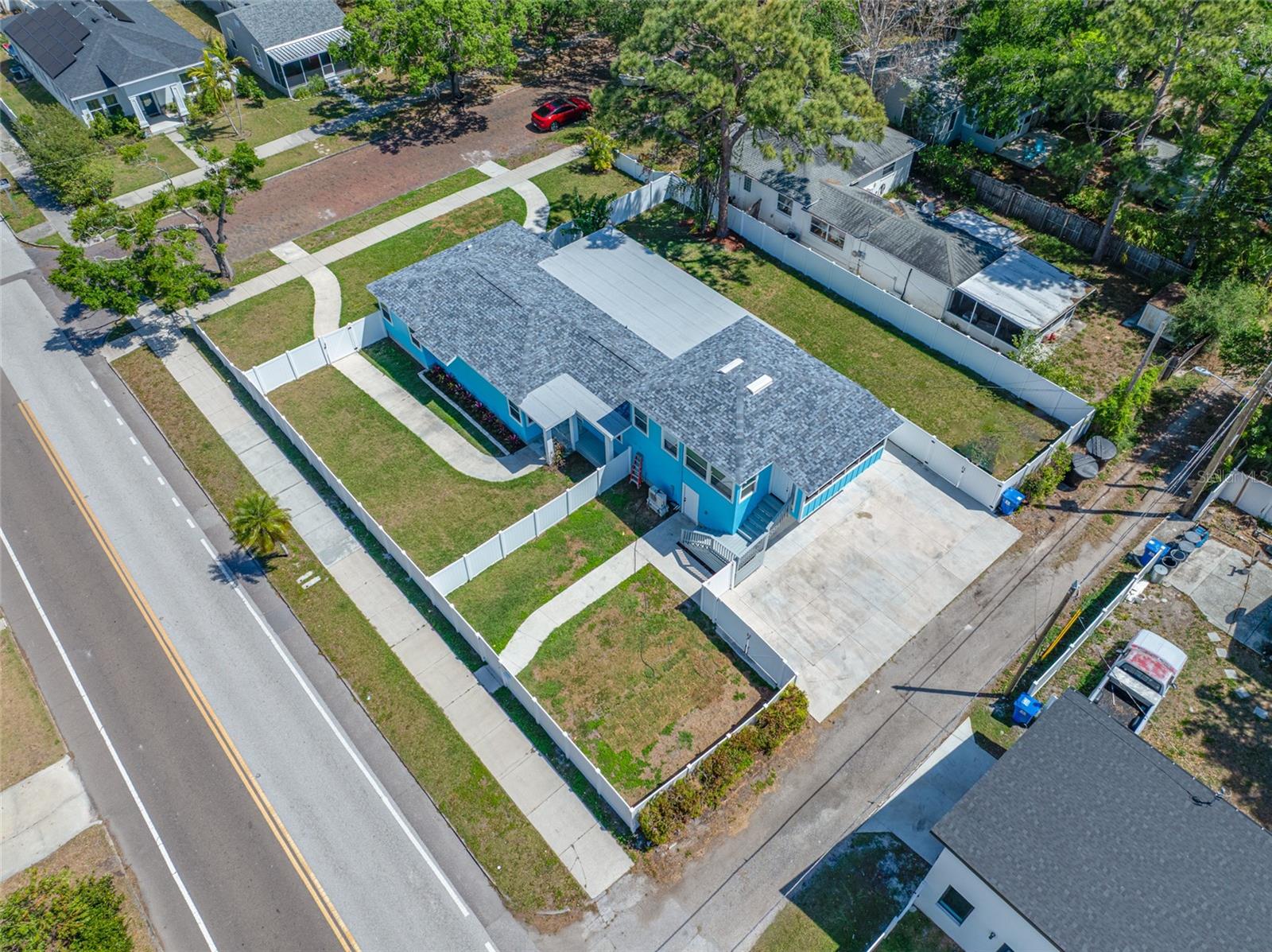 Welcome to this beautiful home offering both comfort and versatility! This tastefully renovated, 5-bedroom, 3-bathroom home is nestled in the heart of St Petersburg, FL on a double lot! You will find the thoughtfully enhanced landscaping exudes curb appeal from the moment you arrive, adding to the allure of this property. This home is perfect for all your family needs. Upon entering the home, you are greeted by the beautiful kitchen surrounded by the living room and dining room. You will find brand-new stainless-steel appliances, a kitchen island next to the double-sided cozy fireplace, which provides the perfect space for entertaining. Revel in the beauty of the continuous Quartz countertops and backsplash. You will find the primary bedroom and three additional well-appointed bedrooms providing comfort and versatility. The Primary bedroom suite comes with a large closet and a luxurious primary ensuite bathroom that includes dual vanities, a large walk-in shower with dual shower heads. You will find a beautifully renovated 1 bedroom and 1 bath ADU above the 2-car garage with a full-size luxurious kitchen, quartz countertops, and stainless-steel appliances. It has a beautiful, relaxing enclosed porch with incredible second floor views. This unit is perfect as a mother-in-law suite, ideal for guests, or income-producing rental. As a true income producing unit, this unit has a separate water, electric, gas meter, and private entrance. Downstairs, you will find 2 garage spaces that have private access to each garage space and can be used privately for each unit. The house and the ADU unit each have their own separate, fully gated yard space for privacy and relaxation. Enjoy your double lot backyard while sitting in your 450 sq ft enclosed porch or spend the weekends with family and friends in your fully fenced backyard with lots of room for running and playing. Not only is this home fully renovated but it also comes with a new roof installed in 2022, new HVAC systems, tankless gas water heaters, and new windows and doors in 2023! This home is ideally situated for your daily needs, minutes away from shopping, dining, and the beautiful beaches. Don’t miss the opportunity to make this beautiful home your own!