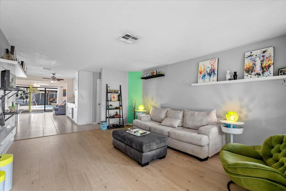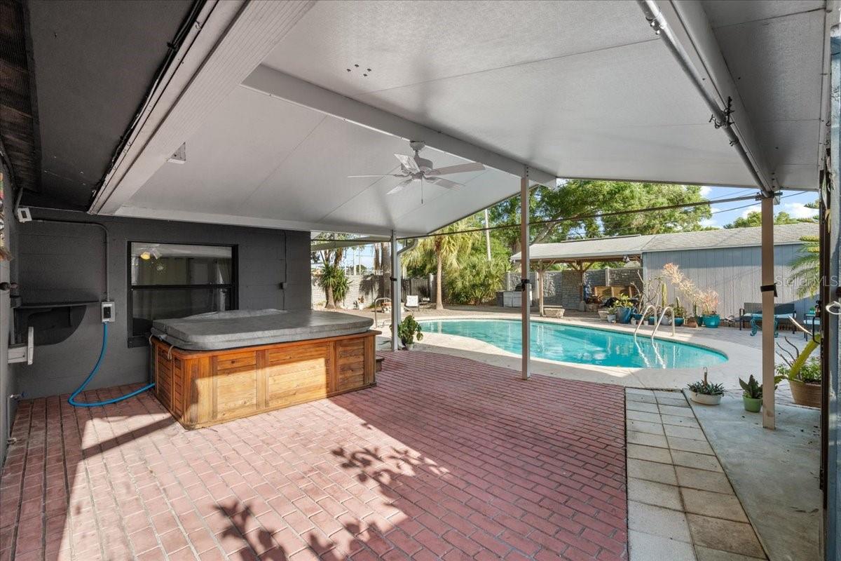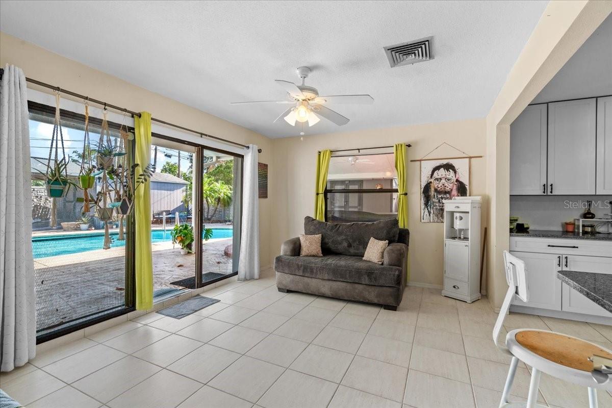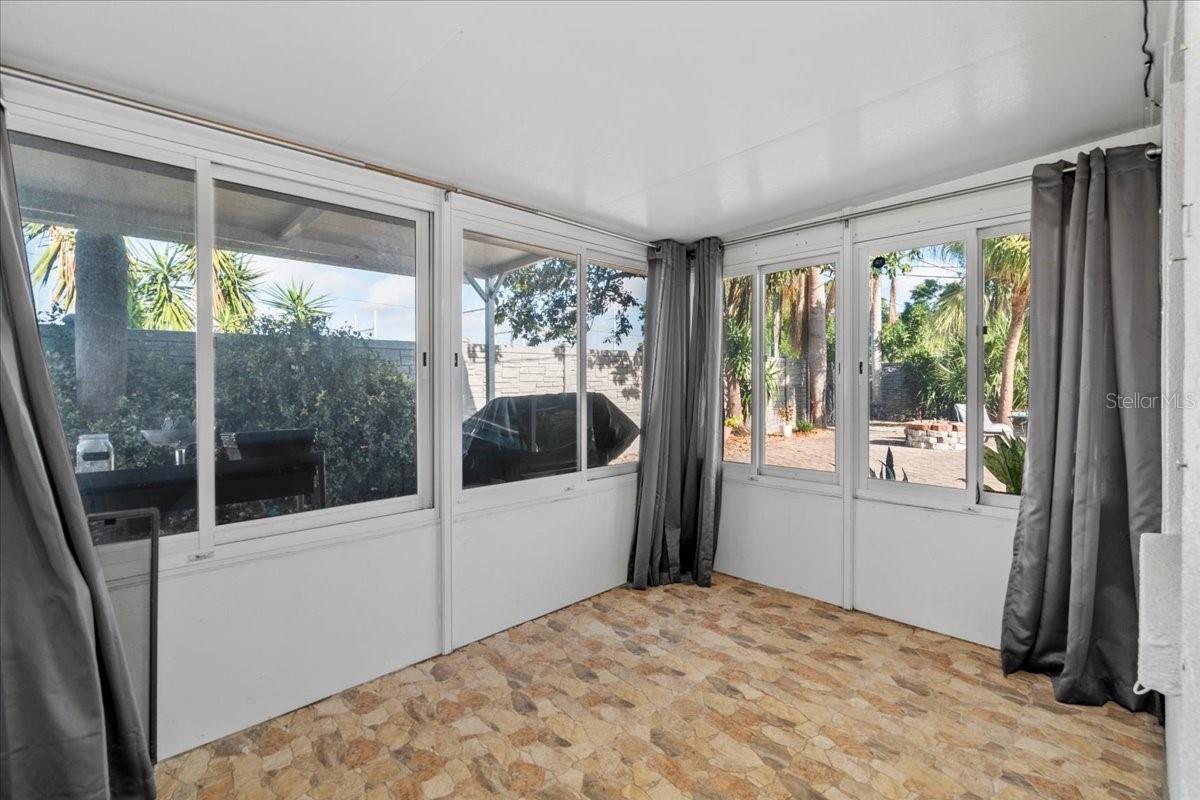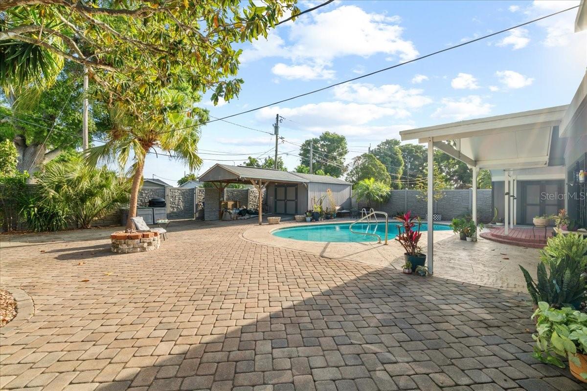 If you’re looking for an adorable pool home with a large, fully fenced, low maintenance yard with multiple patios perfect for gardening, entertaining, and other outdoor hobbies – You have found it! This 1,450 sq ft home in the heart of St. Petersburg offers the perfect blend of comfort, functionality, and open spaces. As you pull up to the house into the horseshoe driveway, take in the ample on and off-street parking on this corner lot. The front porch offers a peaceful and shaded space to enjoy your morning coffee in style. Step inside to discover gleaming new laminate flooring (installed March 2025) in the living room and bedrooms. The thoughtful floor plan features an open living room, eat in kitchen with dry bar, and back family room/sunroom that provides lots of flex space for a home office, craft space, or whatever suits your lifestyle. Down the hall, sit two generously sized bedrooms, including a primary suite with an ensuite bathroom and access to the back patio through glass sliding doors. The primary bedroom serves as a peaceful retreat. Both bedrooms offer large closets, perfect for storage. The attached one car garage houses the washer/dryer as well as a small workshop area. Outside, this property truly shines. Take a refreshing dip in the sparkling in-ground pool, or entertain guests on your choice of covered or uncovered patios. Two versatile sheds plus a workshop offer abundant storage and space for hobbies, while the fully fenced yard ensures complete privacy. RV and boat owners will appreciate the corner lot, large gates, and convenient alley access, making storage of oversized vehicles a breeze. The attached one-car garage provides additional secure parking, storage space, and laundry. Smart upgrades make this home as efficient as it is comfortable. Fully paid-off solar panels significantly reduce energy costs, while an irrigation system keeps the landscaping lush with minimal effort. This move-in ready home combines the best of Florida living with practical amenities that make everyday life easier. Non-flood zone and no flooding in recent storms.